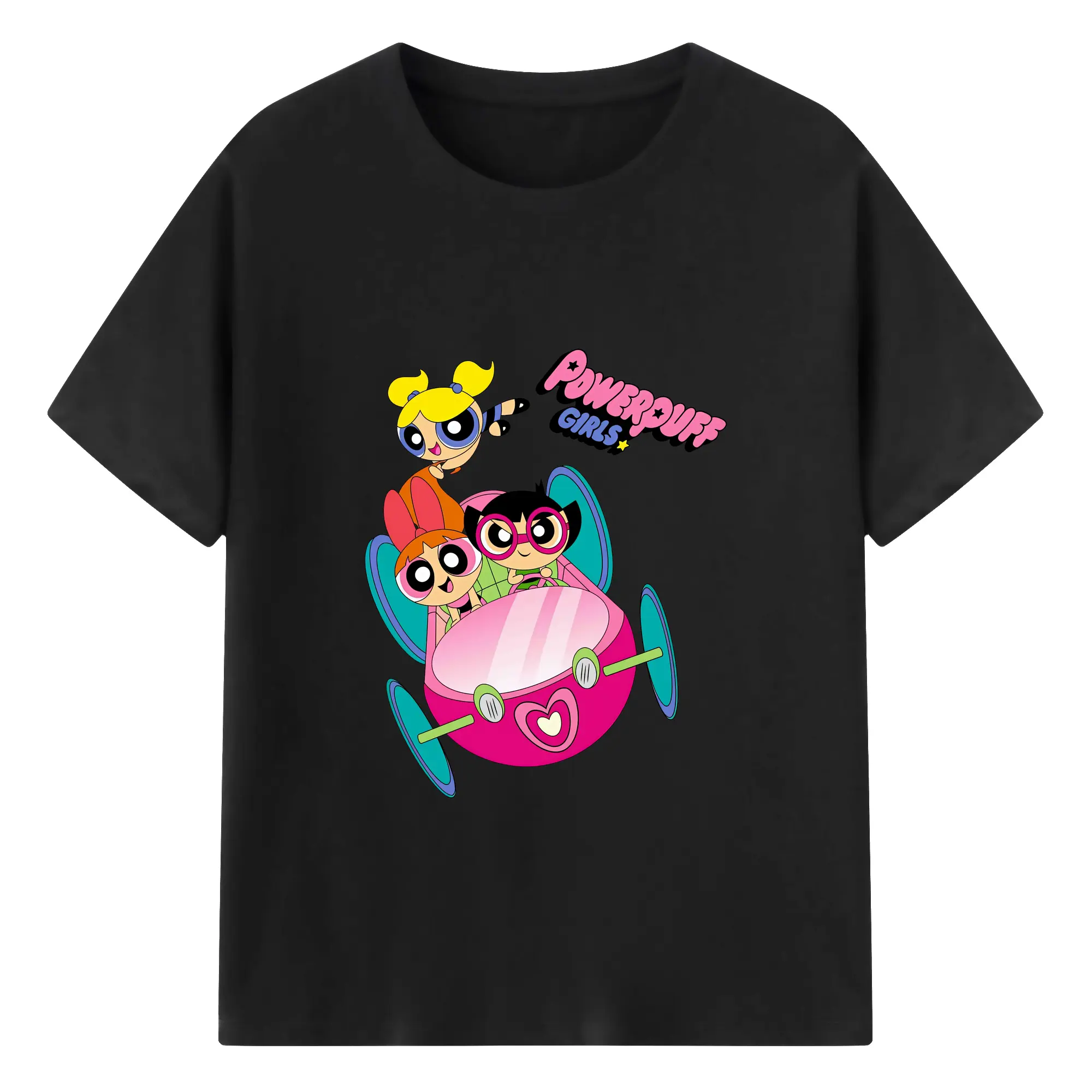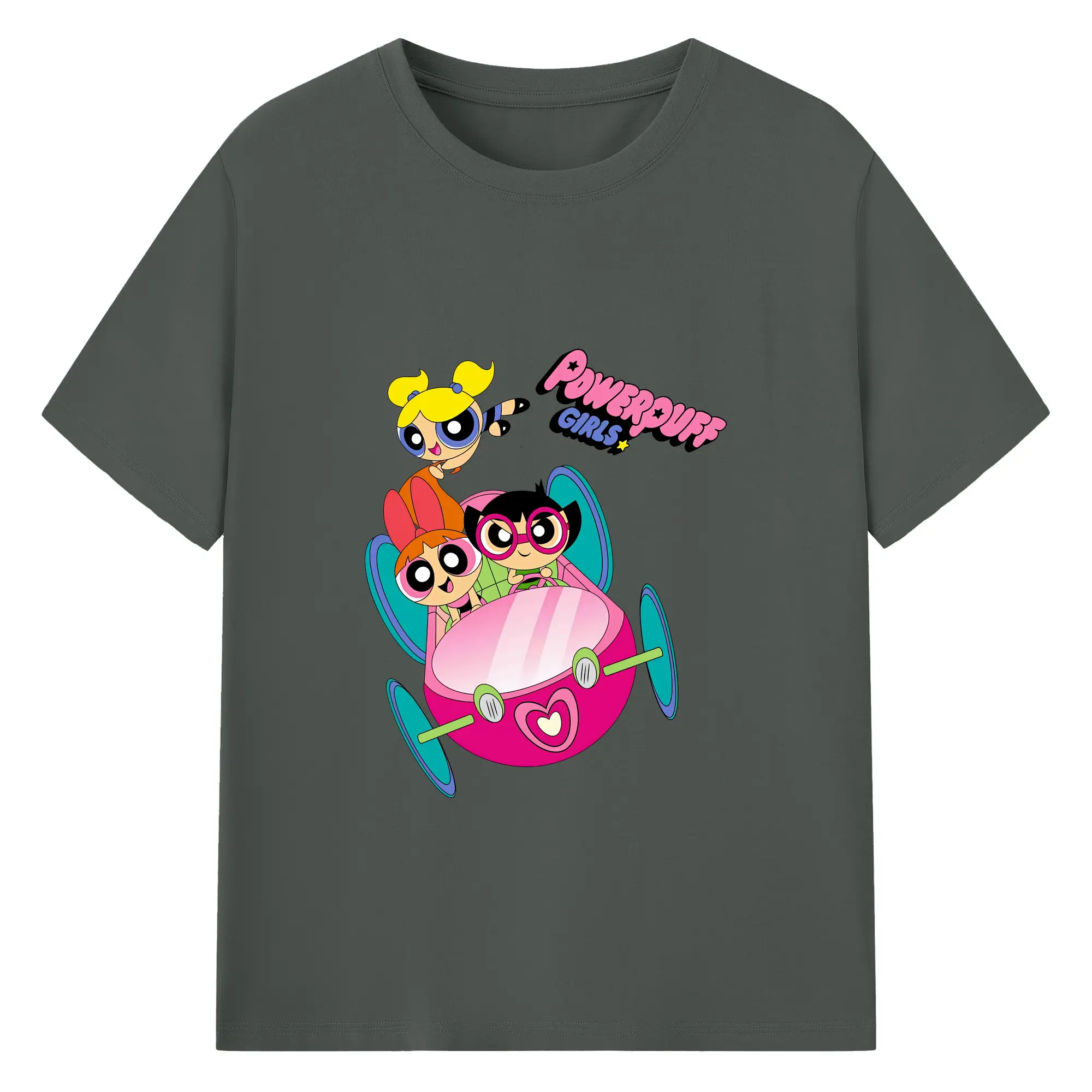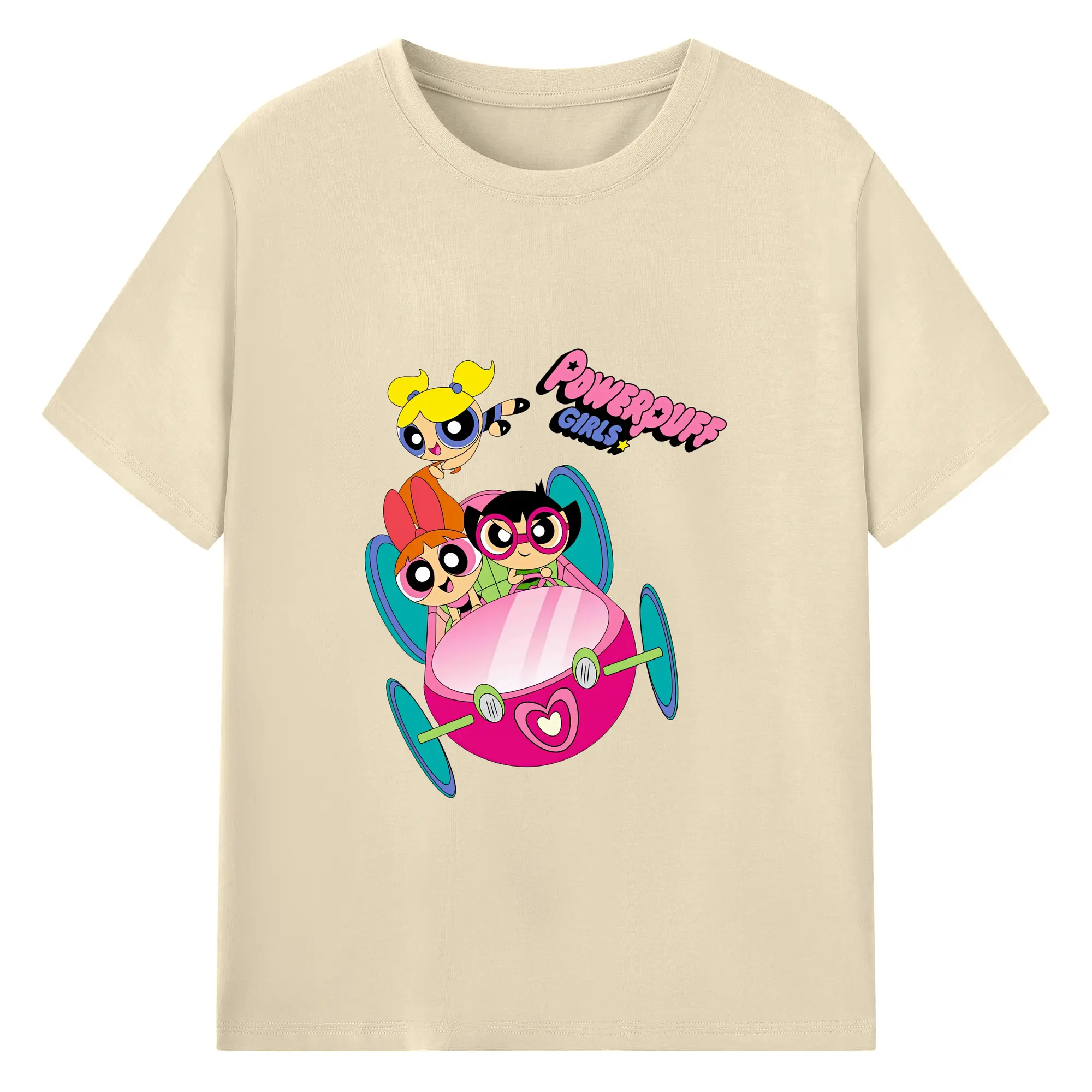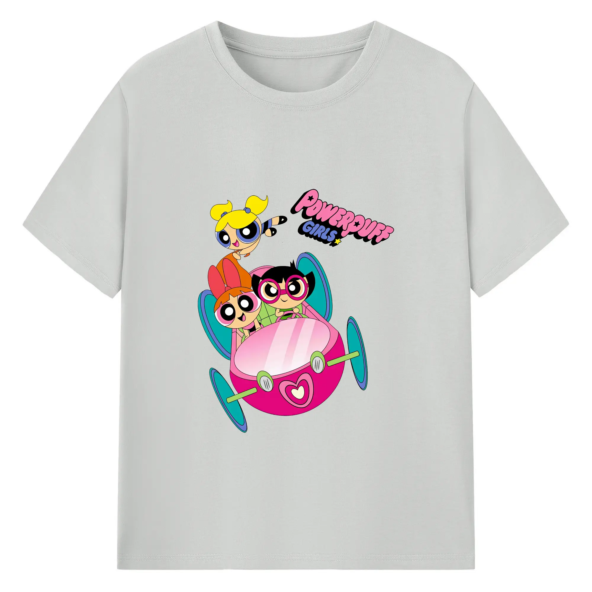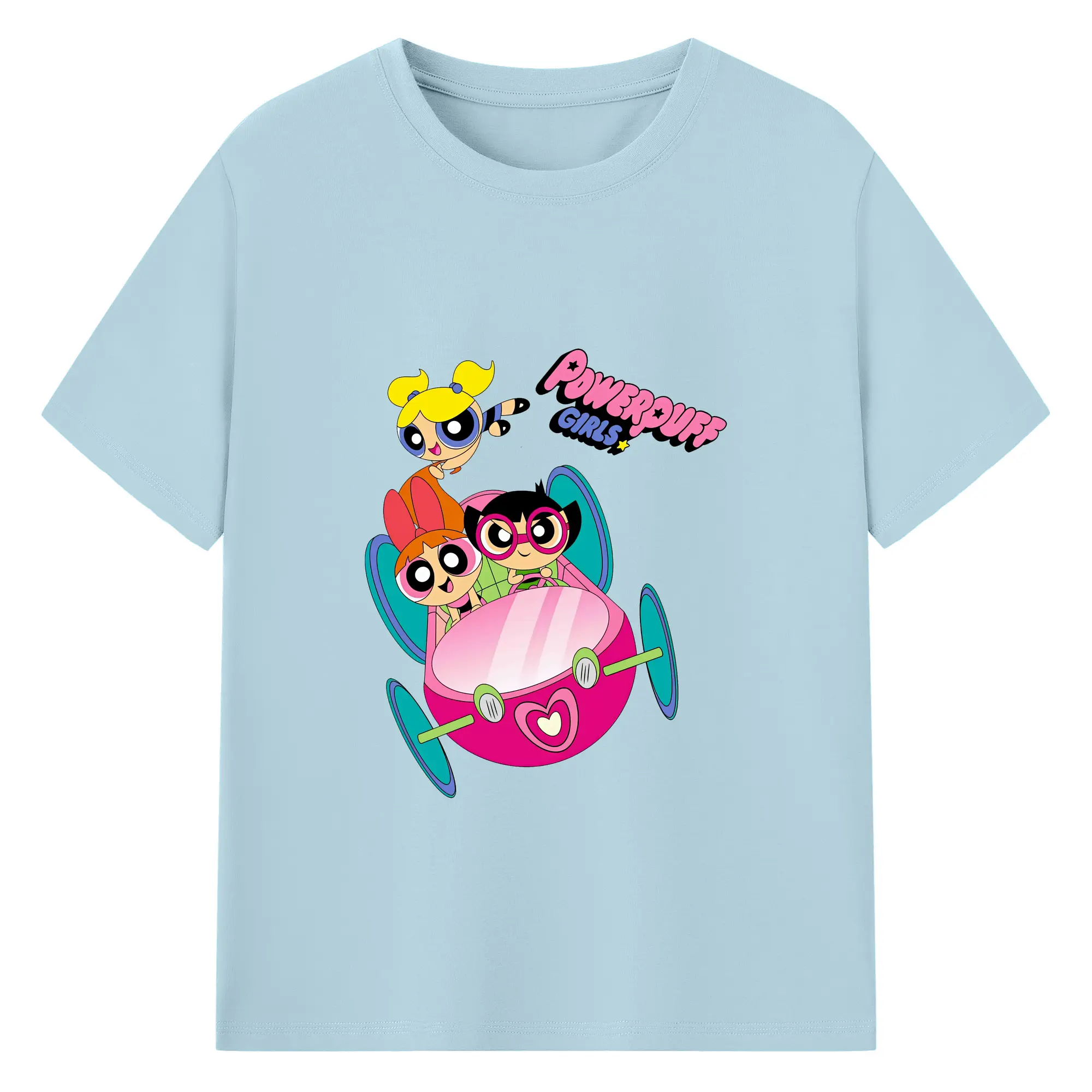 パワパフガールズ グッズ バブルス - 綿100% 半袖Tシャツ ・ バックプリント ・ 快適 通気性 ・ 日常使い 散歩 スポーツ用