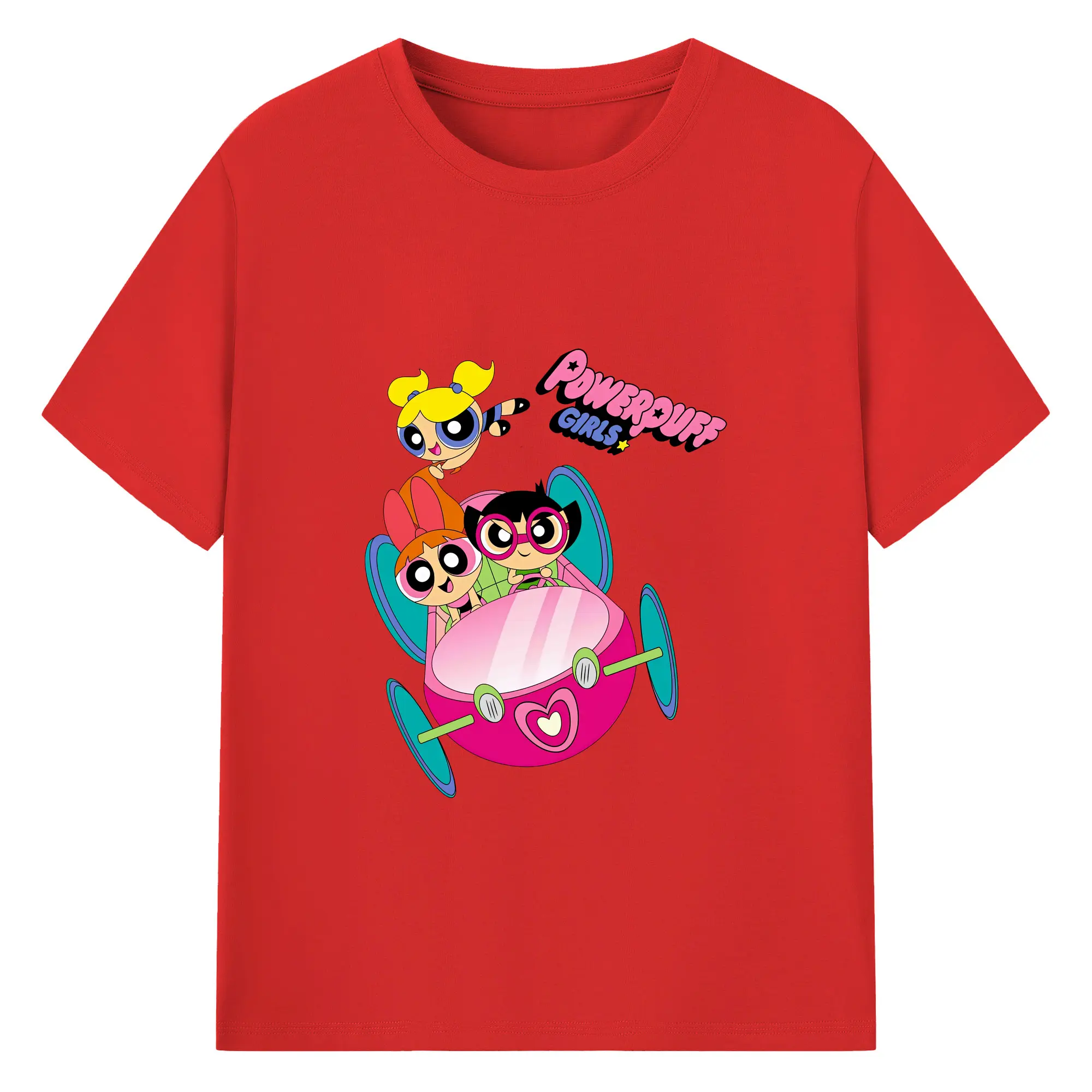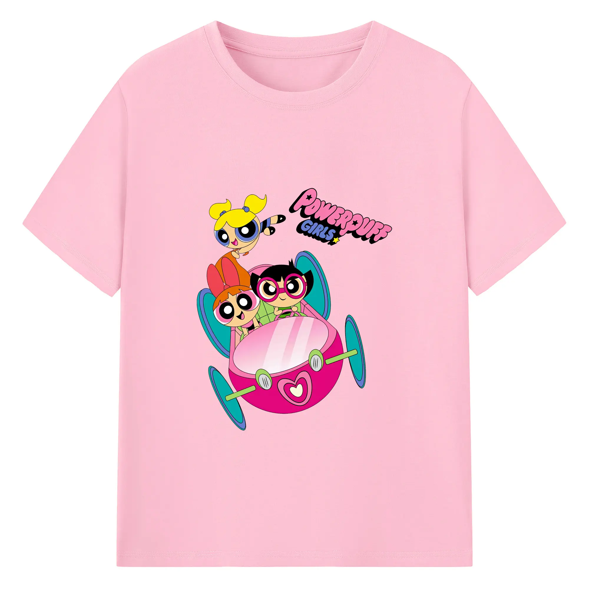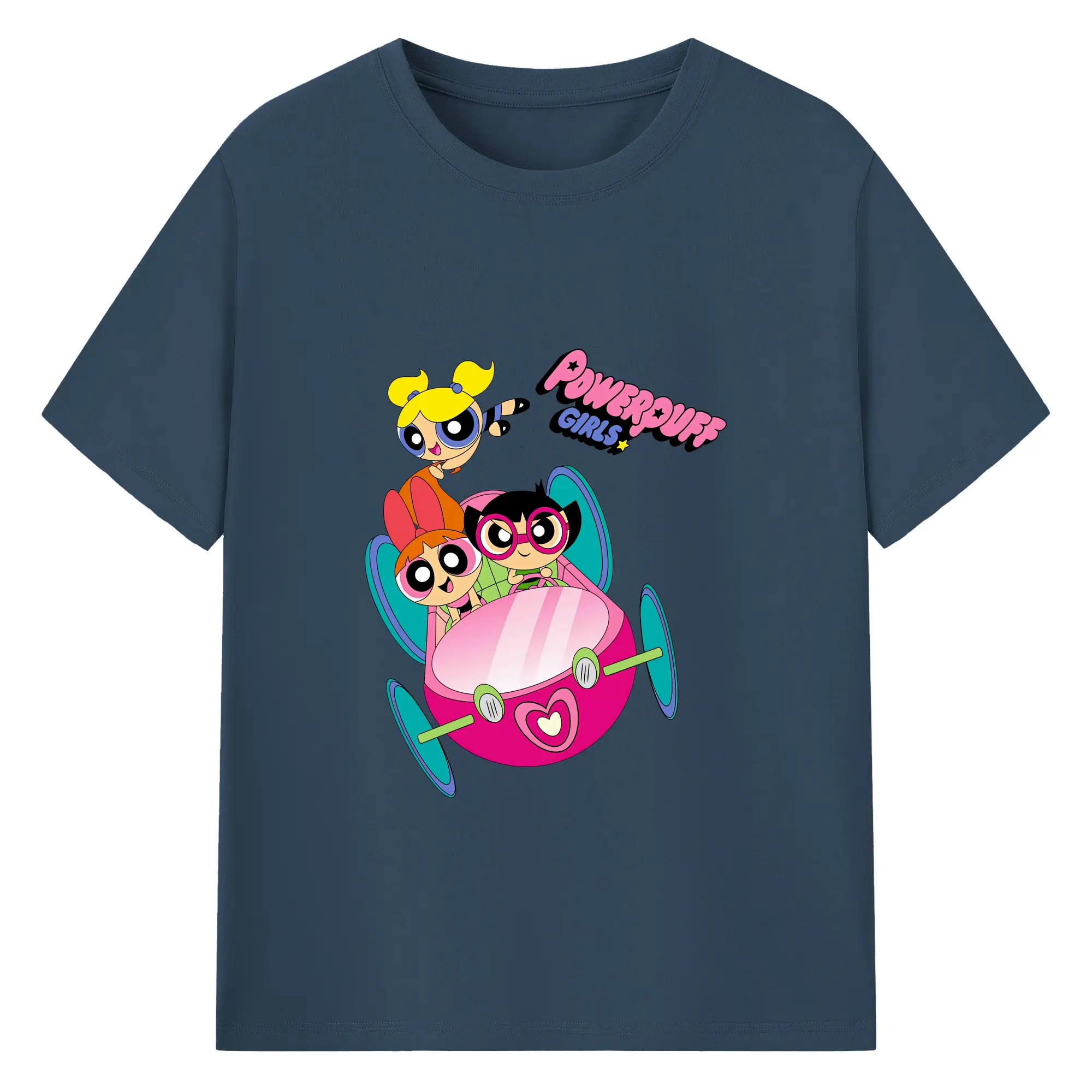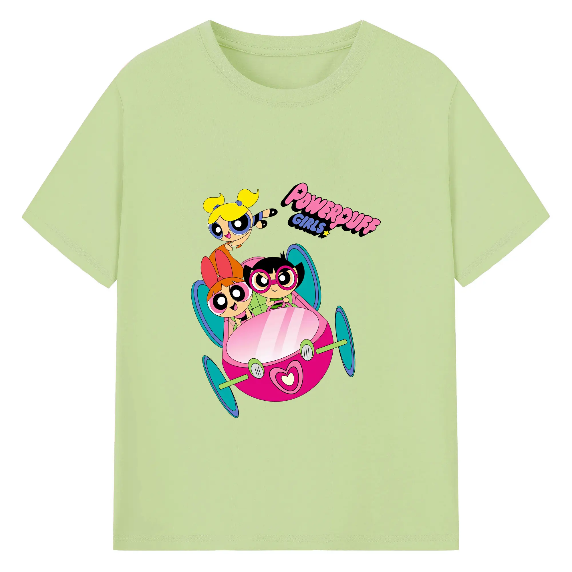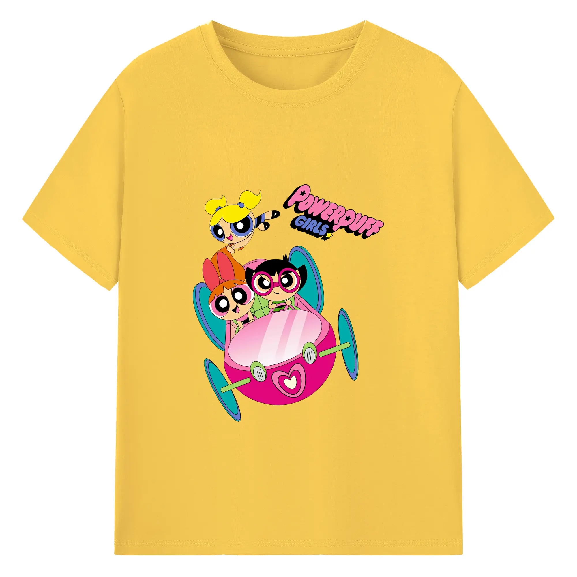 パワパフガールズ グッズ バブルス - 綿100% キッズTシャツ ・ フロントプリント ・ 快適 通気性 ・ スポーツ カジュアル 散歩用