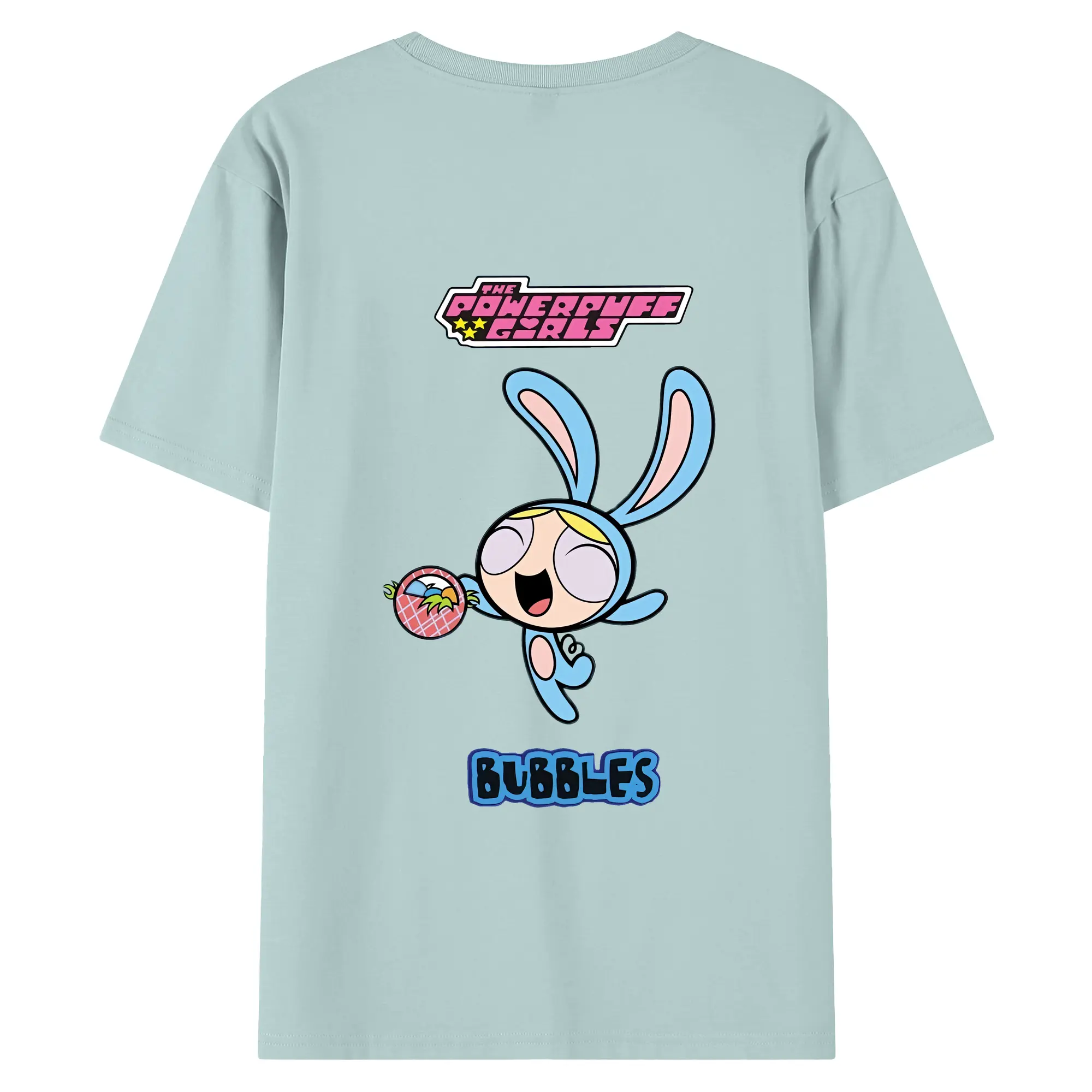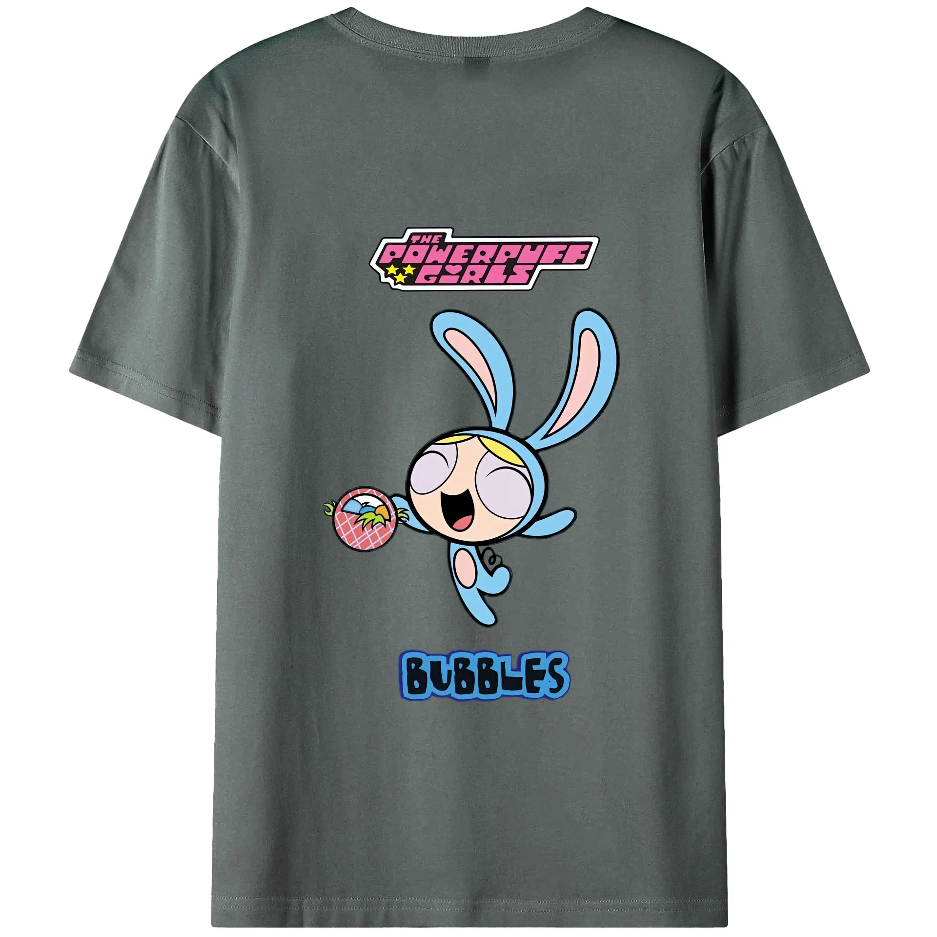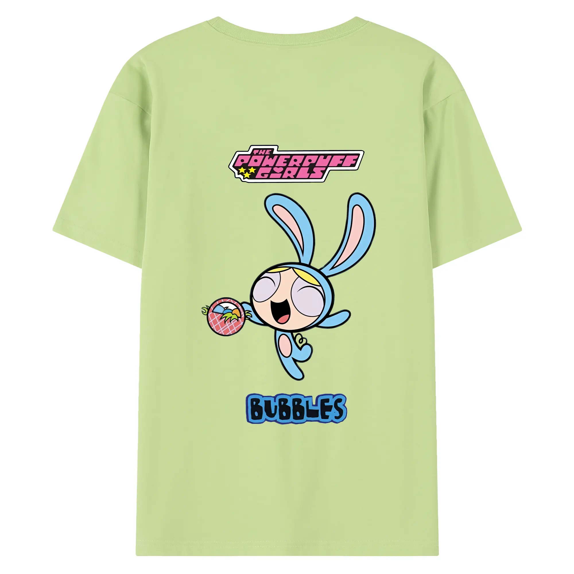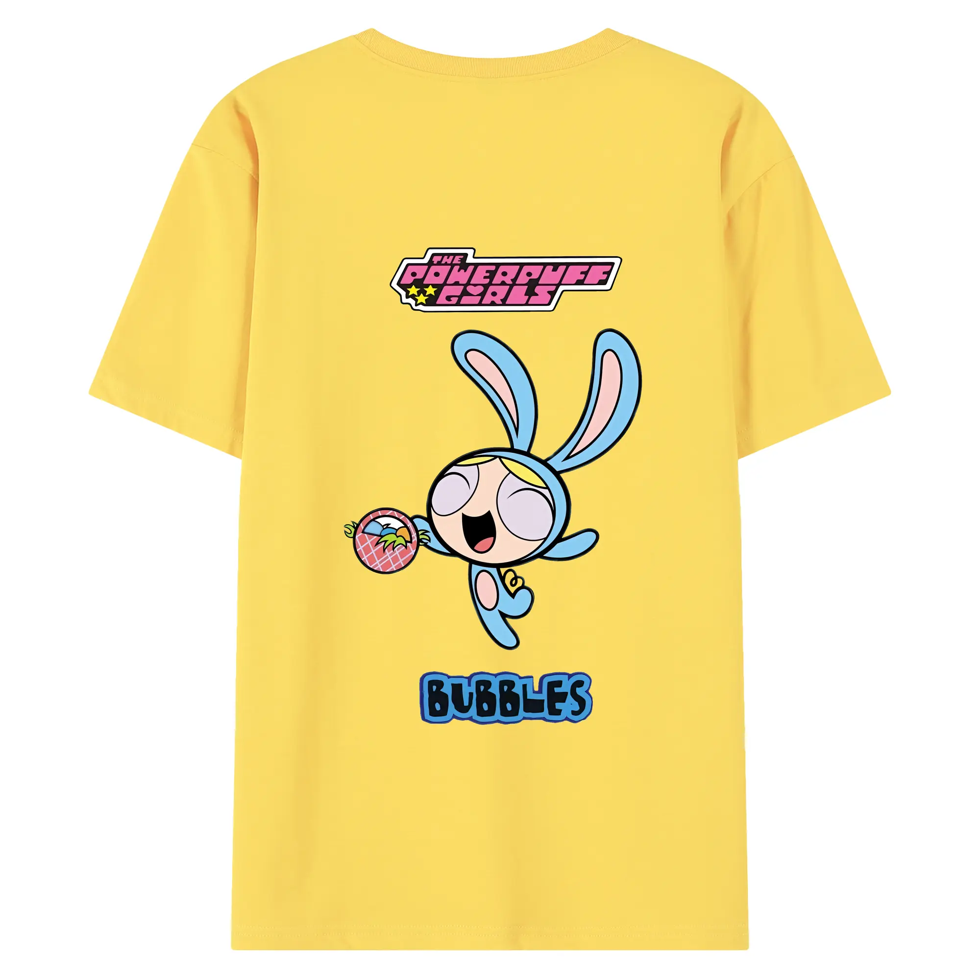 パワパフガールズ グッズ バブルス - 綿100% 半袖Tシャツ ・ フロントプリント ・ 快適 通気性 ・ 日常使い 散歩 スポーツ用