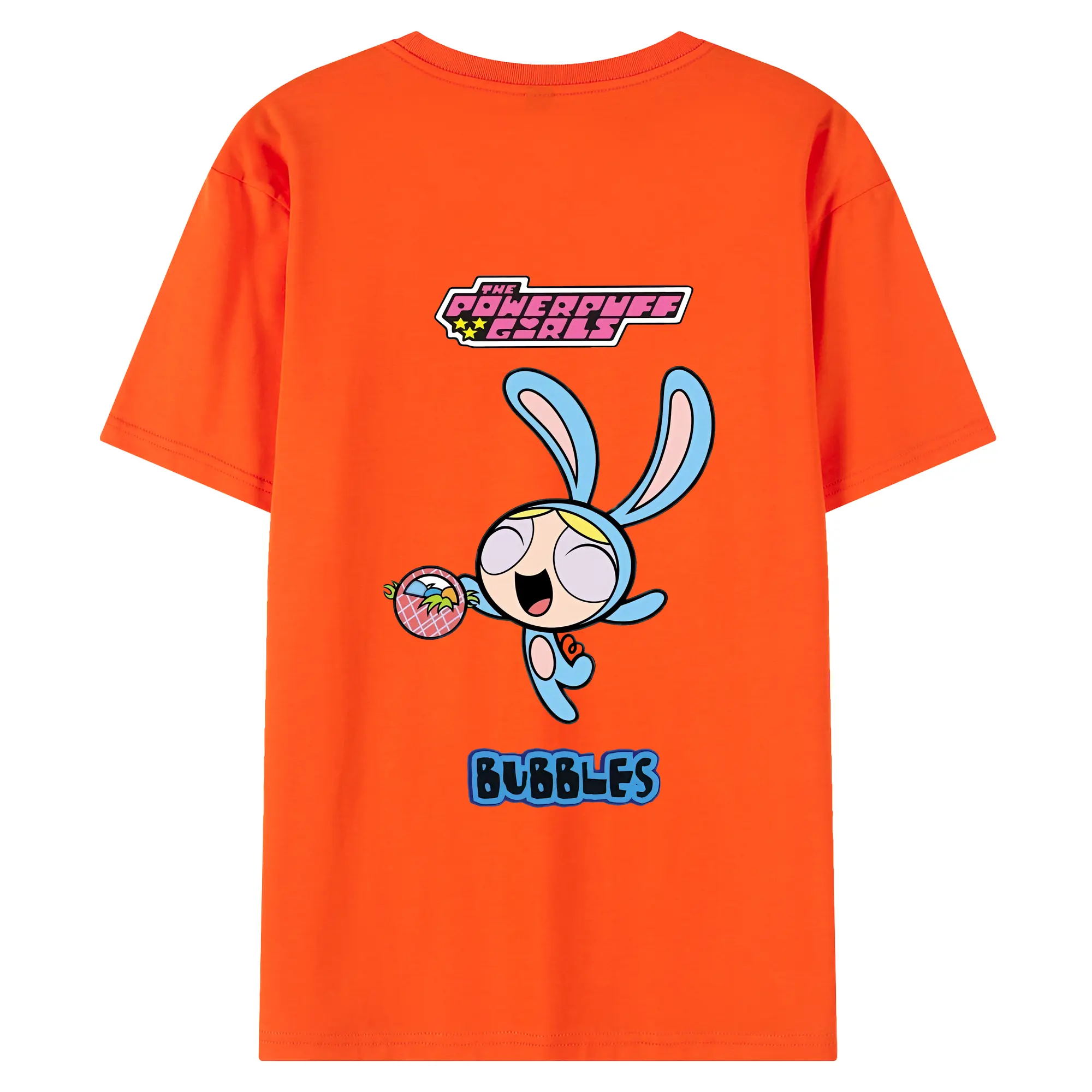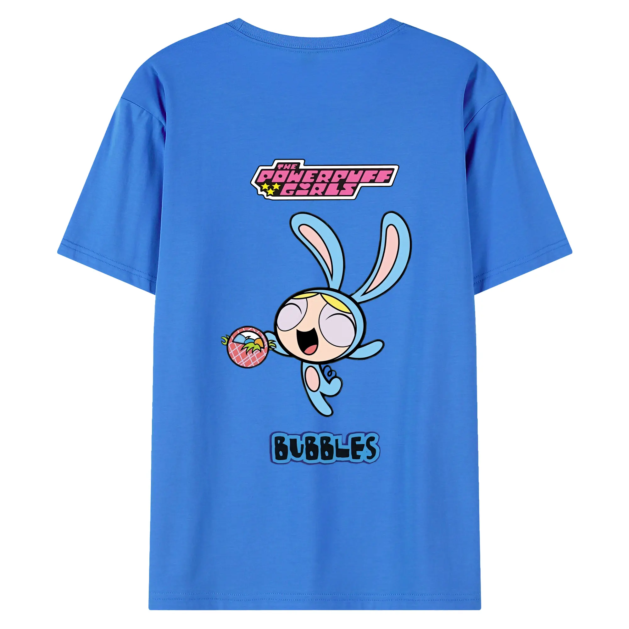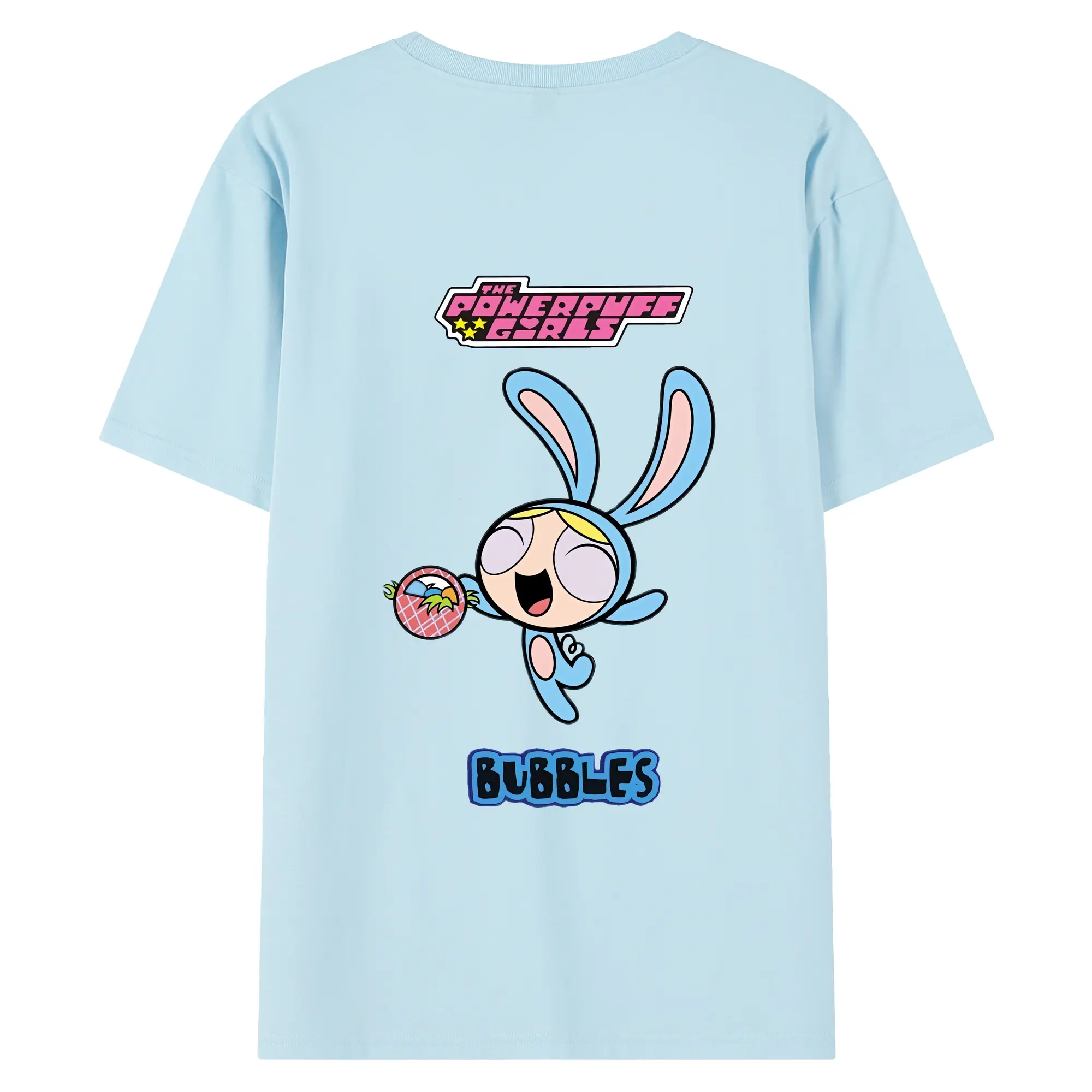 パワパフガールズ グッズ バブルス - 綿100% 半袖Tシャツ ・ フロントプリント ・ 快適 通気性 ・ 日常使い 散歩 スポーツ用