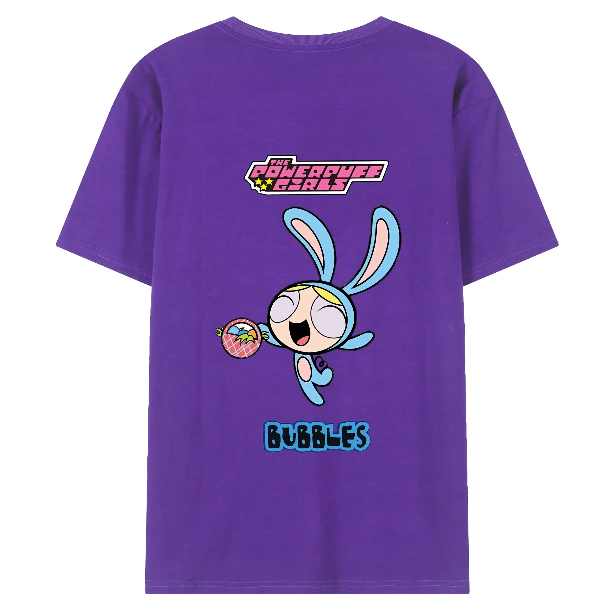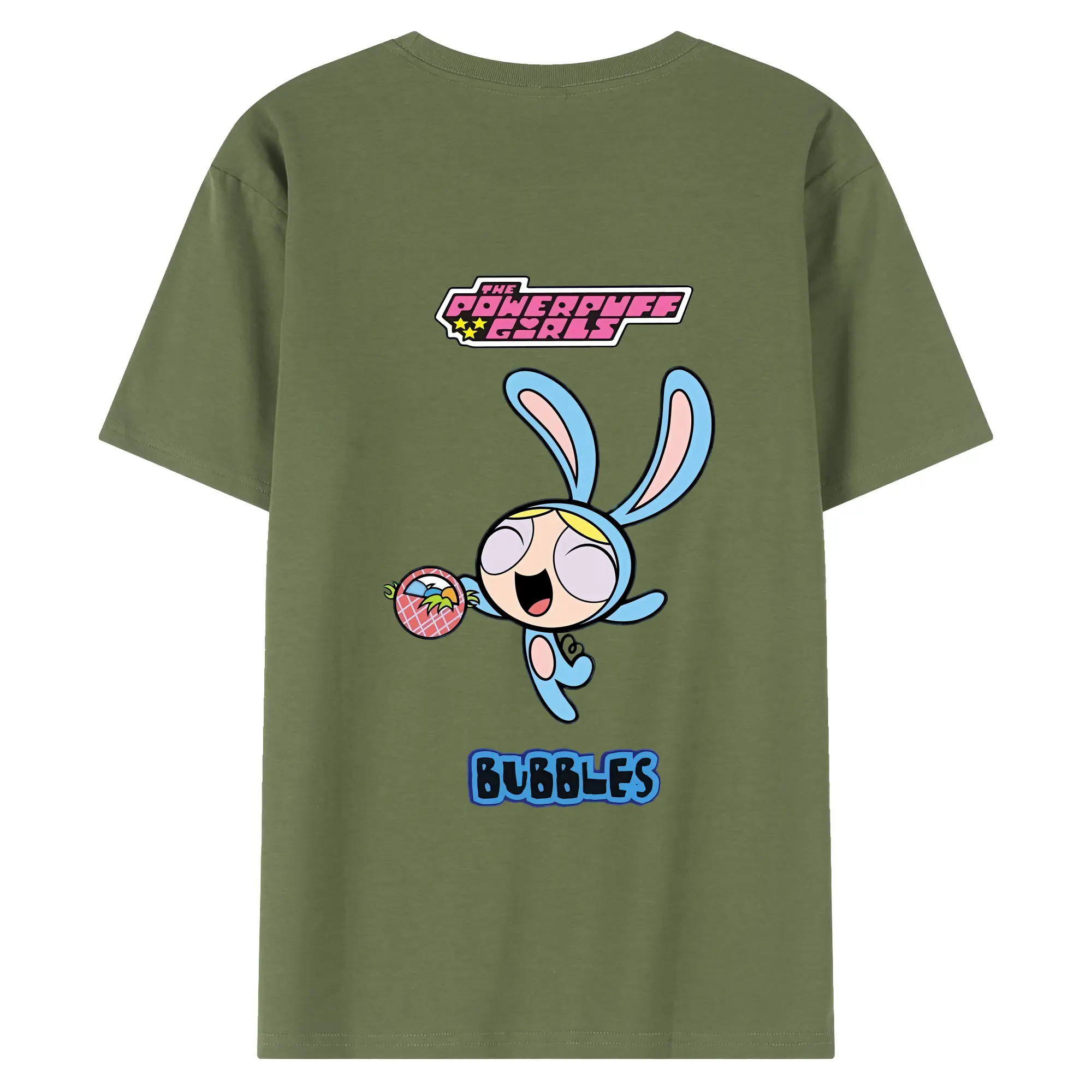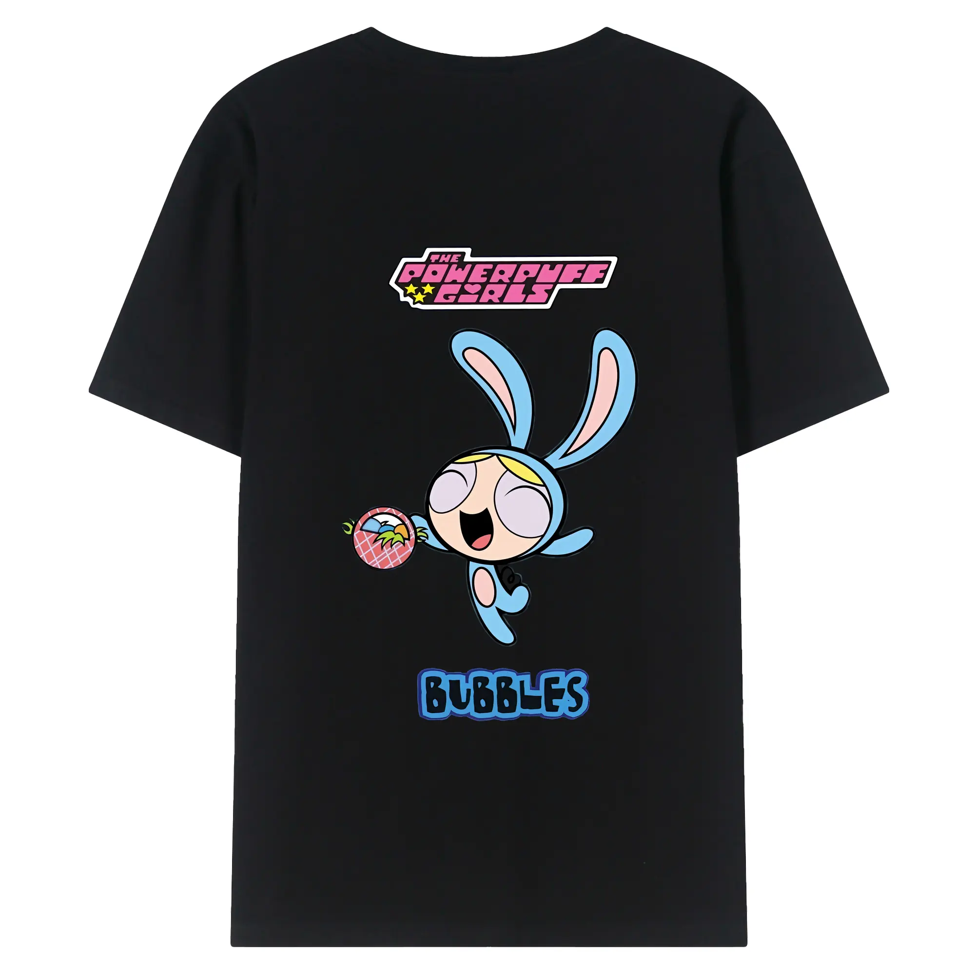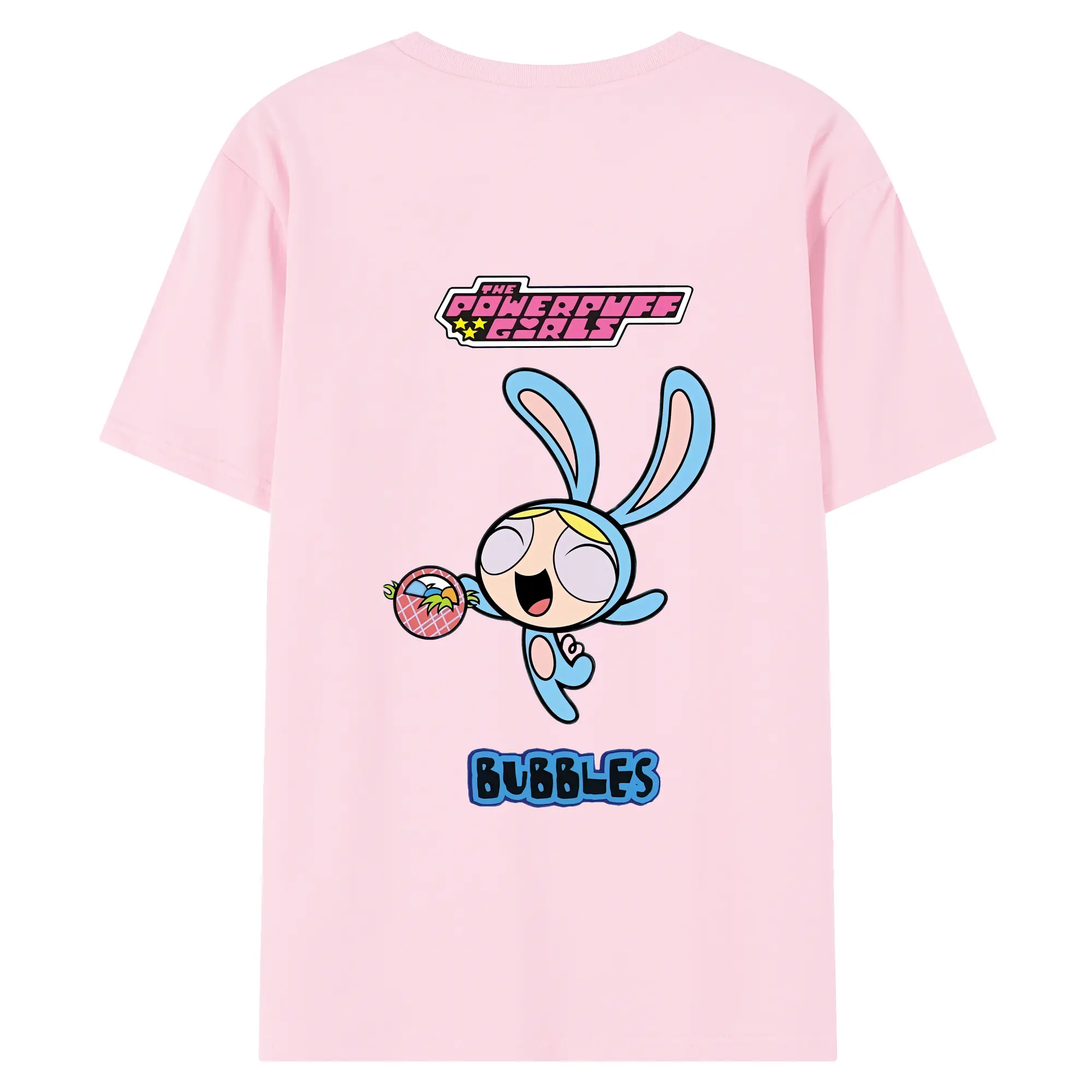 パワパフガールズ グッズ バブルス - 綿100% 半袖Tシャツ ・ フロントプリント ・ 快適 通気性 ・ 日常使い 散歩 スポーツ用