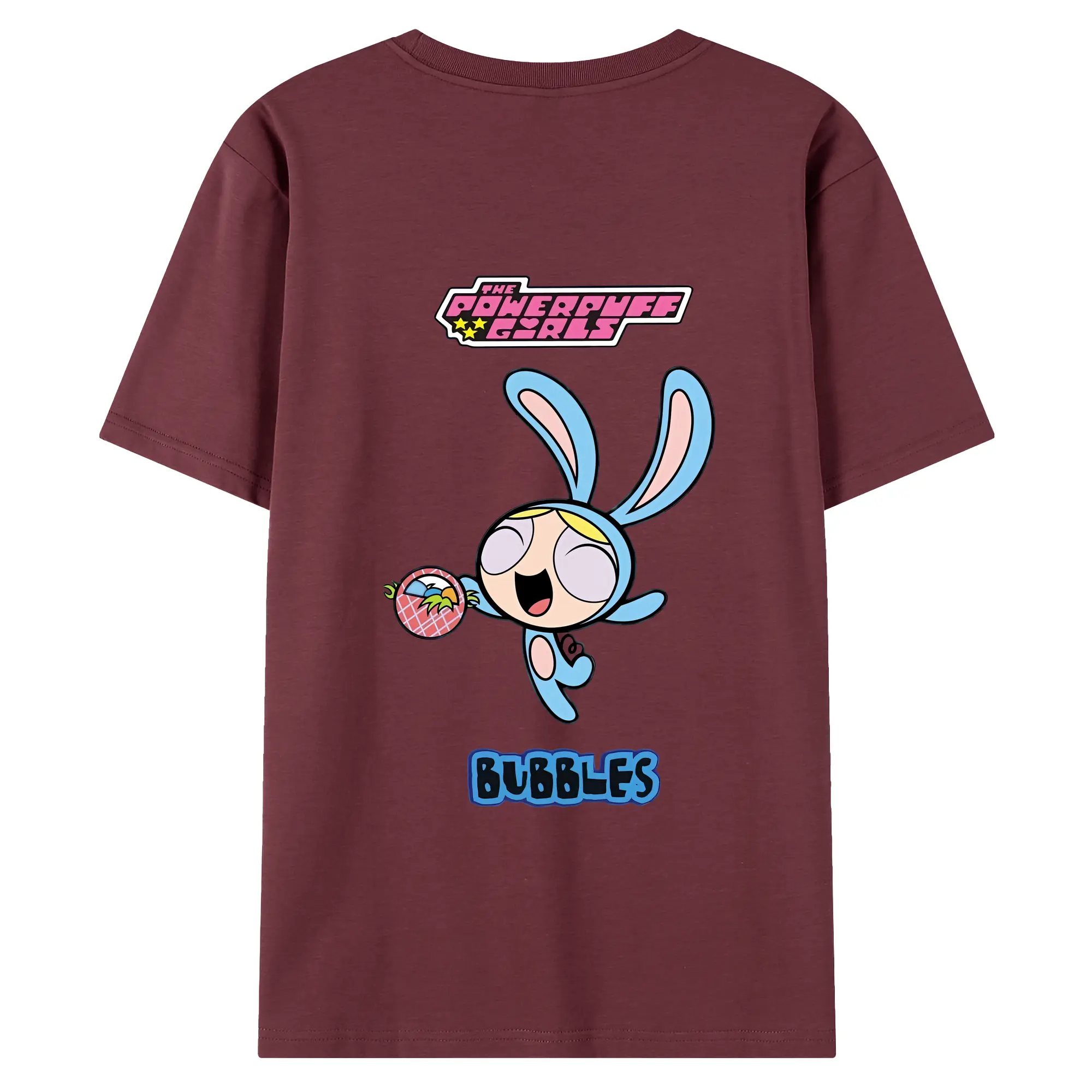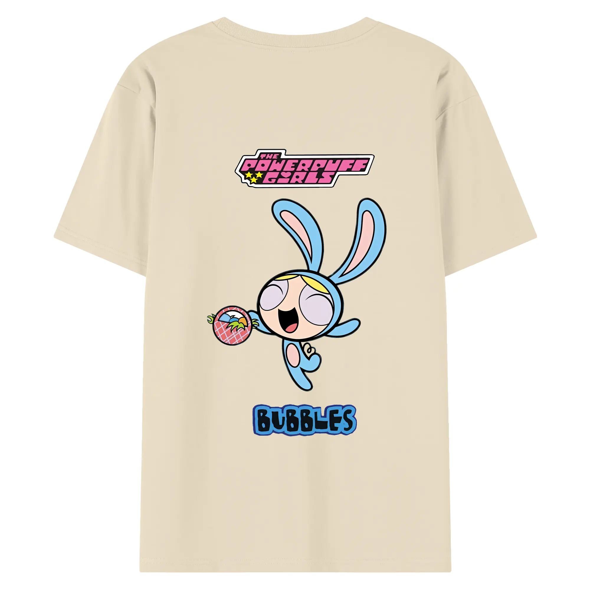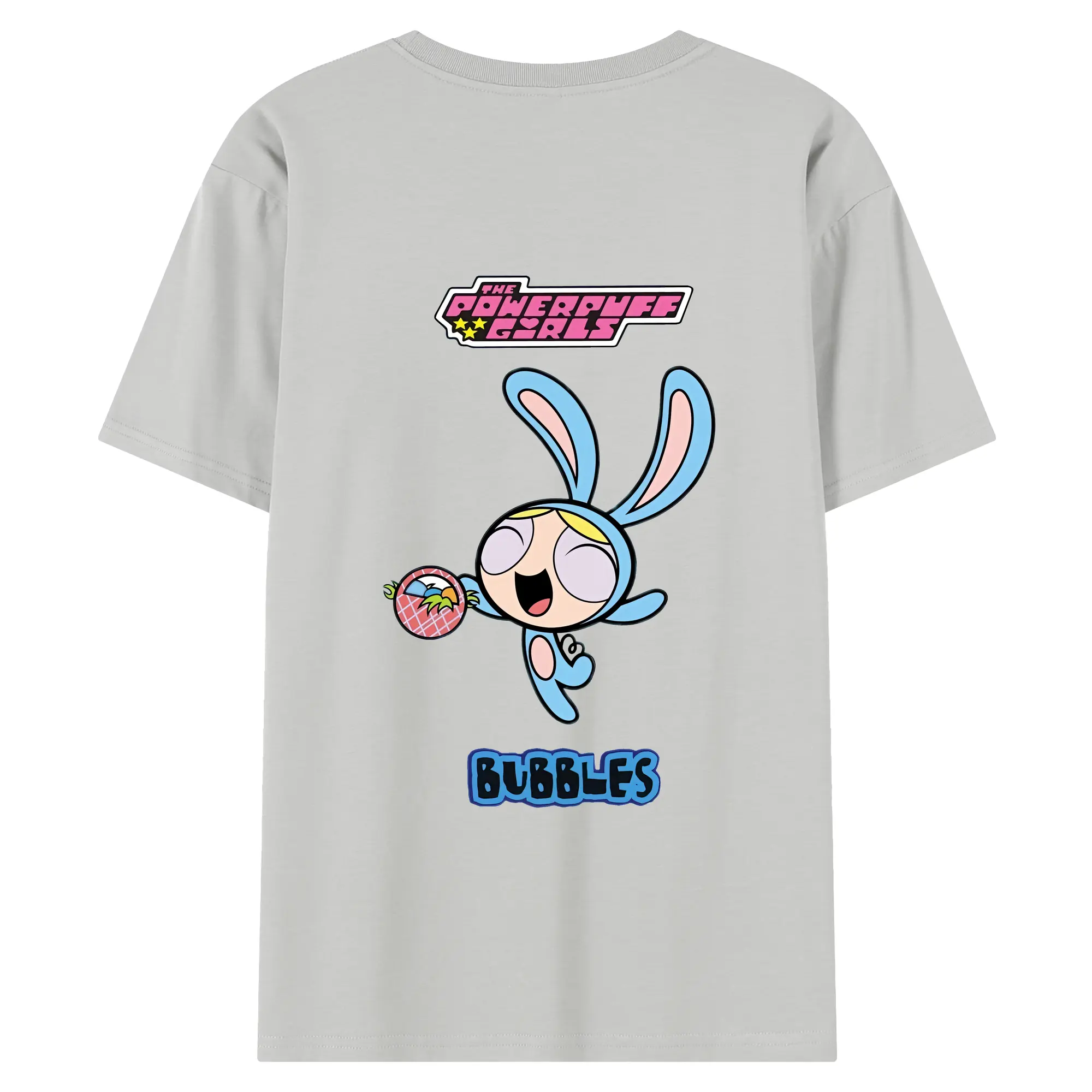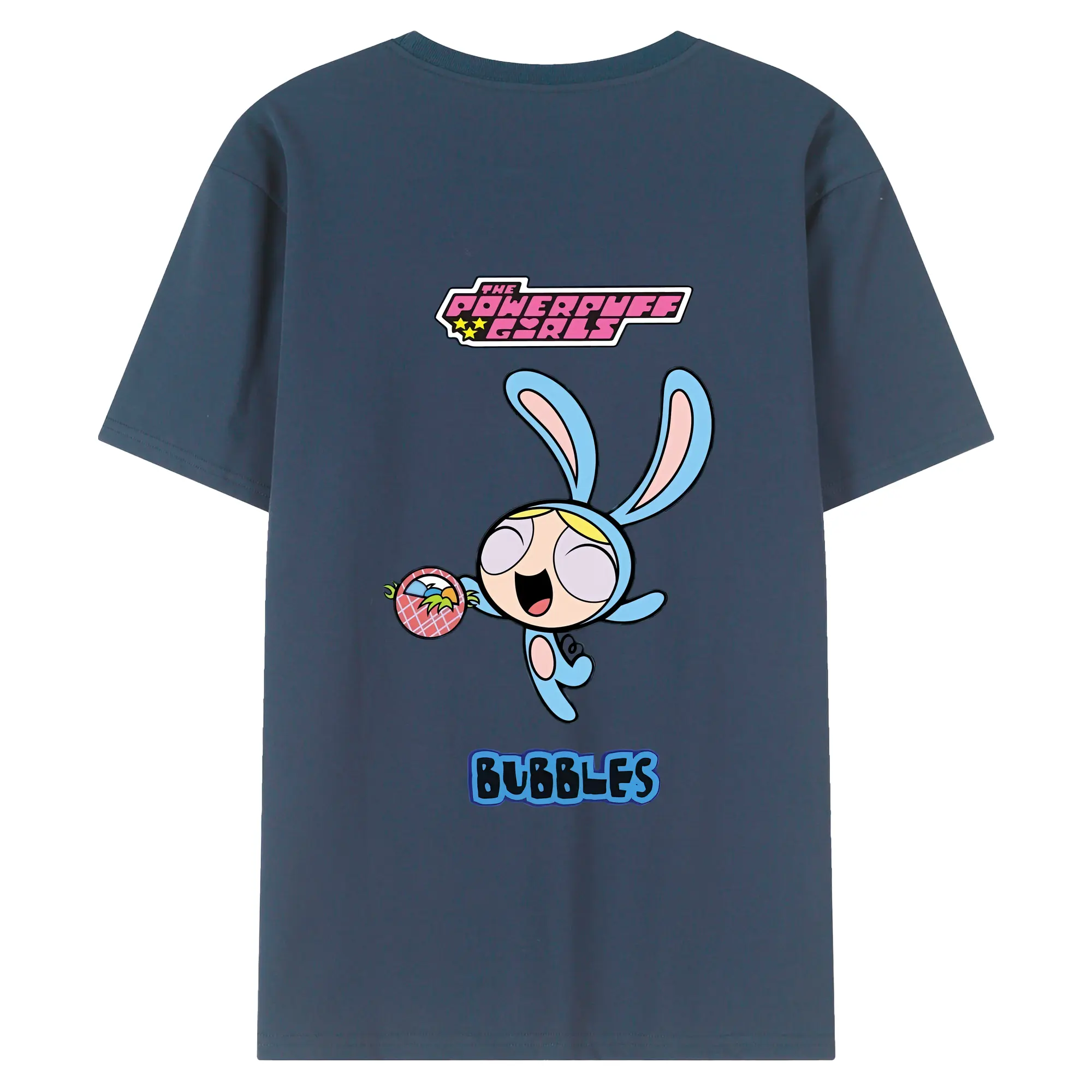 パワパフガールズ グッズ バブルス - 綿100% ヴィンテージ風 半袖Tシャツ ・ 背面プリント ・ 柔らか肌触り ・ 通気性 快適 ・ スポーツ カジュアル 外出用