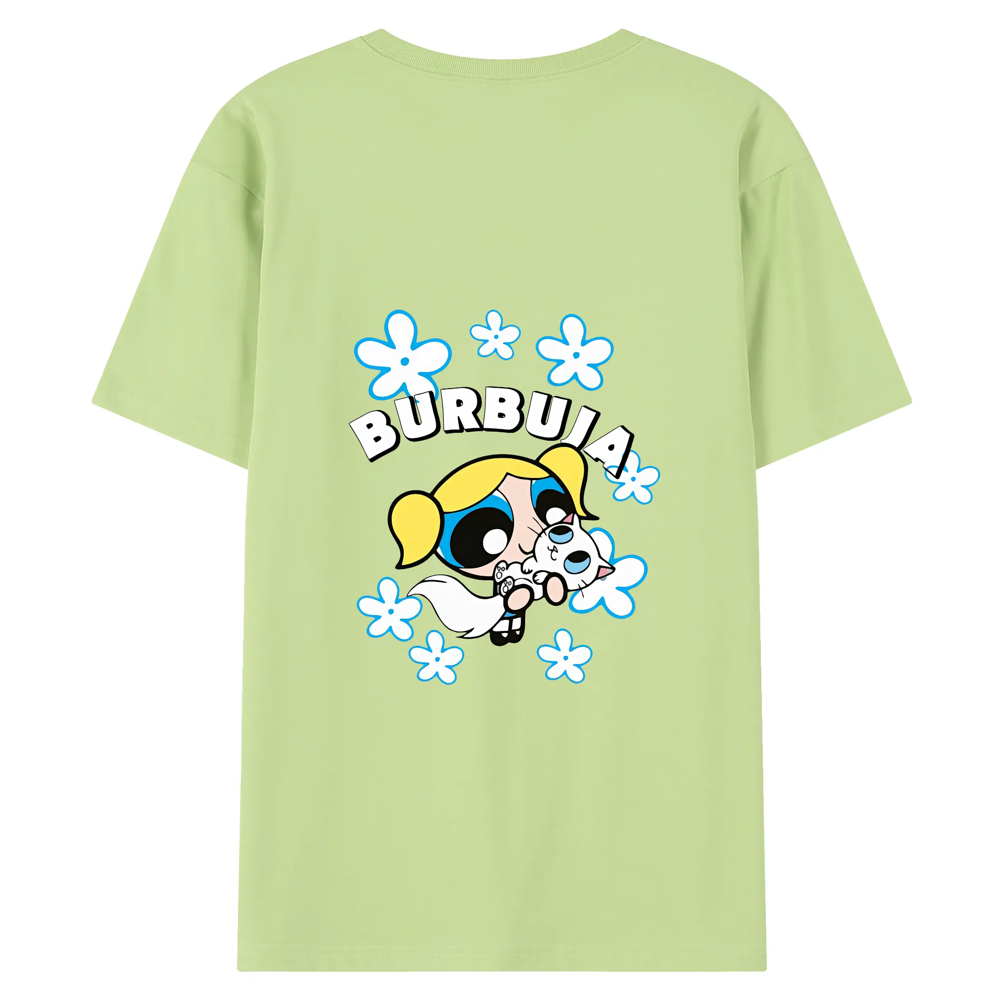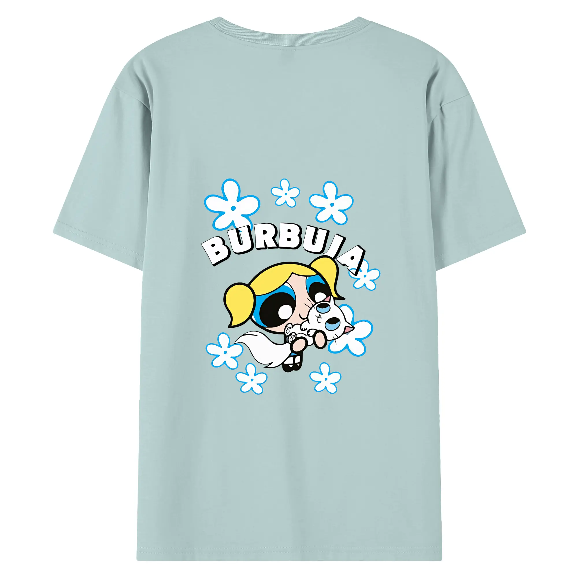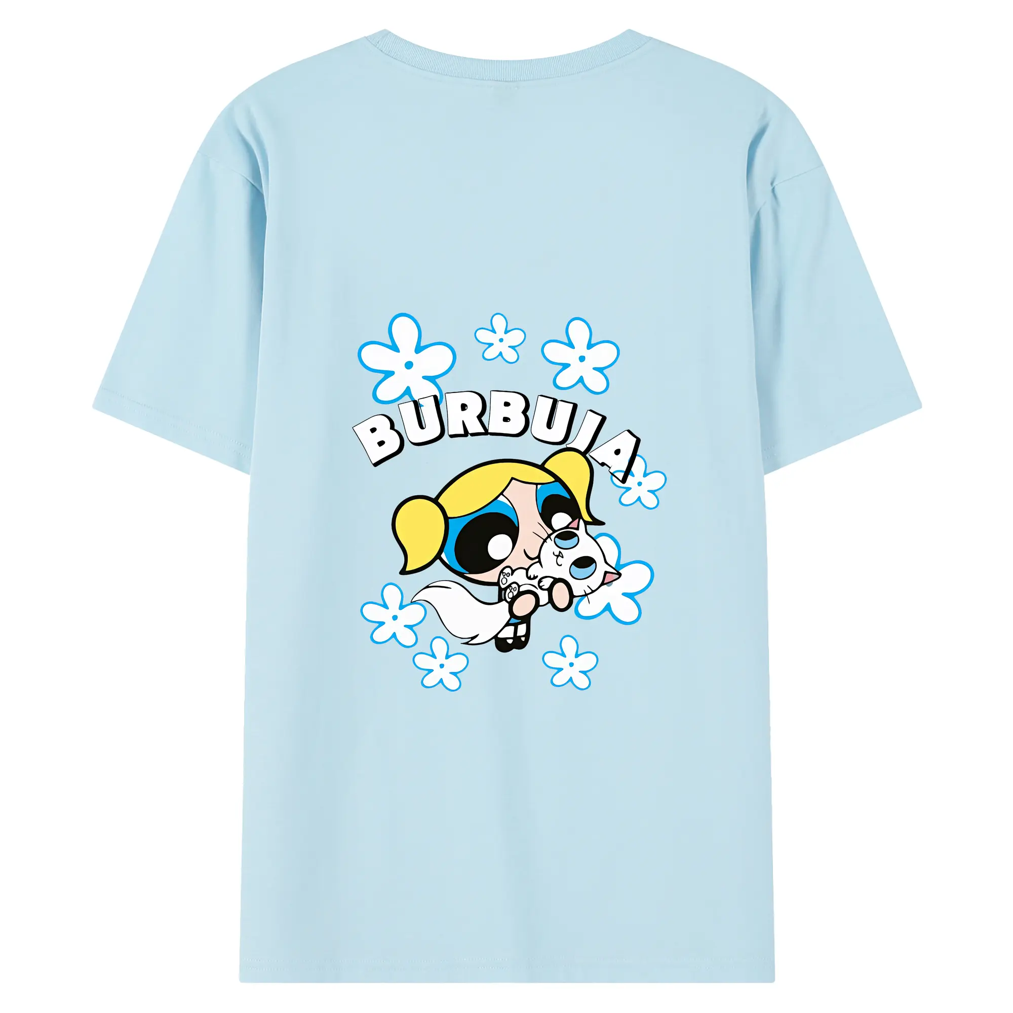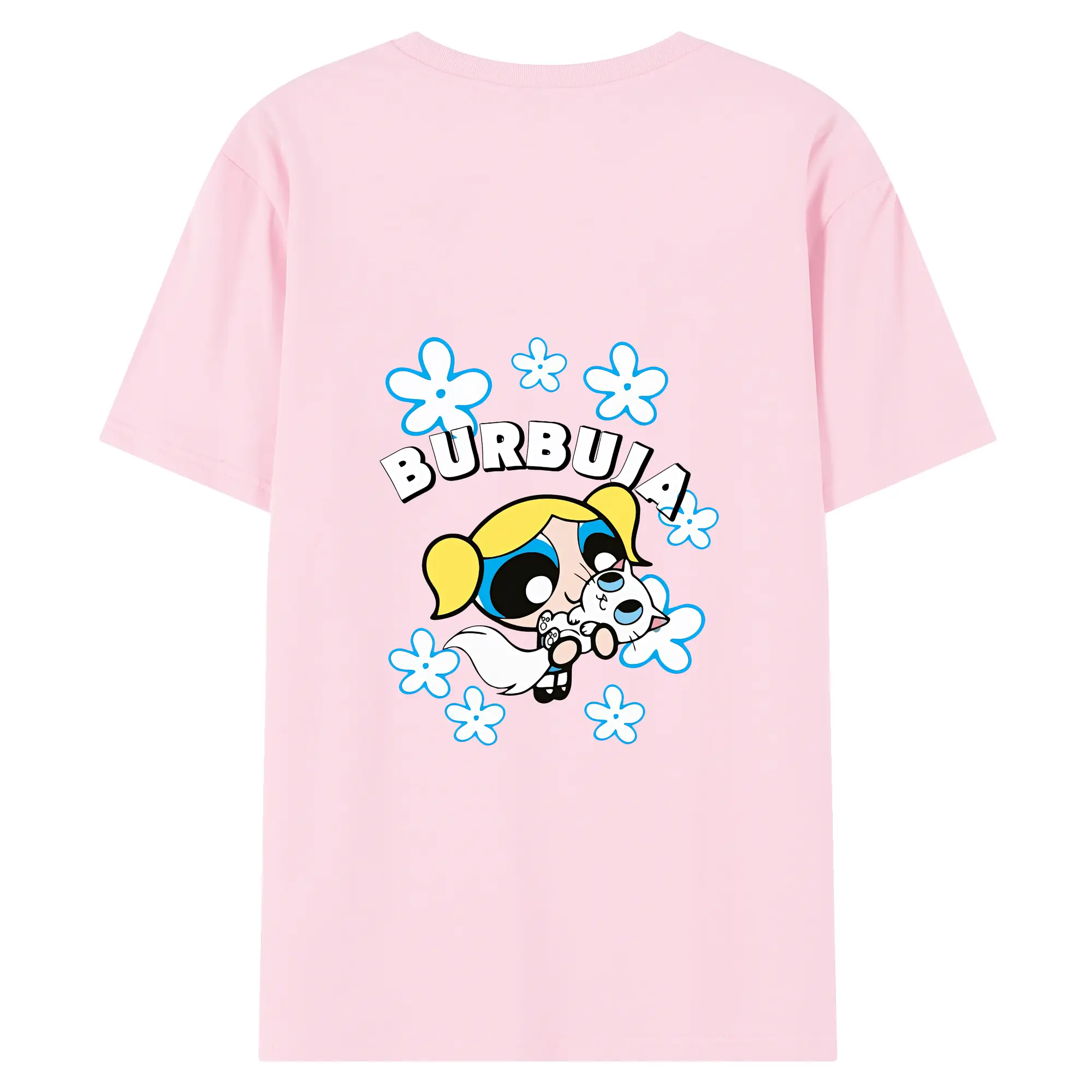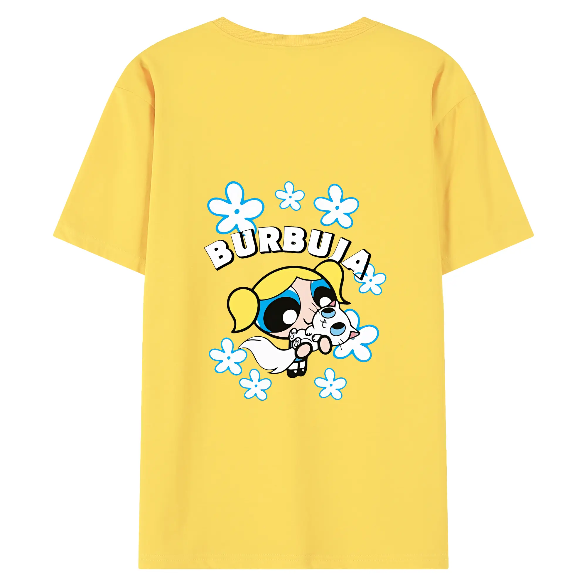 パワパフガールズ グッズ バブルス - 綿100% 半袖Tシャツ ・ フロントプリント ・ 快適 通気性 ・ 日常使い 散歩 スポーツ用