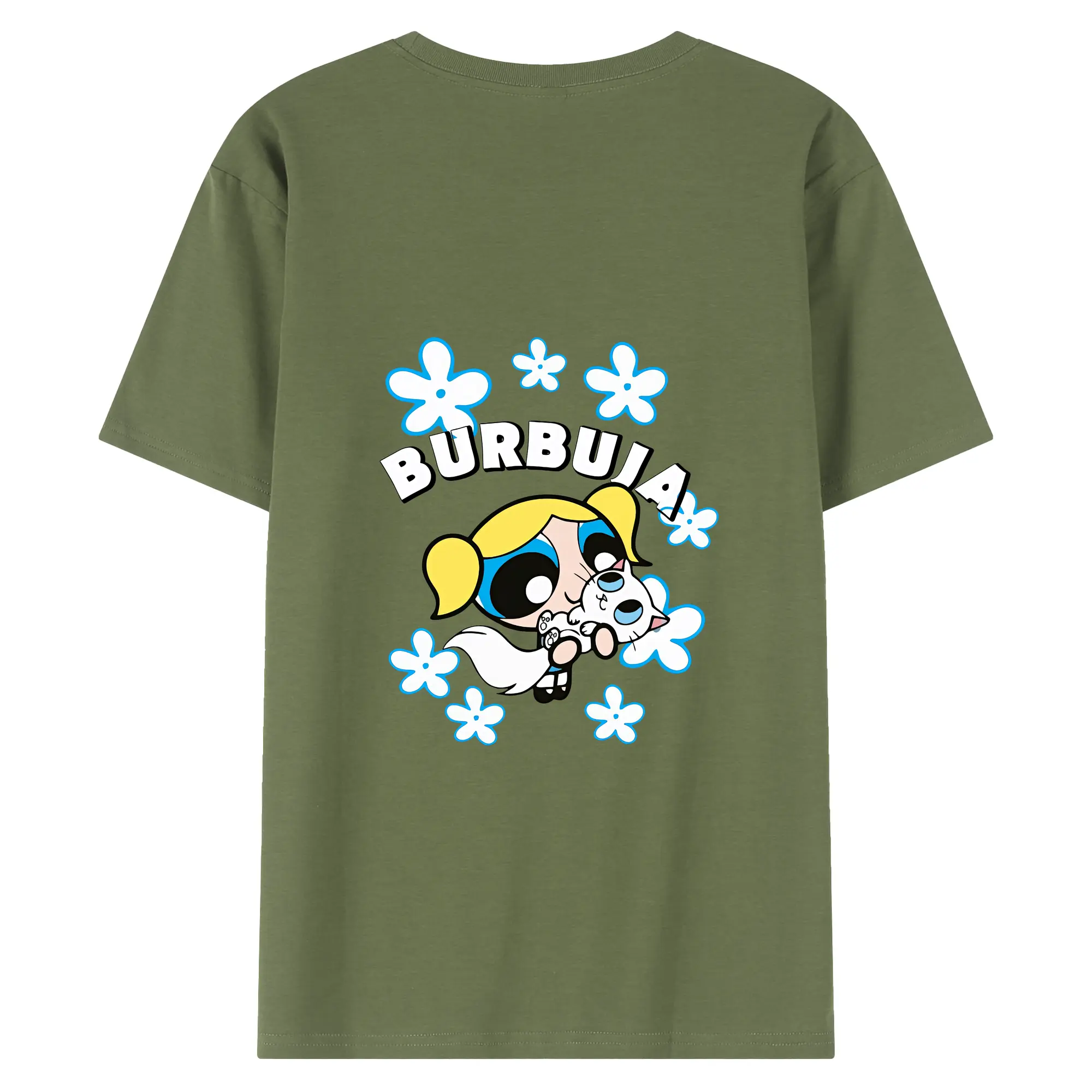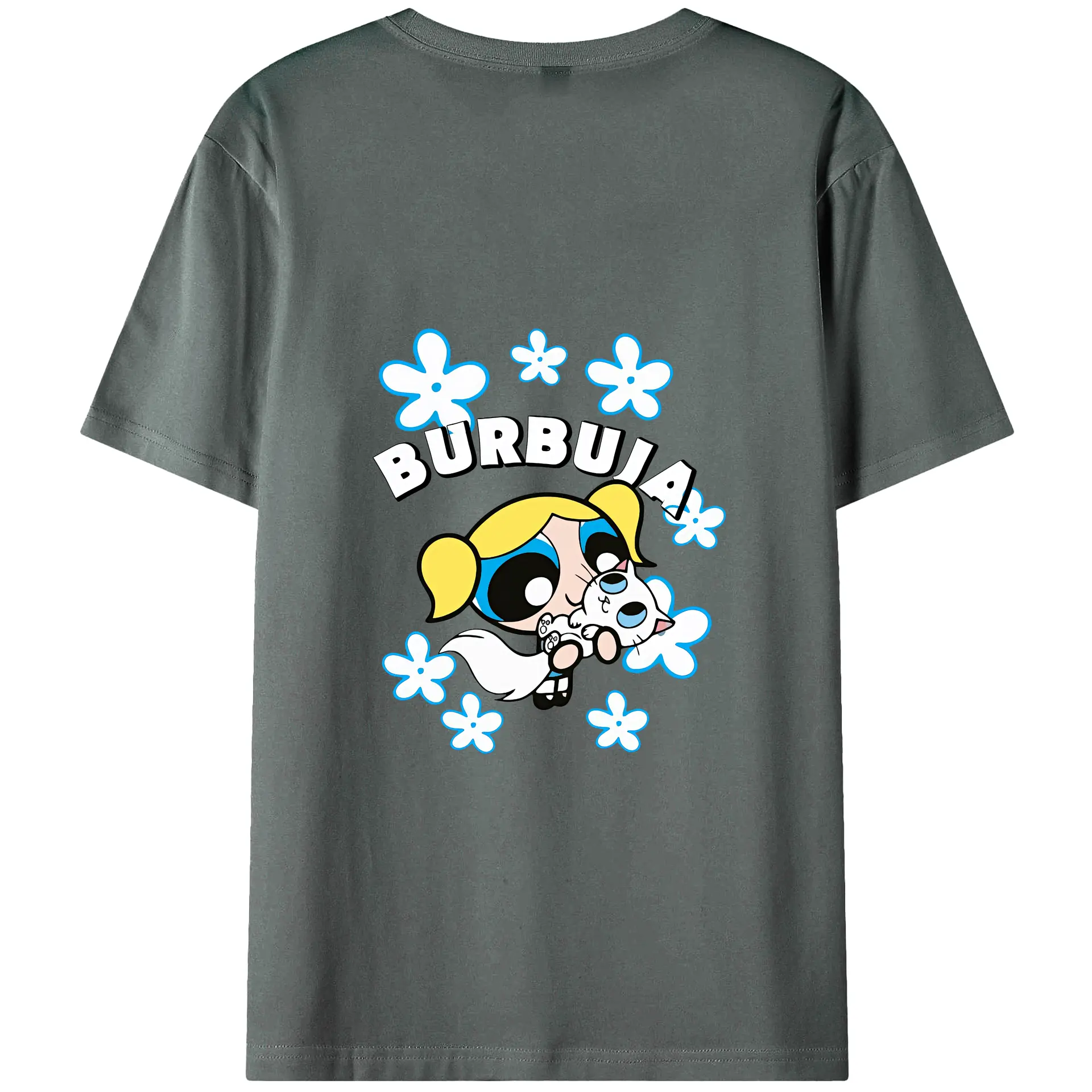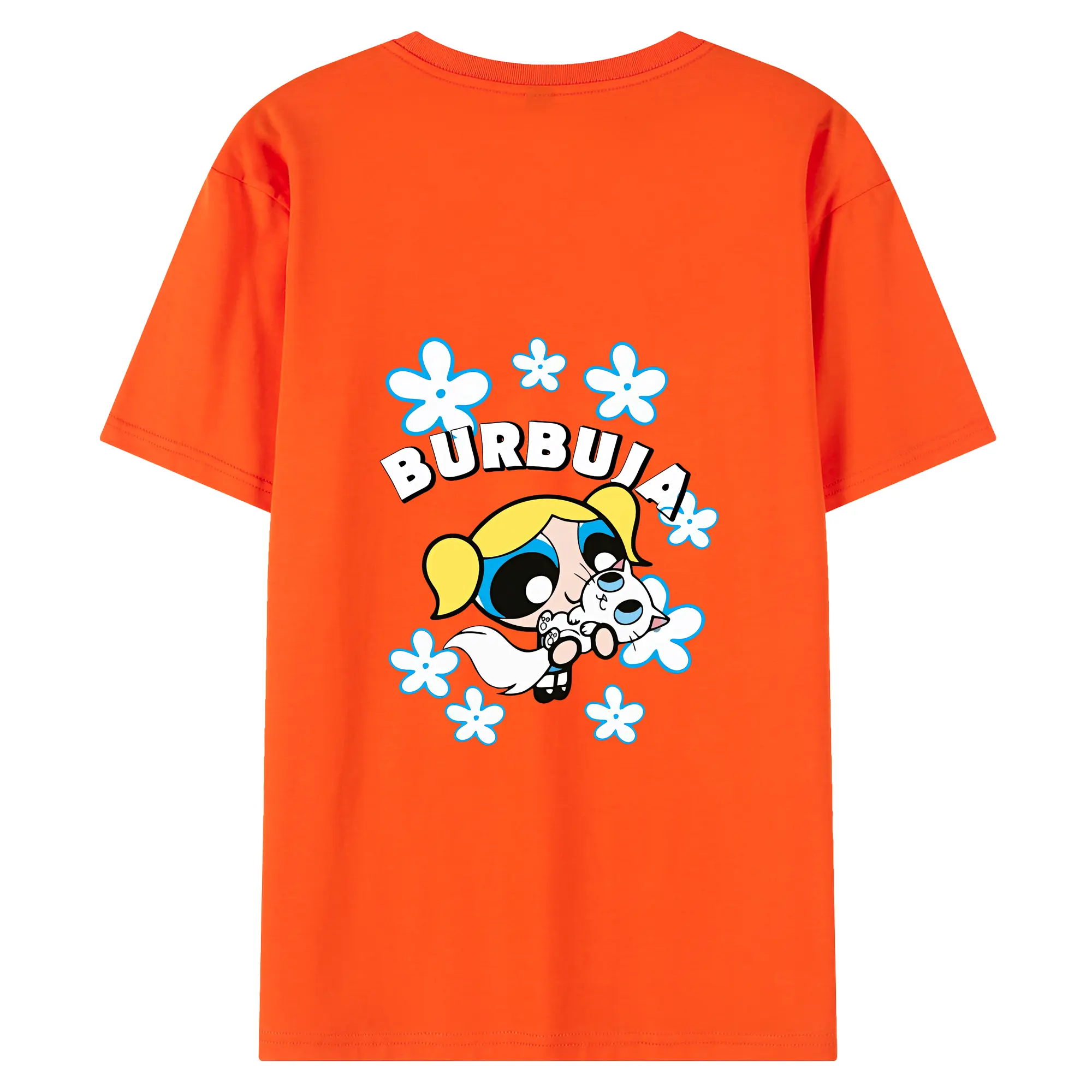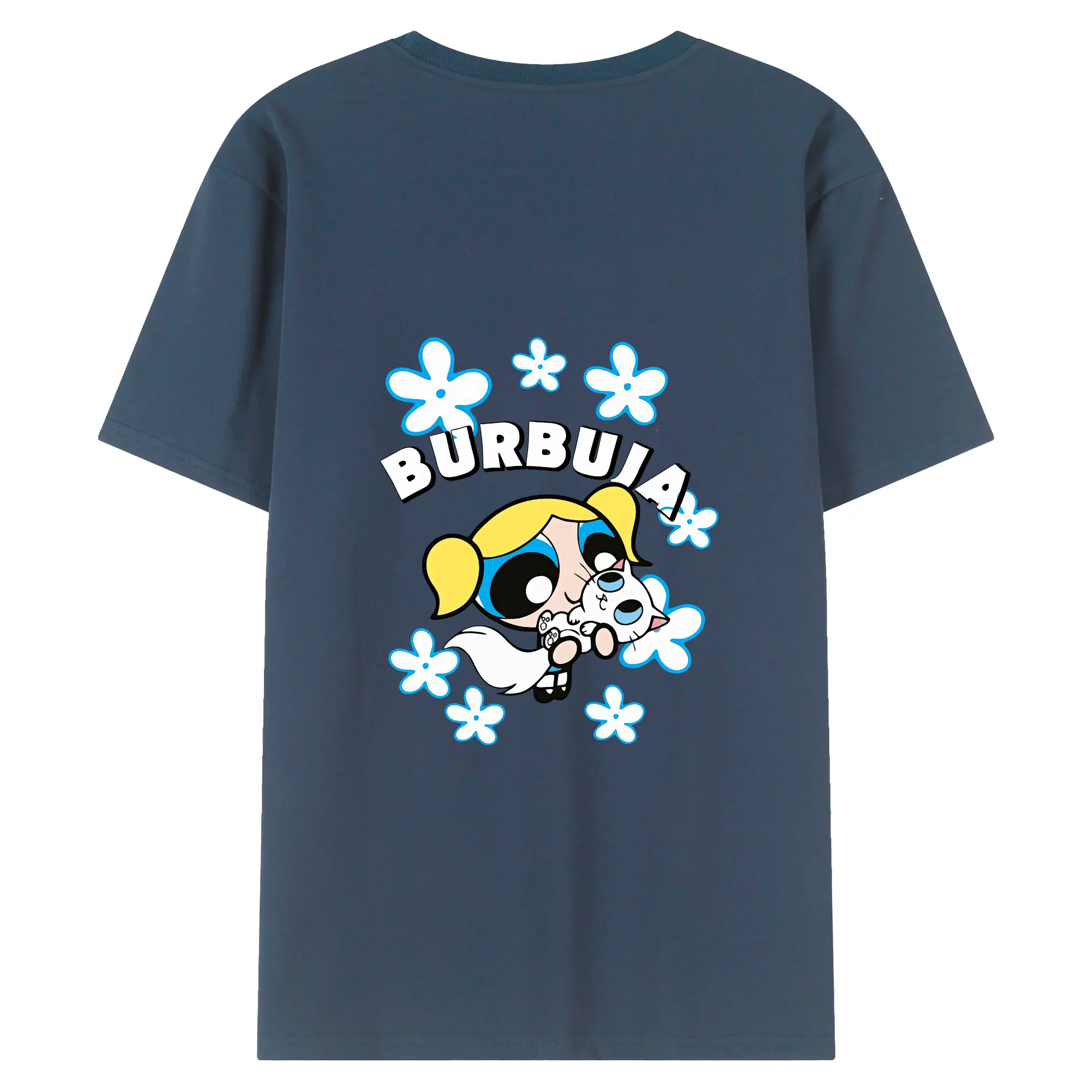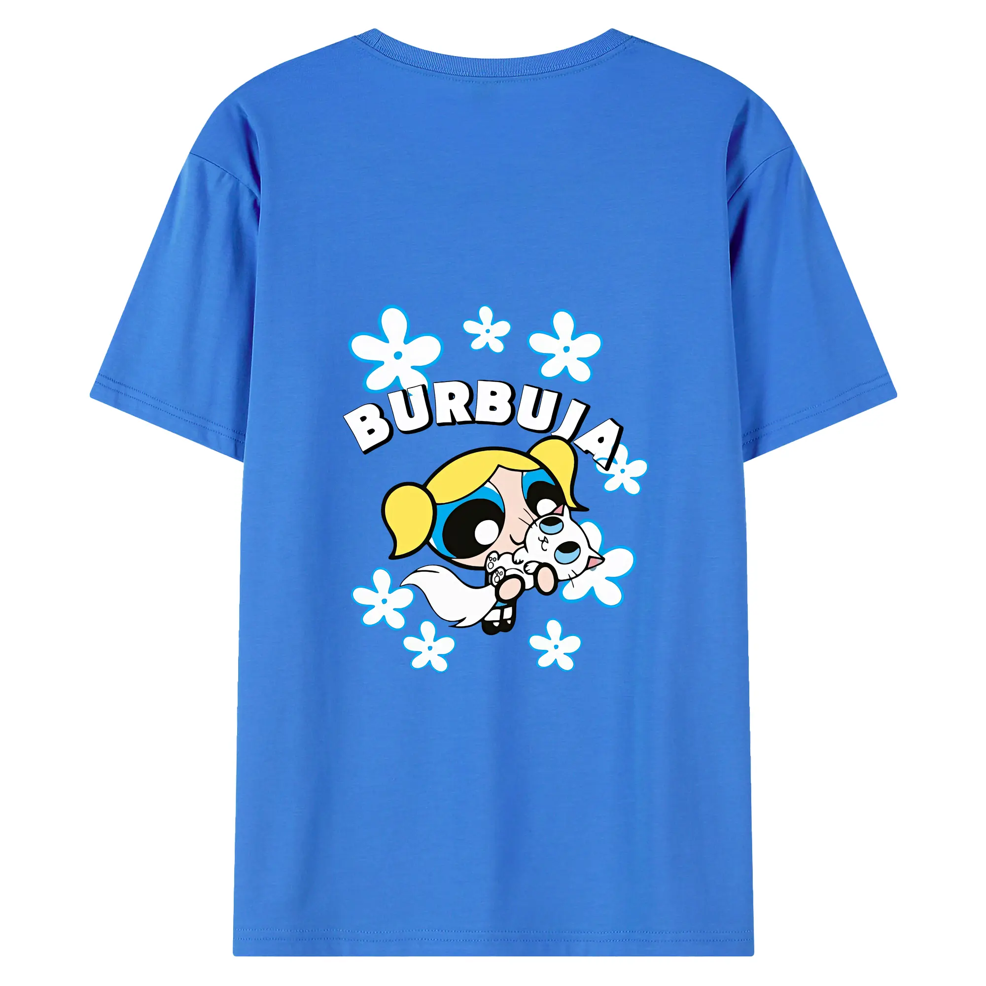 パワパフガールズ グッズ バブルス - 綿100% 半袖Tシャツ ・ フロントプリント ・ 快適 通気性 ・ 日常使い 散歩 スポーツ用