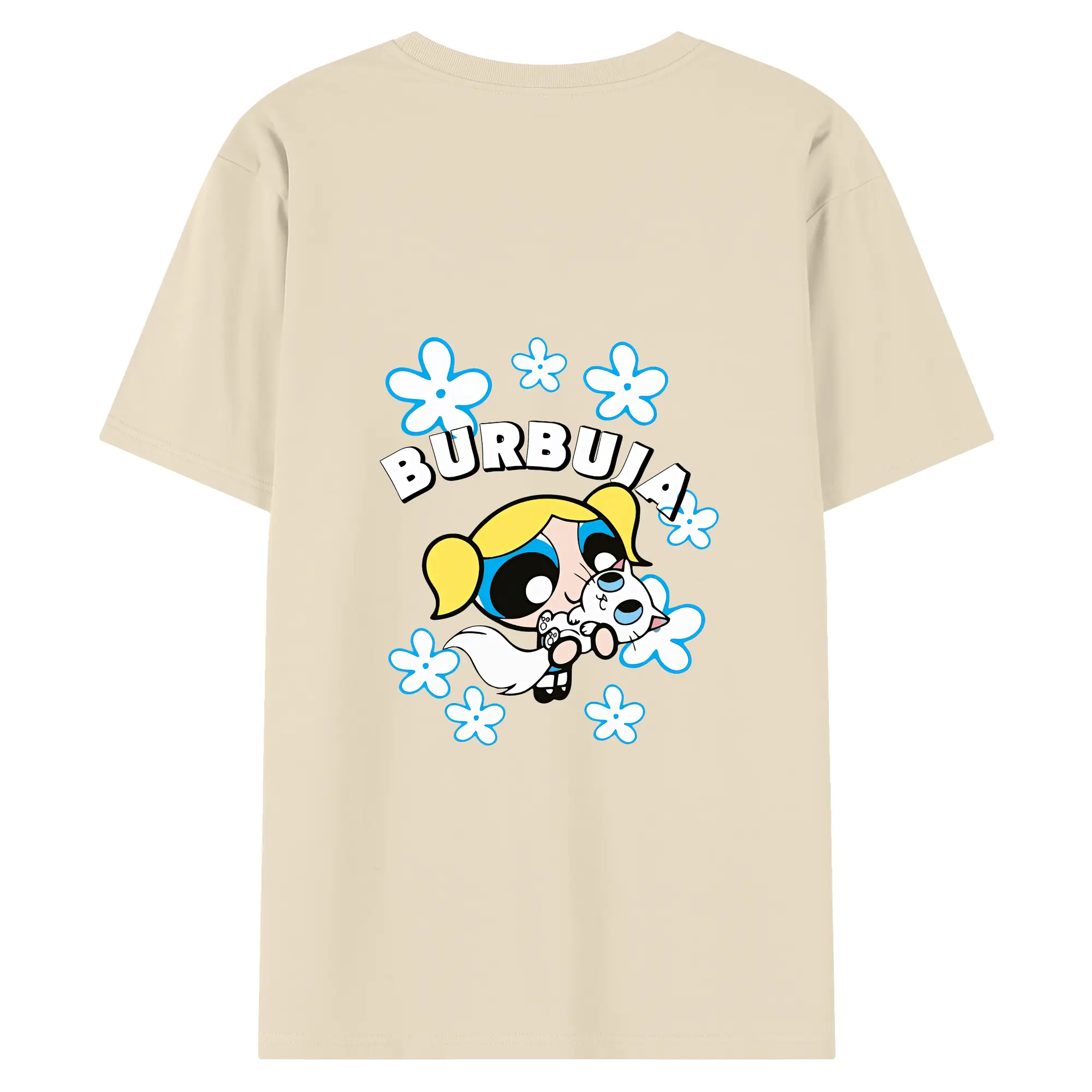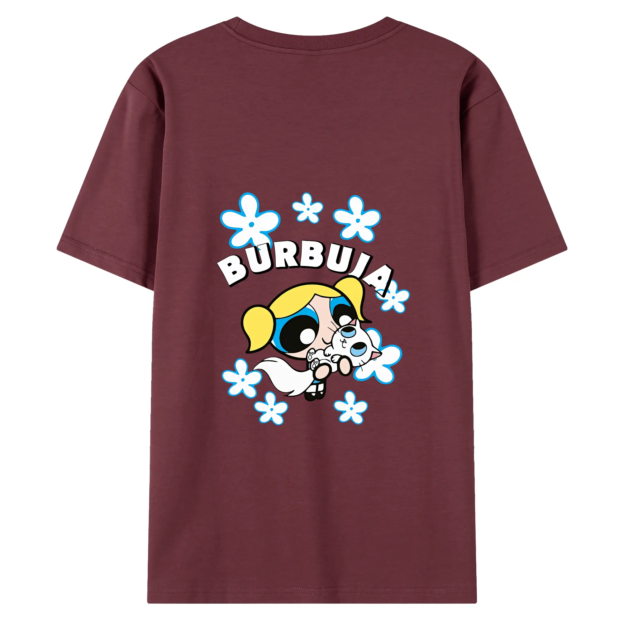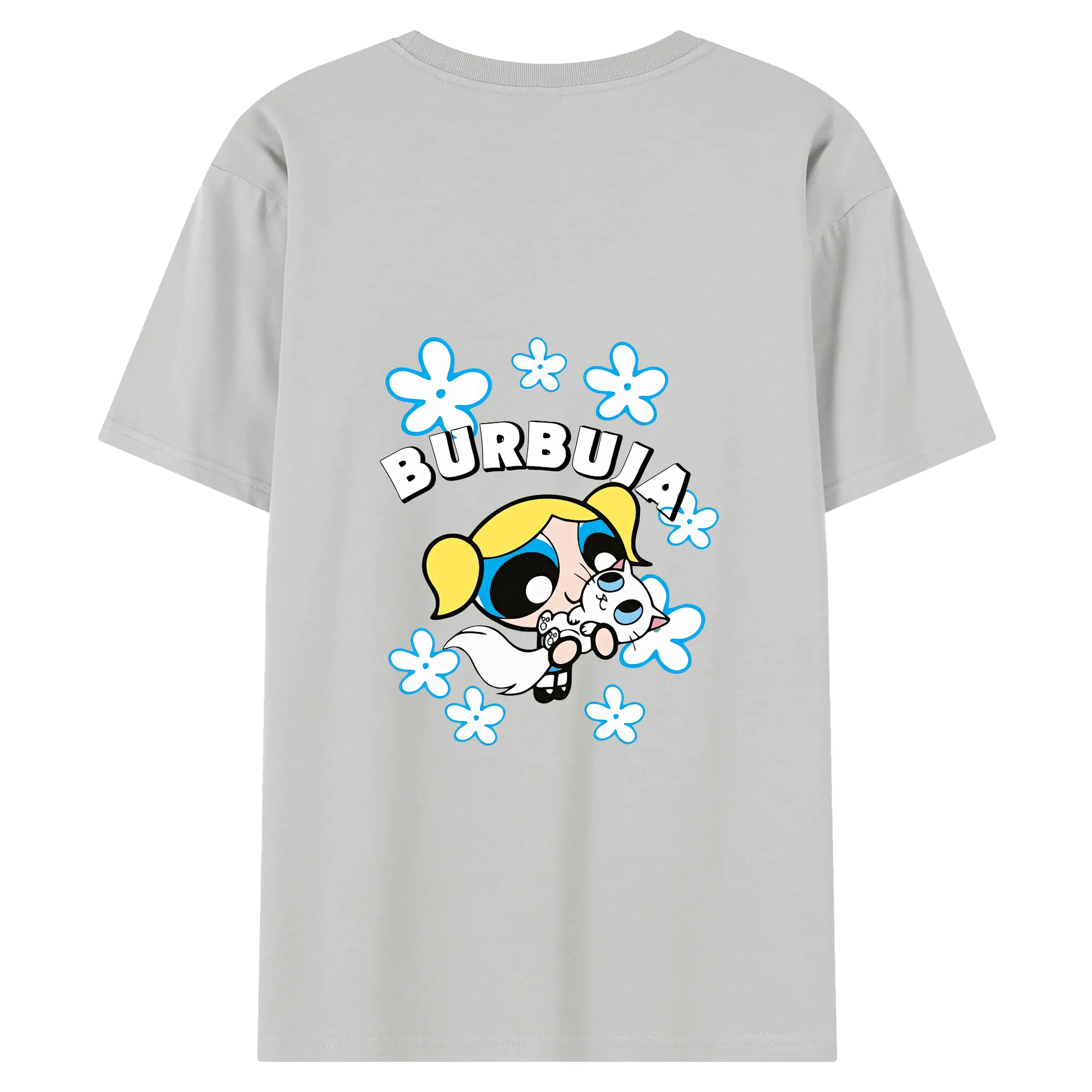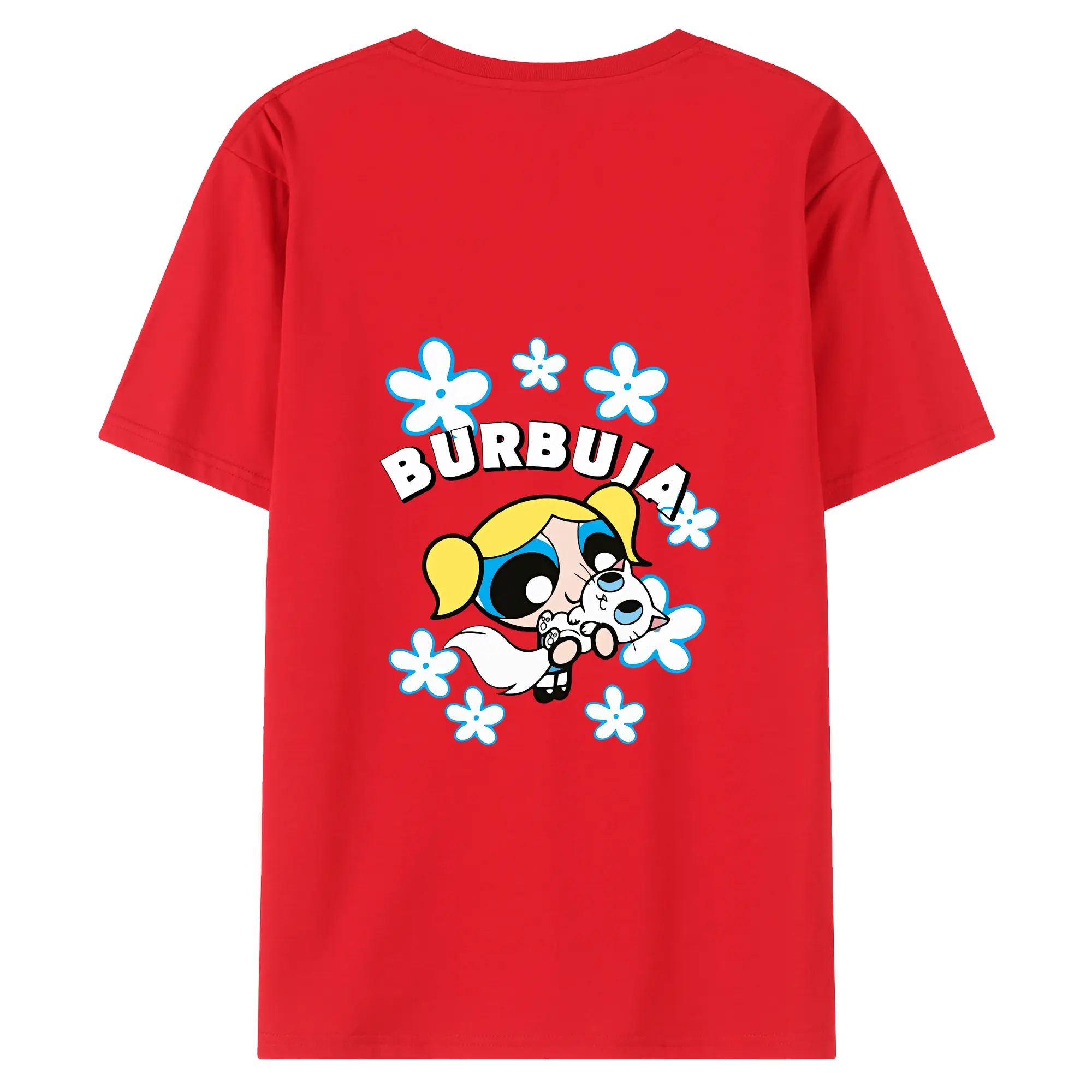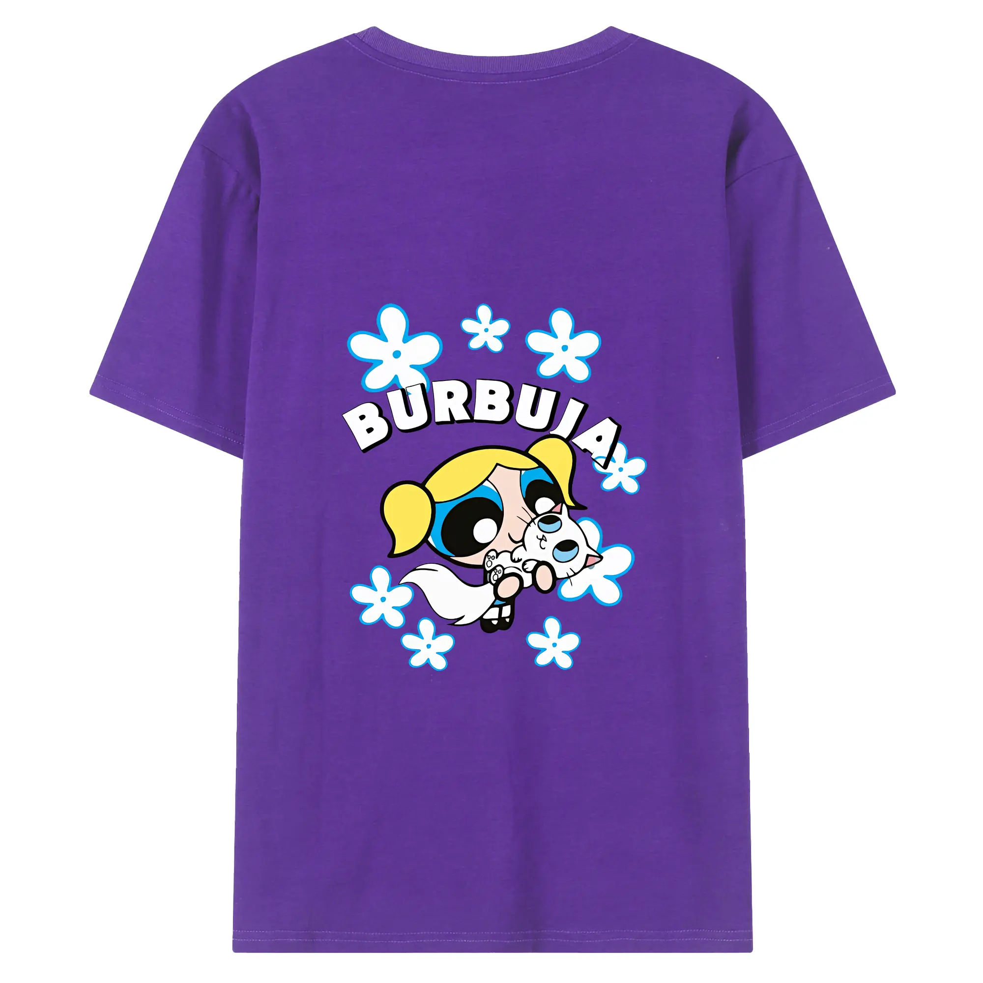 パワパフガールズ グッズ バブルス - 綿100% ヴィンテージ風 半袖Tシャツ ・ 背面プリント ・ 柔らか肌触り ・ 通気性 快適 ・ スポーツ カジュアル 外出用