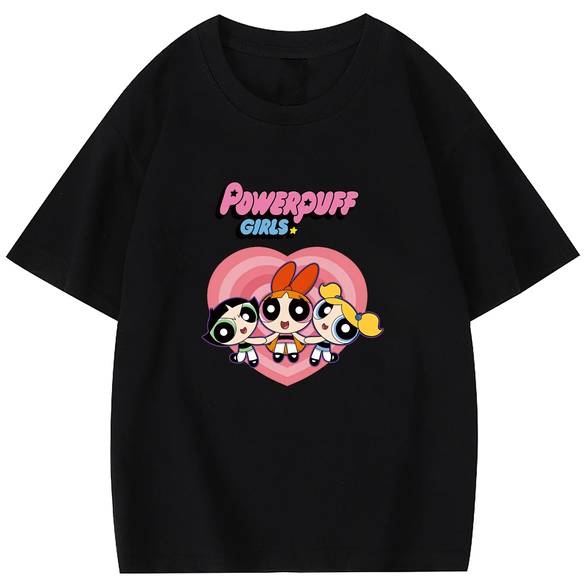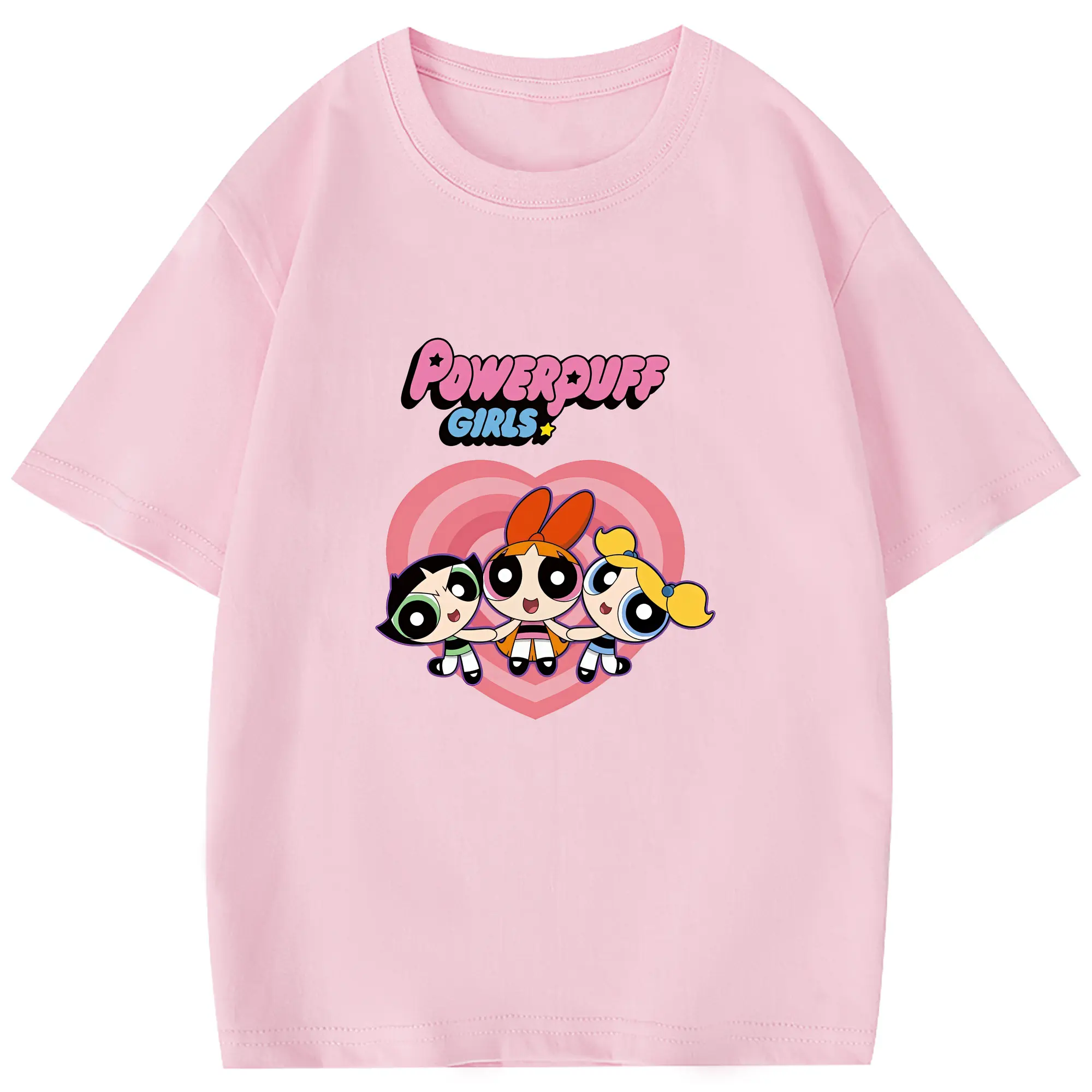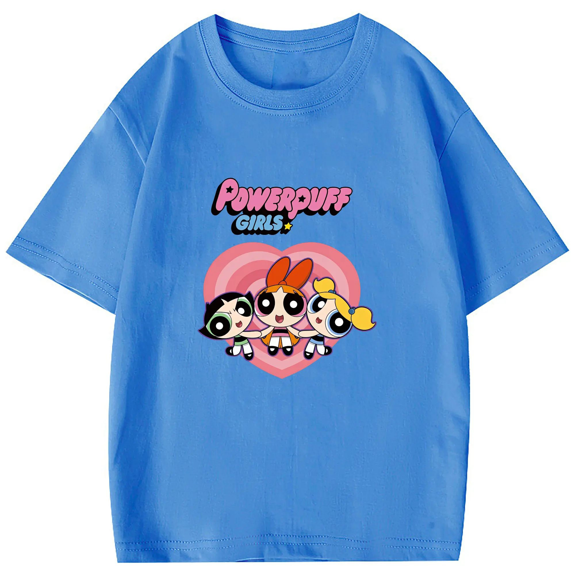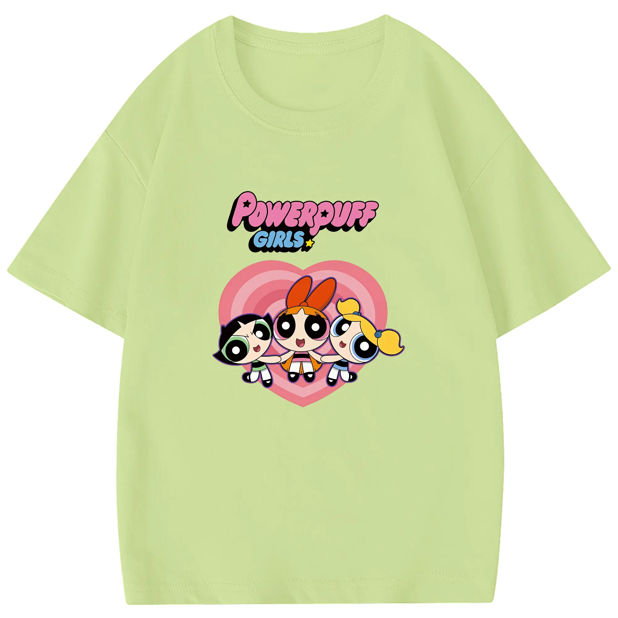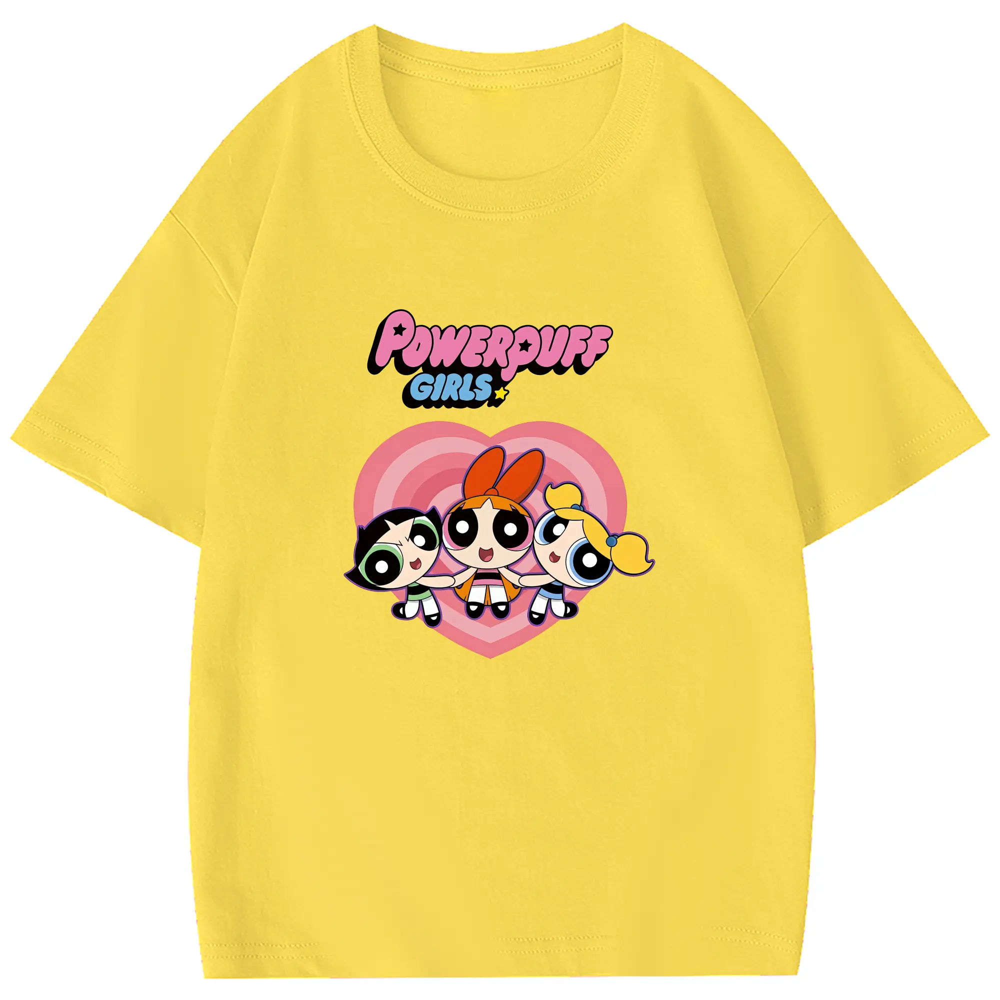 パワパフガールズ グッズ バブルス - 綿100% 半袖Tシャツ ・ フロントプリント ・ 快適 通気性 ・ 日常使い 散歩 スポーツ用