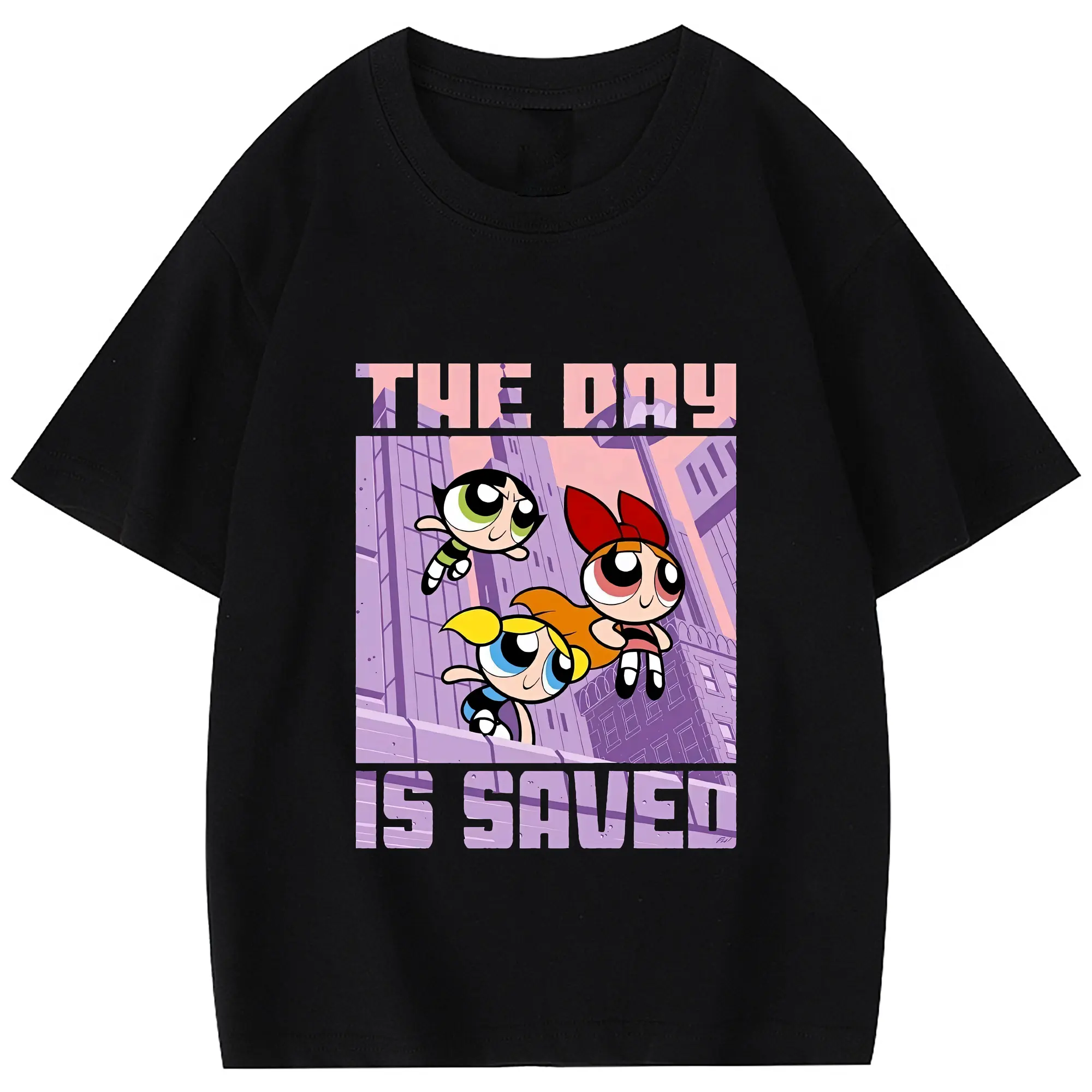 パワパフガールズ グッズ バブルス - 綿100% 半袖Tシャツ ・ フロントプリント ・ 快適 通気性 ・ 日常使い 散歩 スポーツ用