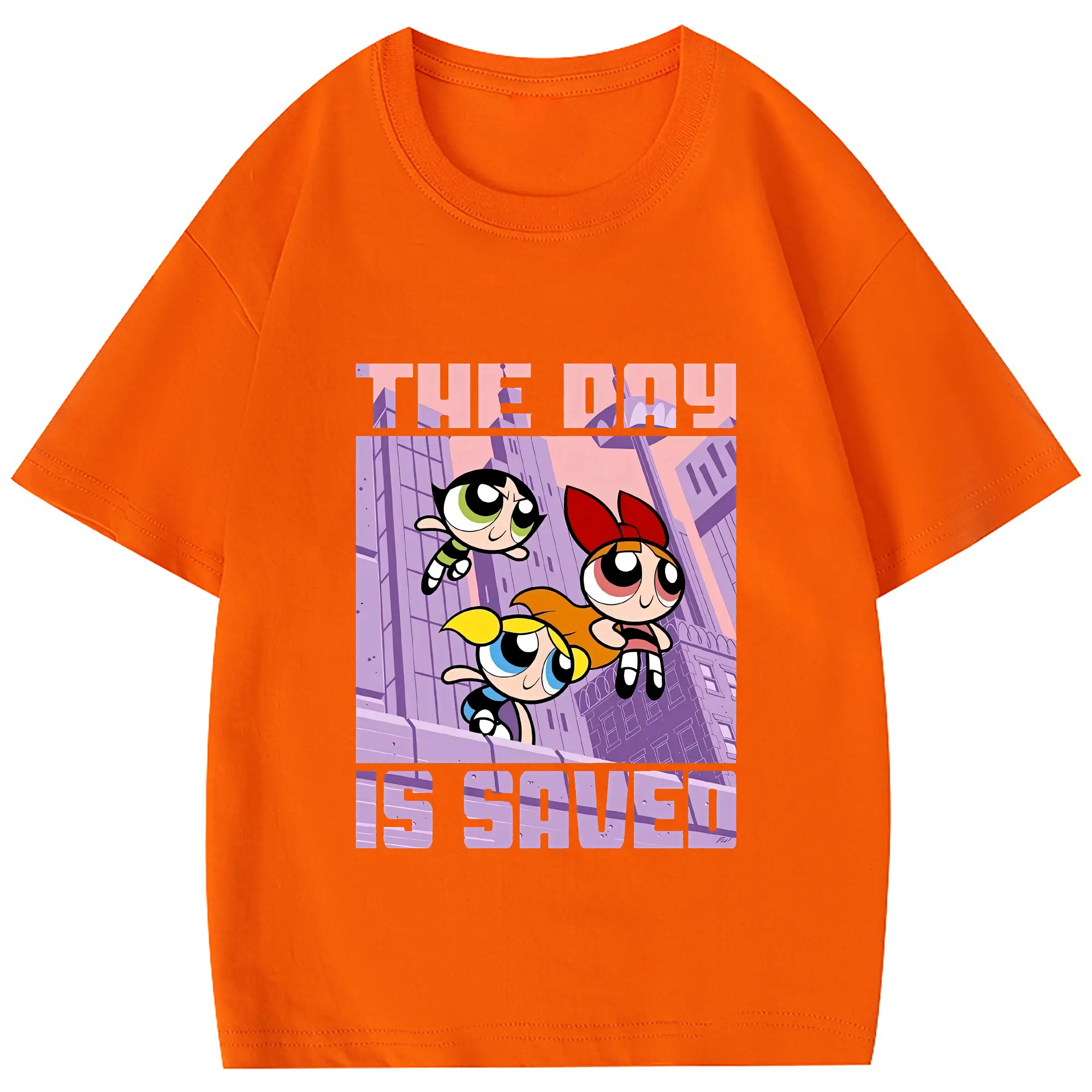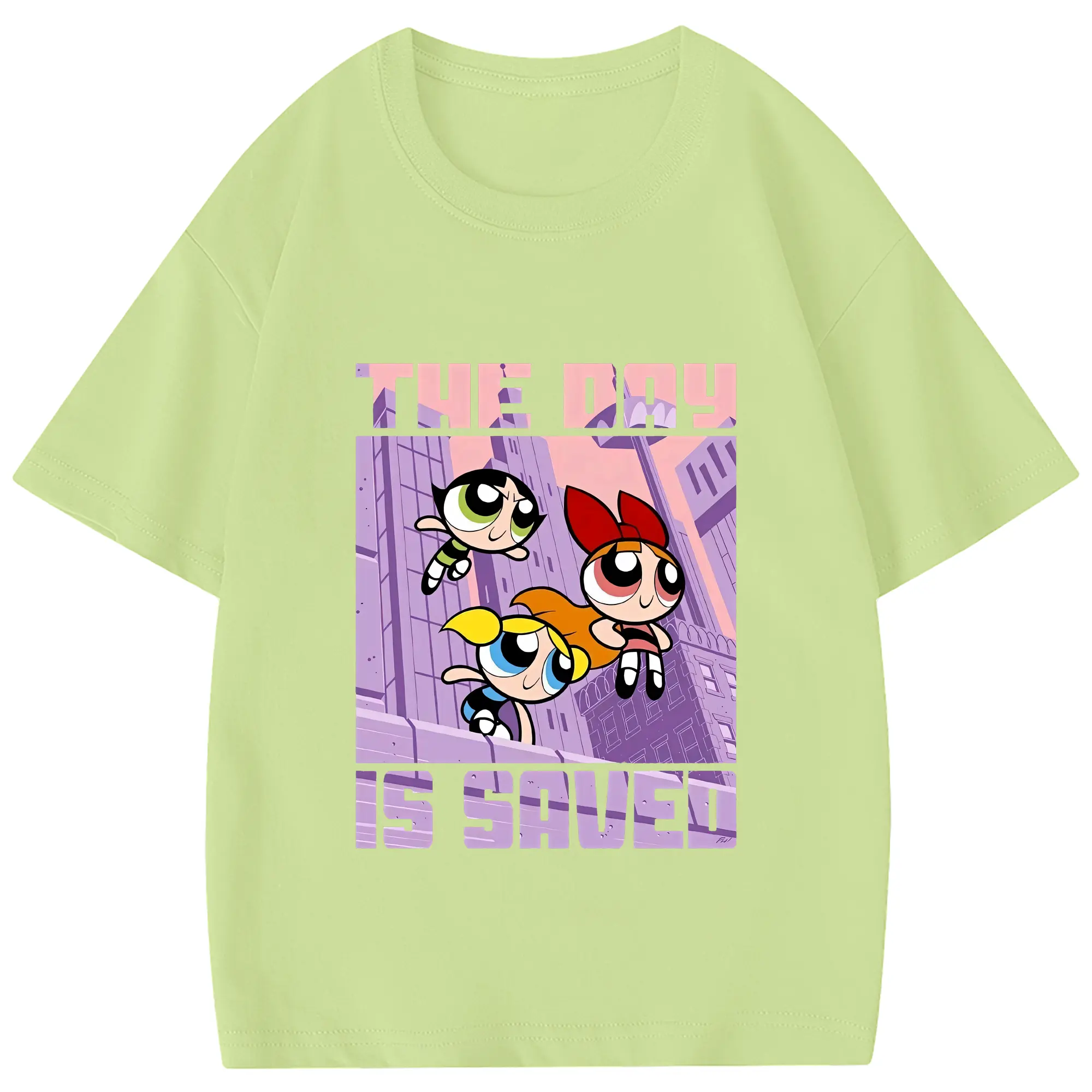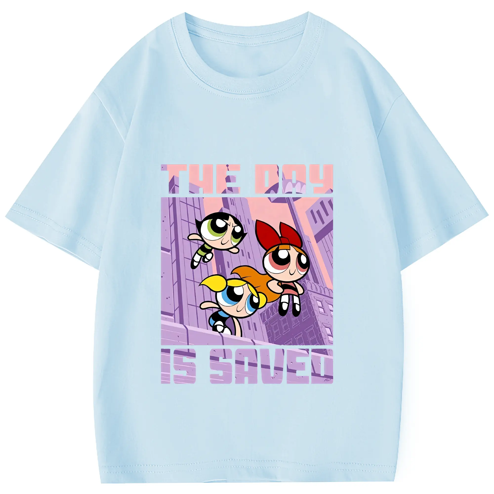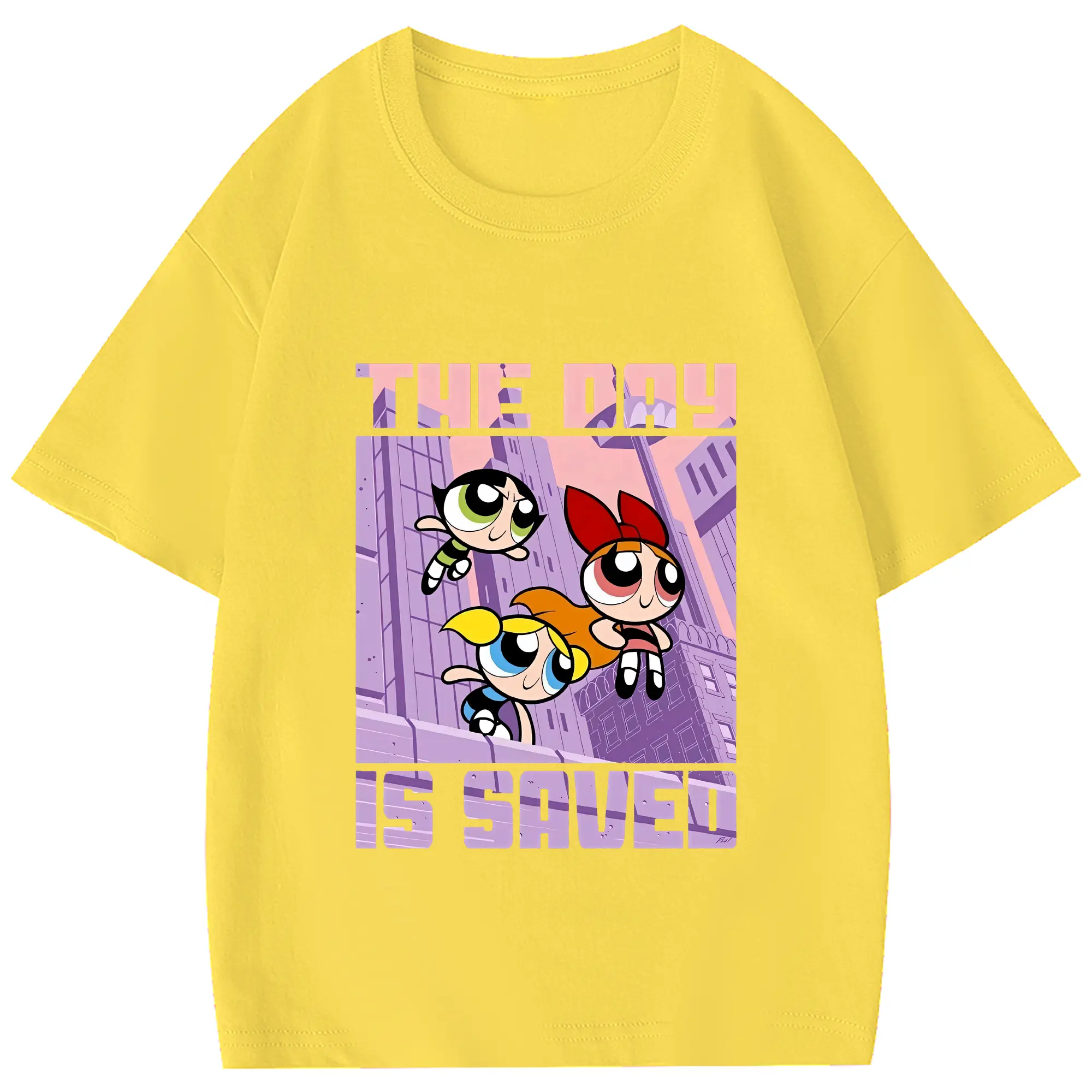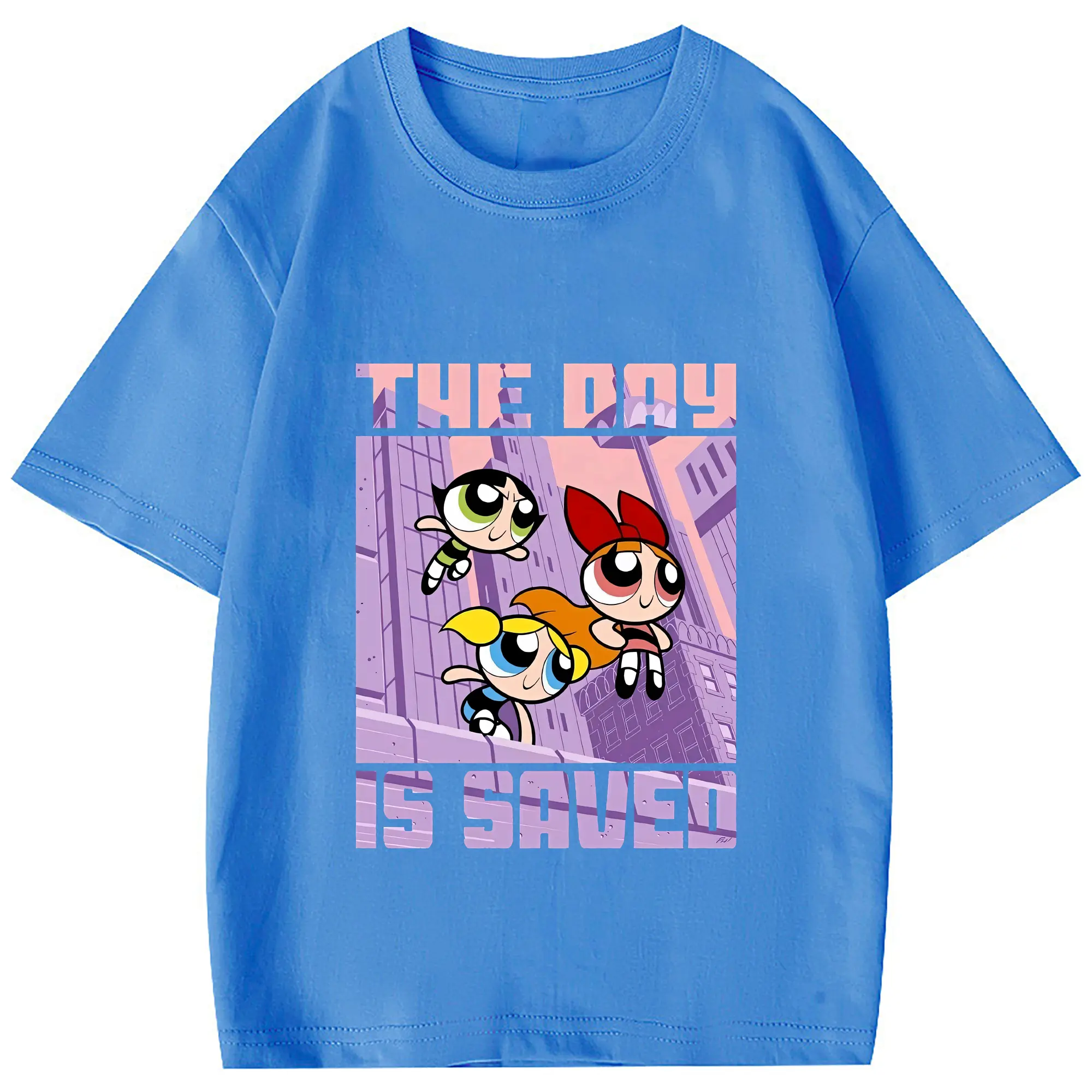 パワパフガールズ グッズ バブルス - 綿100% ヴィンテージ風 半袖Tシャツ ・ フロントプリント ・ 柔らか肌触り ・ 通気性 快適 ・ スポーツ カジュアル 外出用