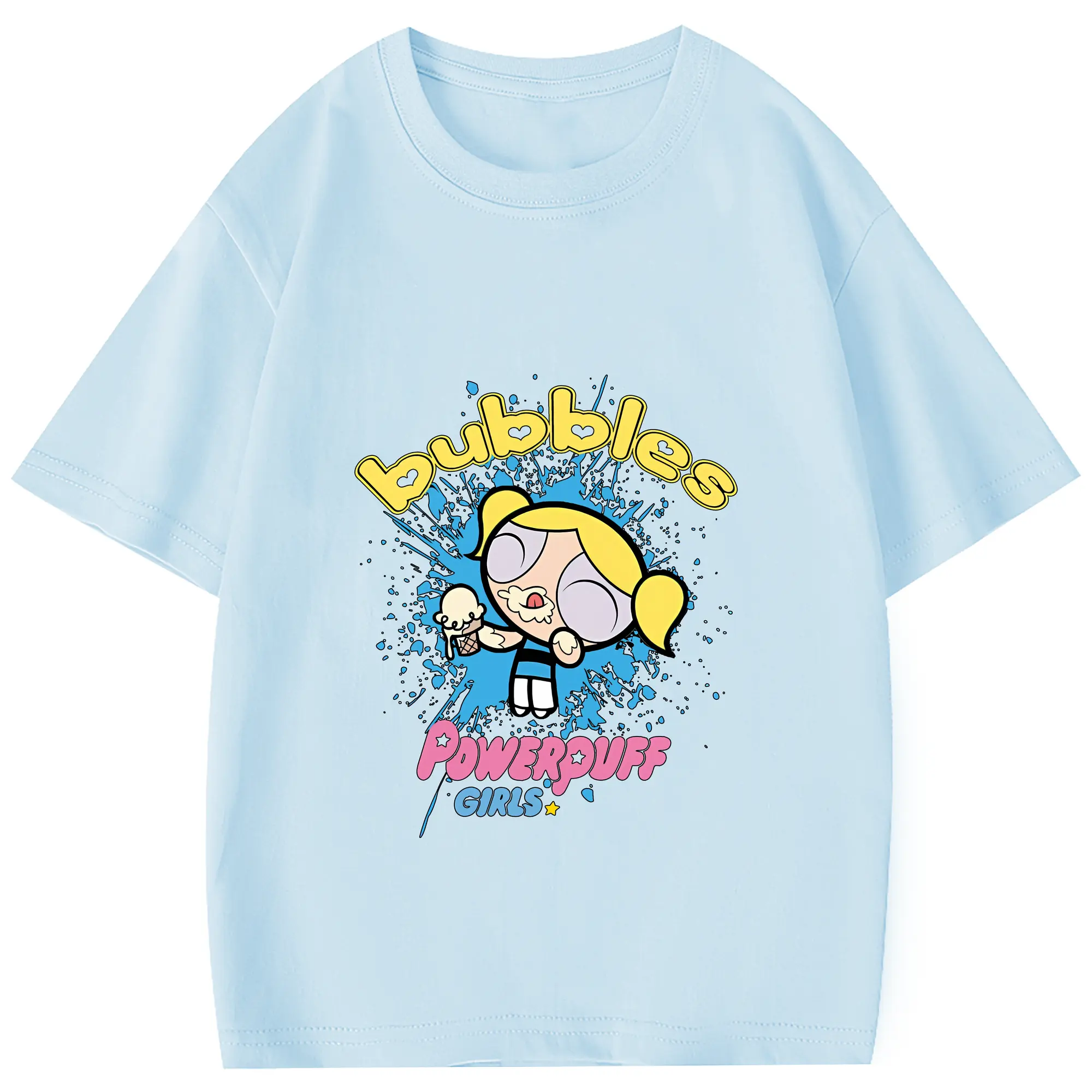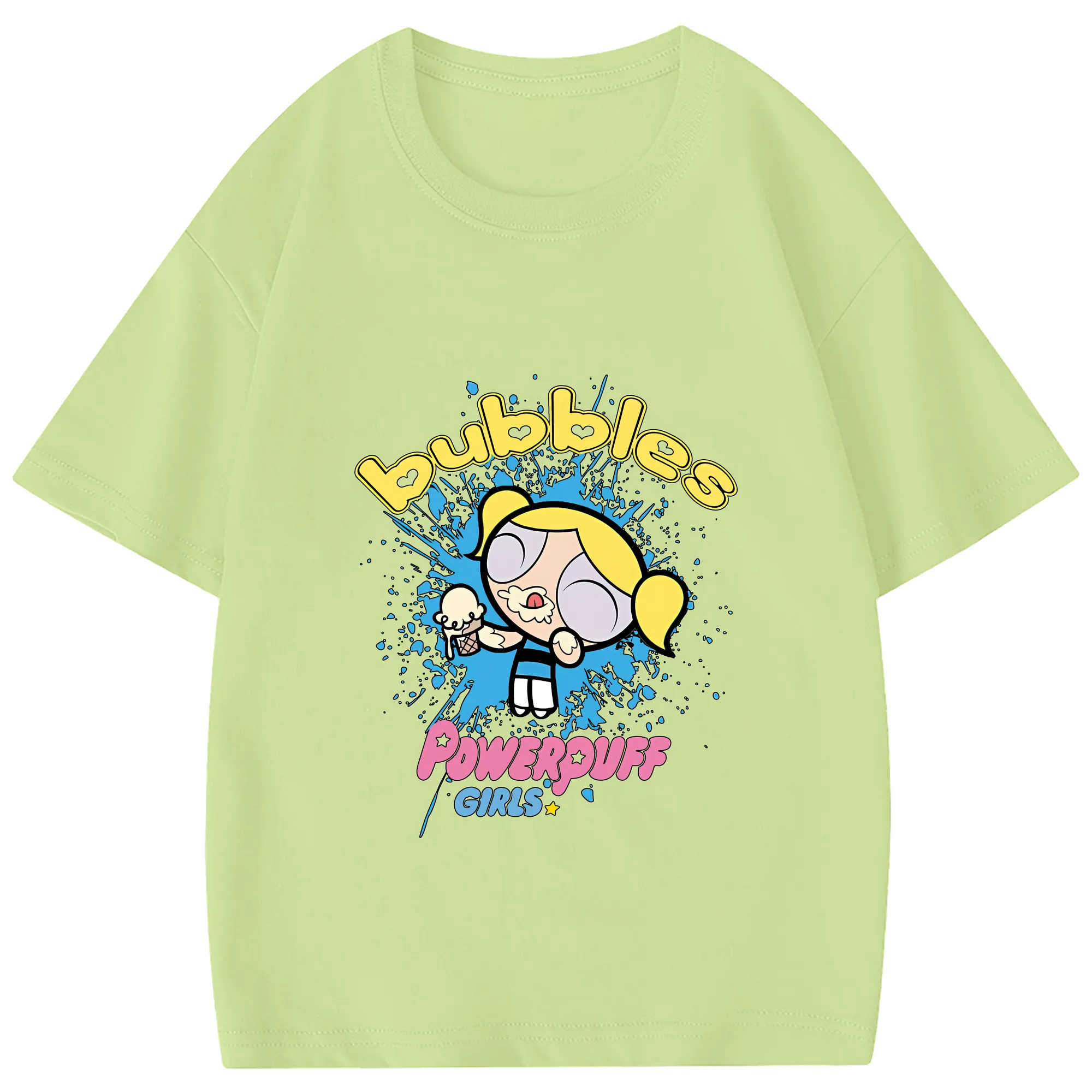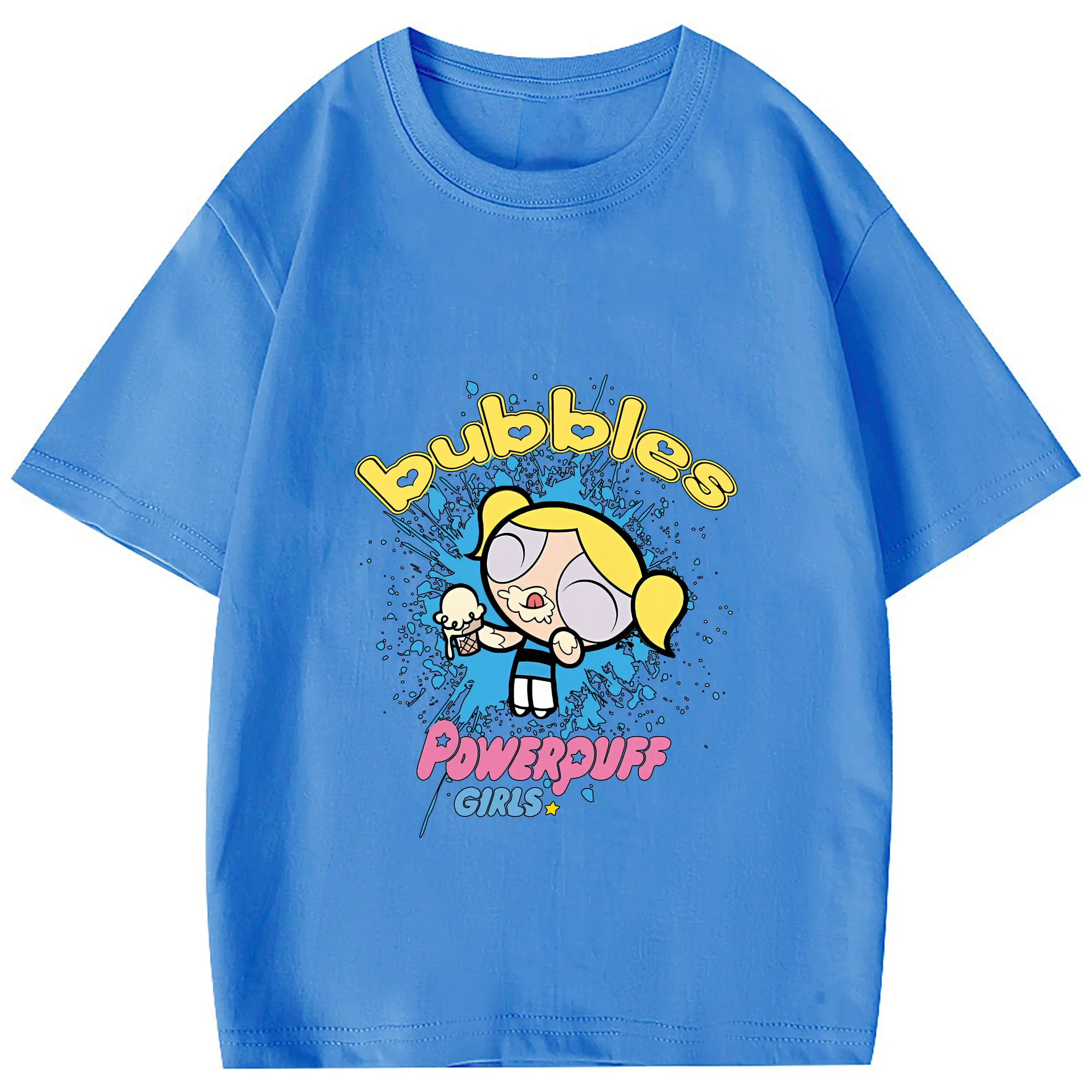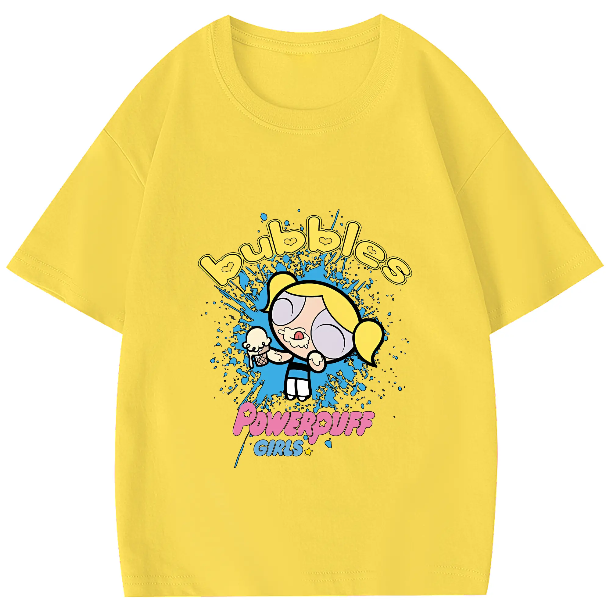 パワパフガールズ グッズ バブルス - 綿100% 半袖Tシャツ ・ フロントプリント ・ 快適 通気性 ・ 日常使い 散歩 スポーツ用