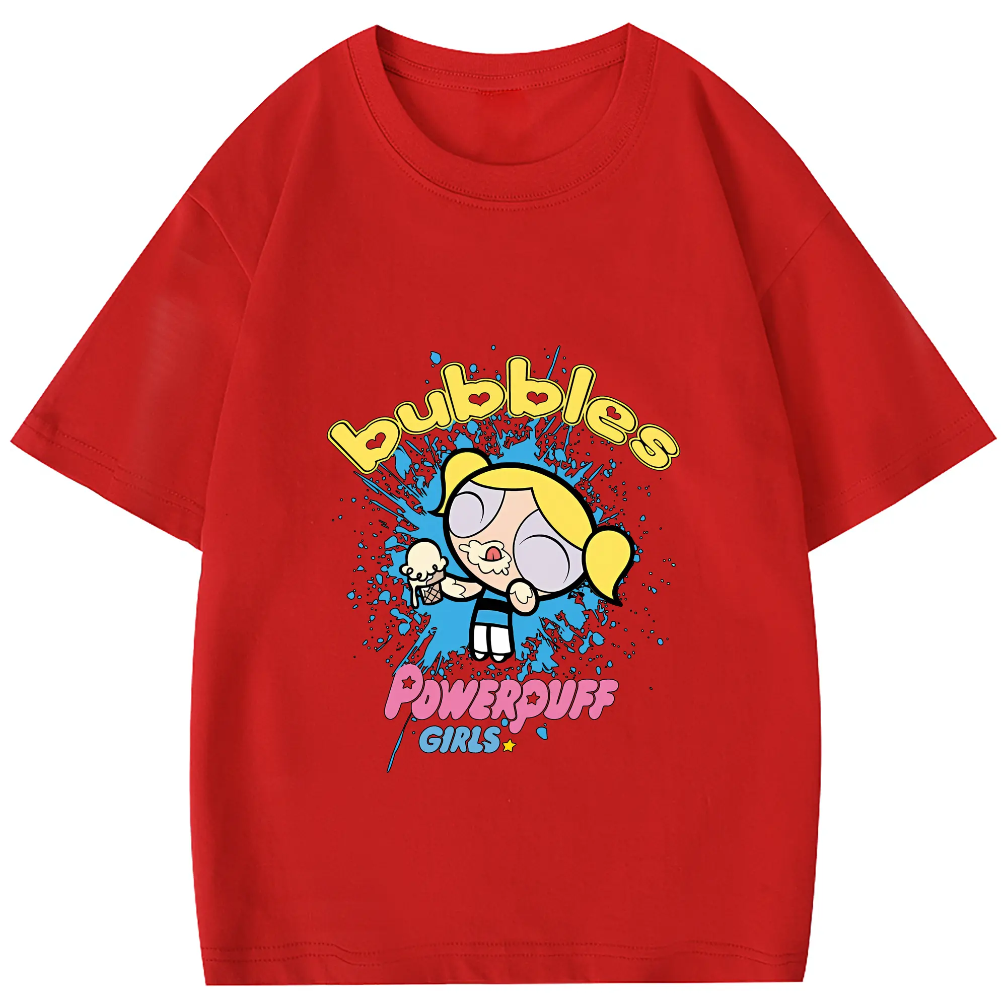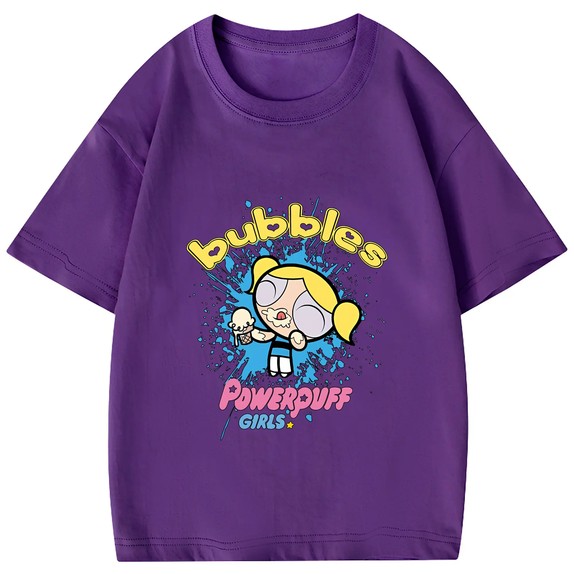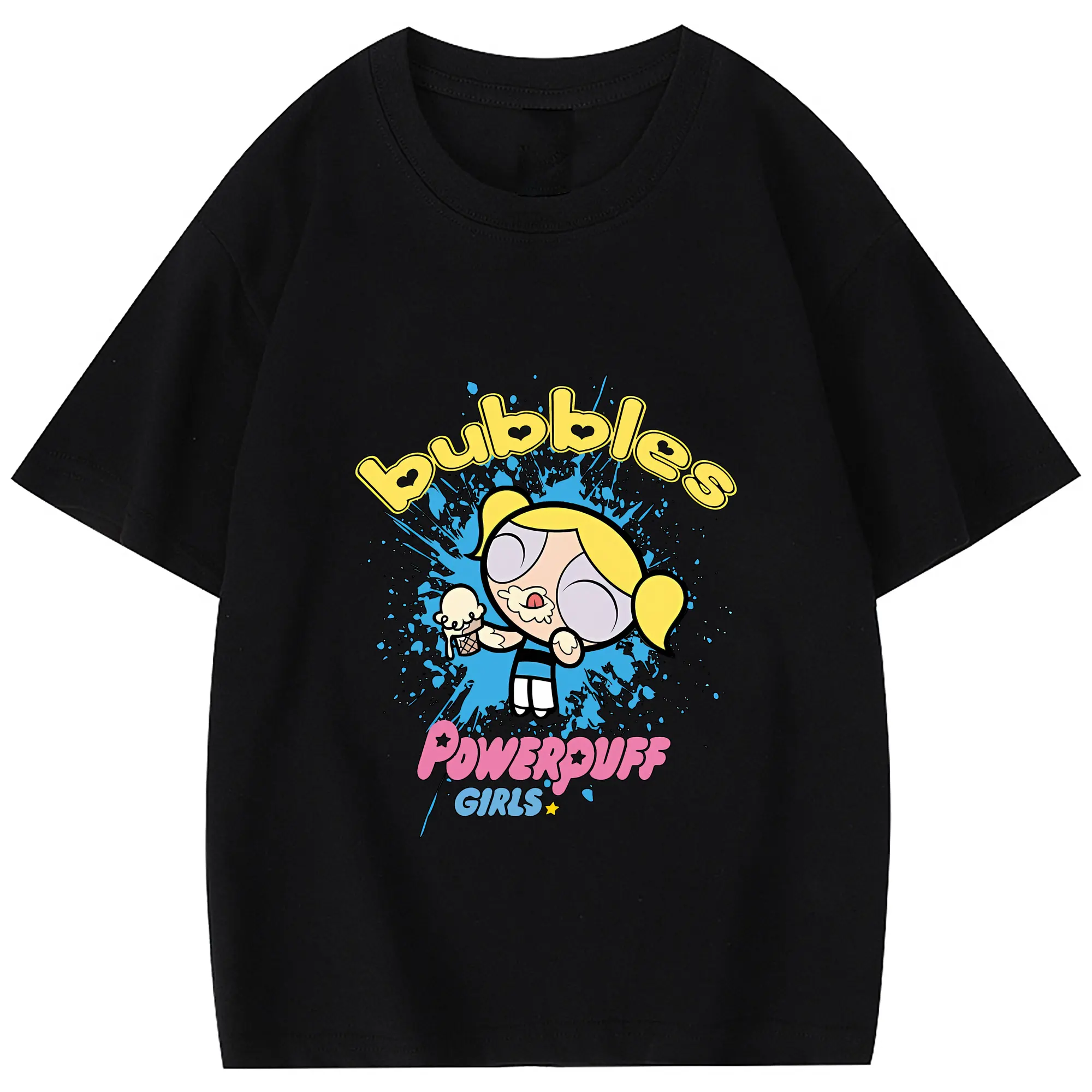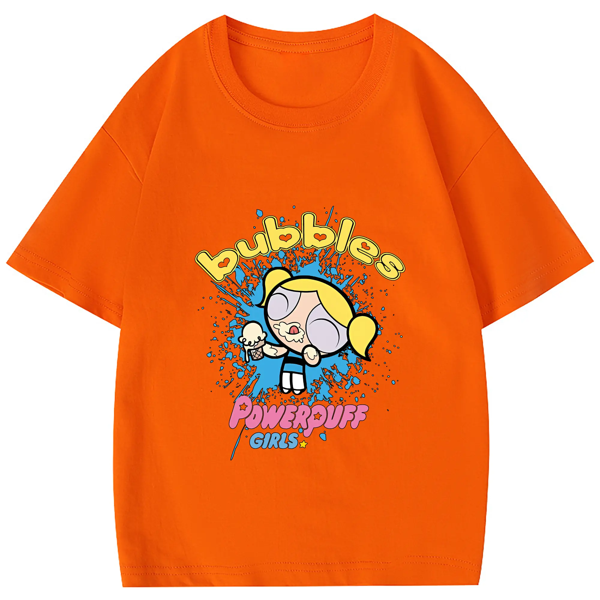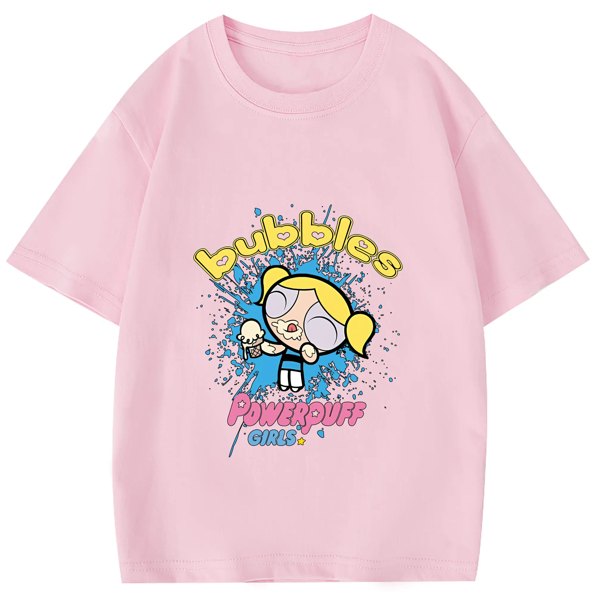 パワパフガールズ グッズ バブルス - 綿100% 半袖Tシャツ ・ フロントプリント ・ 快適 通気性 ・ 日常使い 散歩 スポーツ用