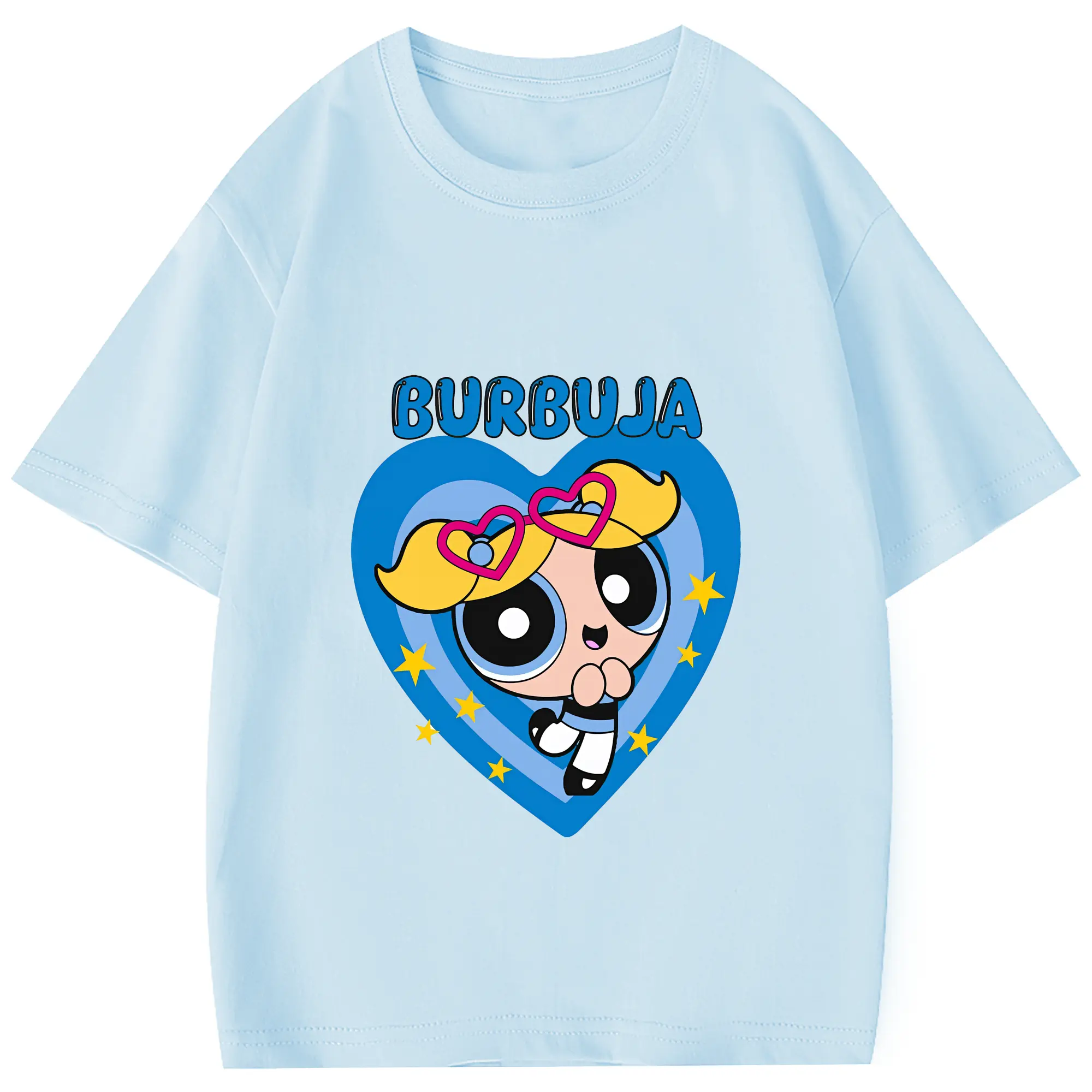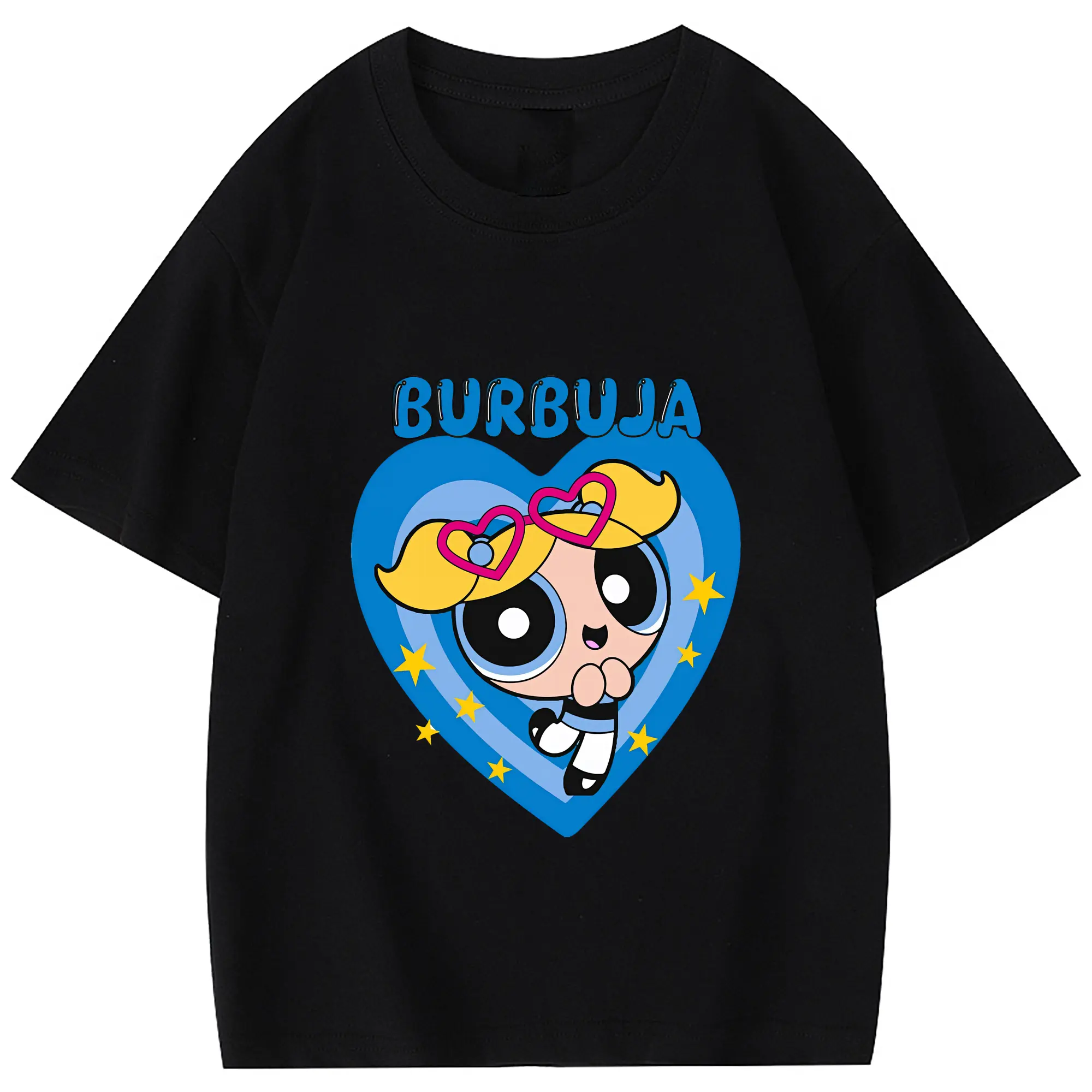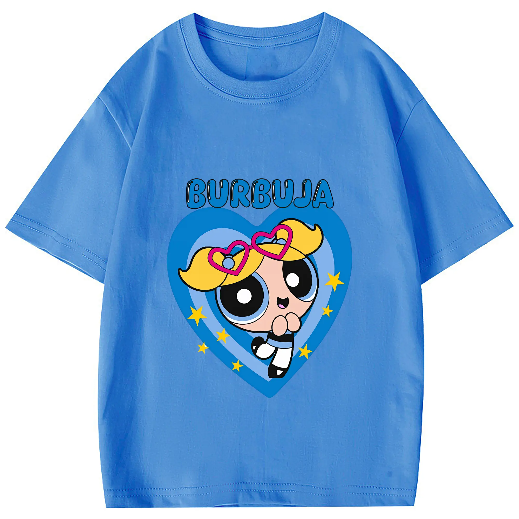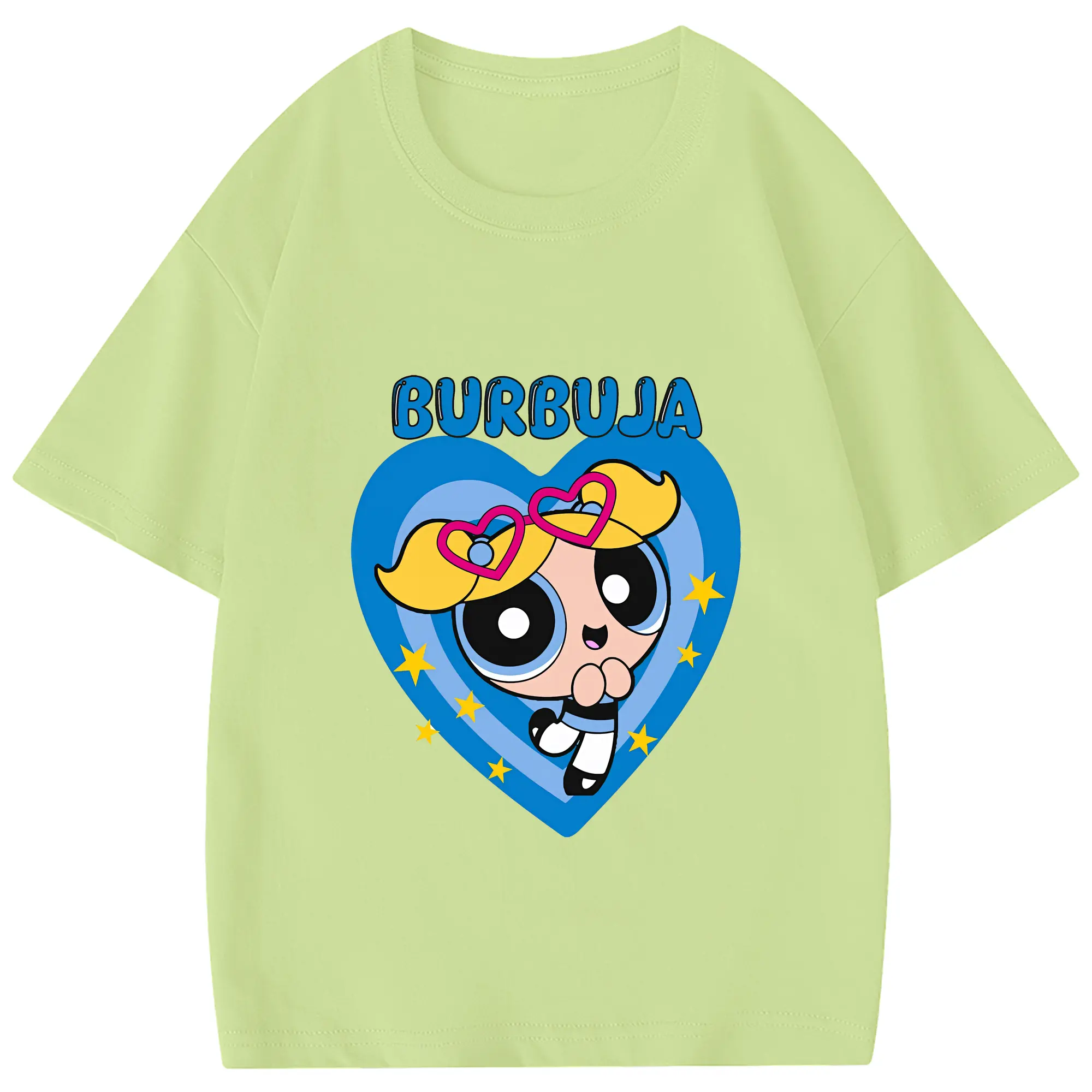 パワパフガールズ グッズ バブルス - 綿100% 半袖Tシャツ ・ フロントプリント ・ 快適 通気性 ・ 日常使い 散歩 スポーツ用
