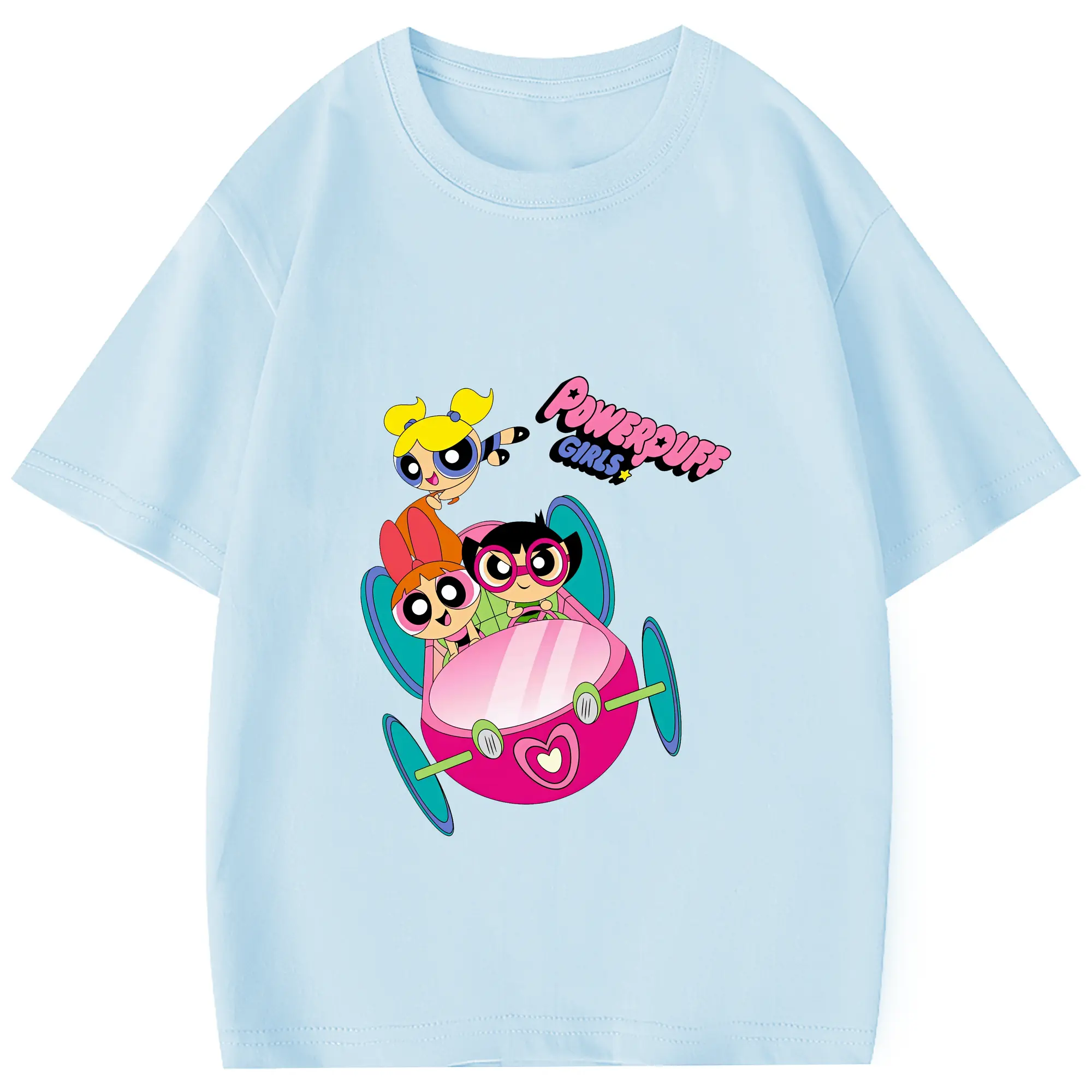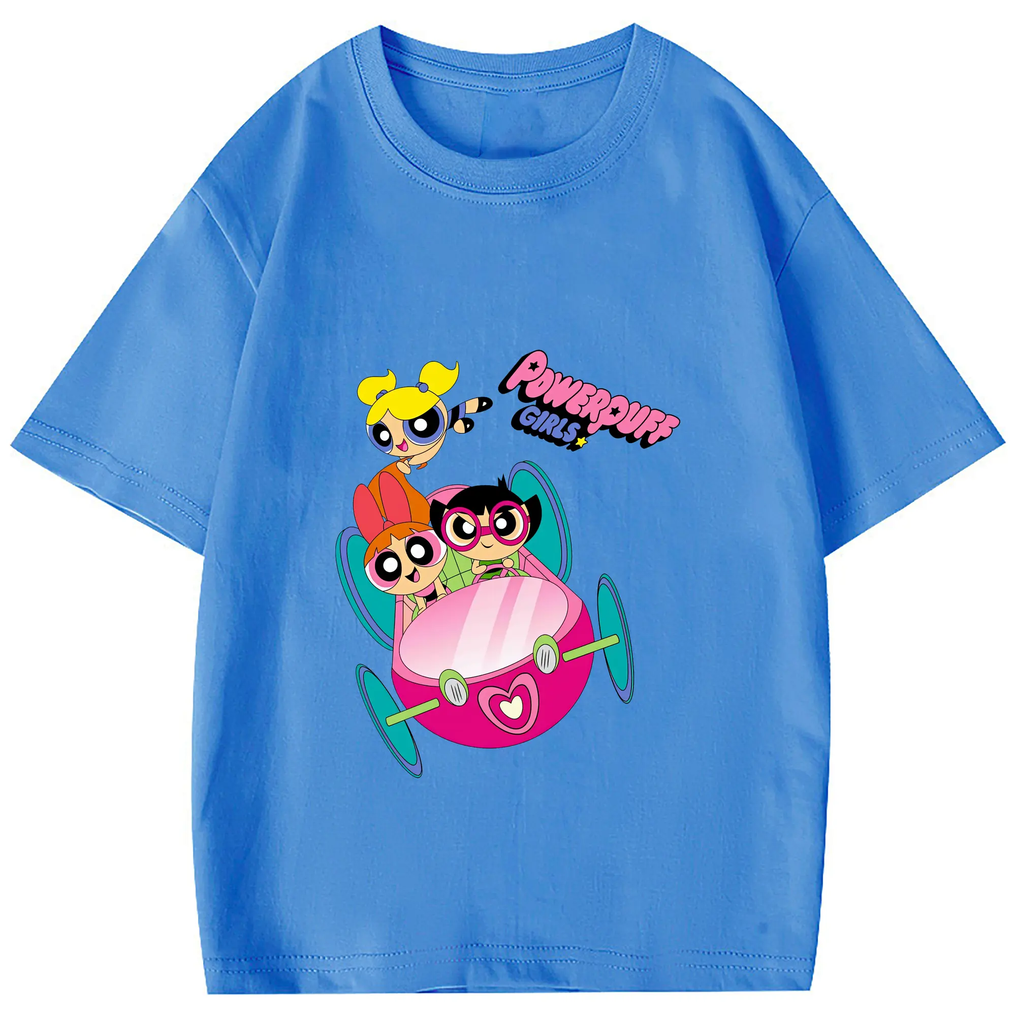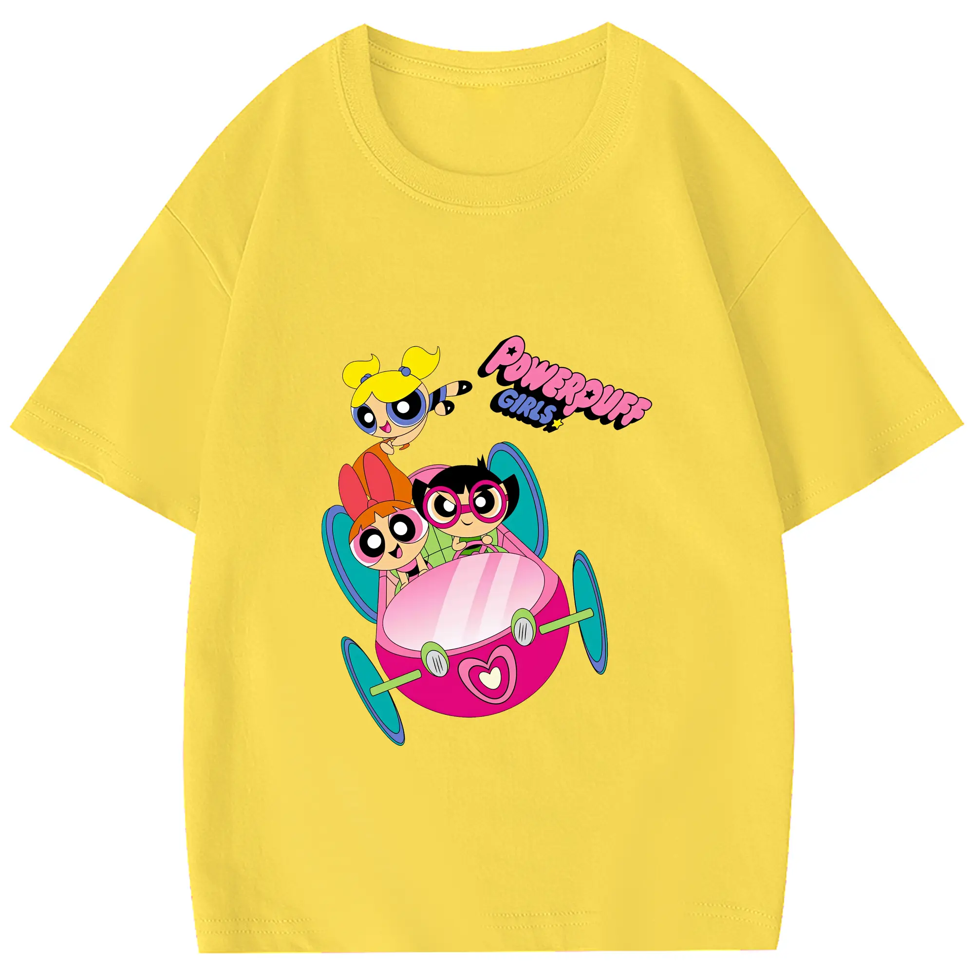 パワパフガールズ グッズ バブルス - 綿100% 半袖Tシャツ ・ フロントプリント ・ 快適 通気性 ・ 日常使い 散歩 スポーツ用