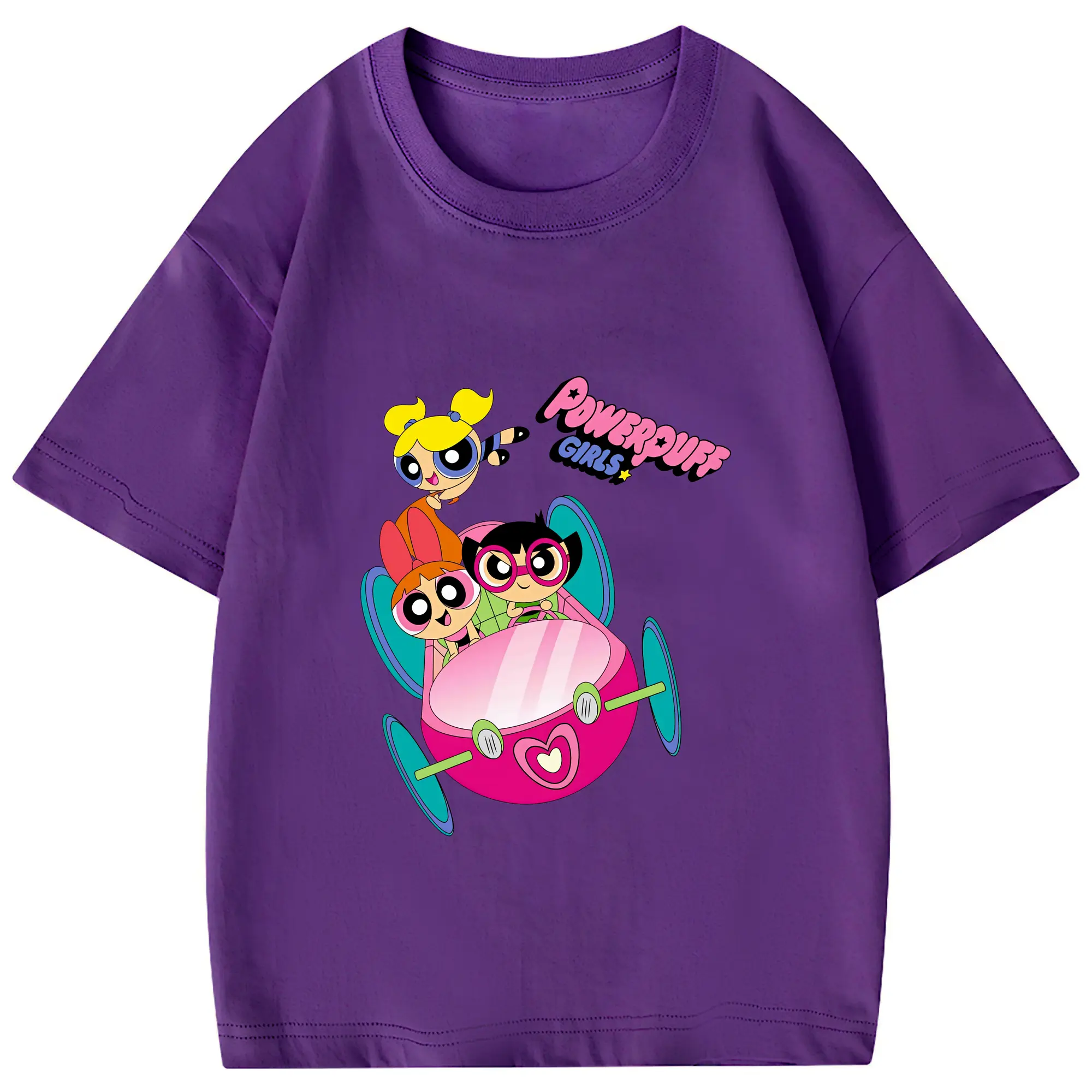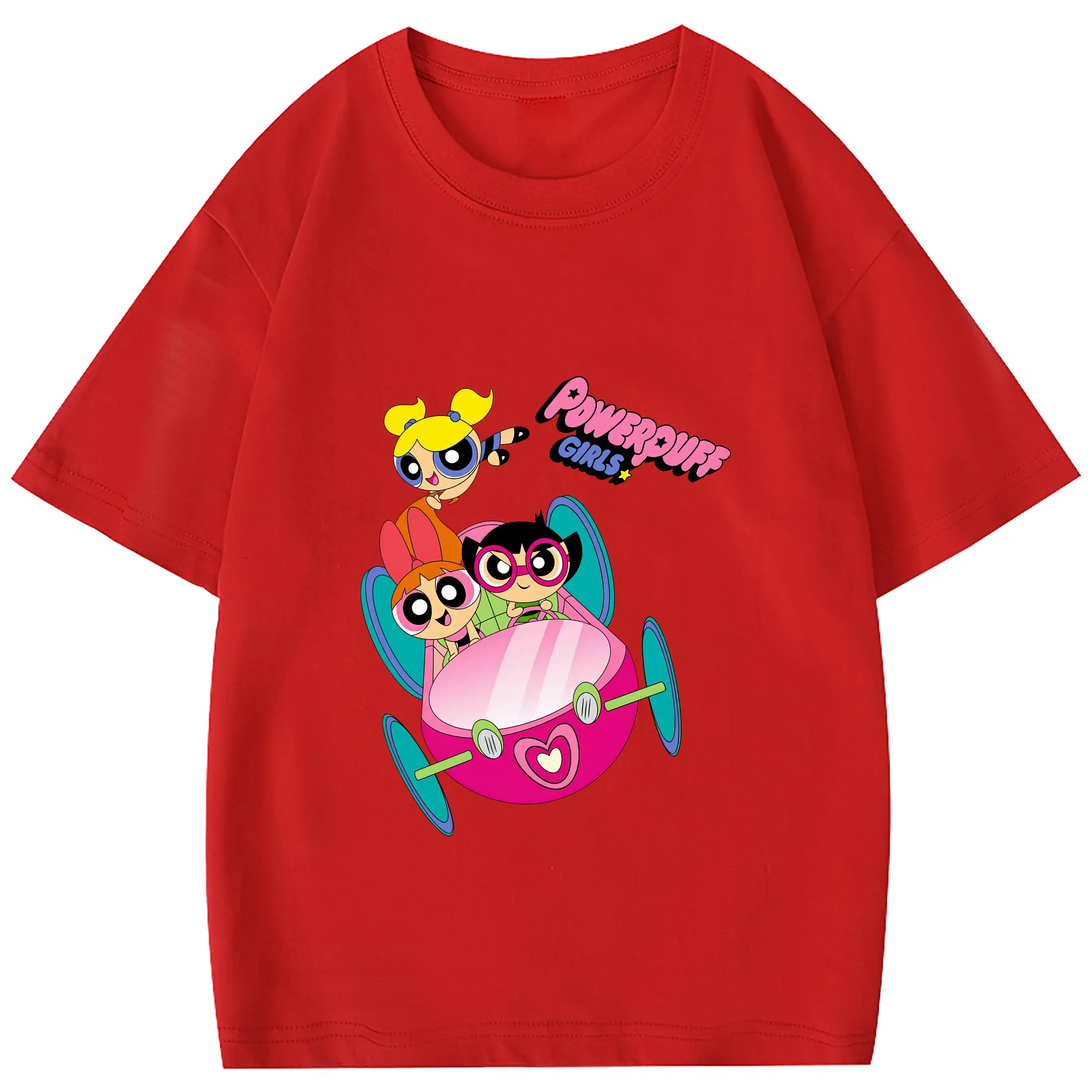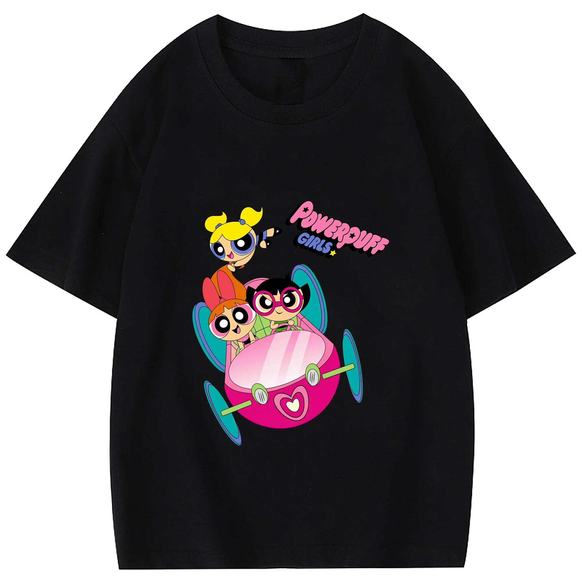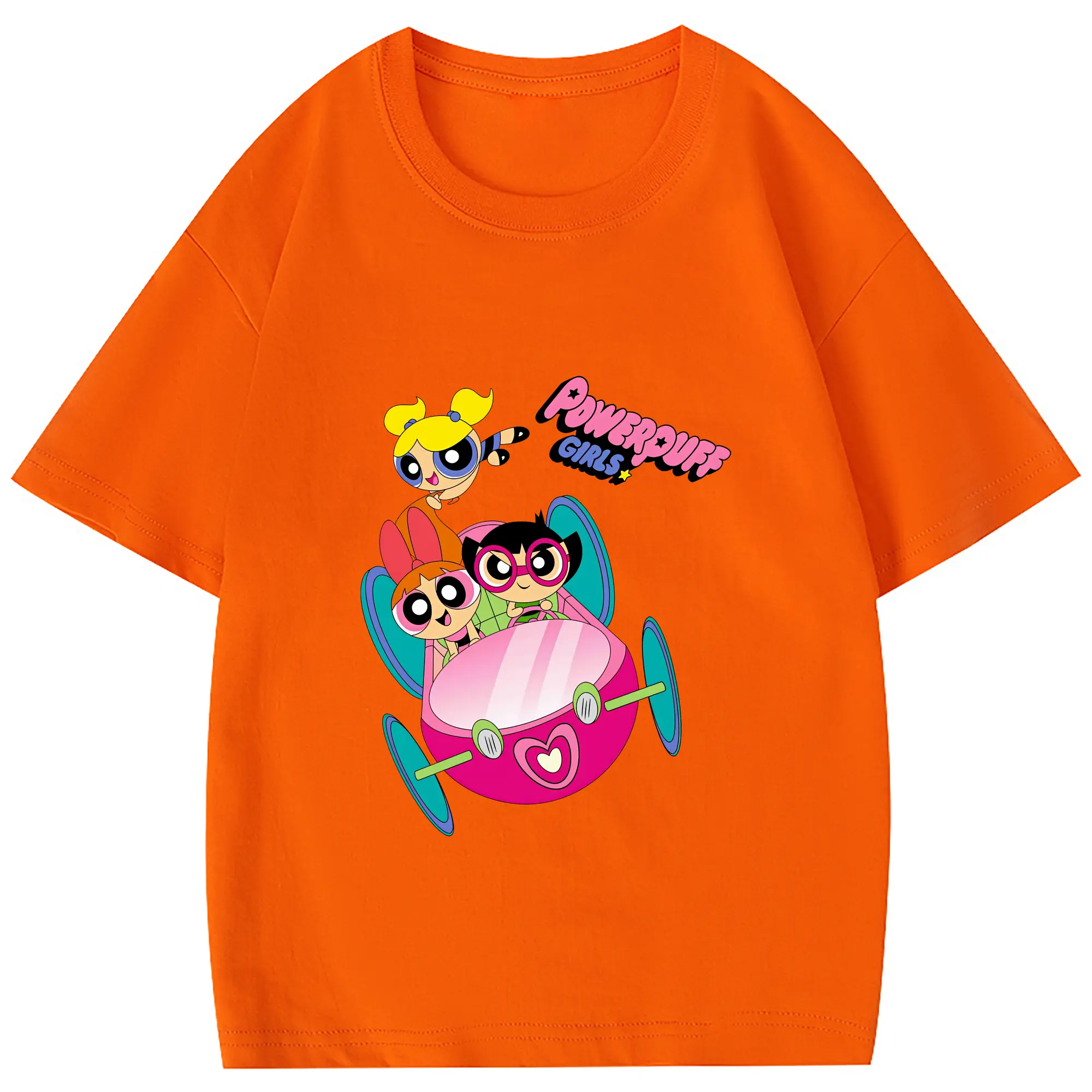 パワパフガールズ グッズ バブルス - 綿100% 半袖Tシャツ ・ フロントプリント ・ 快適 通気性 ・ 日常使い 散歩 スポーツ用