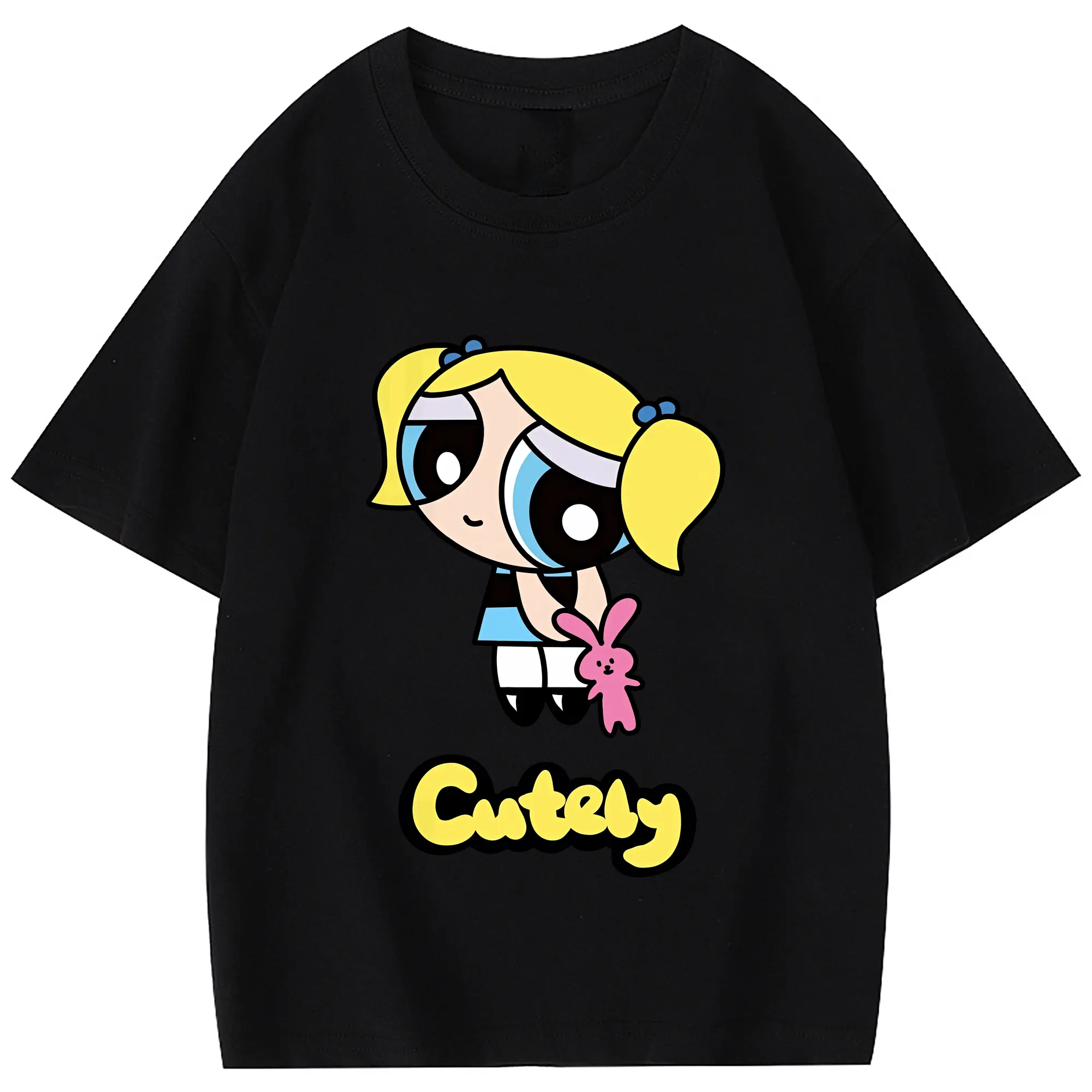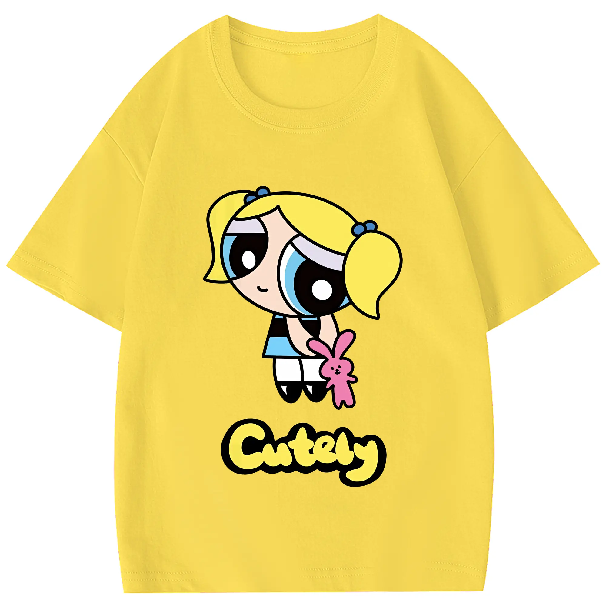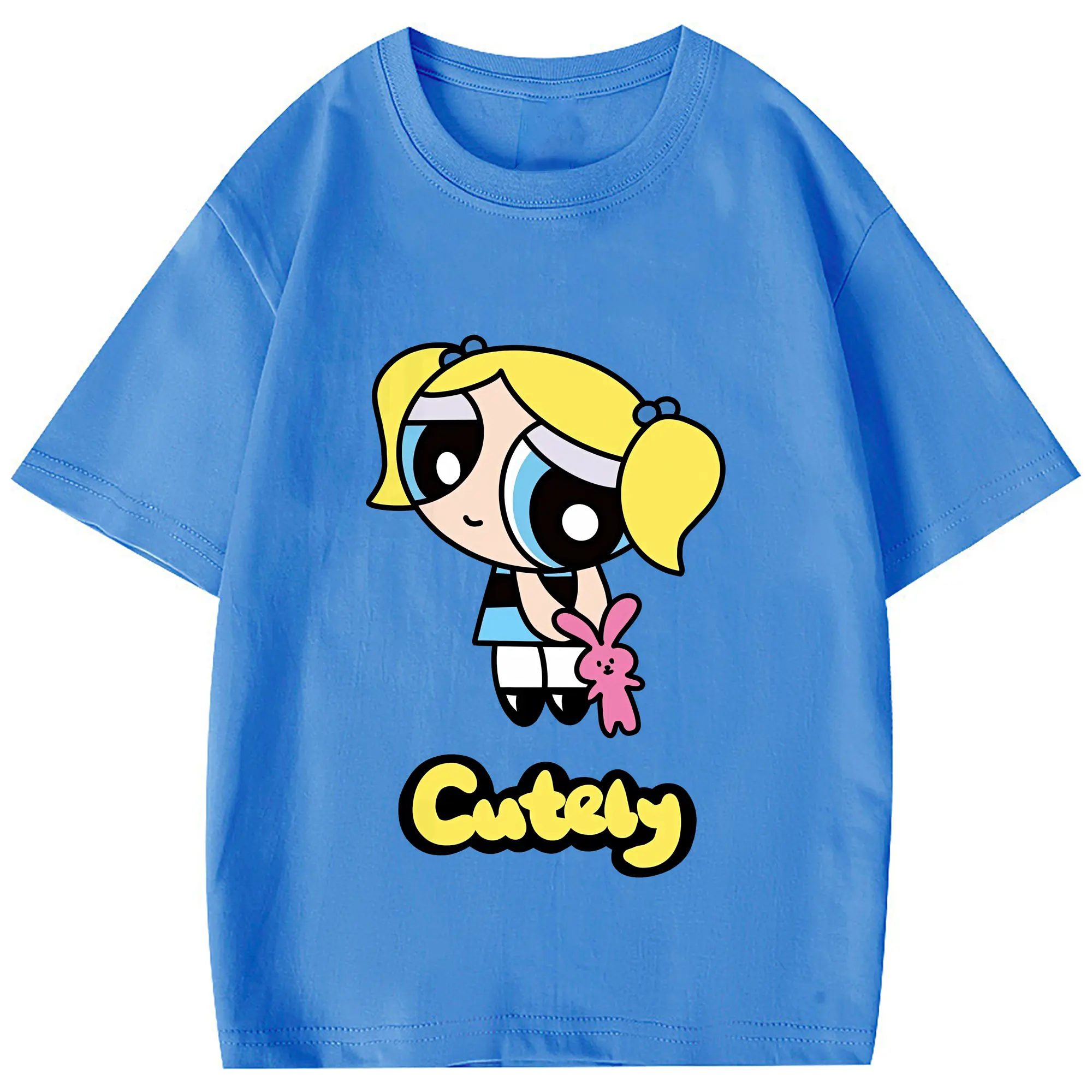 パワパフガールズ グッズ バブルス - 綿100% 半袖Tシャツ ・ フロントプリント ・ 快適 通気性 ・ 日常使い 散歩 スポーツ用