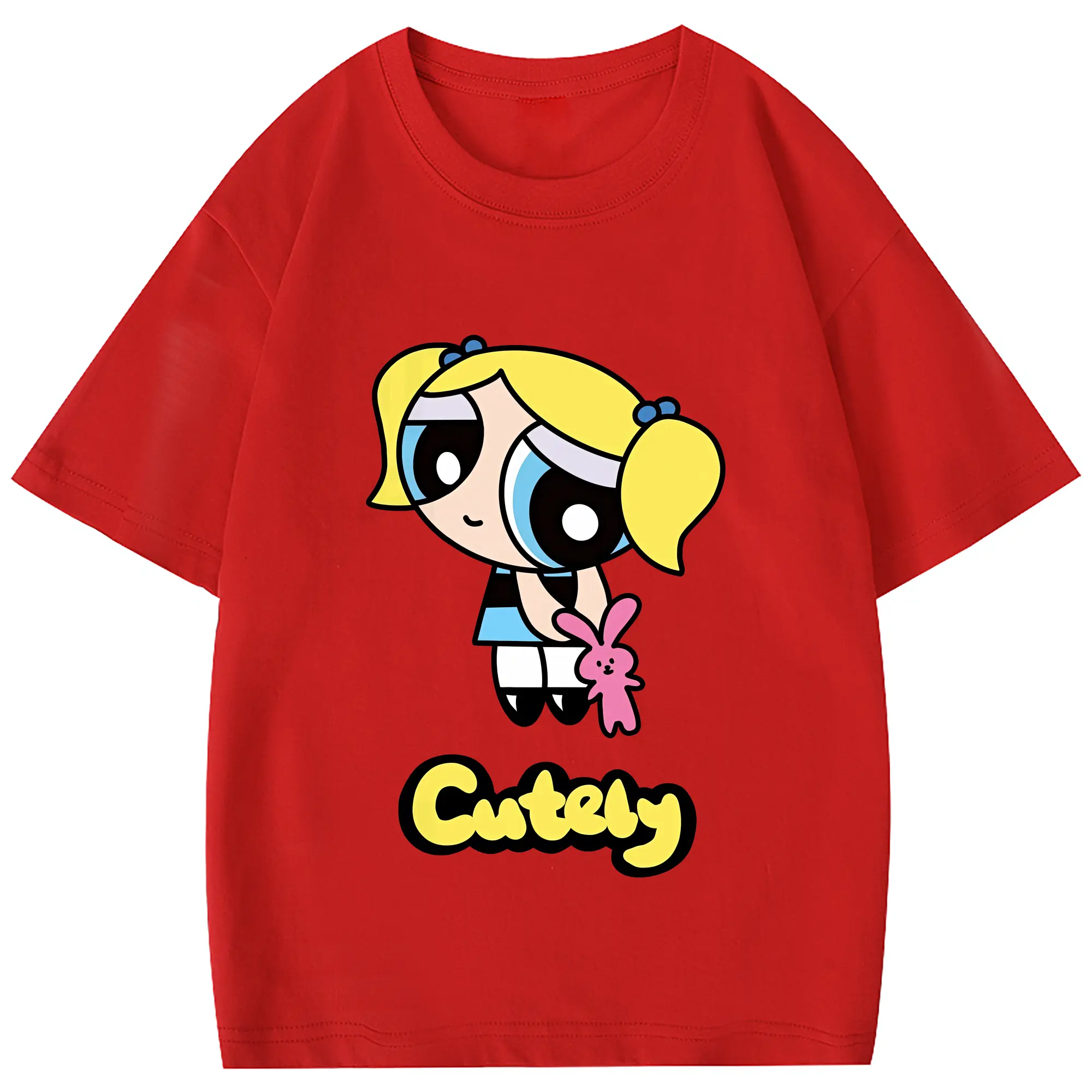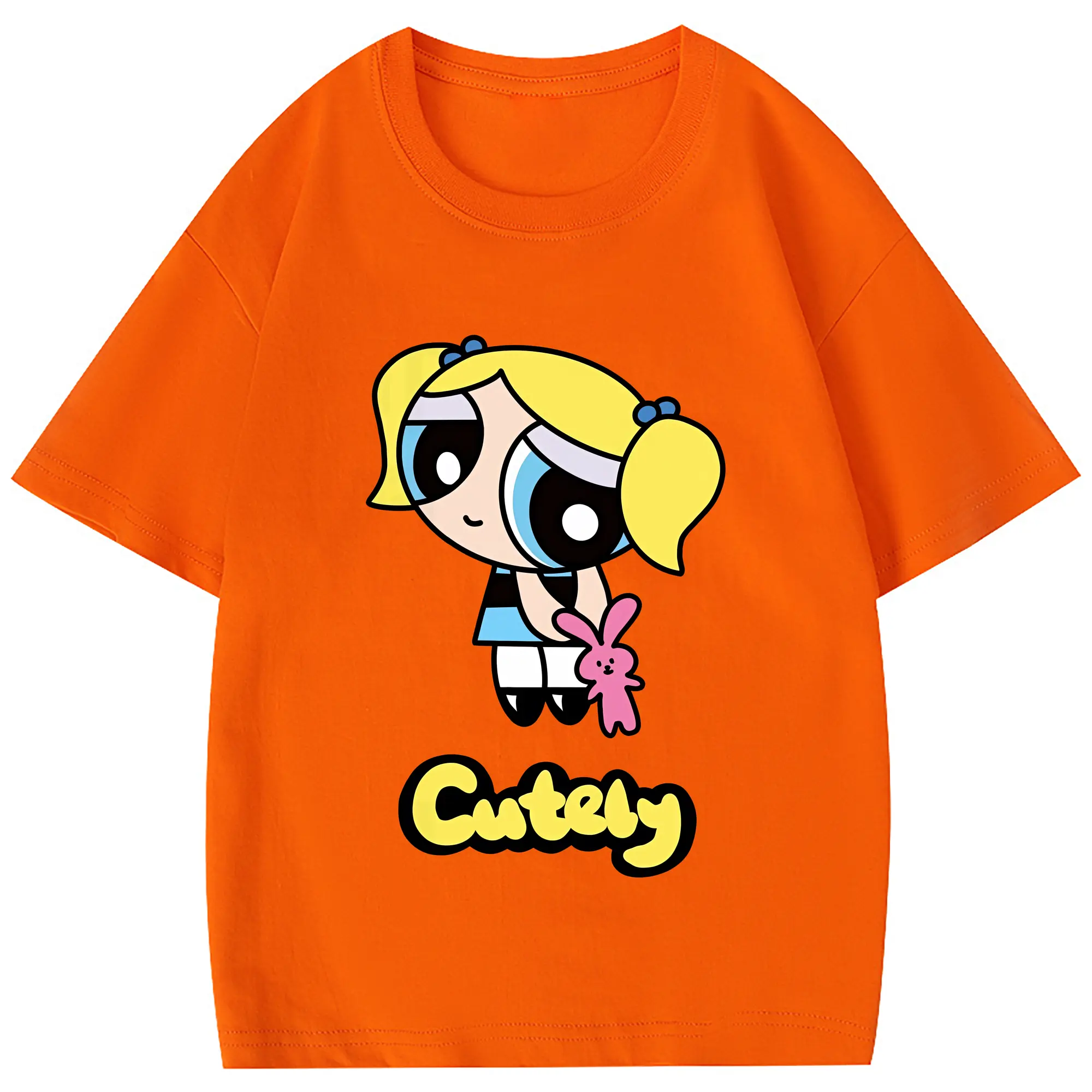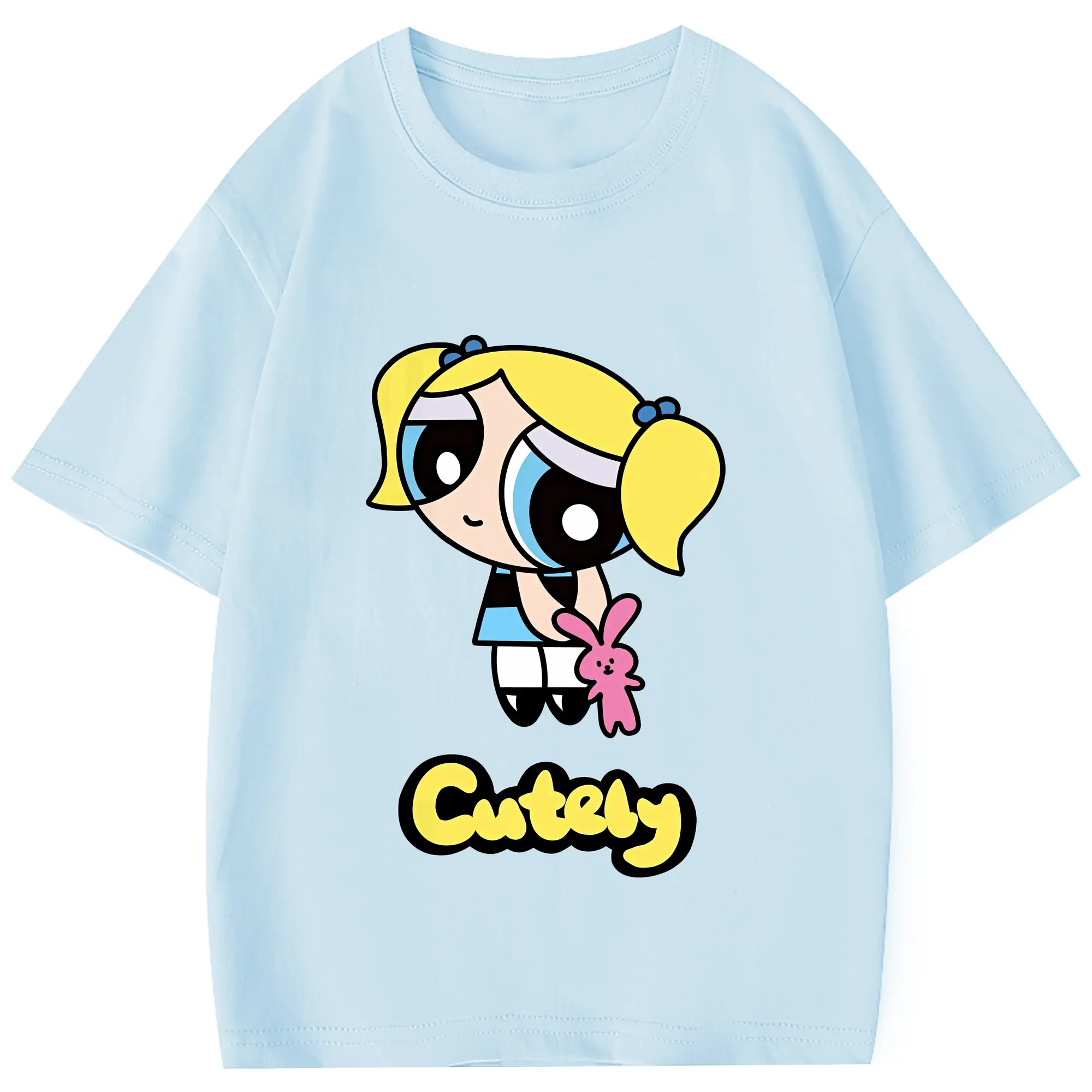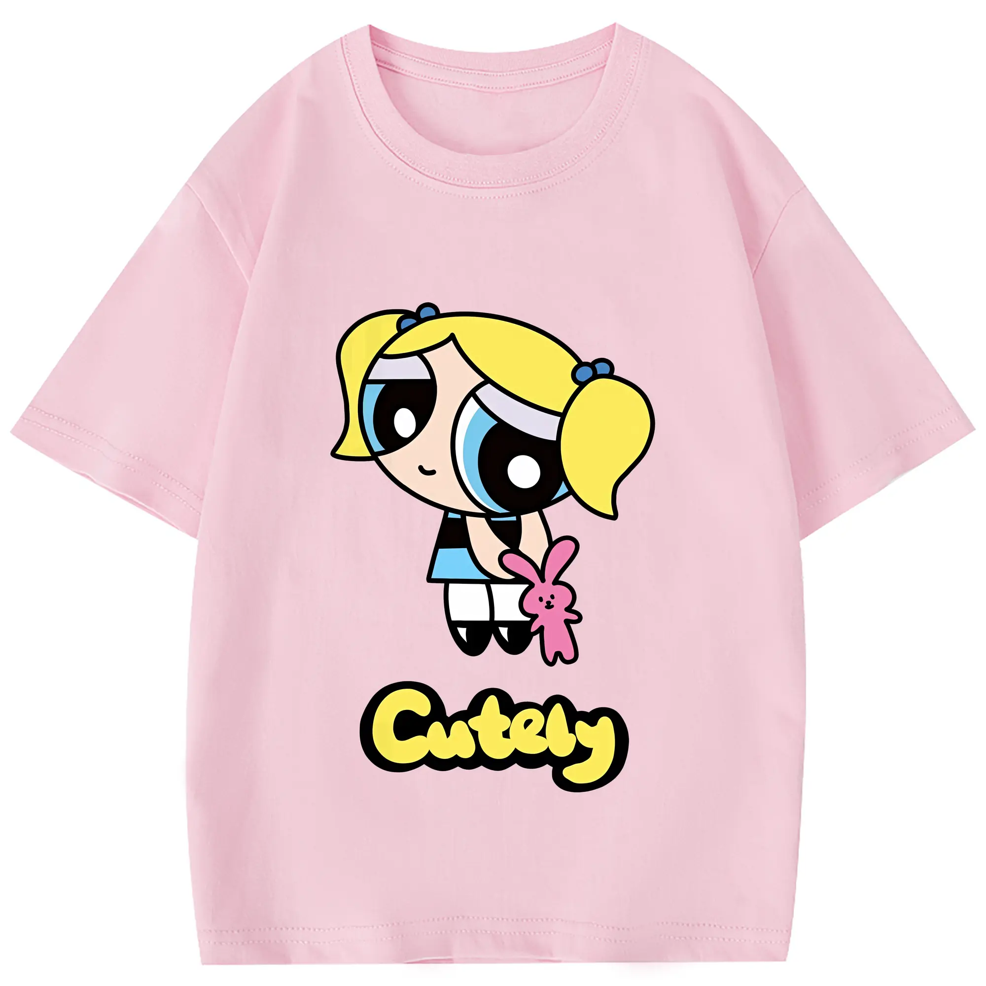 パワパフガールズ グッズ バブルス - 綿100% 半袖Tシャツ ・ フロントプリント ・ 快適 通気性 ・ 日常使い 散歩 スポーツ用