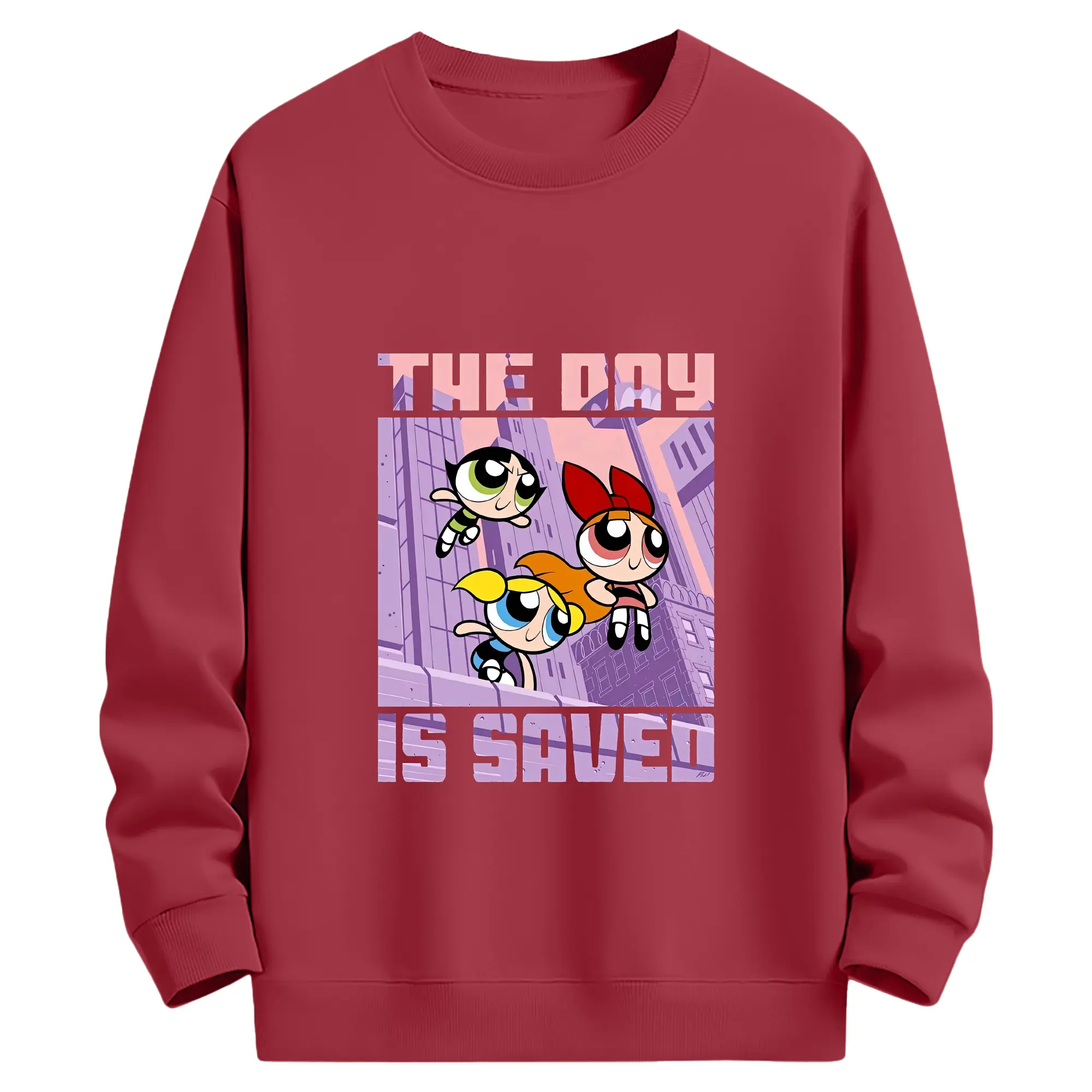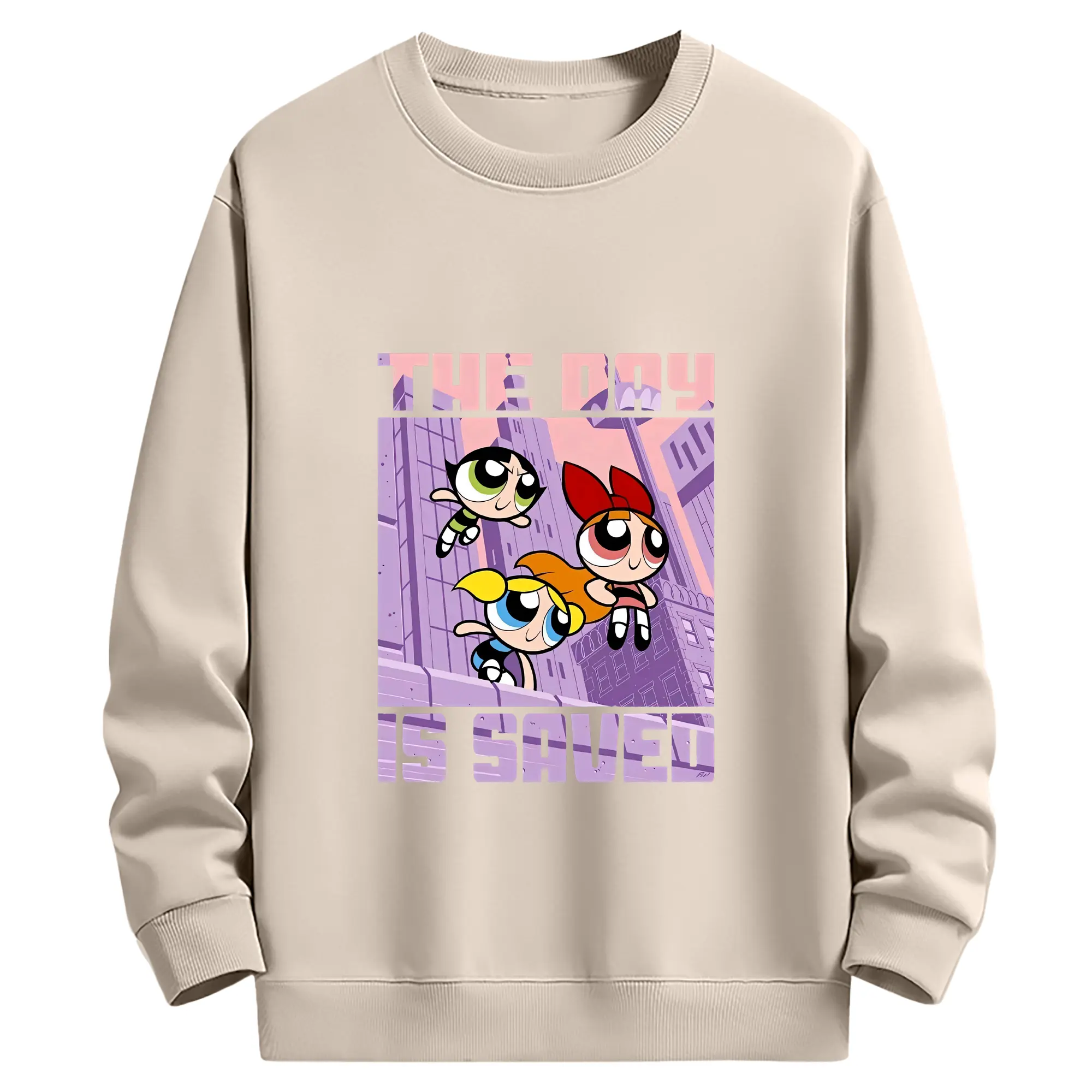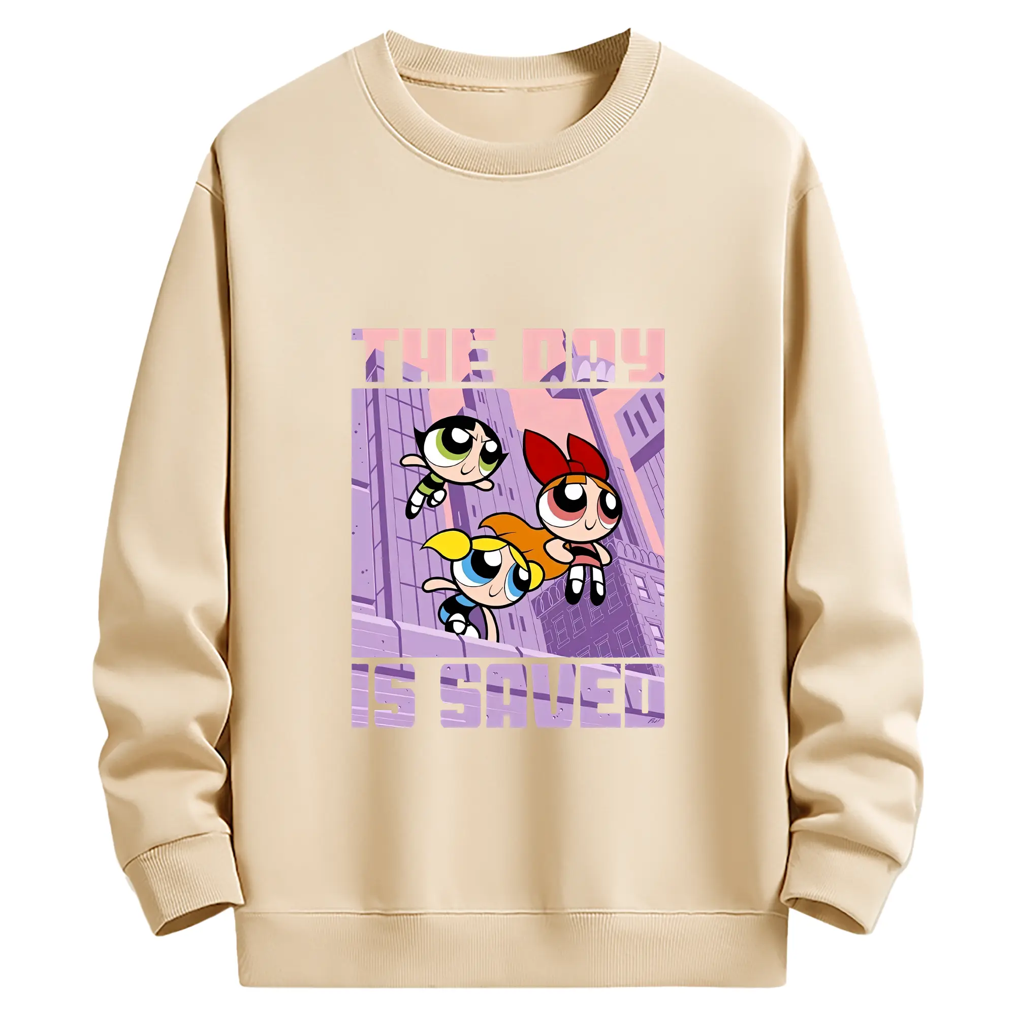 パワパフガールズ グッズ バブルス - 薄手 クルーネック スウェット 裏毛260g · ポリエステル 春秋向け カジュアル 男女兼用 · トレーナー デイリー スポーツ 散歩に最適