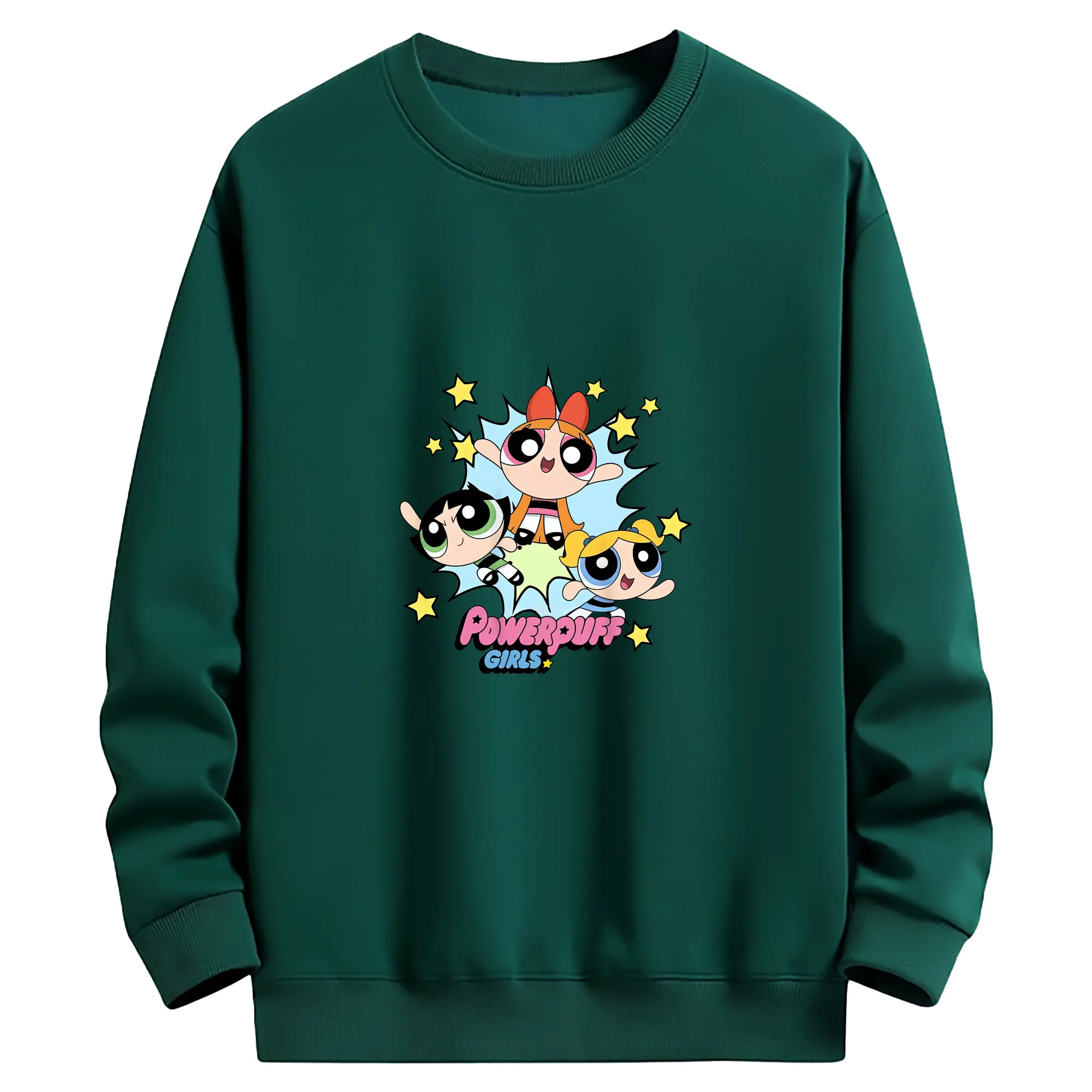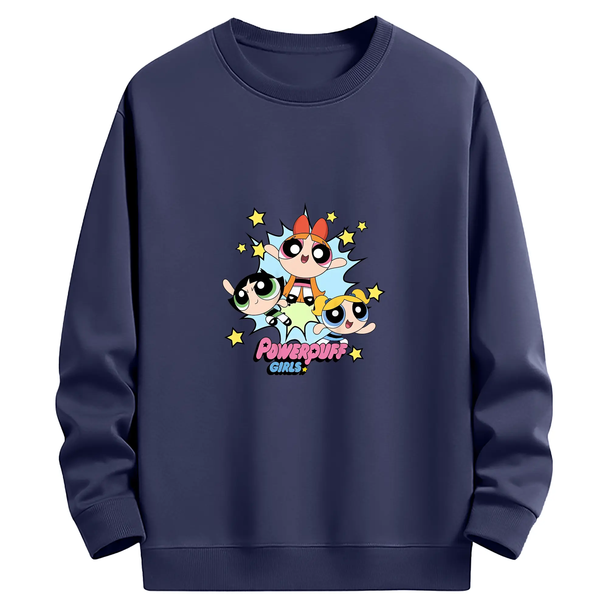 パワパフガールズ グッズ バブルス - 薄手 クルーネック スウェット 裏毛260g · ポリエステル 春秋向け カジュアル 男女兼用 · トレーナー デイリー スポーツ 散歩に最適