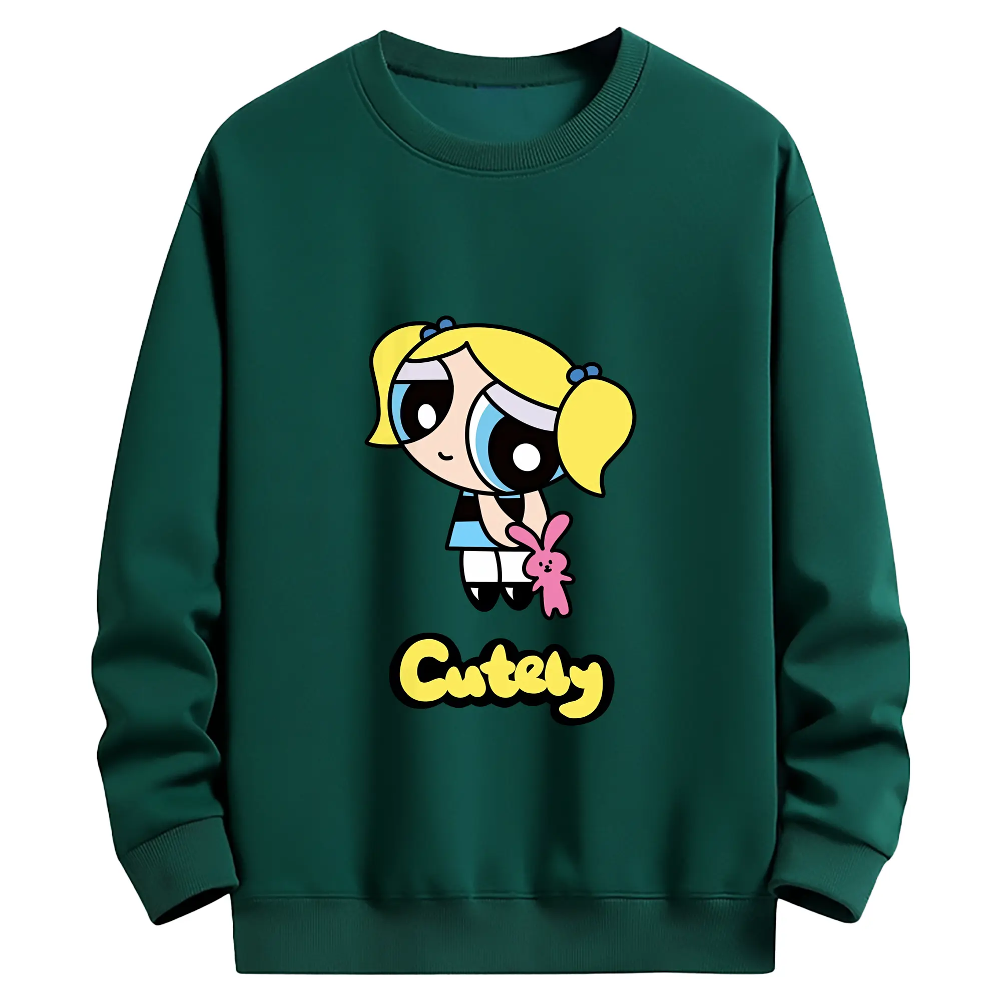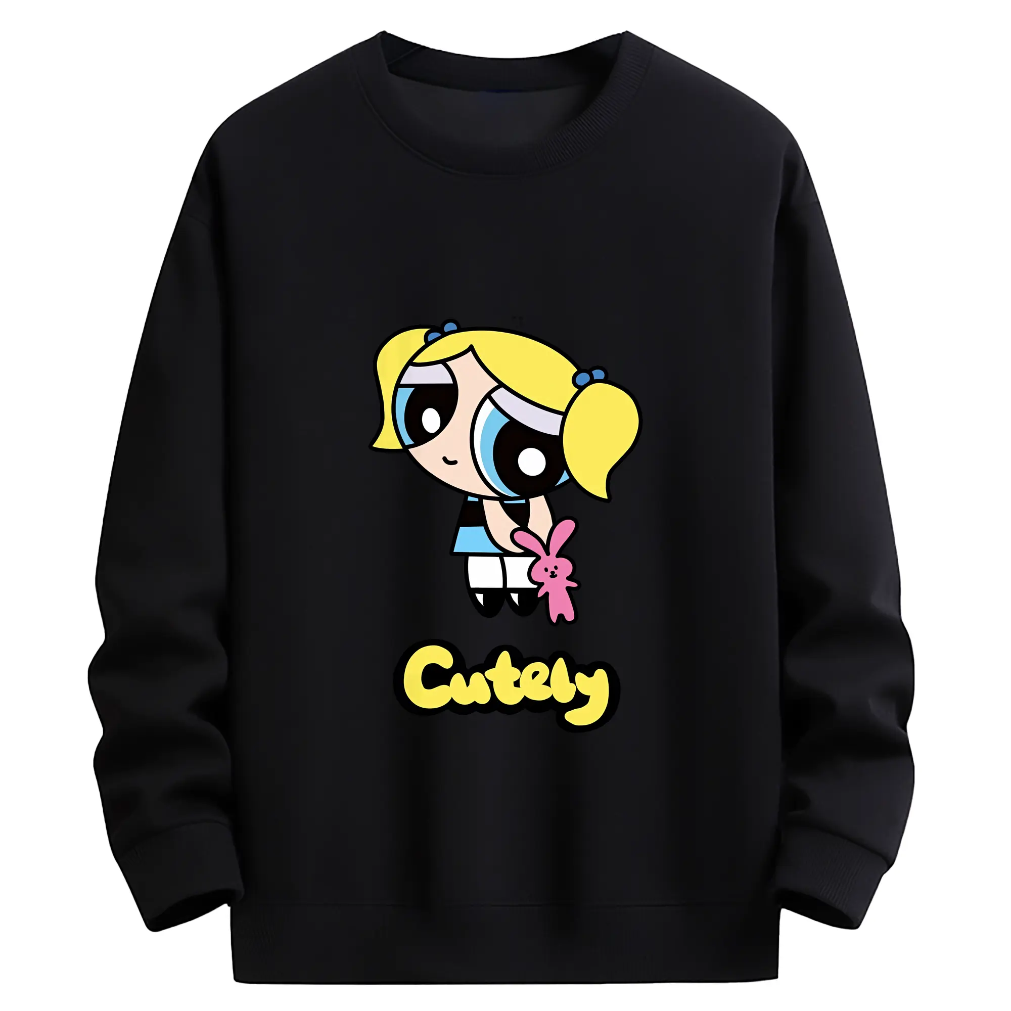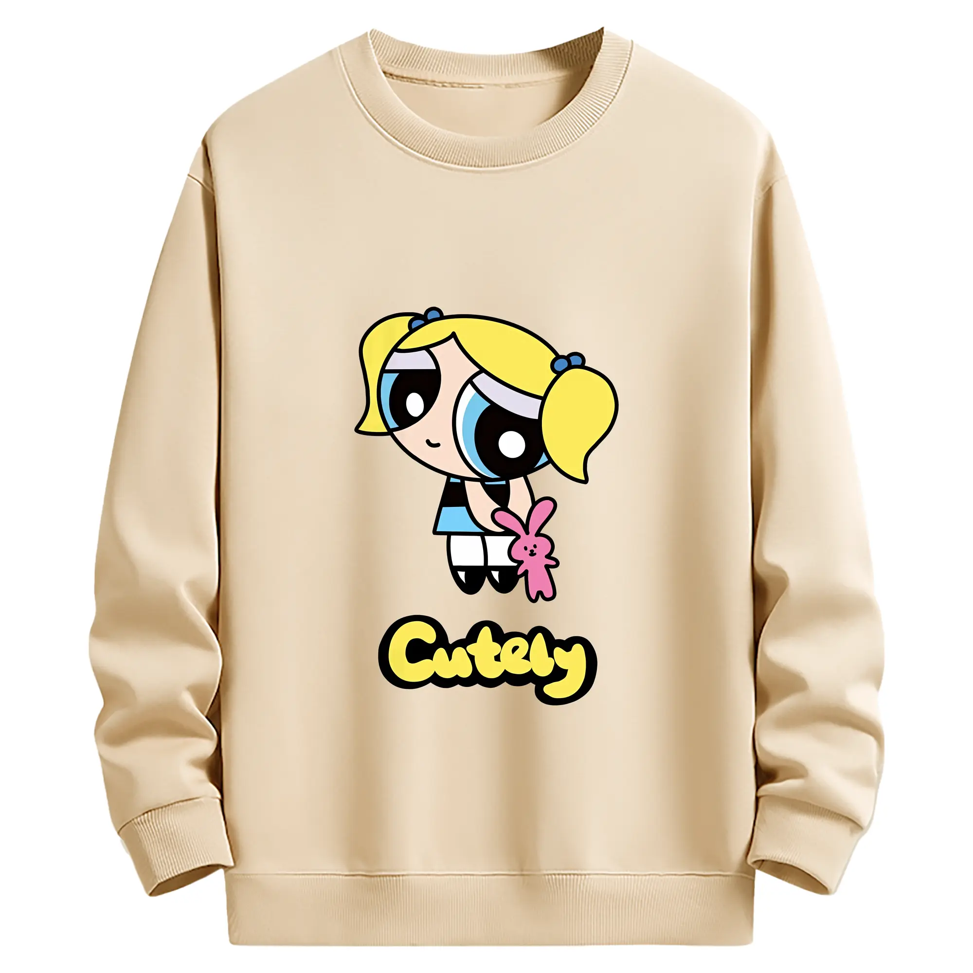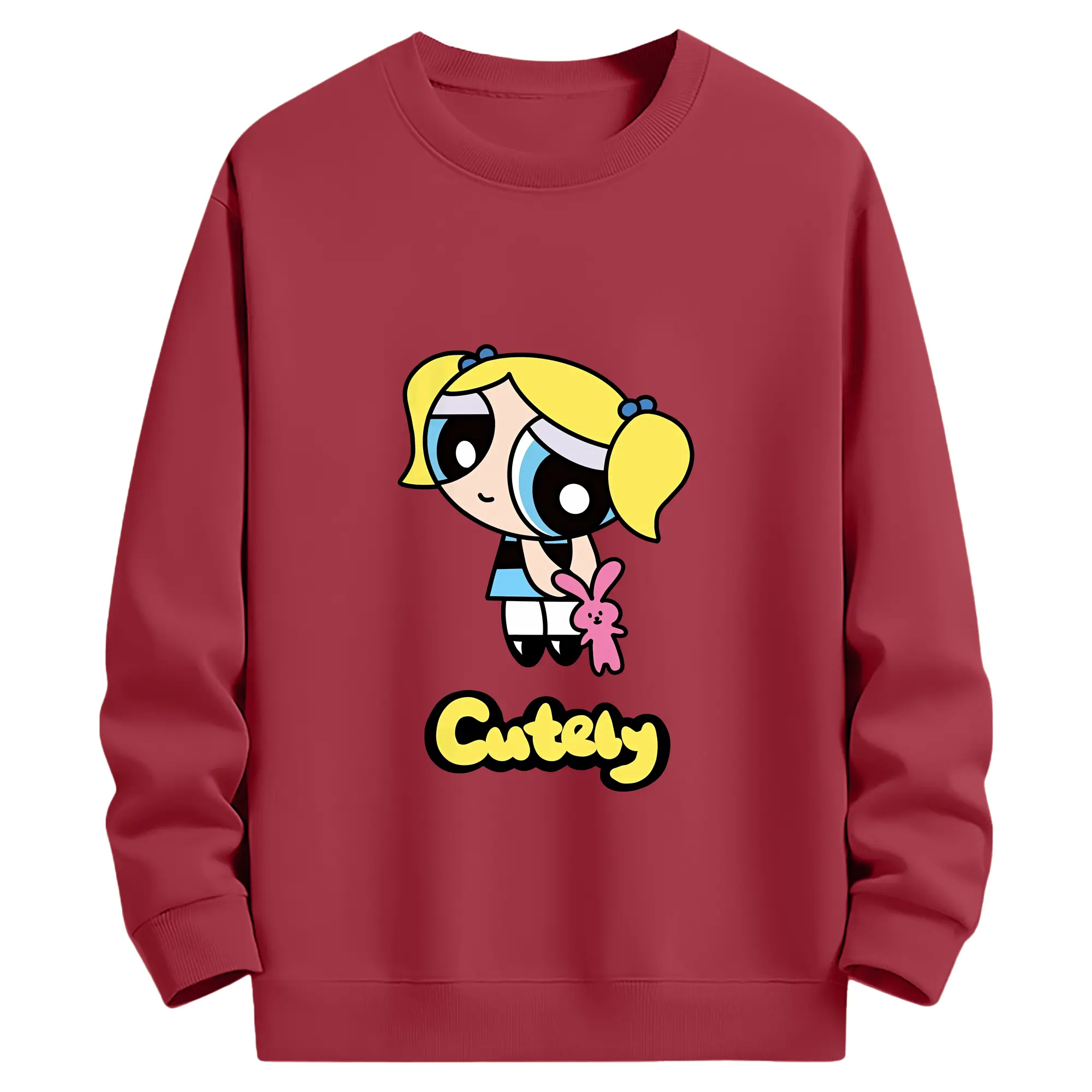 パワパフガールズ グッズ バブルス - 薄手 クルーネック スウェット 裏毛260g · ポリエステル 春秋向け カジュアル 男女兼用 · トレーナー デイリー スポーツ 散歩に最適