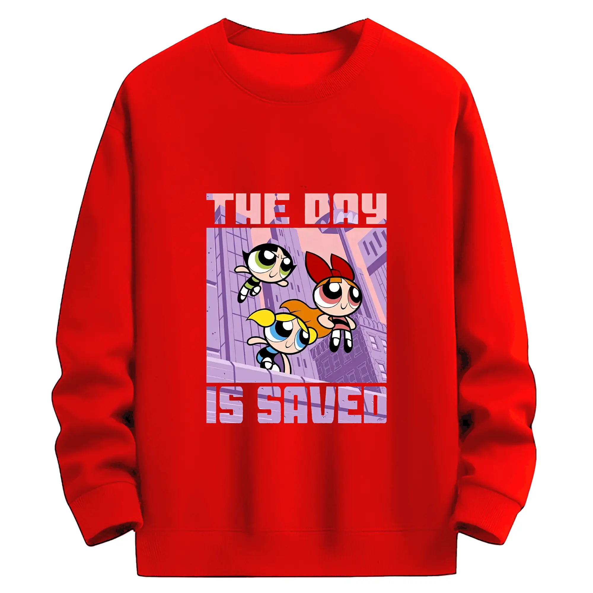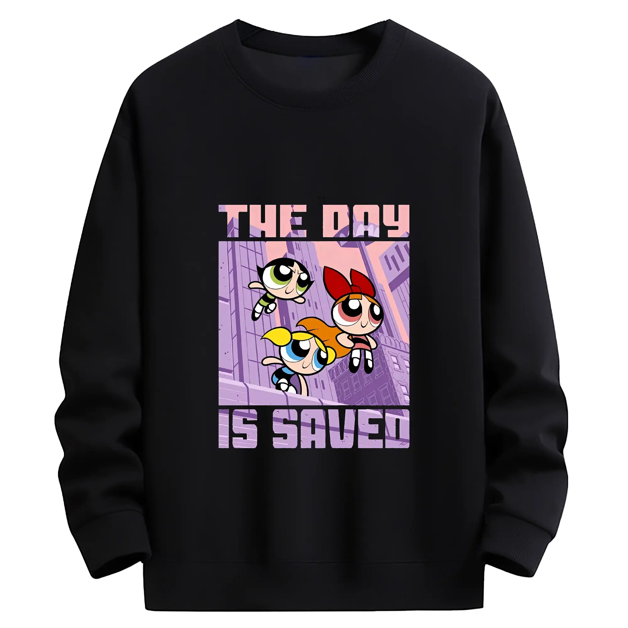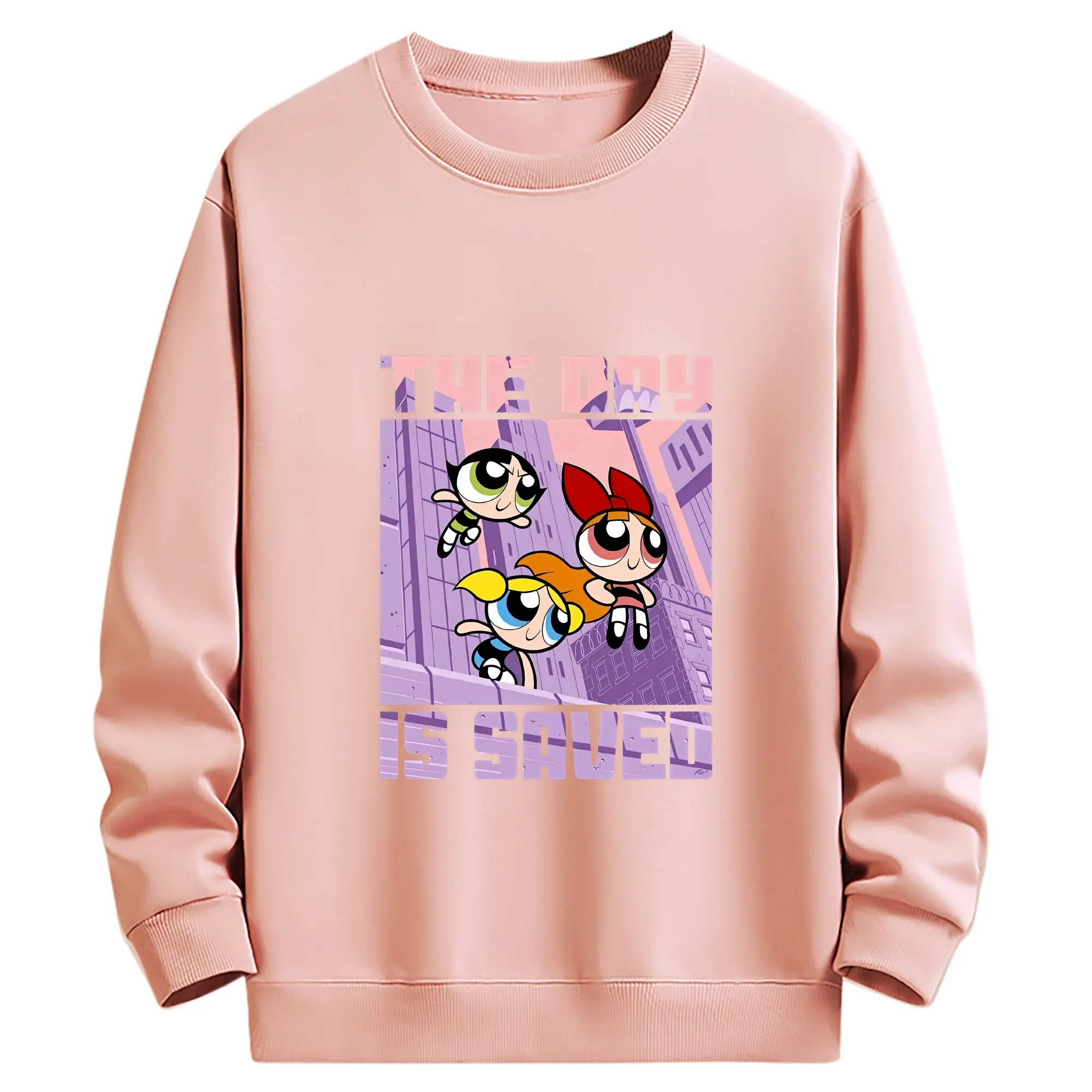 パワパフガールズ グッズ バブルス - 薄手 クルーネック スウェット 裏毛260g · ポリエステル 春秋向け カジュアル 男女兼用 · トレーナー デイリー スポーツ 散歩に最適