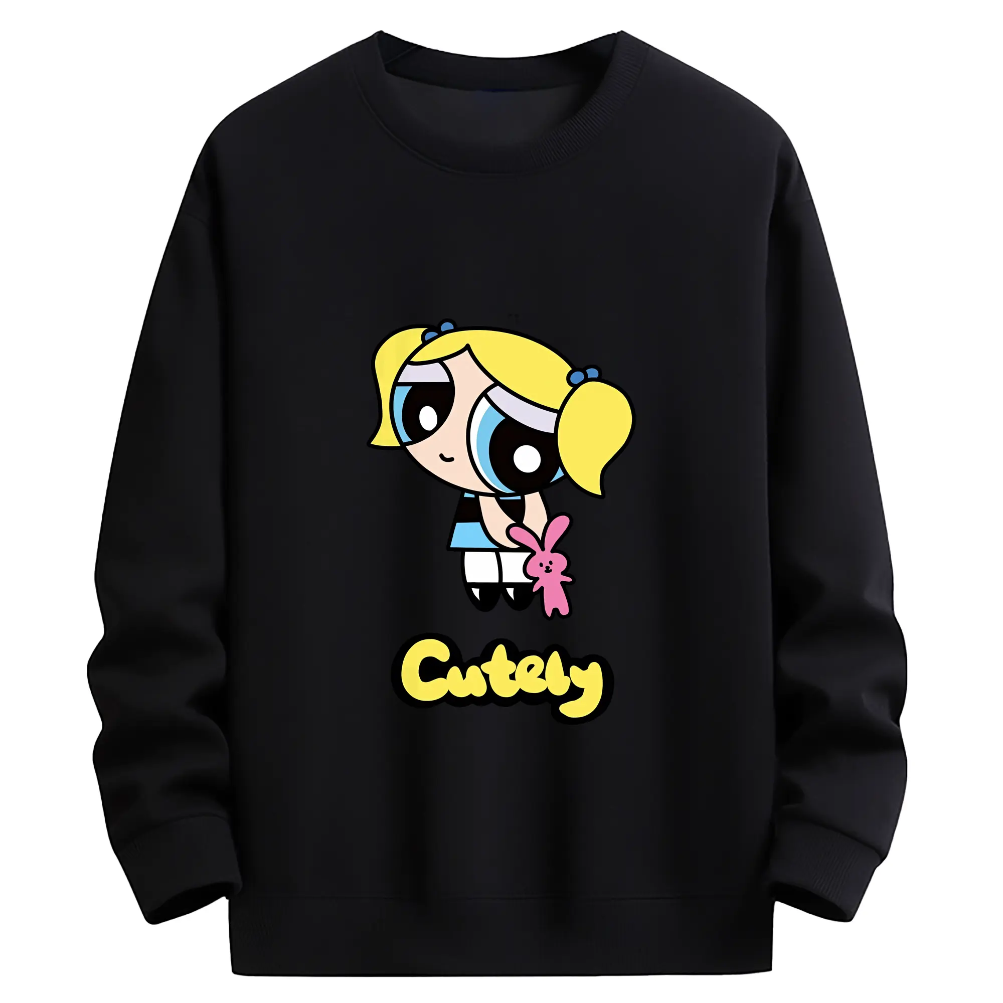 パワパフガールズ グッズ バブルス - 高品質 クルーネック スウェット ・ コットン59% ポリエステル41% ・ ユニセックス 長袖 トレーナー ・ カジュアル デイリー スポーツ 散歩用