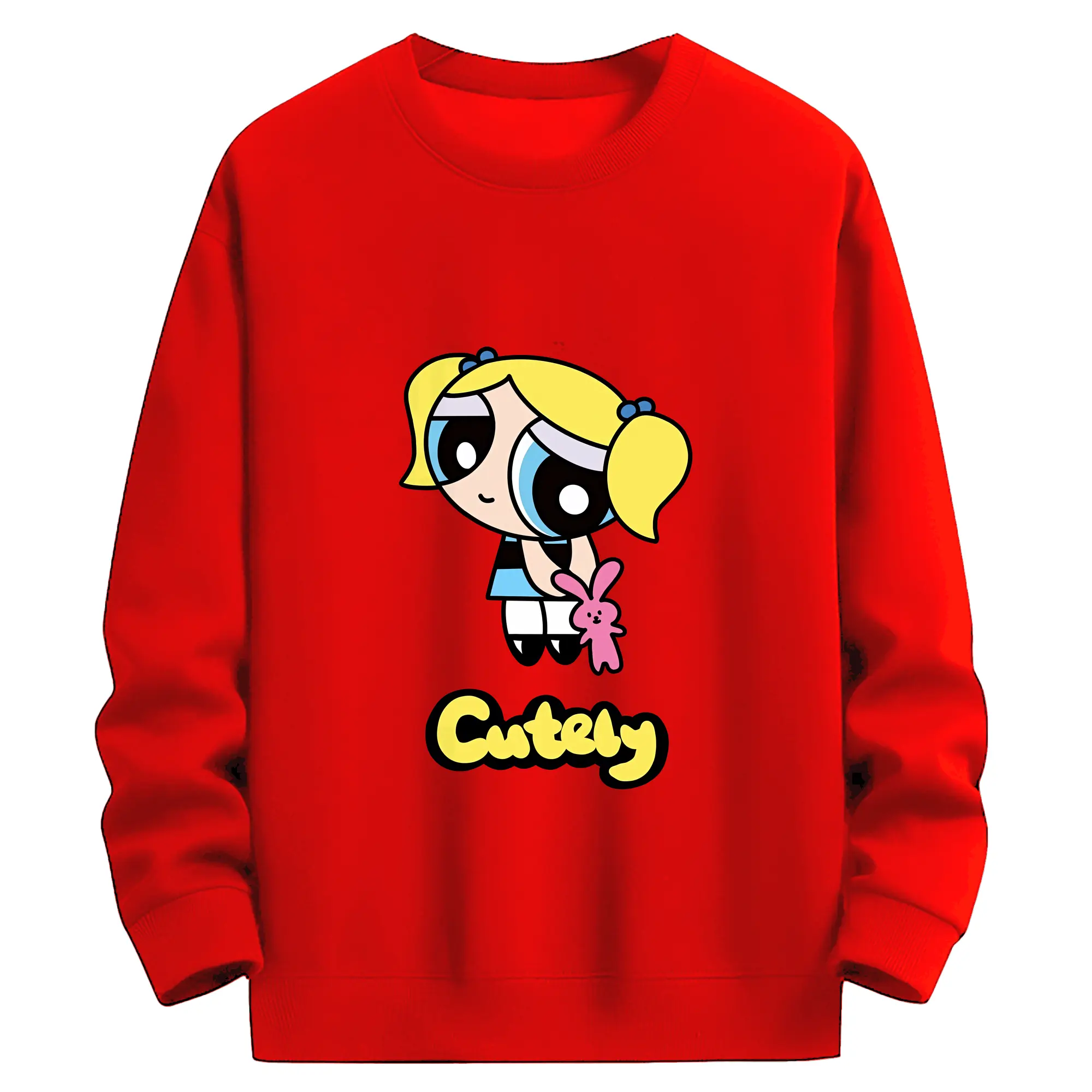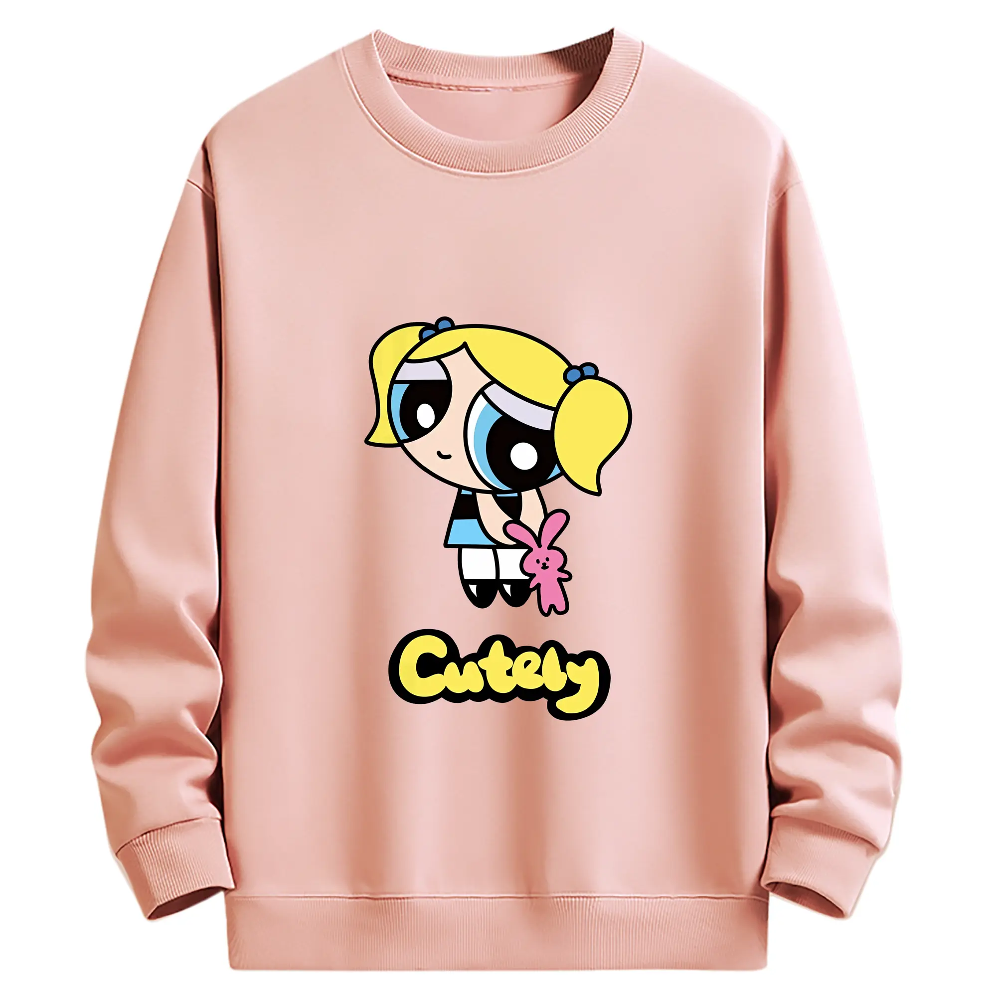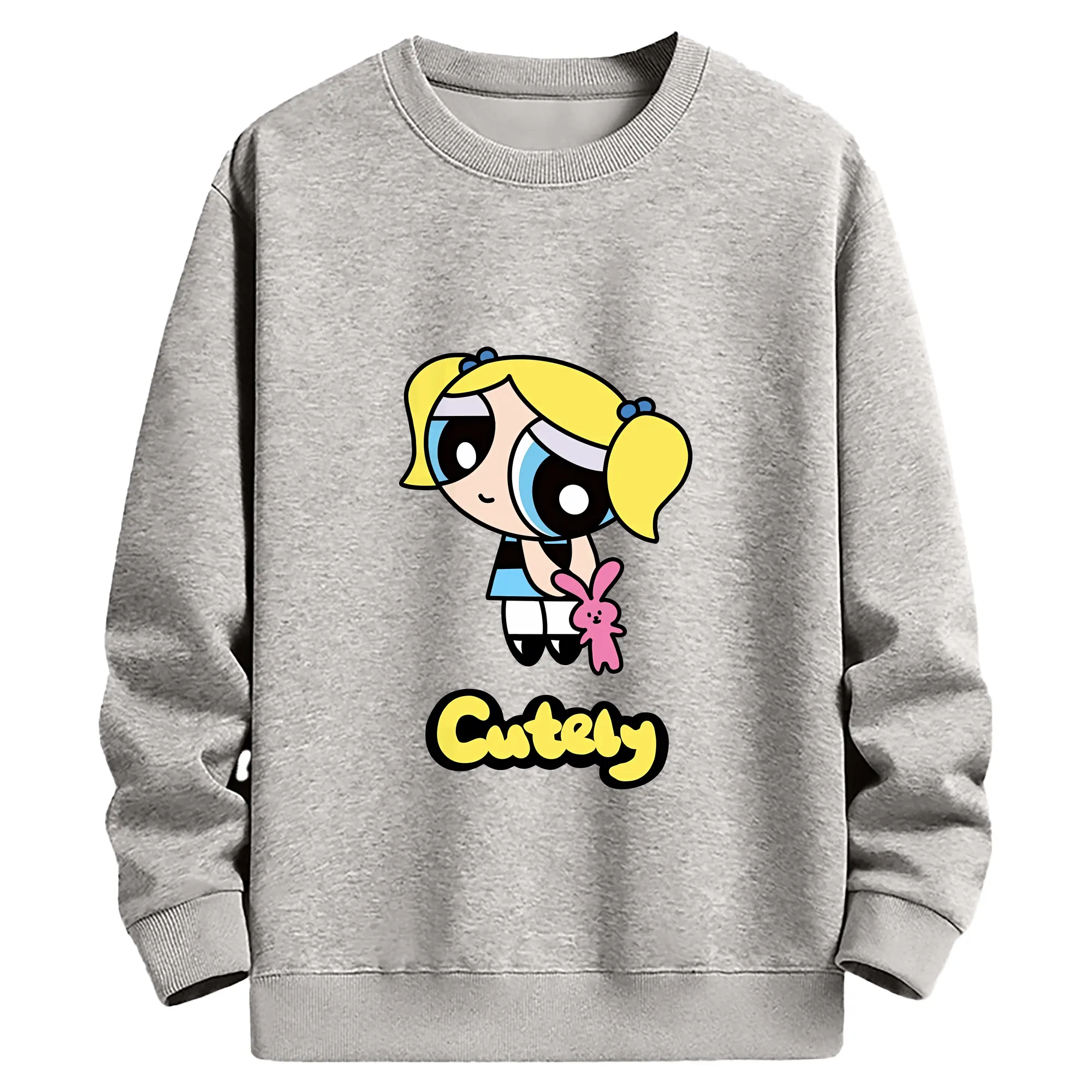パワパフガールズ グッズ バブルス - 薄手 クルーネック スウェット 裏毛260g · ポリエステル 春秋向け カジュアル 男女兼用 · トレーナー デイリー スポーツ 散歩に最適