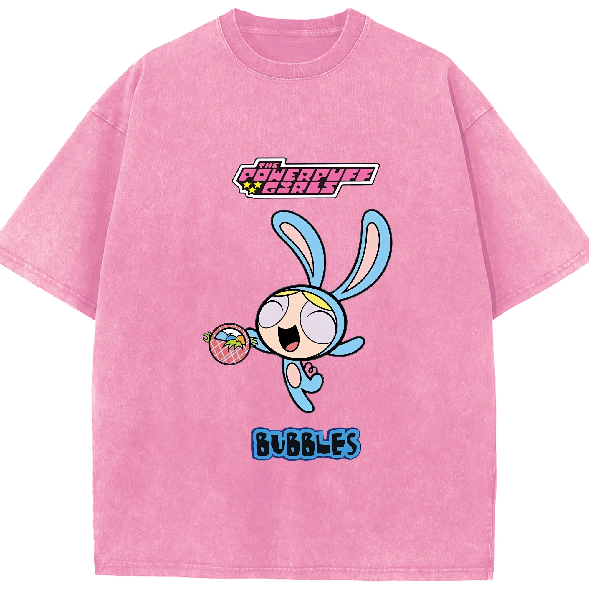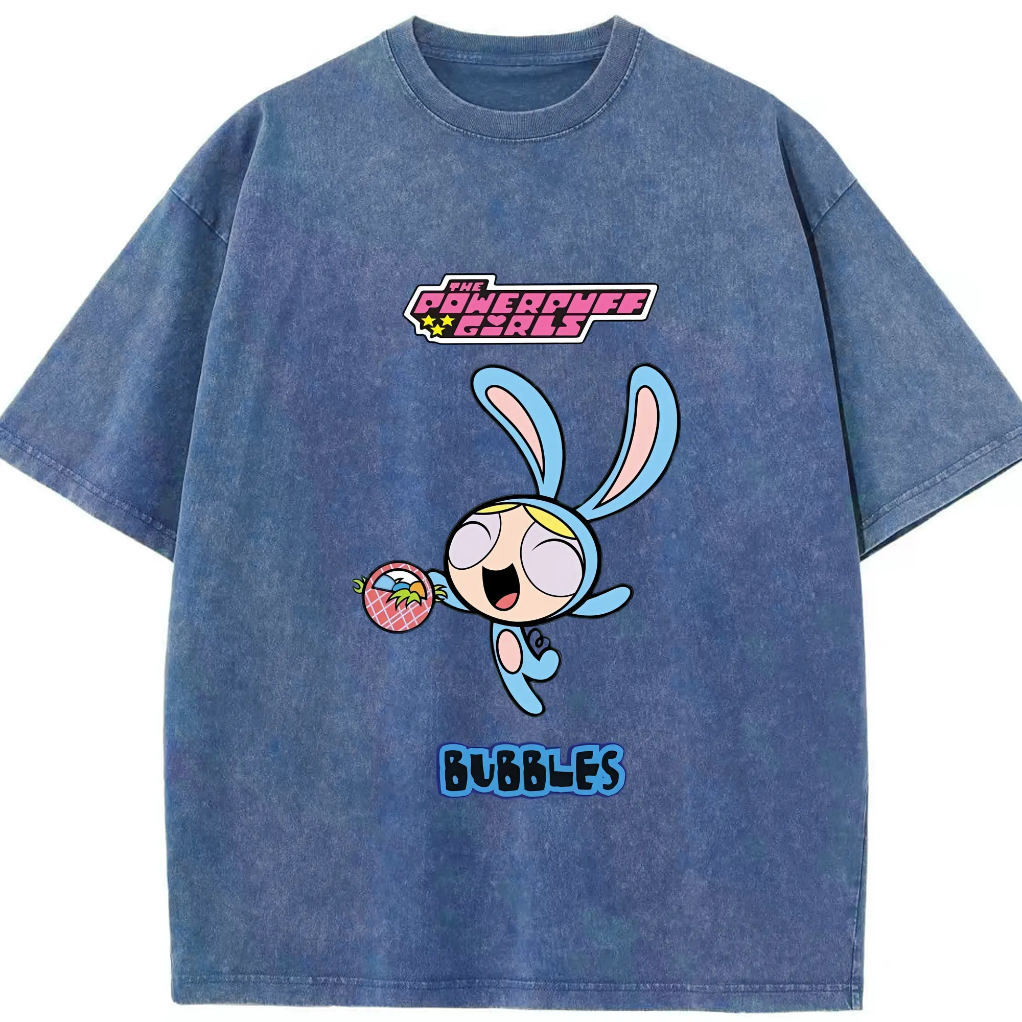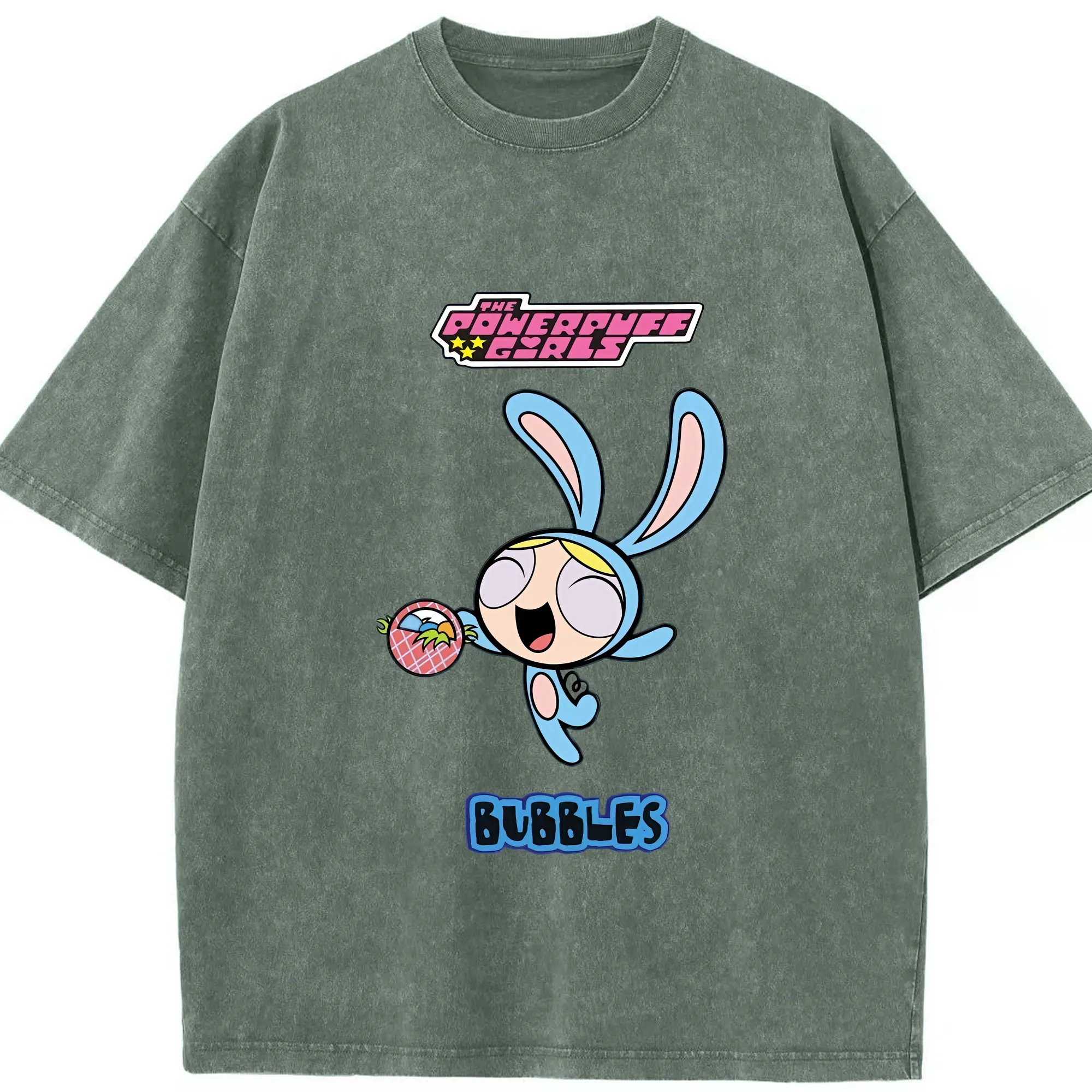 パワパフガールズ グッズ バブルス - 綿100% ヴィンテージ風 半袖Tシャツ ・ 背面プリント ・ 柔らか肌触り ・ 通気性 快適 ・ スポーツ カジュアル 外出用