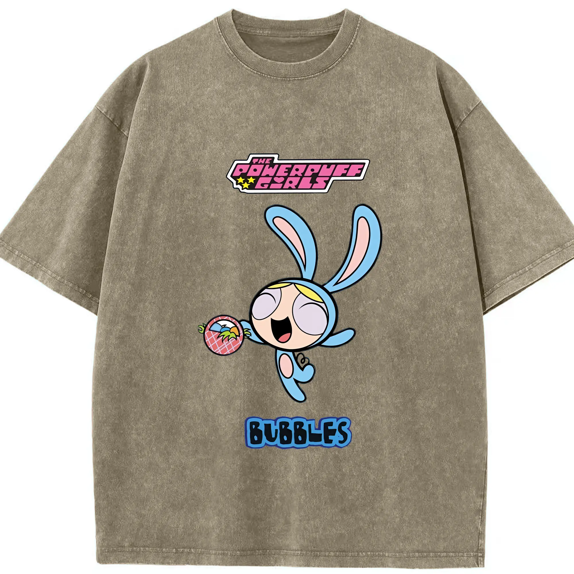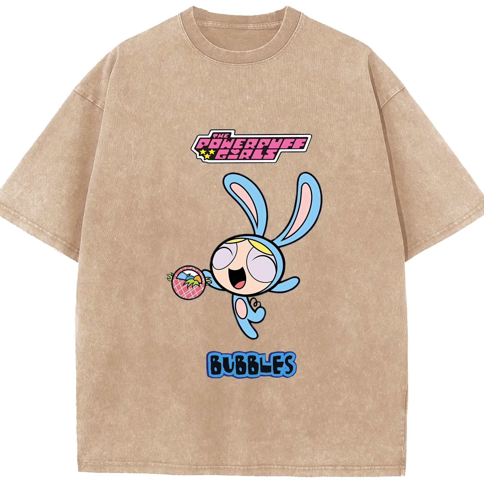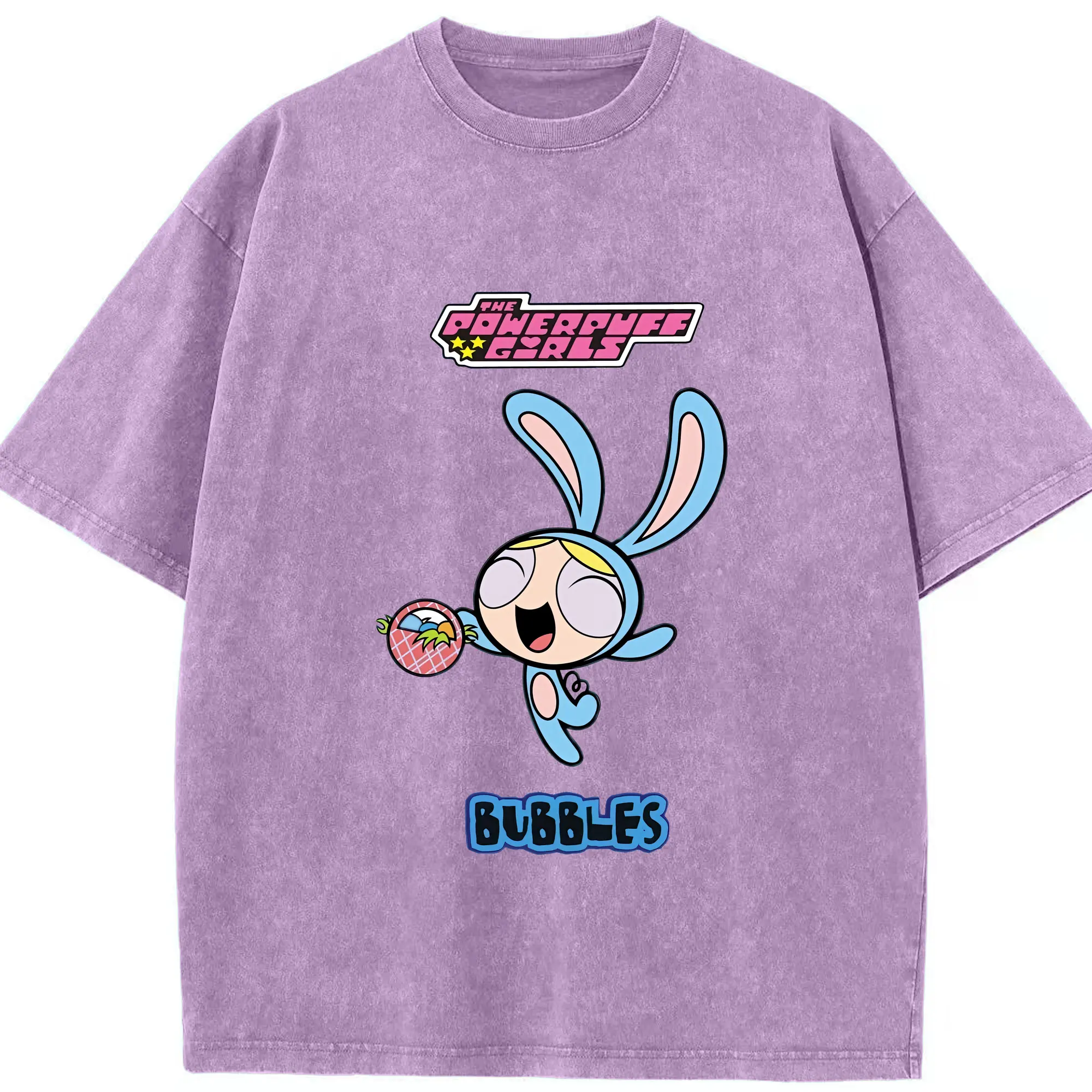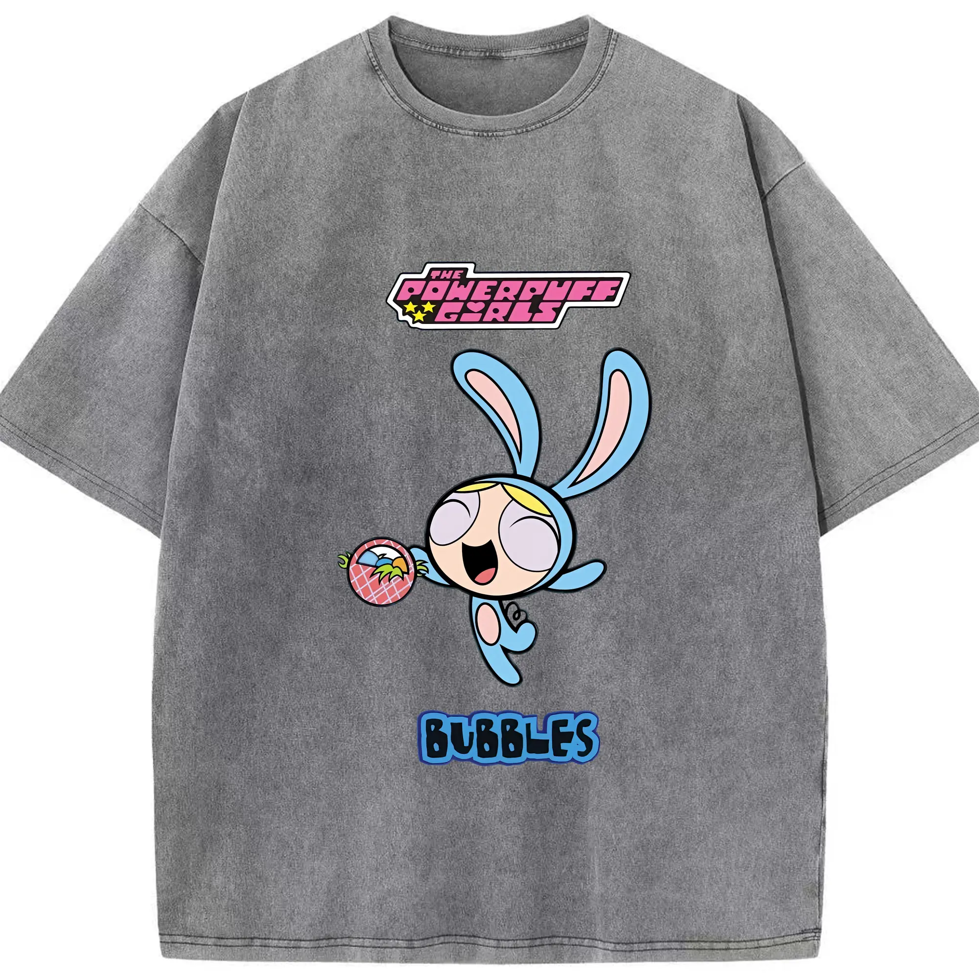 パワパフガールズ グッズ バブルス - 綿100% ヴィンテージ風 半袖Tシャツ ・ 背面プリント ・ 柔らか肌触り ・ 通気性 快適 ・ スポーツ カジュアル 外出用