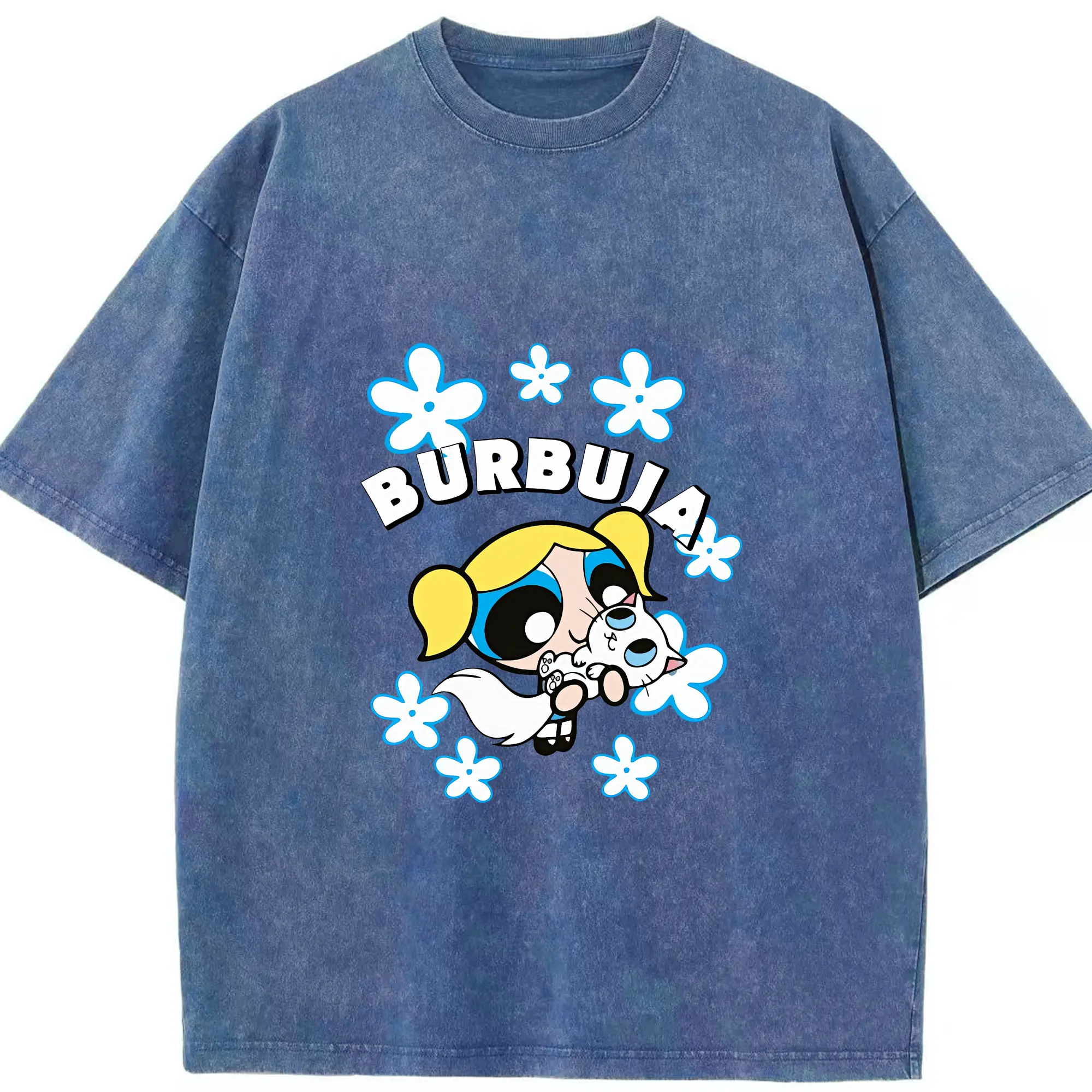 パワパフガールズ グッズ バブルス - 綿100% ヴィンテージ風 半袖Tシャツ ・ 背面プリント ・ 柔らか肌触り ・ 通気性 快適 ・ スポーツ カジュアル 外出用