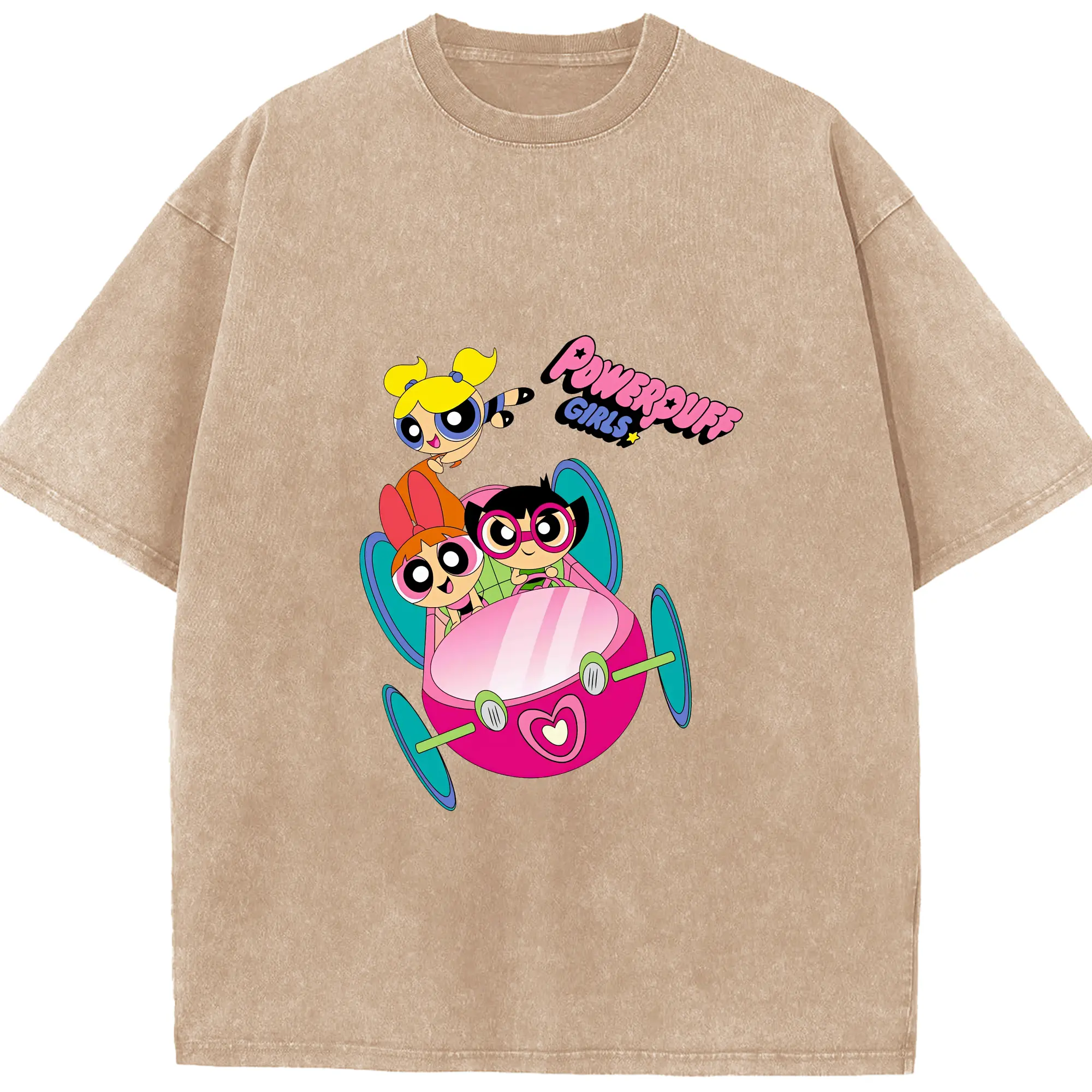 パワパフガールズ グッズ バブルス - 綿100% ヴィンテージ風 半袖Tシャツ ・ 背面プリント ・ 柔らか肌触り ・ 通気性 快適 ・ スポーツ カジュアル 外出用