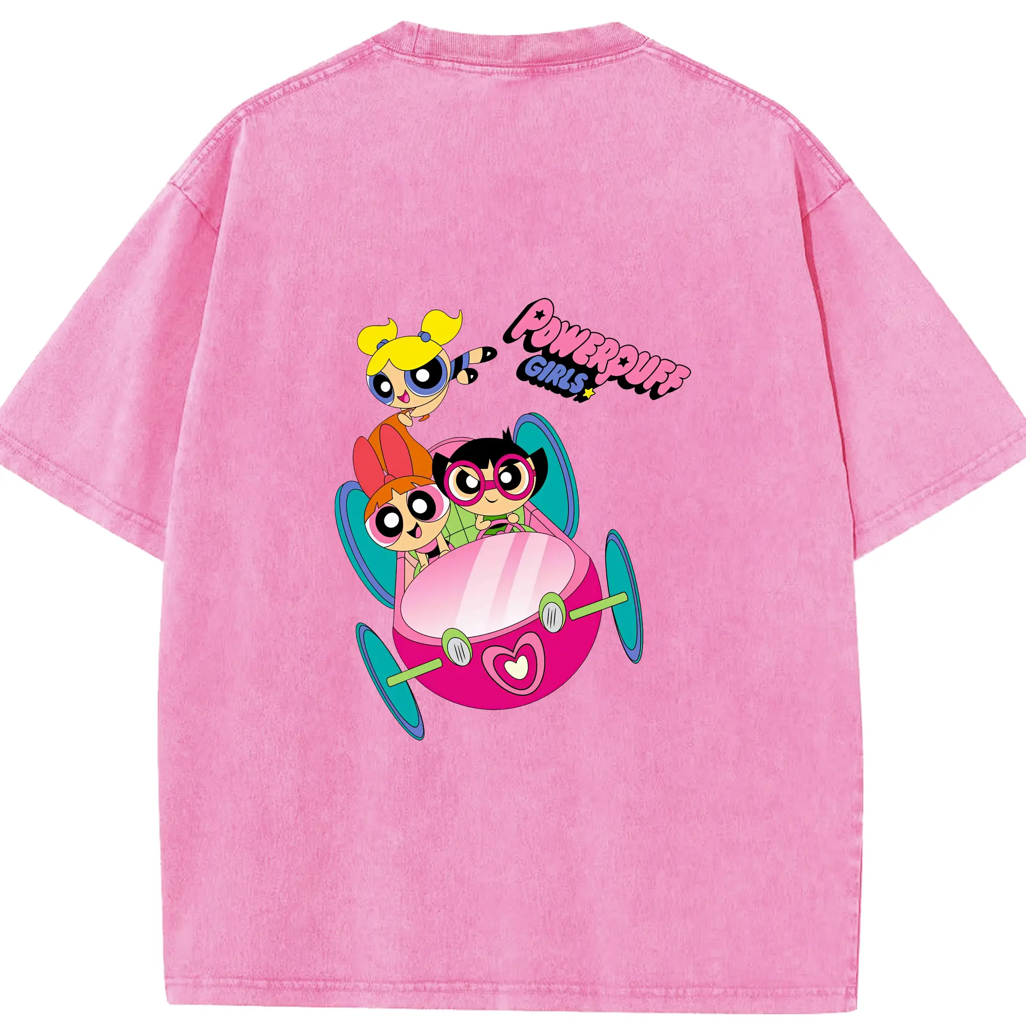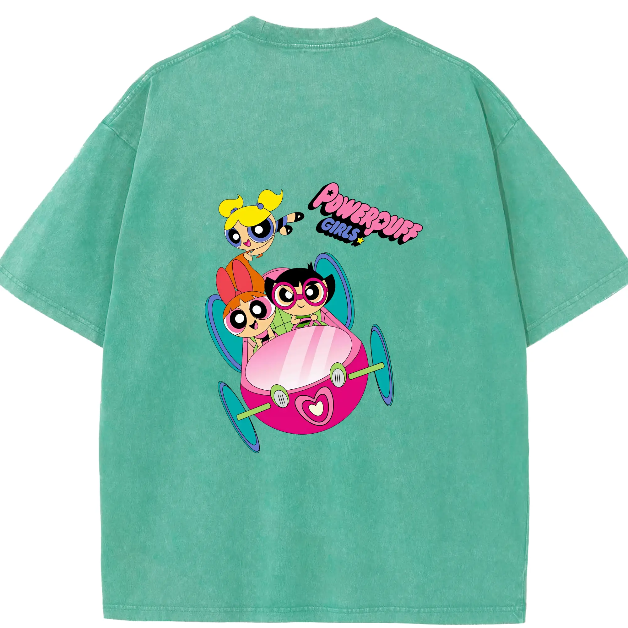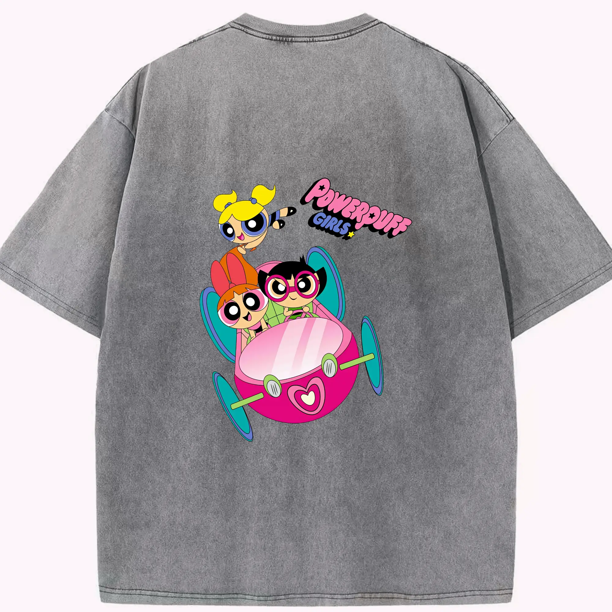 パワパフガールズ グッズ バブルス - 綿100% ヴィンテージ風 半袖Tシャツ ・ フロントプリント ・ 柔らか肌触り ・ 通気性 快適 ・ スポーツ カジュアル 外出用