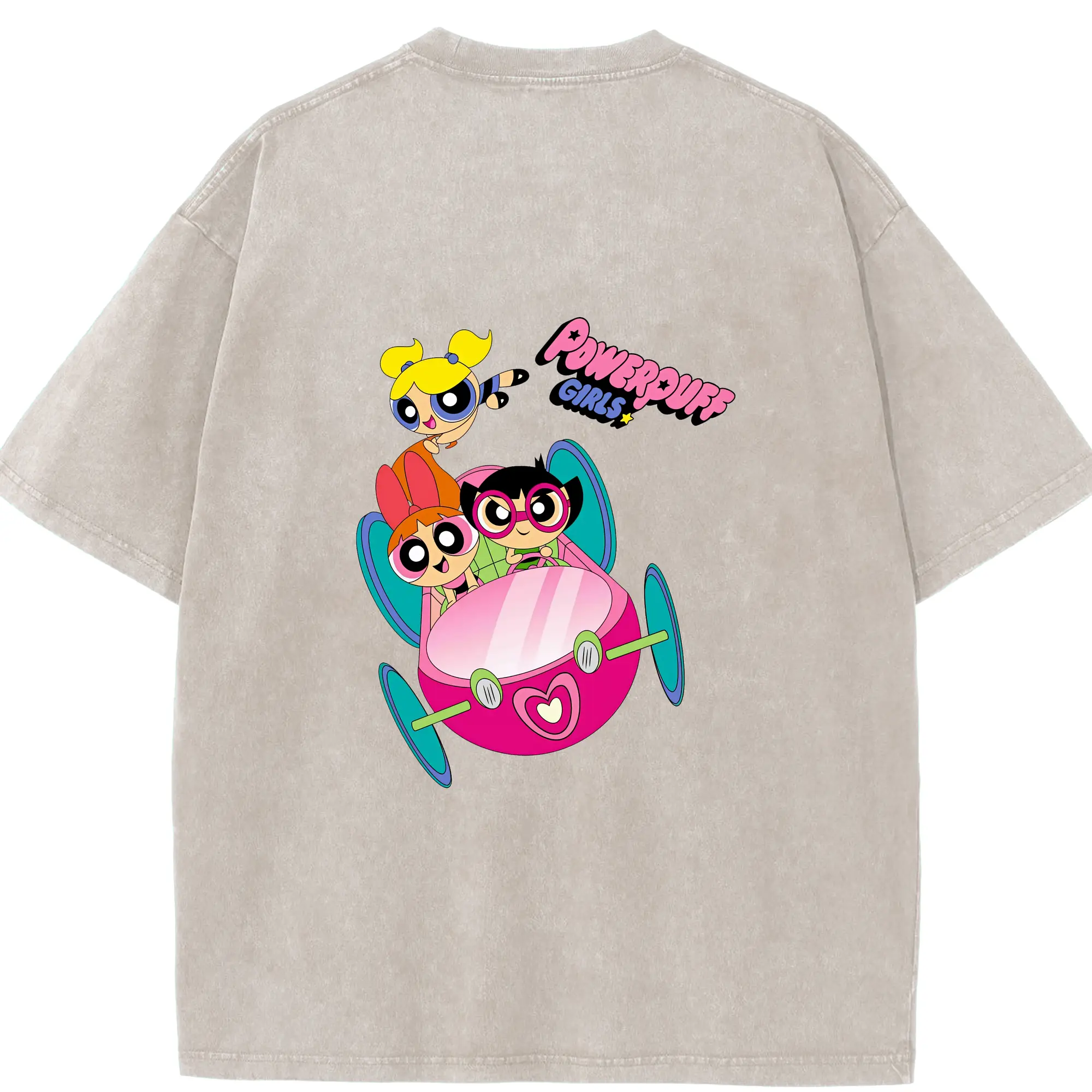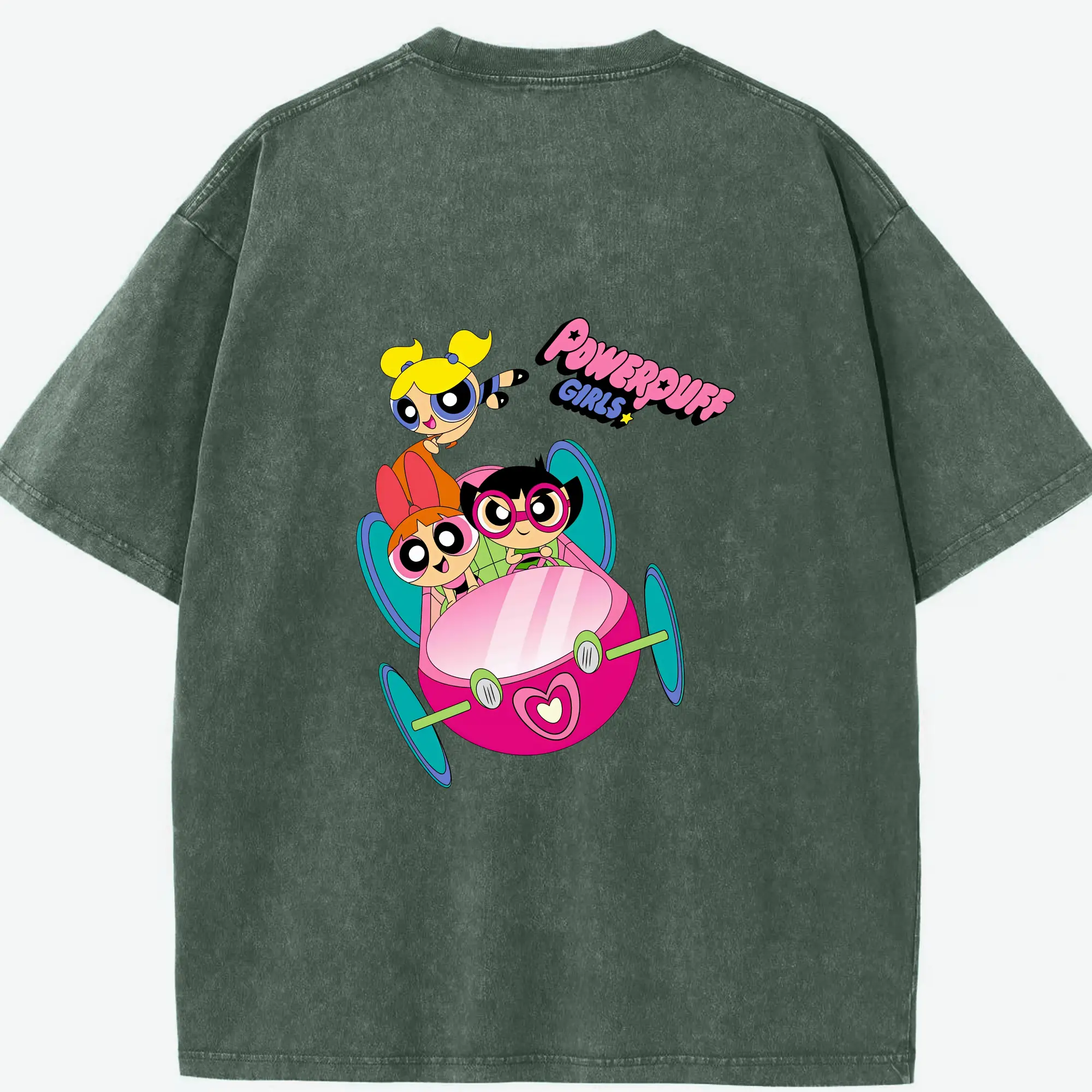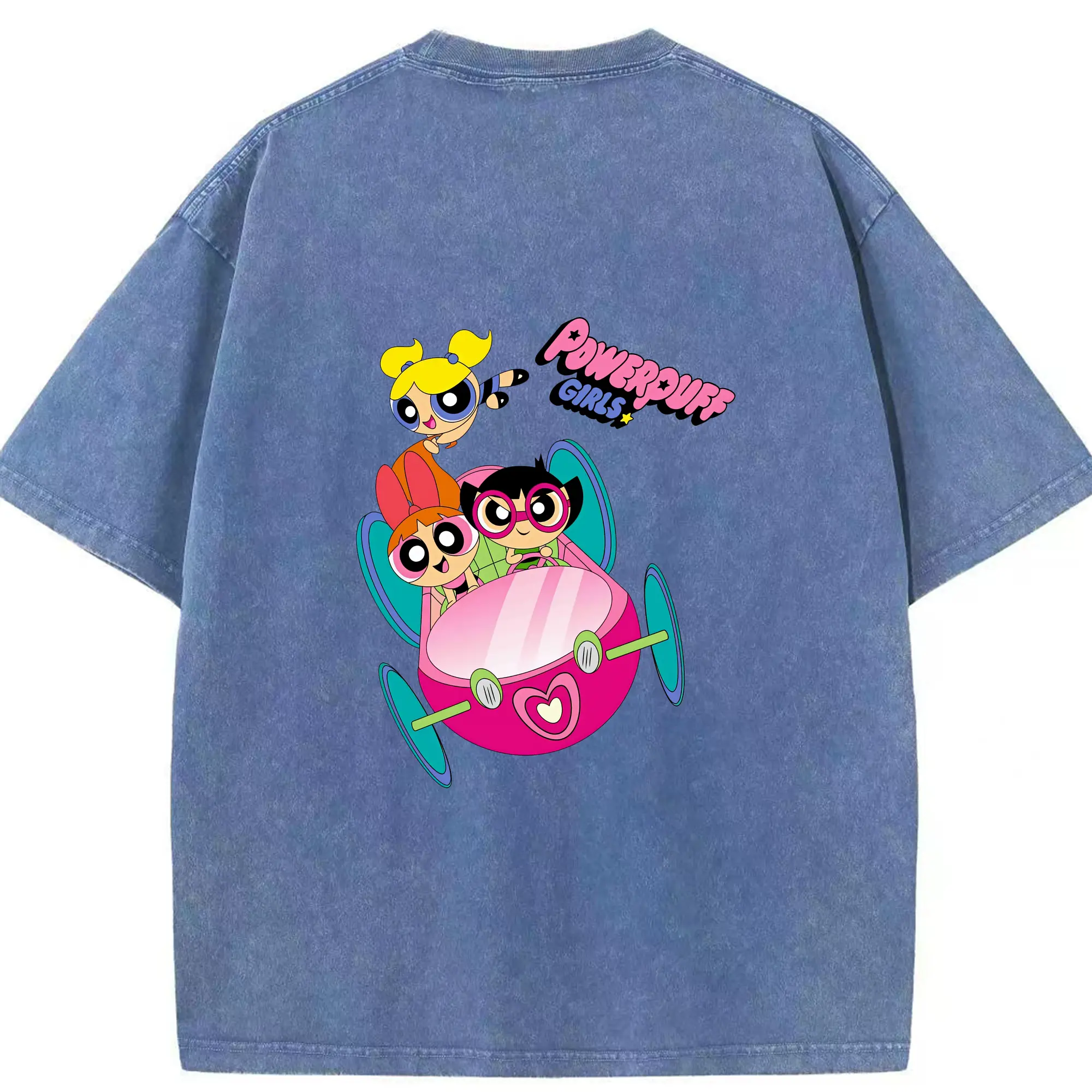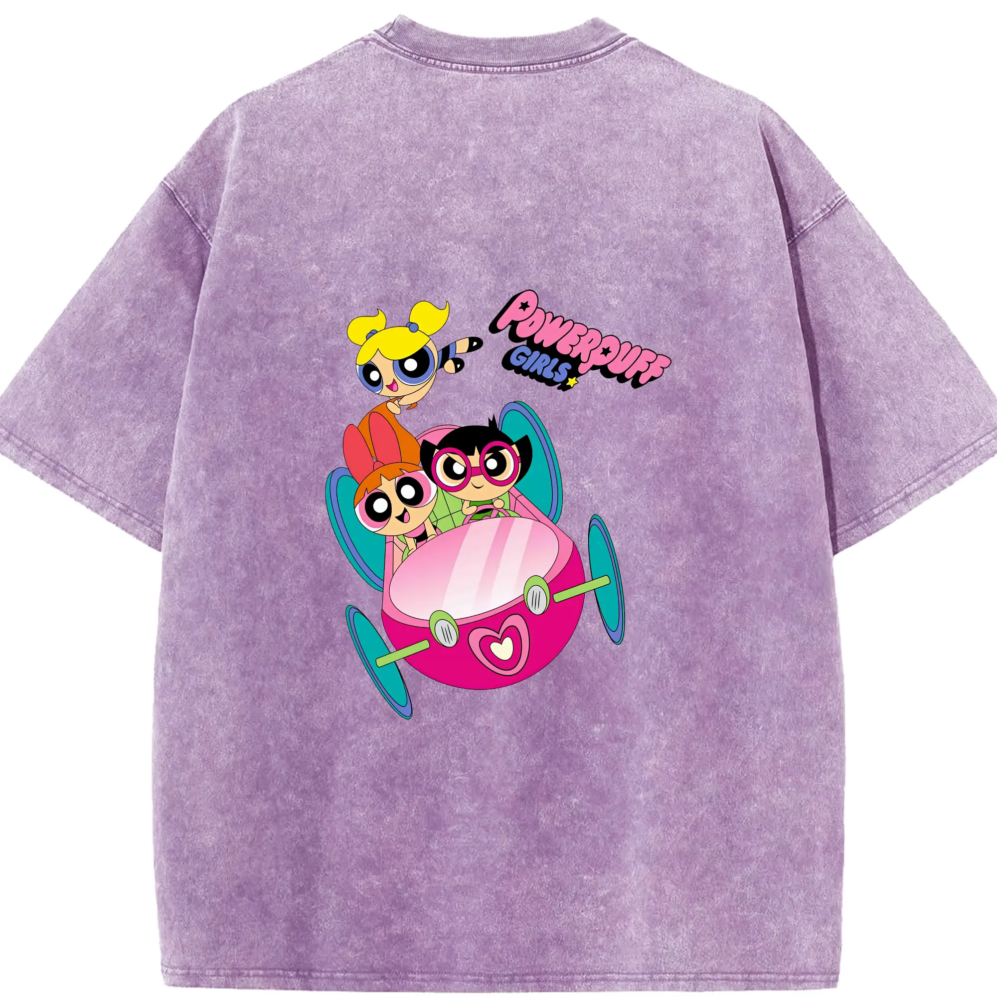 パワパフガールズ グッズ バブルス - 綿100% ヴィンテージ風 半袖Tシャツ ・ フロントプリント ・ 柔らか肌触り ・ 通気性 快適 ・ スポーツ カジュアル 外出用