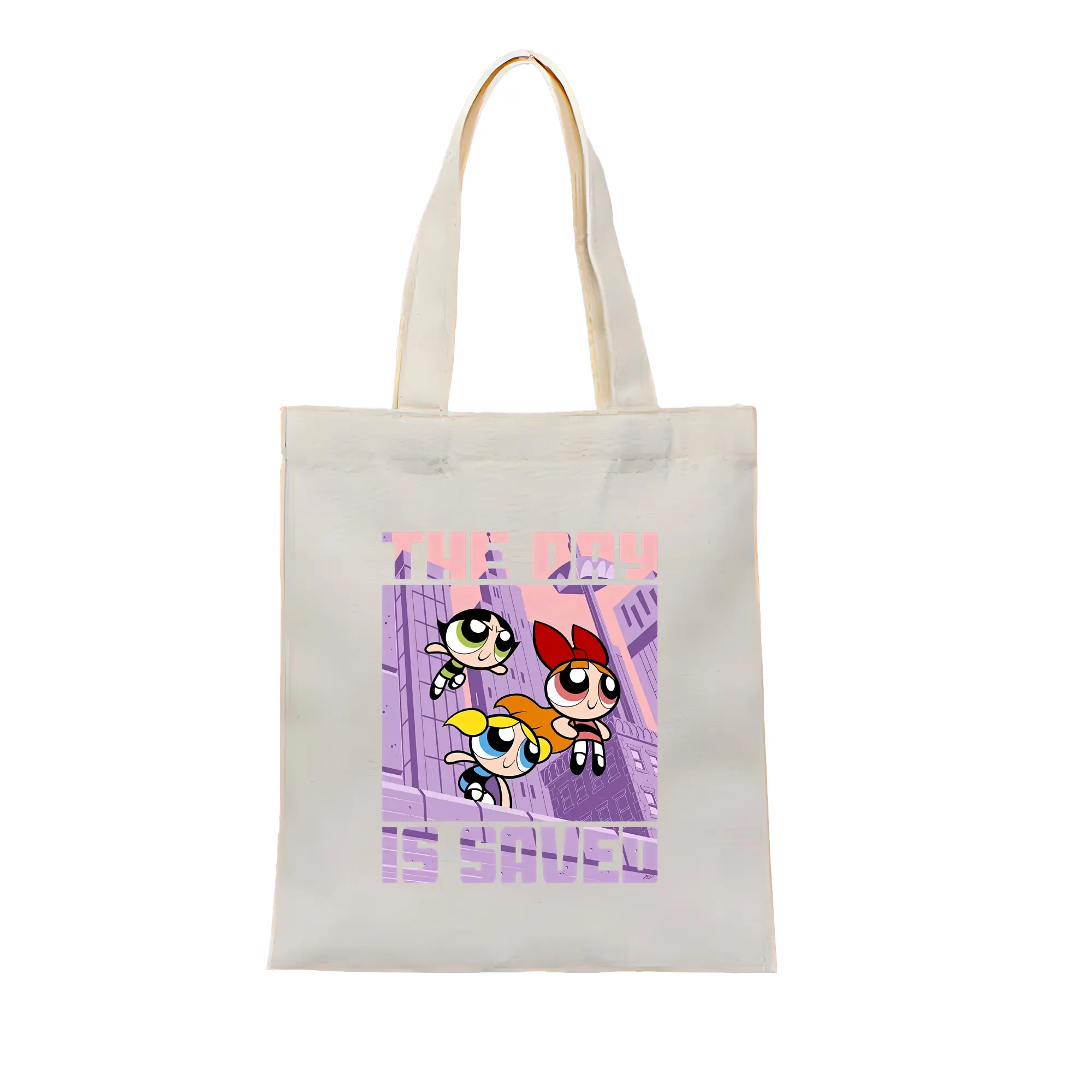 パワパフガールズ グッズ バブルス - 縦型キャンバス手提げバッグ(トートバッグ) ・ キャンバス素材 ・ ショッピング用 ・ 軽量 丈夫 お手入れ簡単