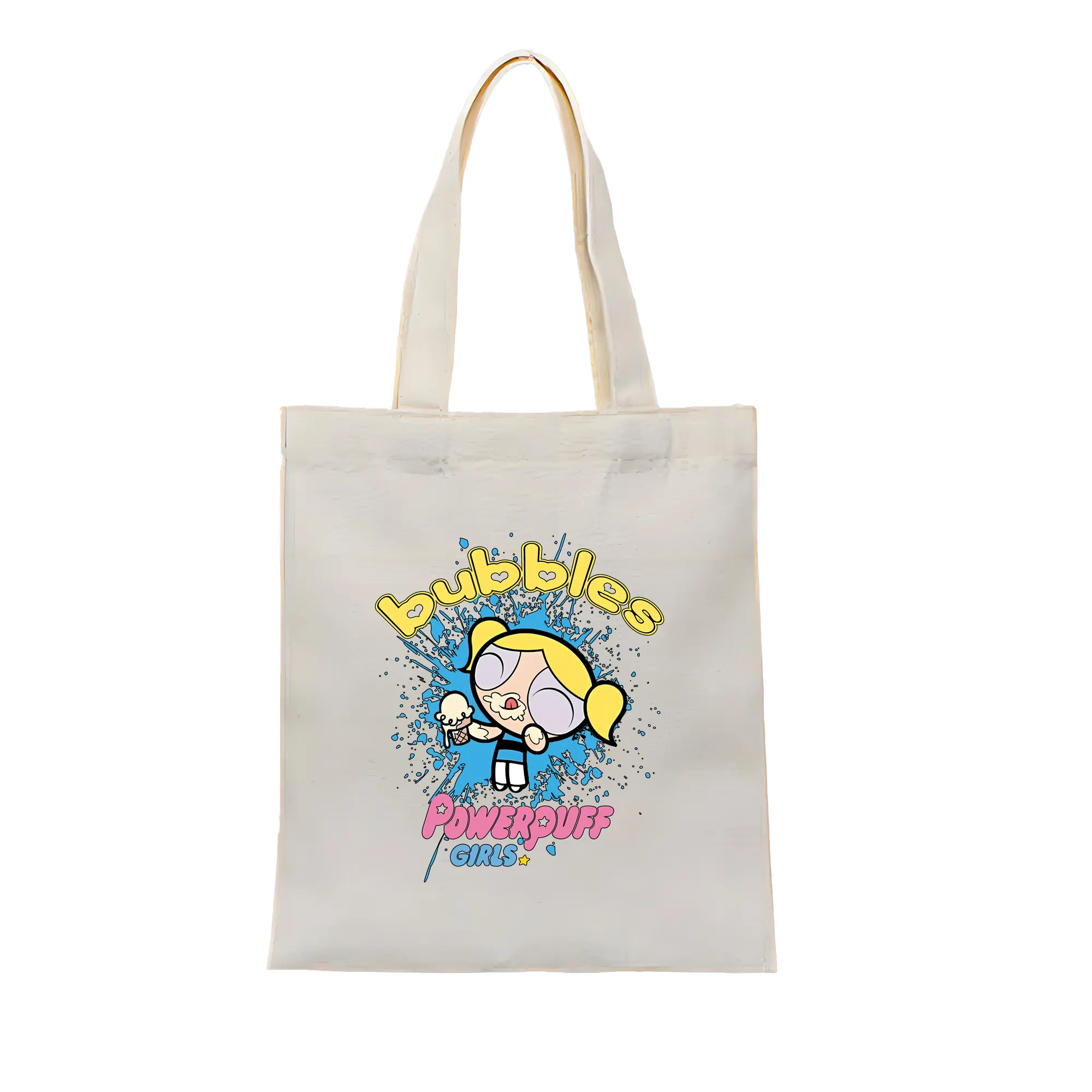 パワパフガールズ グッズ バブルス - 縦型キャンバス手提げバッグ(トートバッグ) ・ キャンバス素材 ・ ショッピング用 ・ 軽量 丈夫 お手入れ簡単