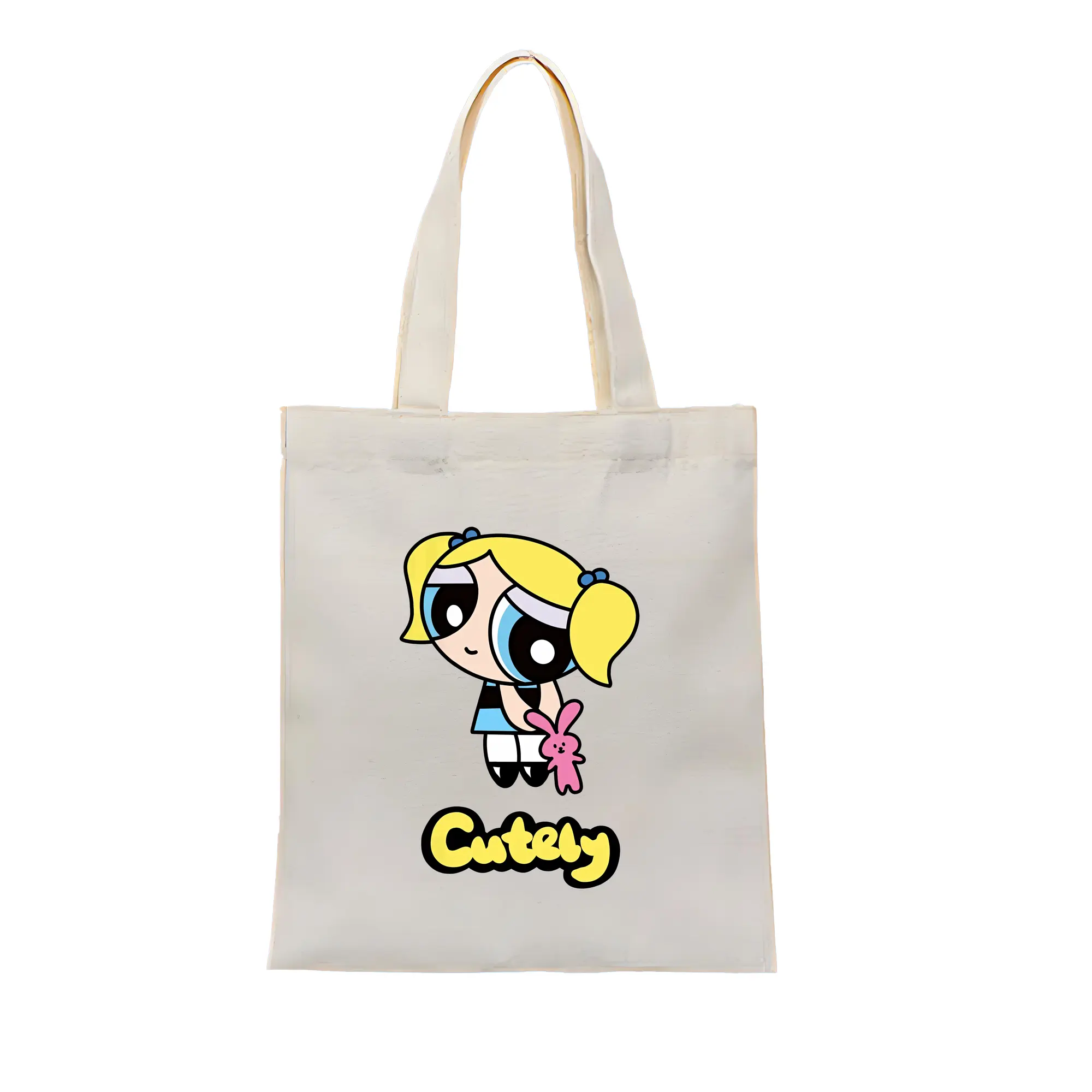 パワパフガールズ グッズ バブルス - 縦型キャンバス手提げバッグ(トートバッグ) ・ キャンバス素材 ・ ショッピング用 ・ 軽量 丈夫 お手入れ簡単