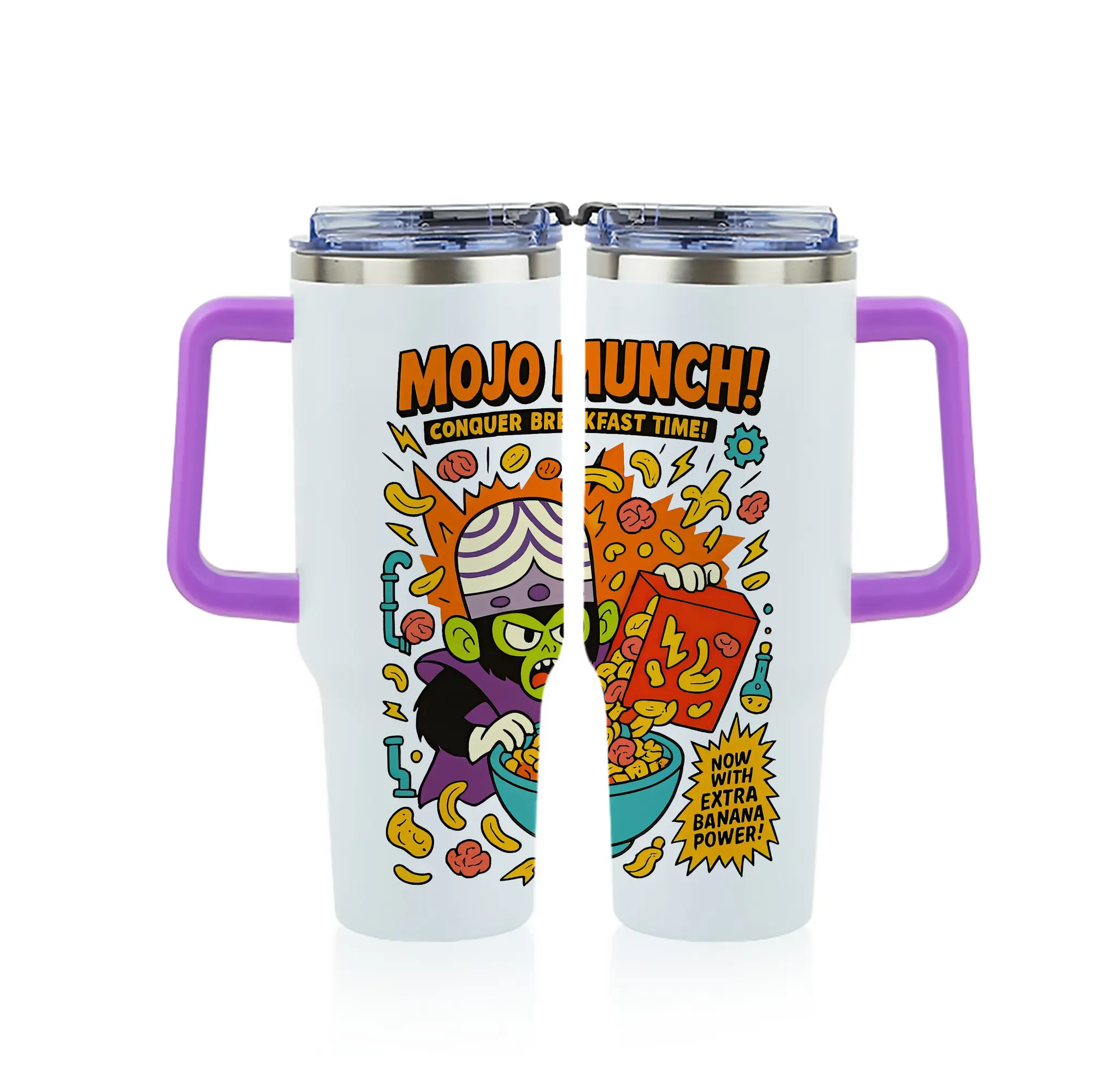 パワパフガールズ グッズ モジョ・ジョジョ - 1200mL フルプリント車用タンブラー ・ 304ステンレス 内側 ・ 201ステンレス 外側 ・ 保温 保冷 ・ 通勤 ドライブ アウトドア用