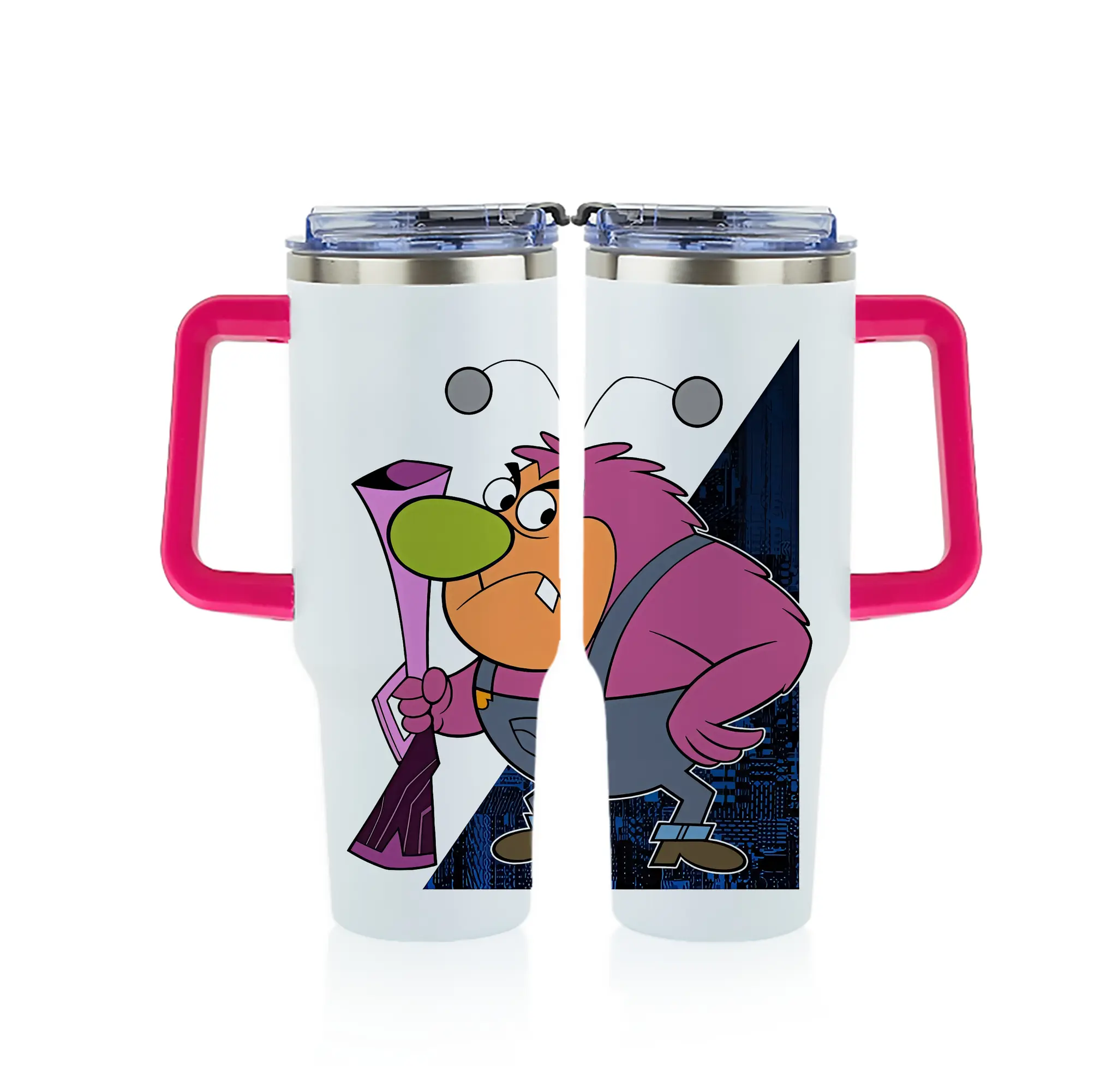 パワパフガールズ グッズ ファジー・ラムキンス - 1200mL フルプリント車用タンブラー ・ 304ステンレス 内側 ・ 201ステンレス 外側 ・ 保温 保冷 ・ 通勤 ドライブ アウトドア用
