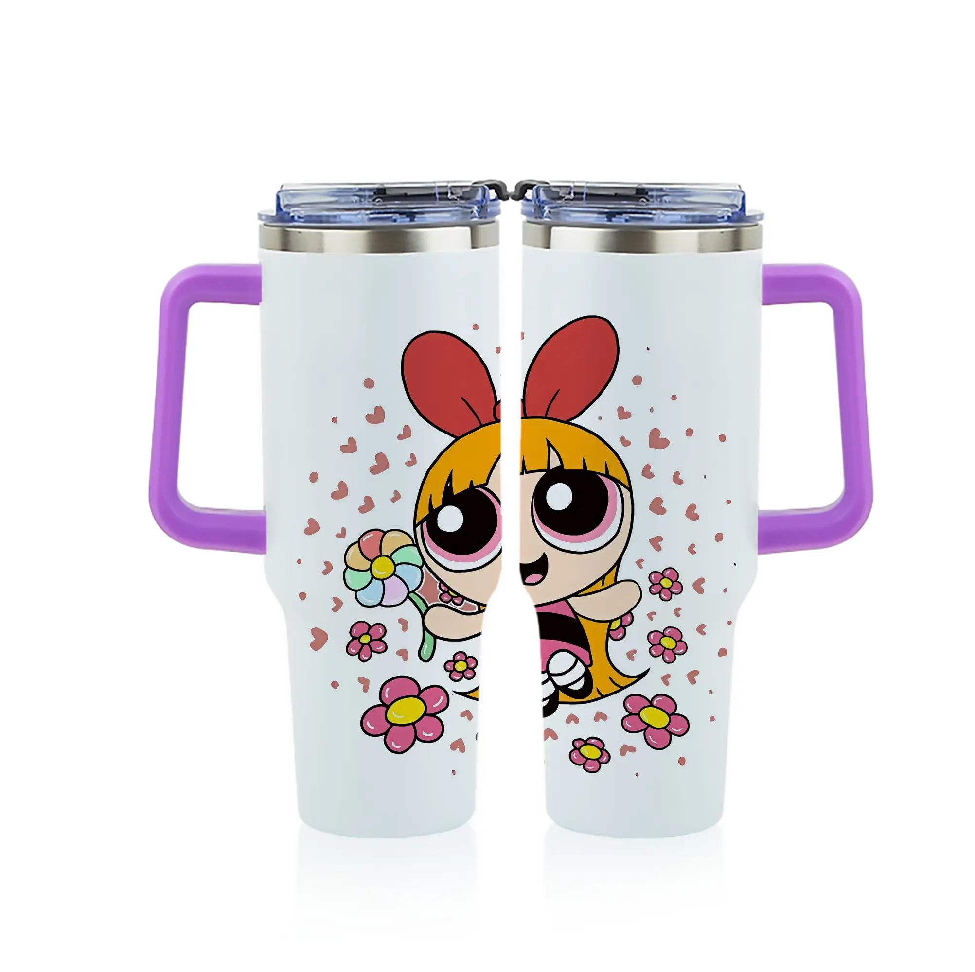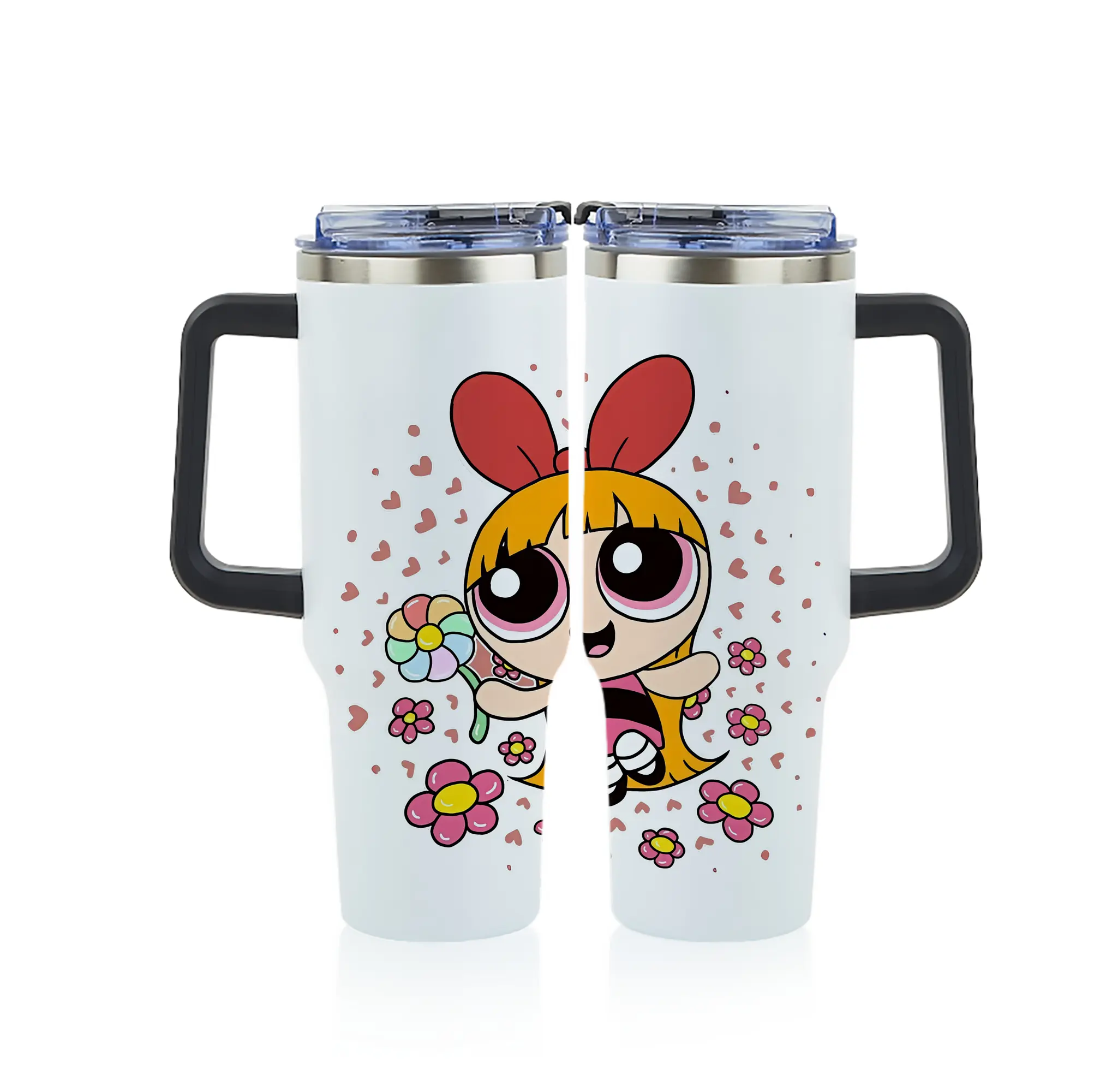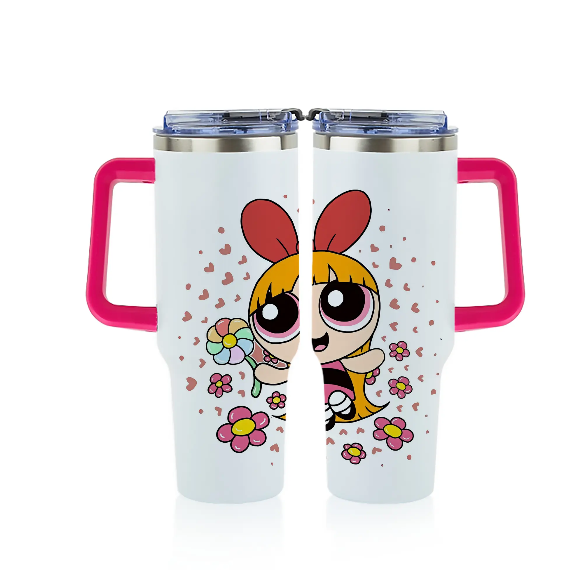 パワパフガールズ グッズ ブロッサム - 1200mL フルプリント車用タンブラー ・ 304ステンレス 内側 ・ 201ステンレス 外側 ・ 保温 保冷 ・ 通勤 ドライブ アウトドア用