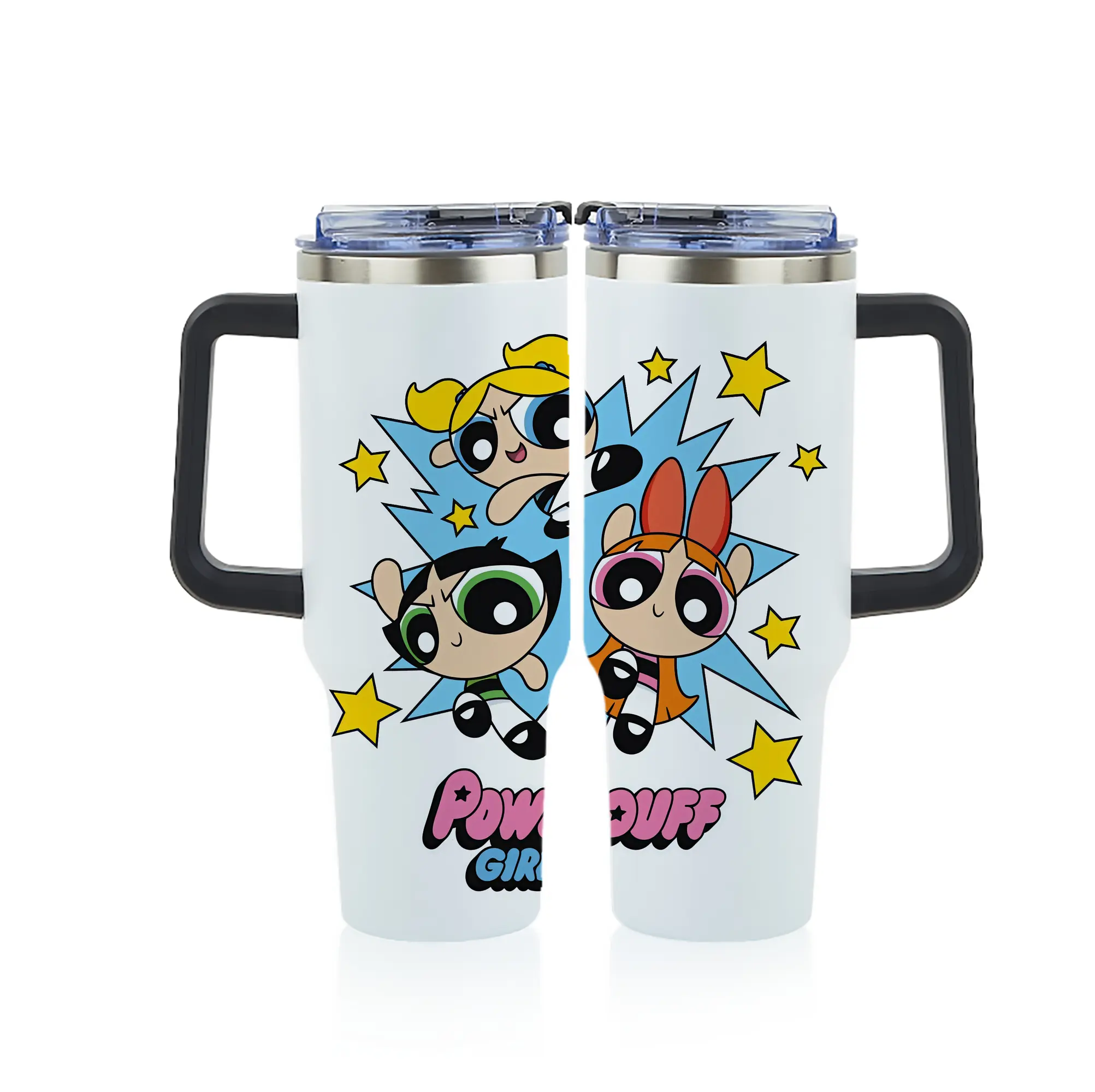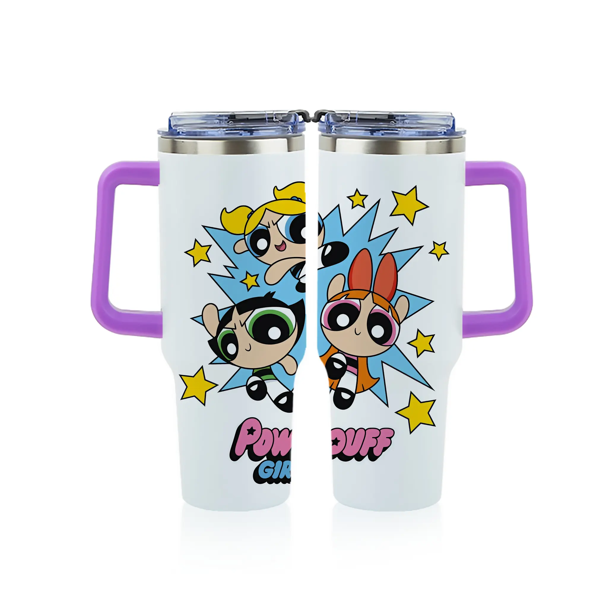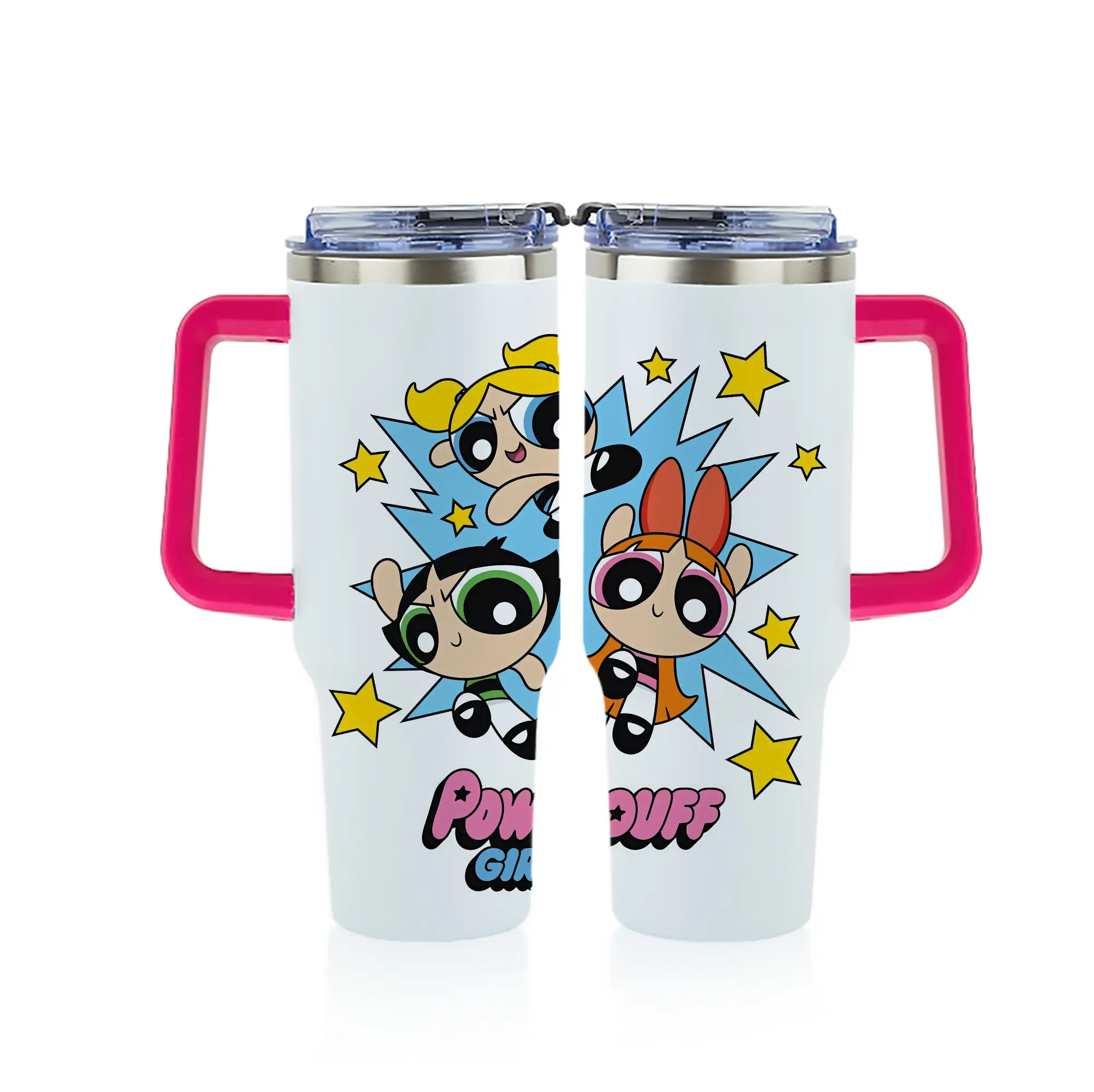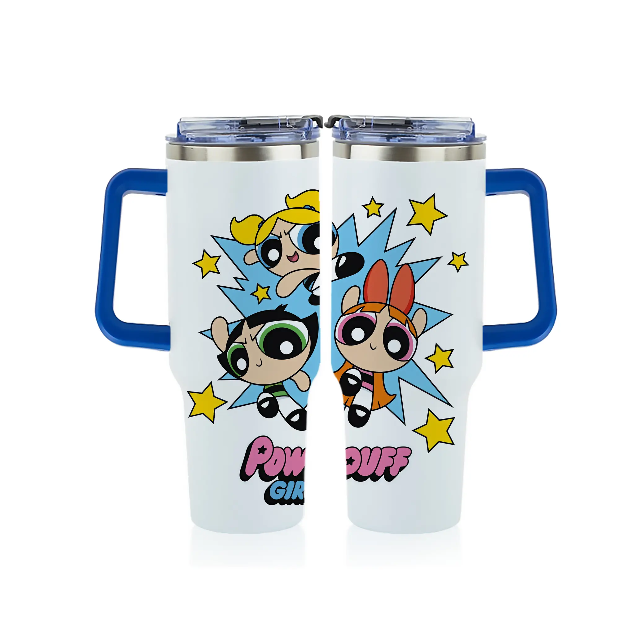 パワパフガールズ グッズ ブロッサム - 1200mL フルプリント車用タンブラー ・ 304ステンレス 内側 ・ 201ステンレス 外側 ・ 保温 保冷 ・ 通勤 ドライブ アウトドア用