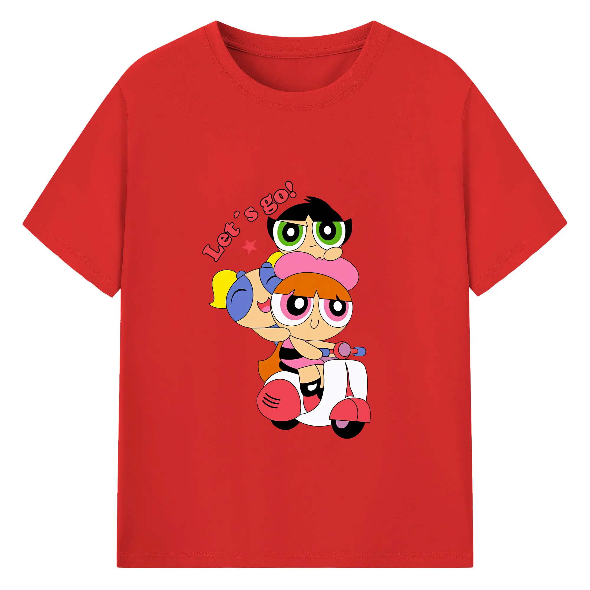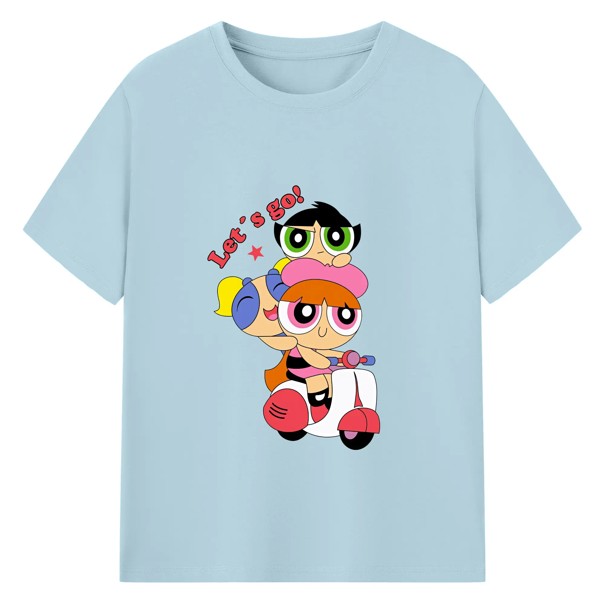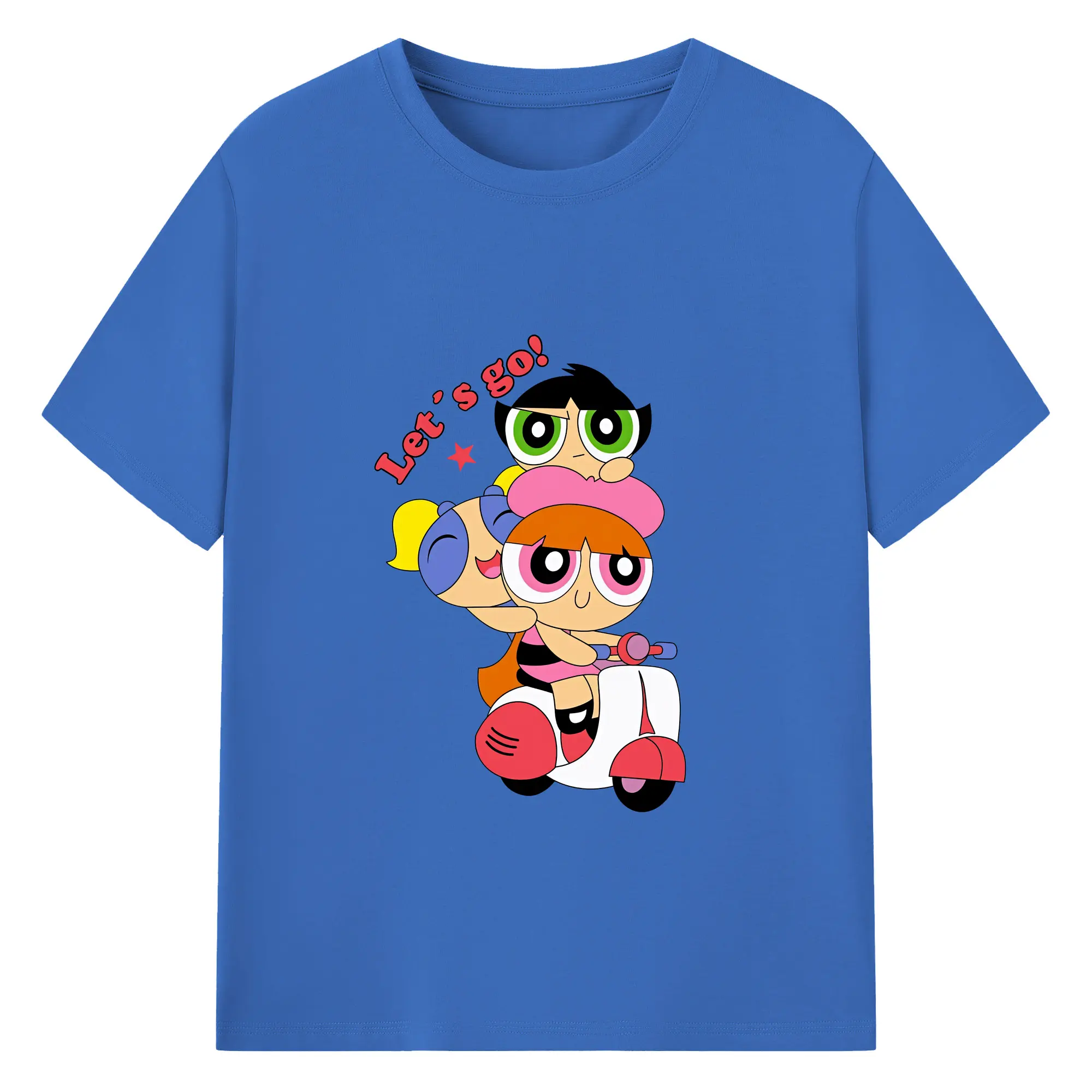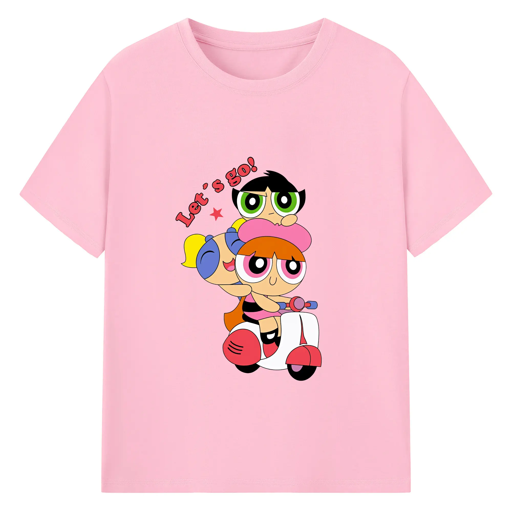 パワパフガールズ グッズ ブロッサム - 綿100% 半袖Tシャツ ・ バックプリント ・ 快適 通気性 ・ 日常使い 散歩 スポーツ用