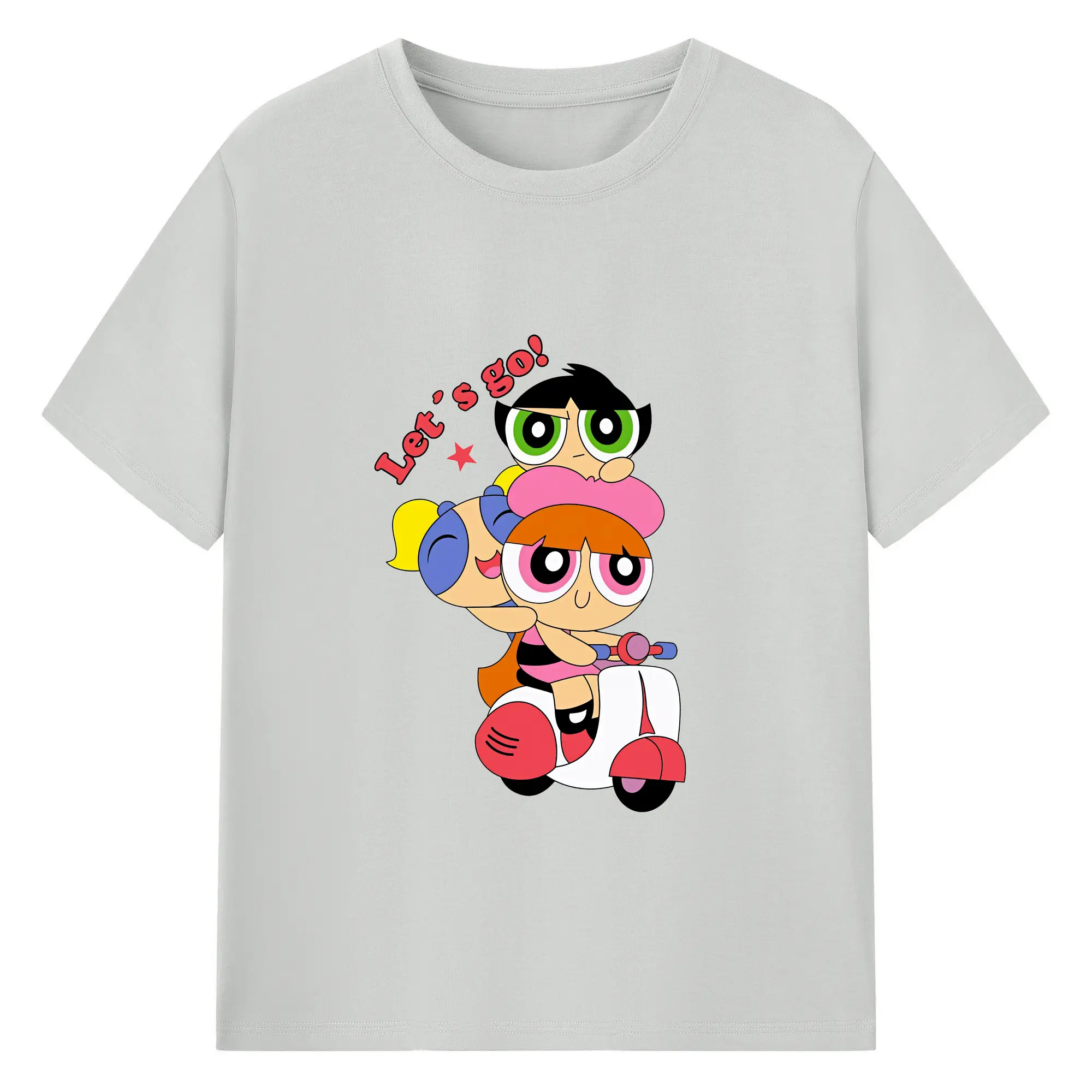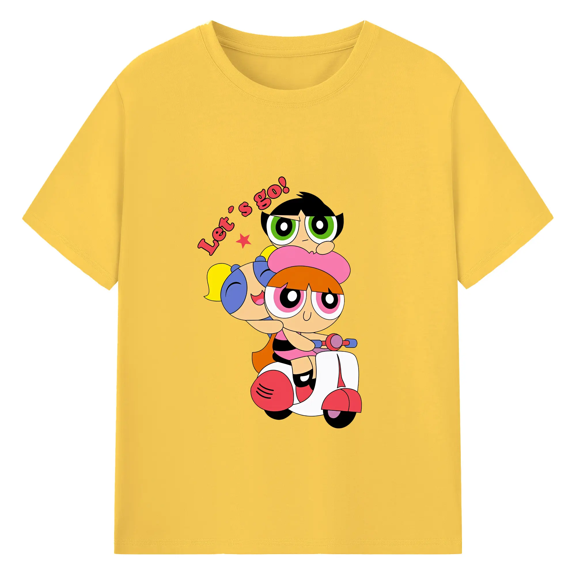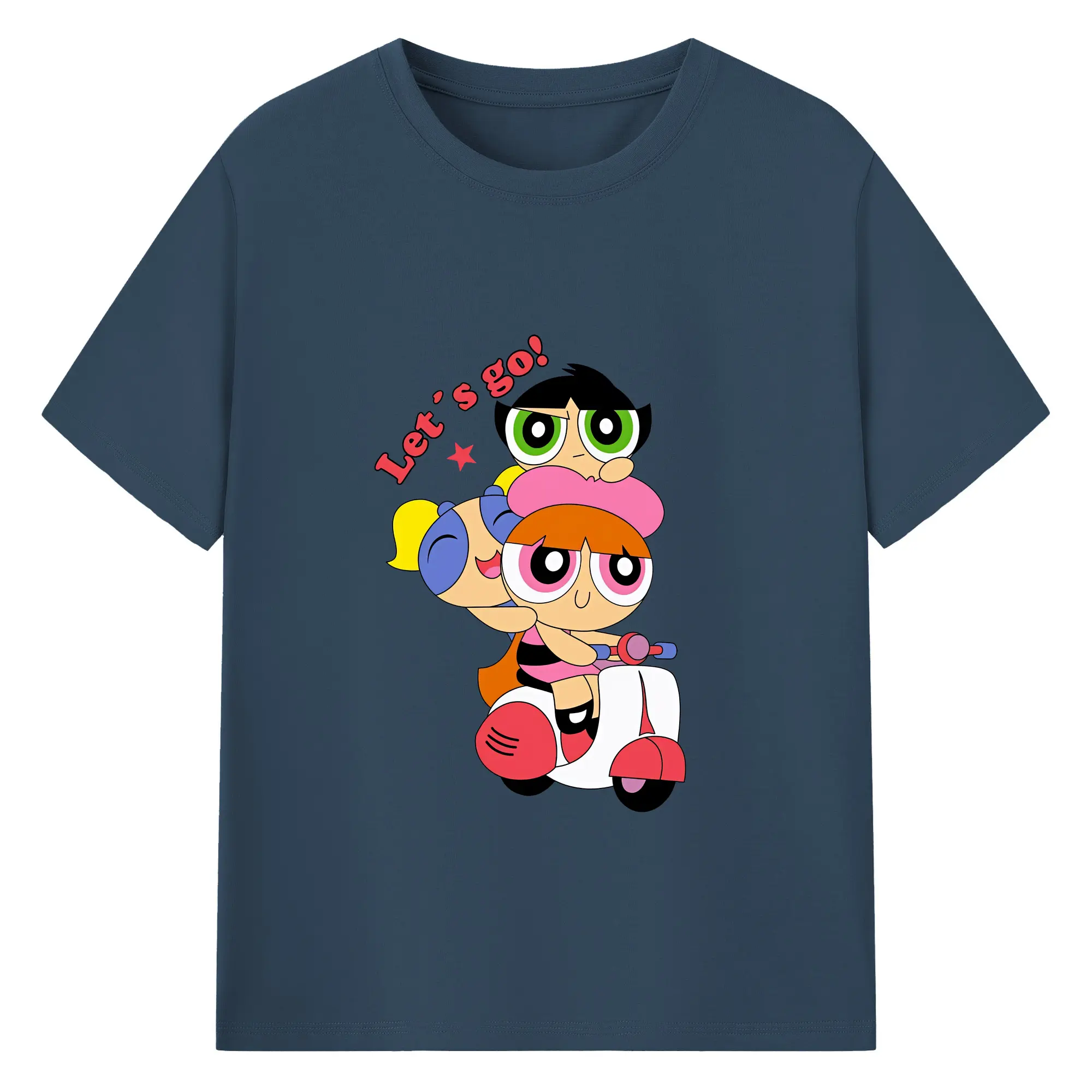 パワパフガールズ グッズ ブロッサム - 綿100% 半袖Tシャツ ・ バックプリント ・ 快適 通気性 ・ 日常使い 散歩 スポーツ用