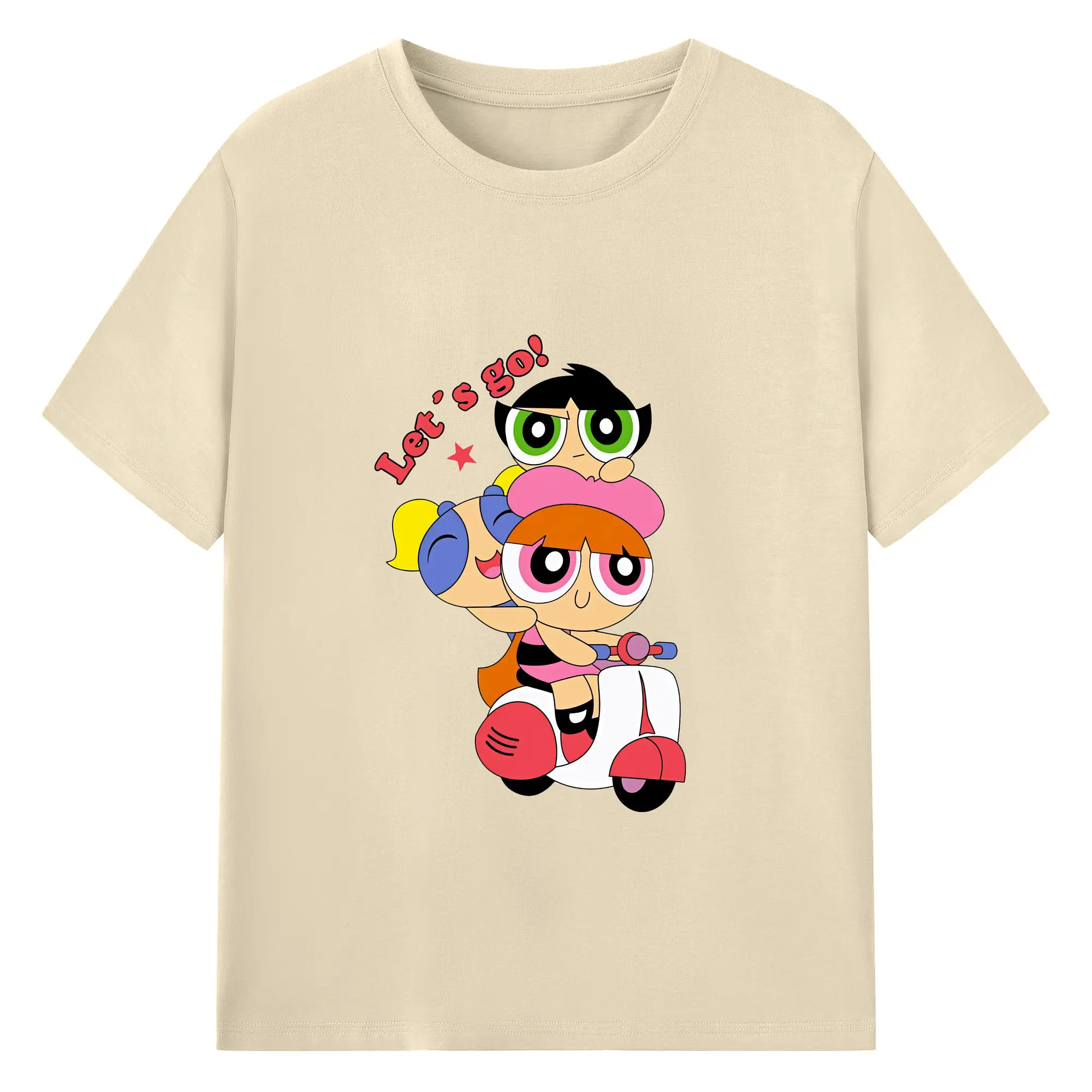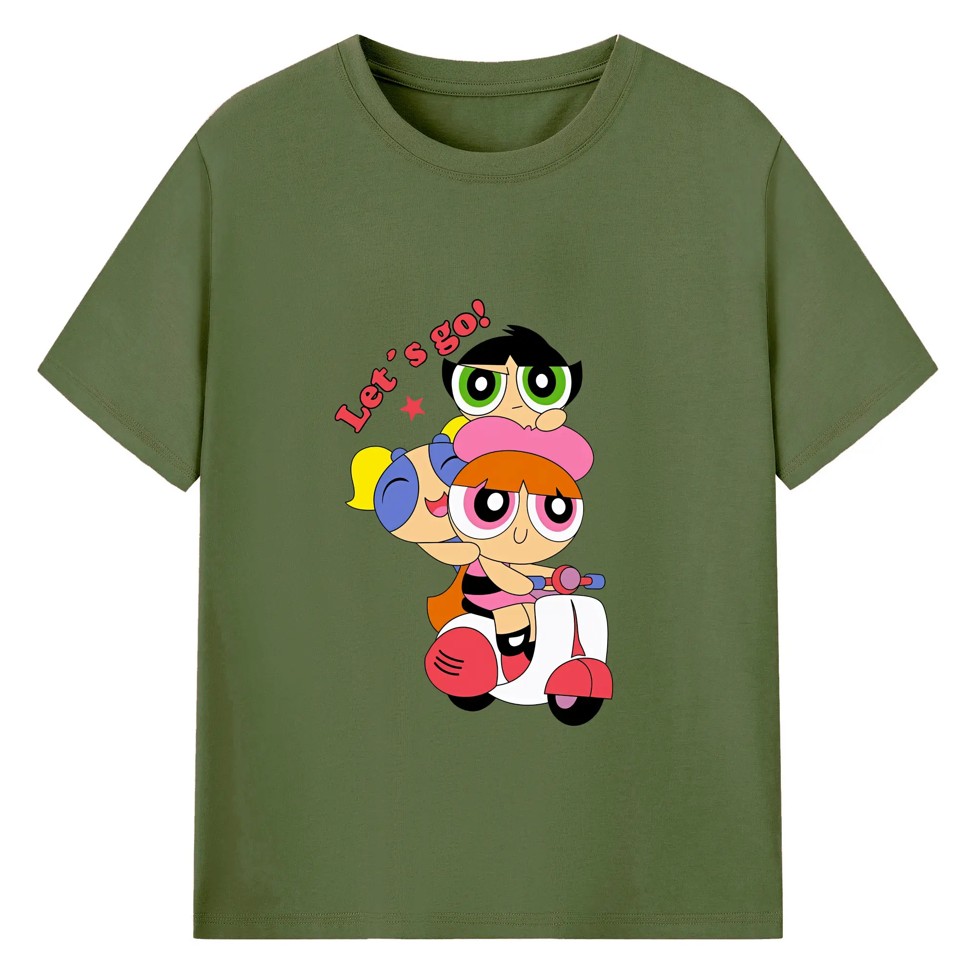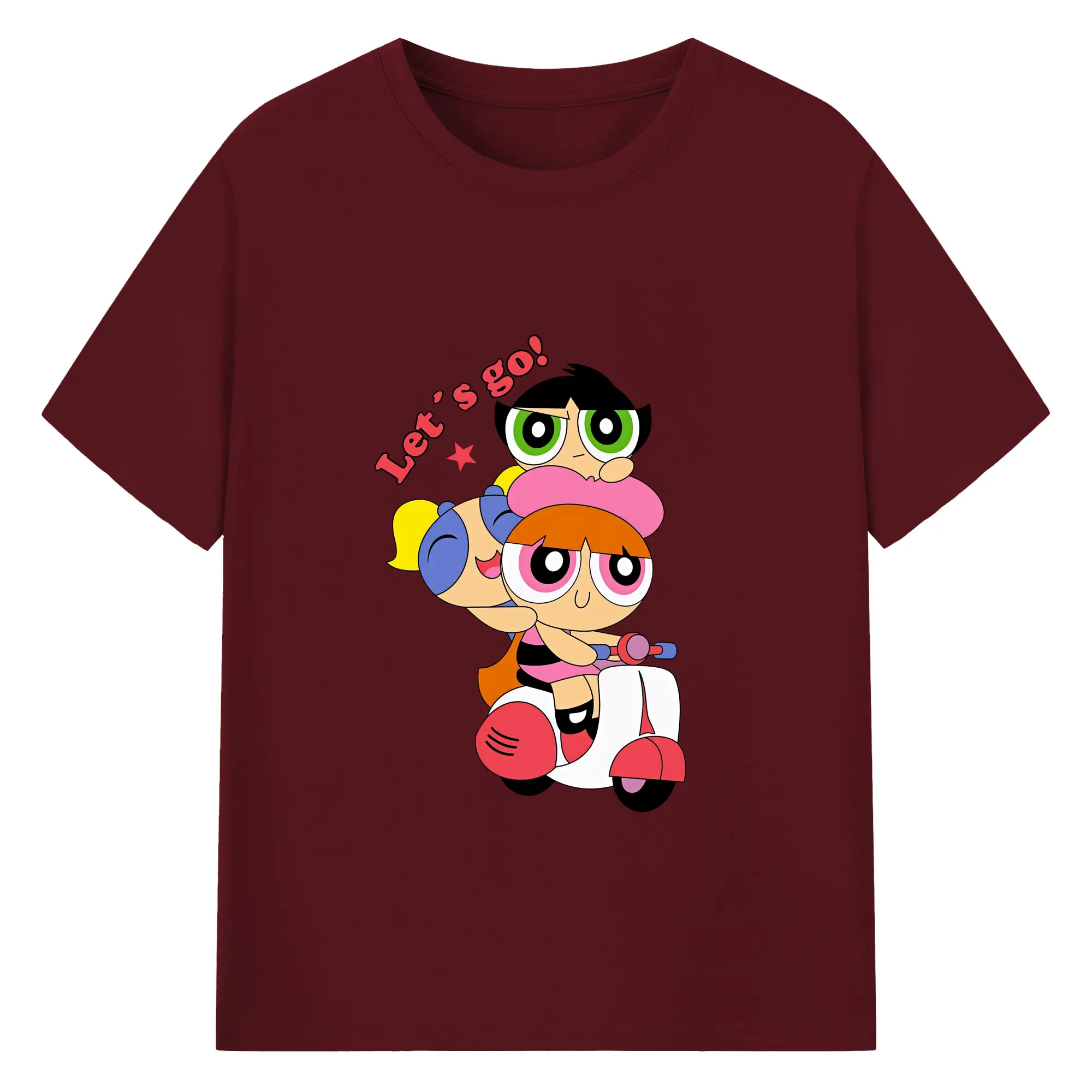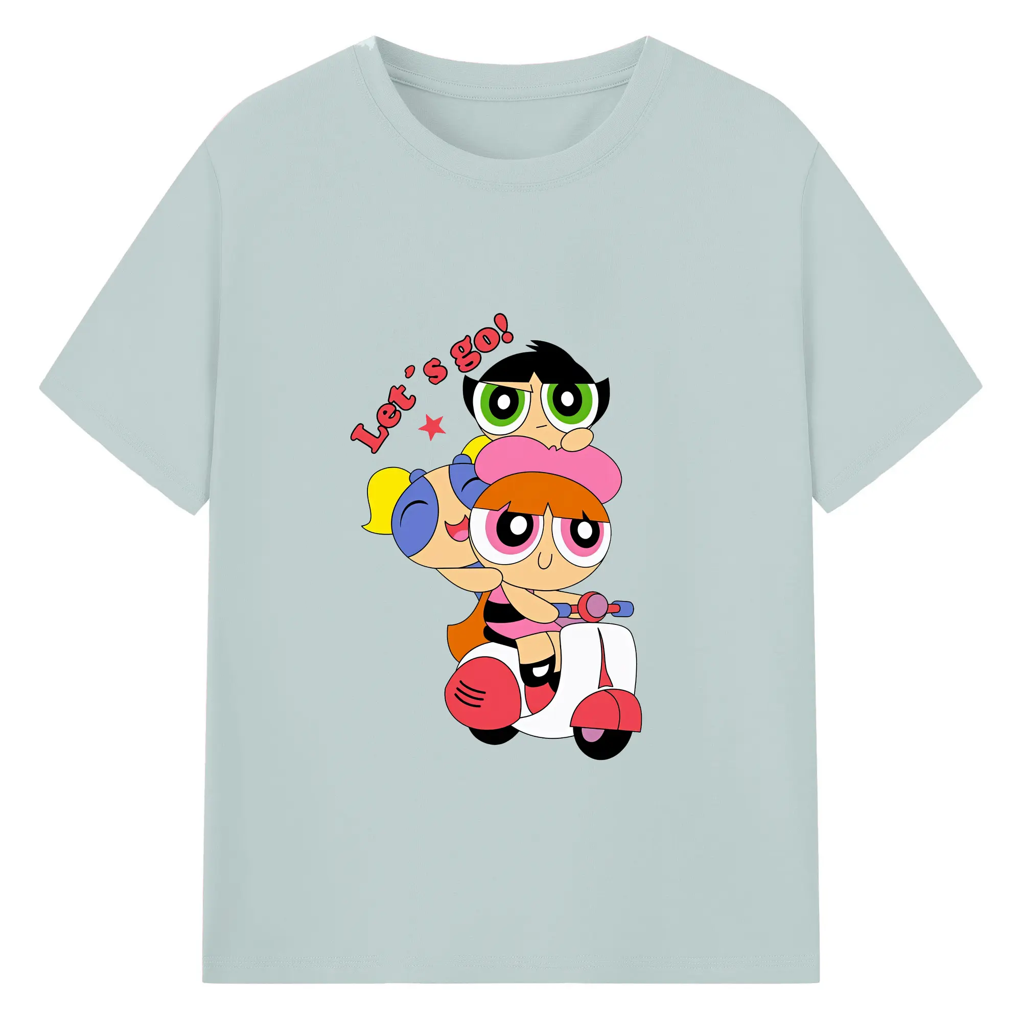 パワパフガールズ グッズ ブロッサム - 綿100% 半袖Tシャツ ・ バックプリント ・ 快適 通気性 ・ 日常使い 散歩 スポーツ用