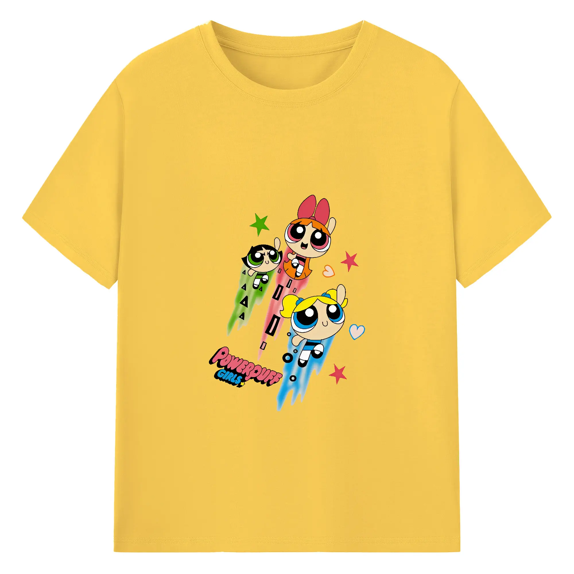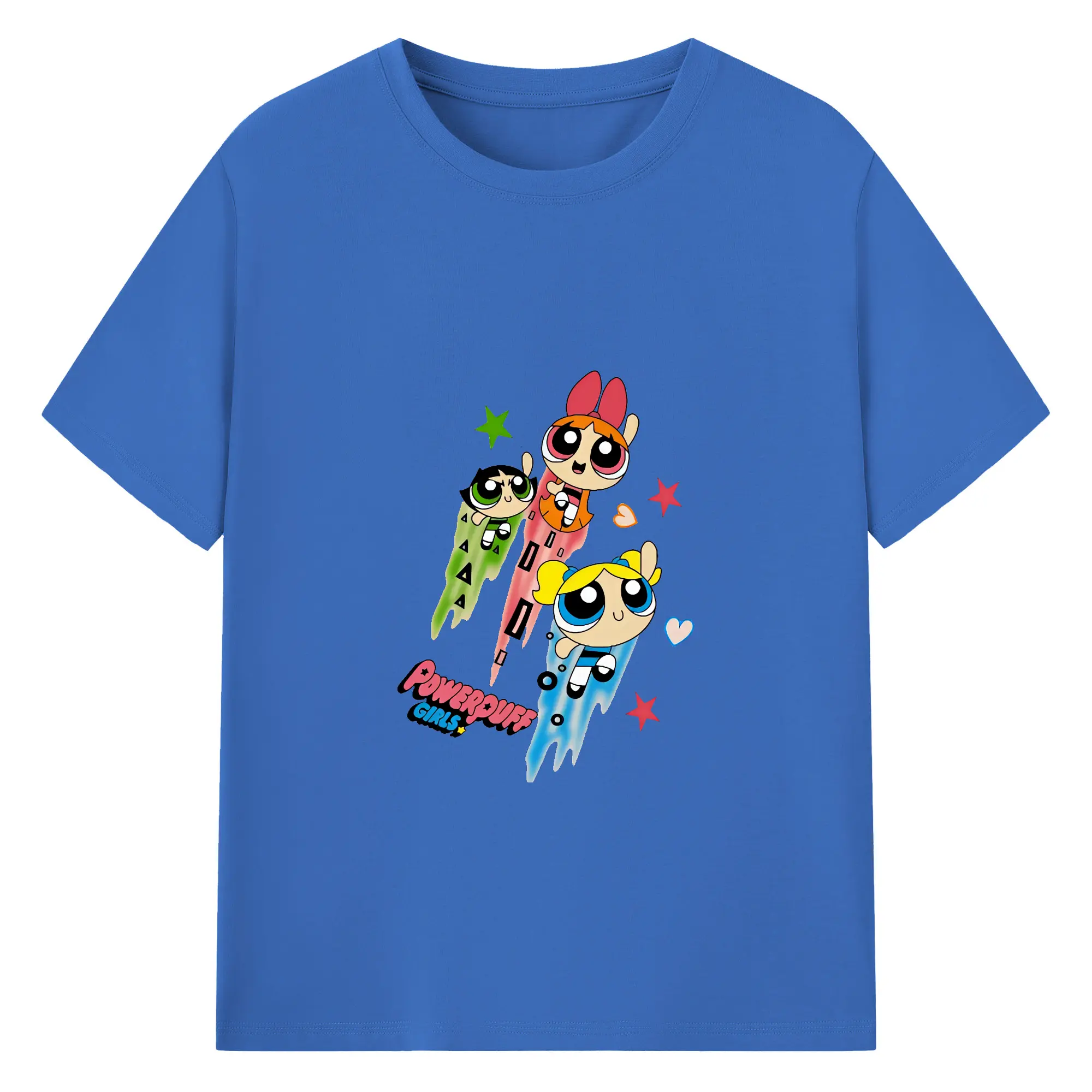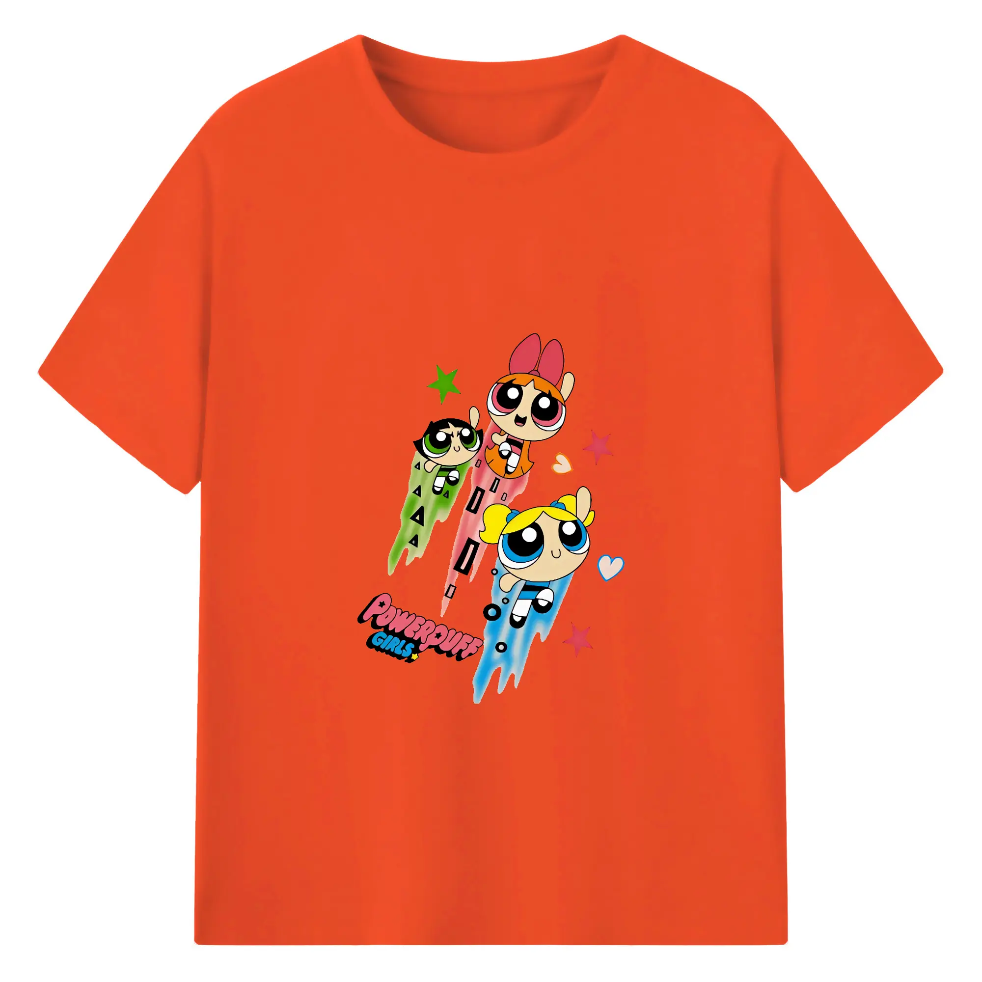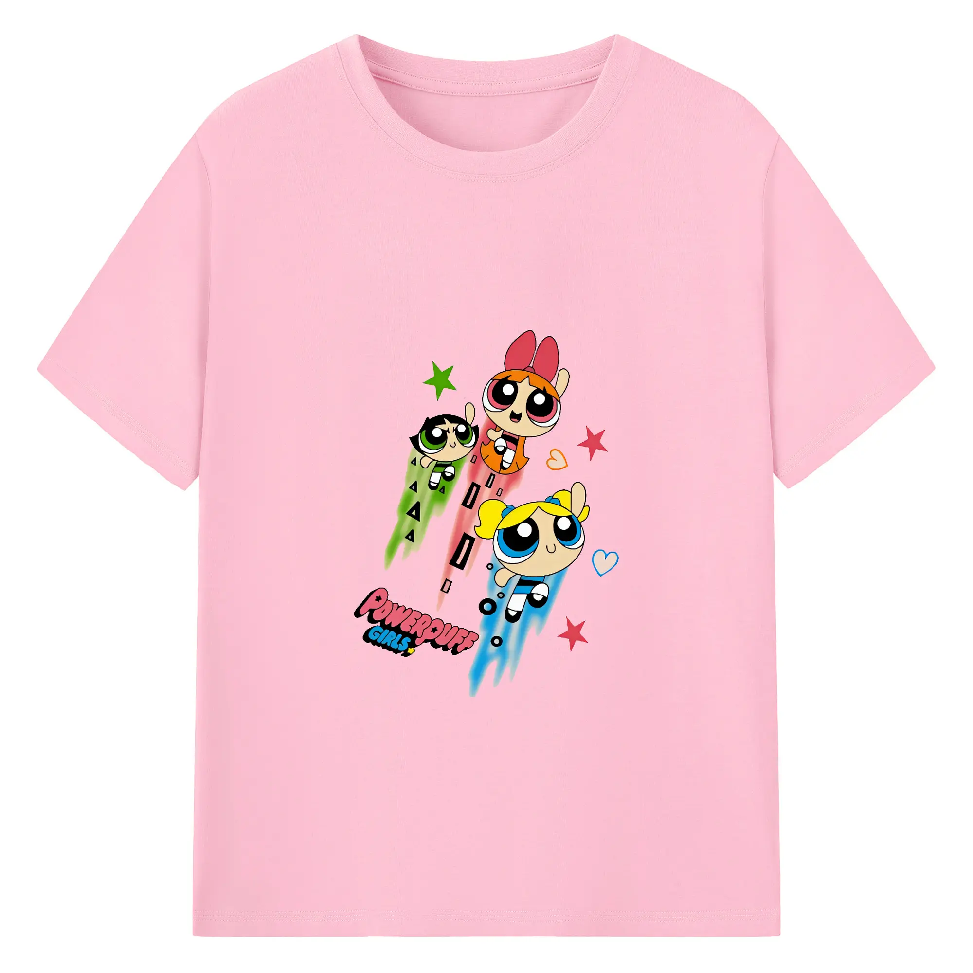 パワパフガールズ グッズ ブロッサム - 綿100% 半袖Tシャツ ・ バックプリント ・ 快適 通気性 ・ 日常使い 散歩 スポーツ用