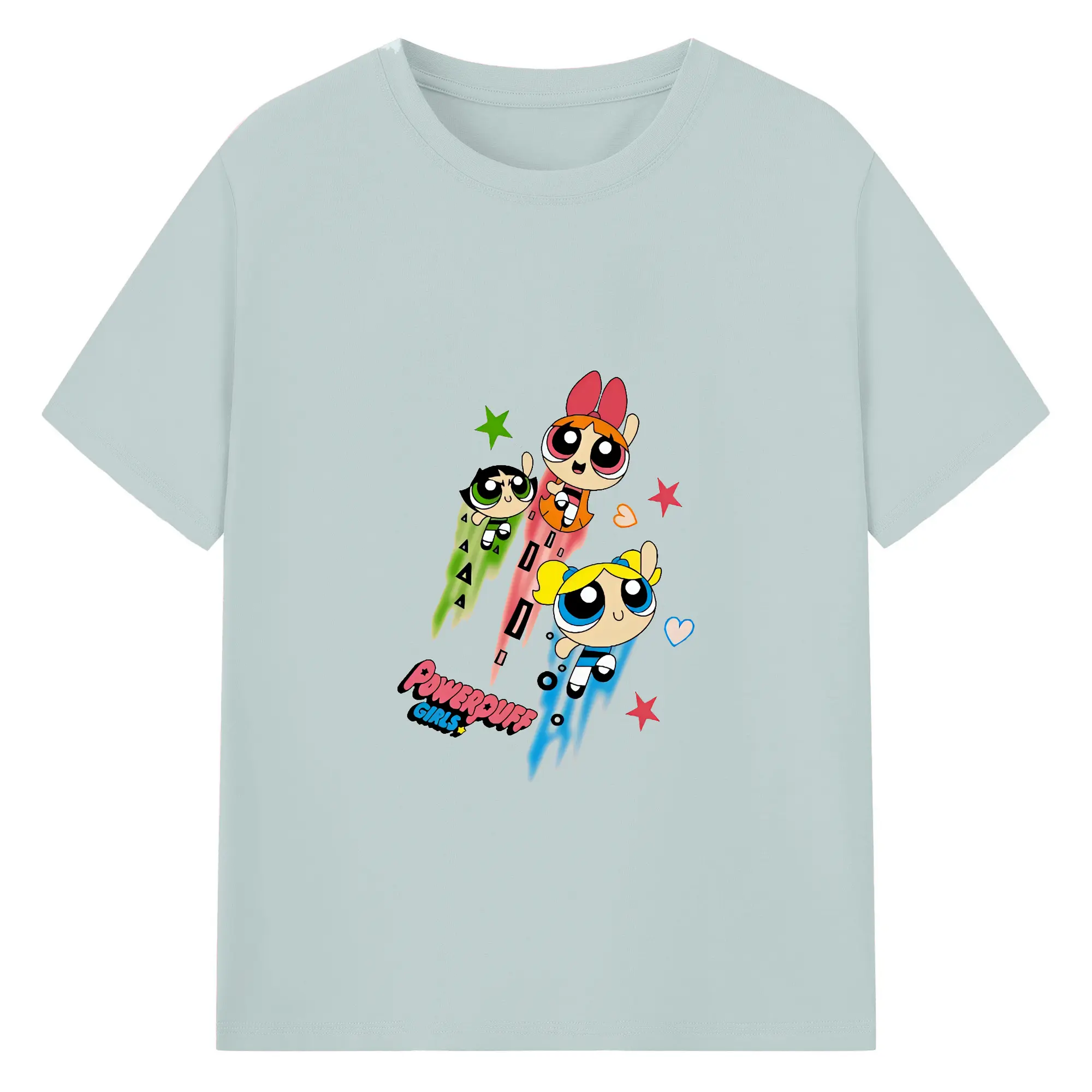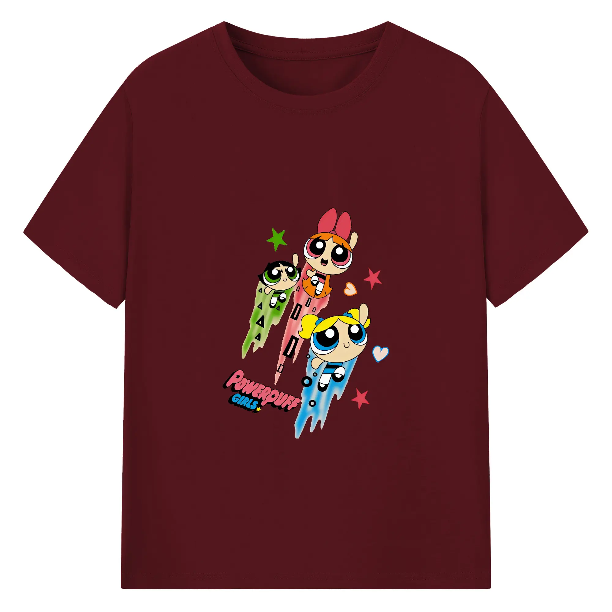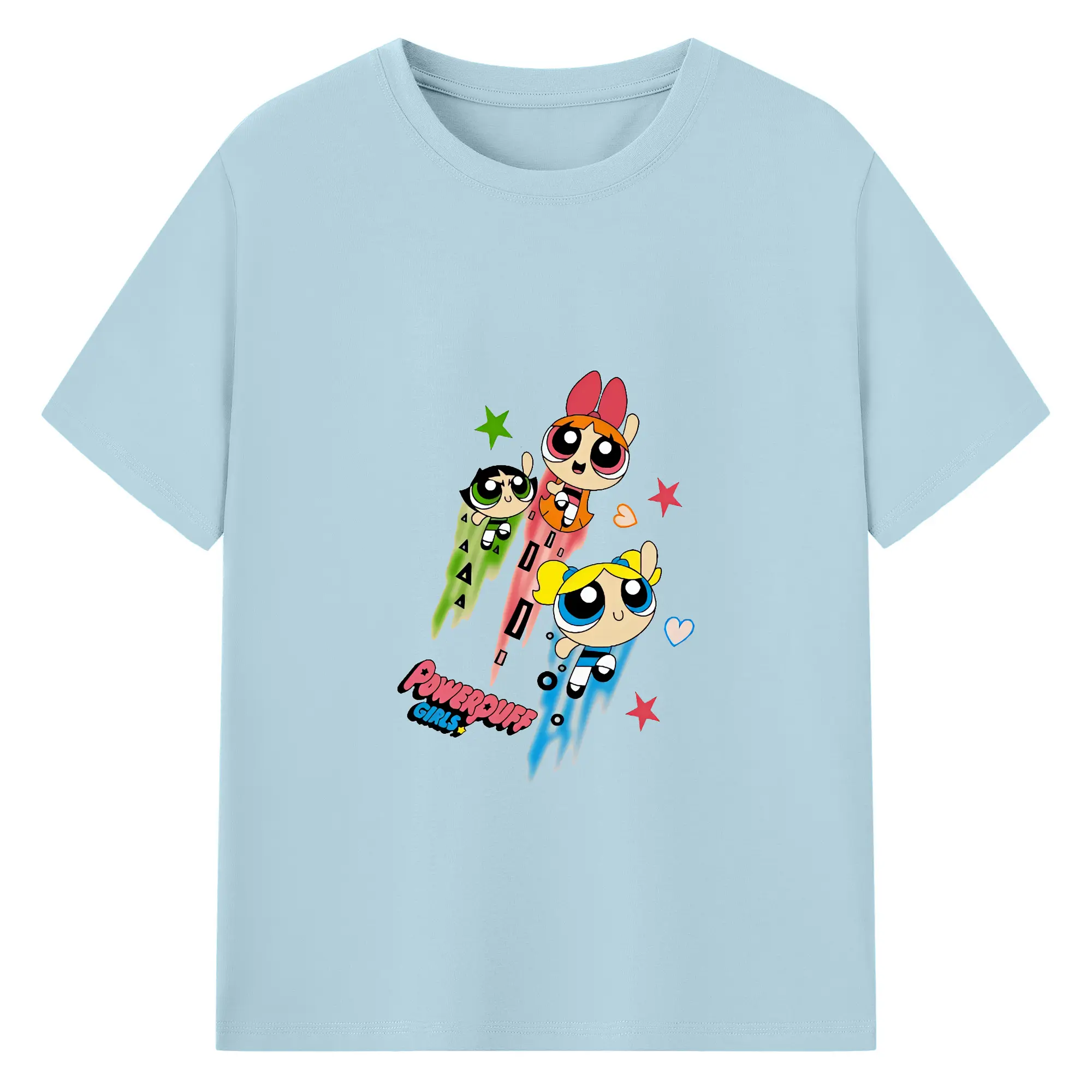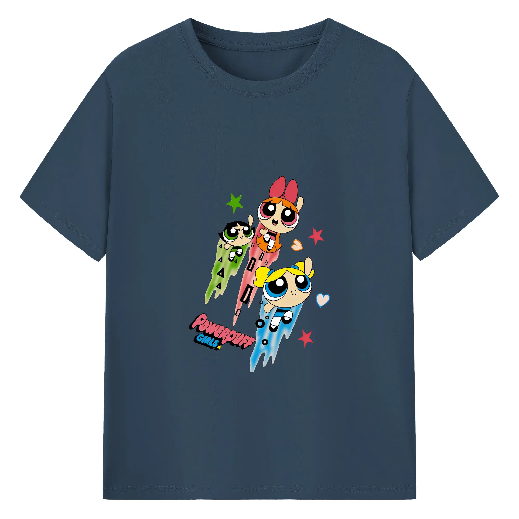 パワパフガールズ グッズ ブロッサム - 綿100% 半袖Tシャツ ・ バックプリント ・ 快適 通気性 ・ 日常使い 散歩 スポーツ用