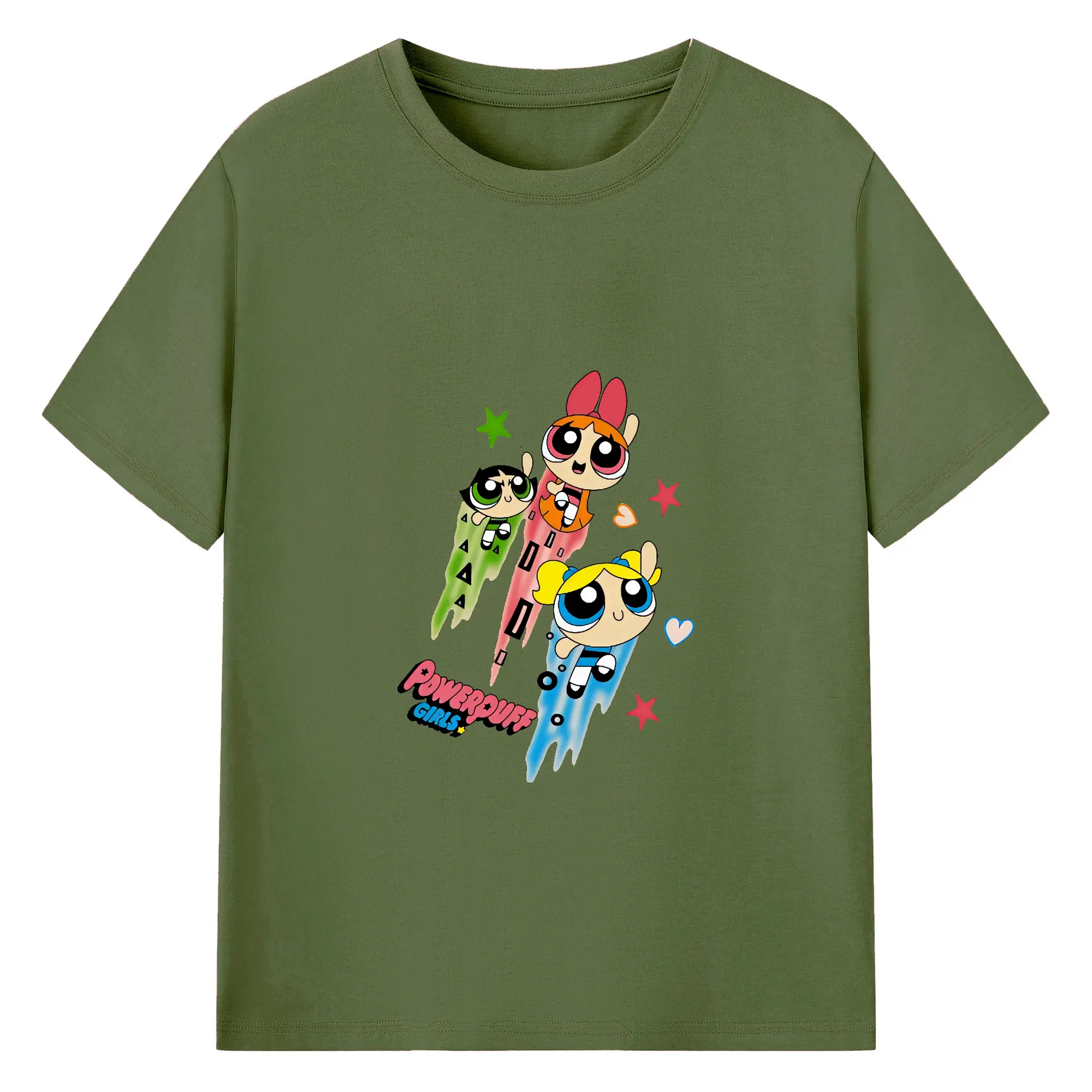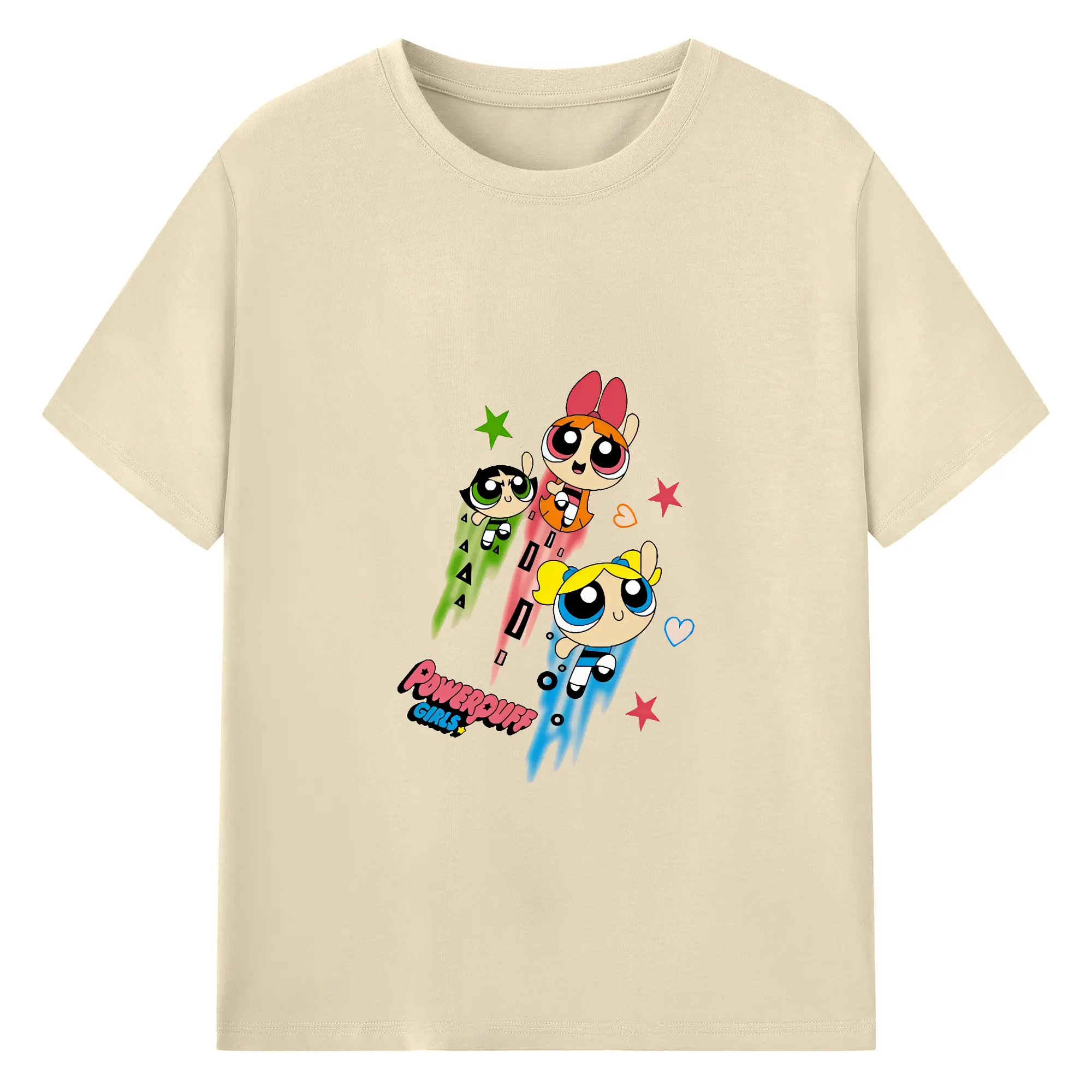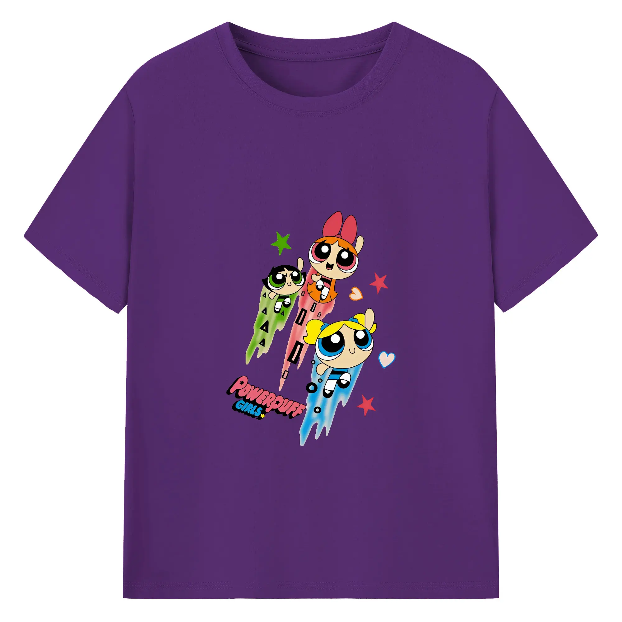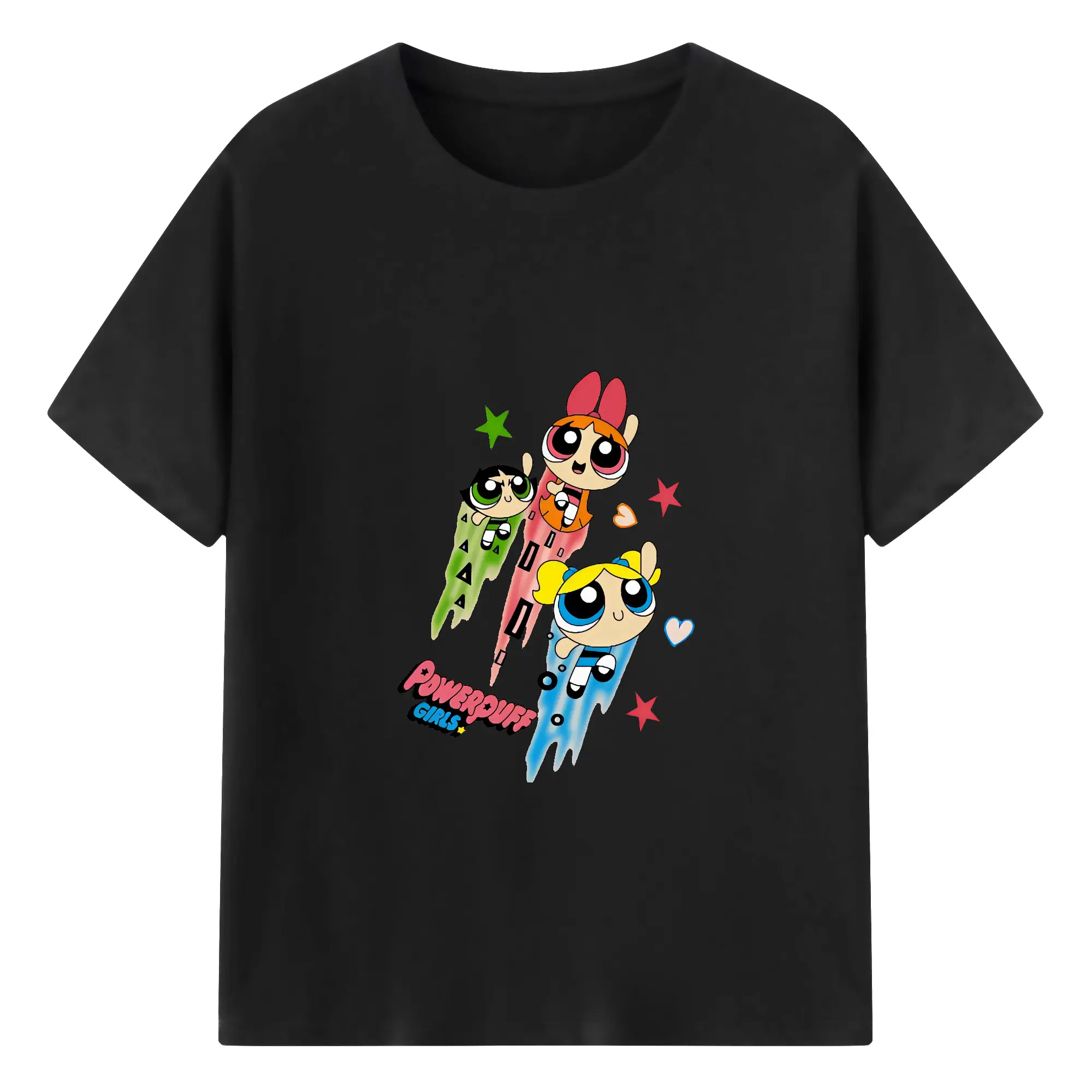 パワパフガールズ グッズ ブロッサム - 綿100% 半袖Tシャツ ・ バックプリント ・ 快適 通気性 ・ 日常使い 散歩 スポーツ用