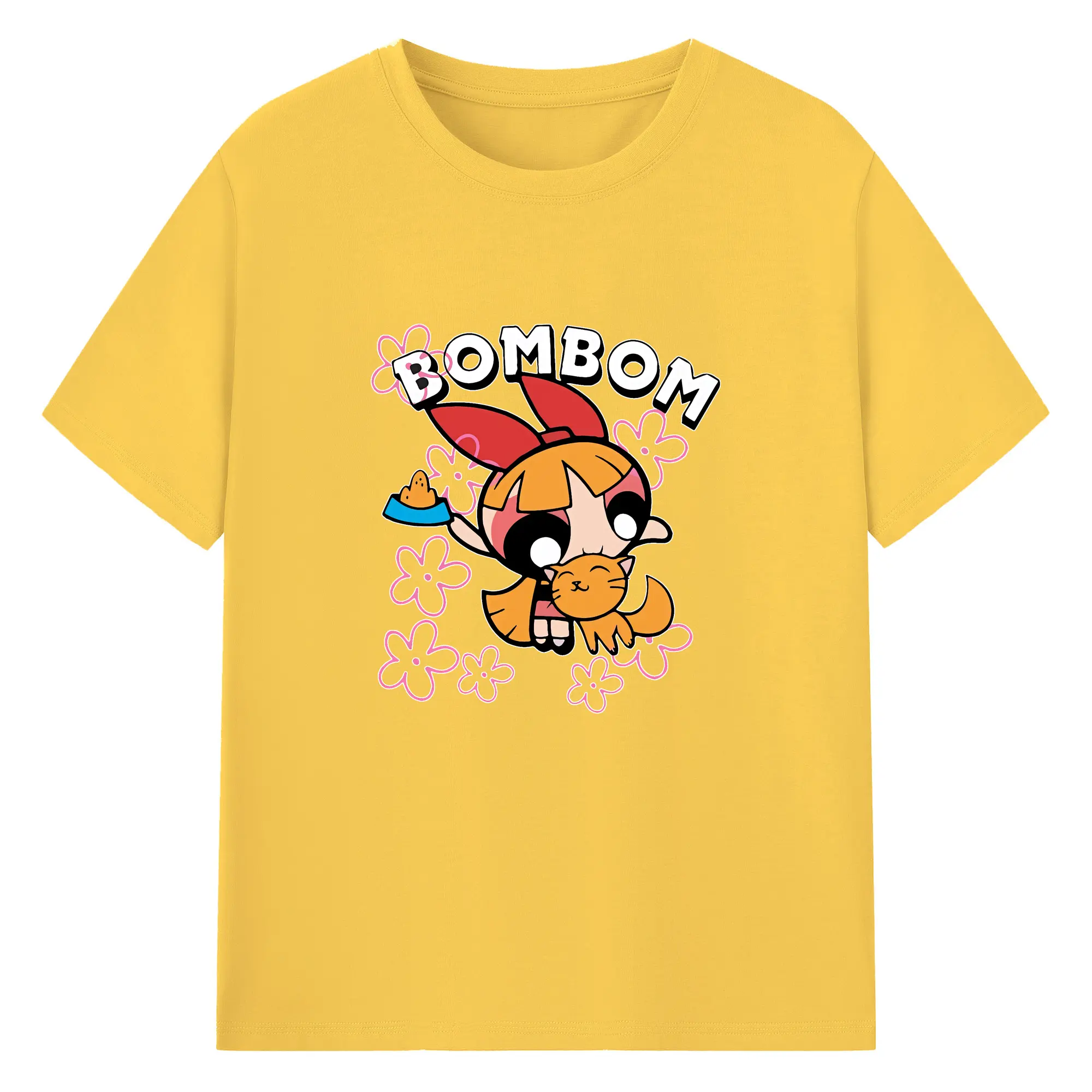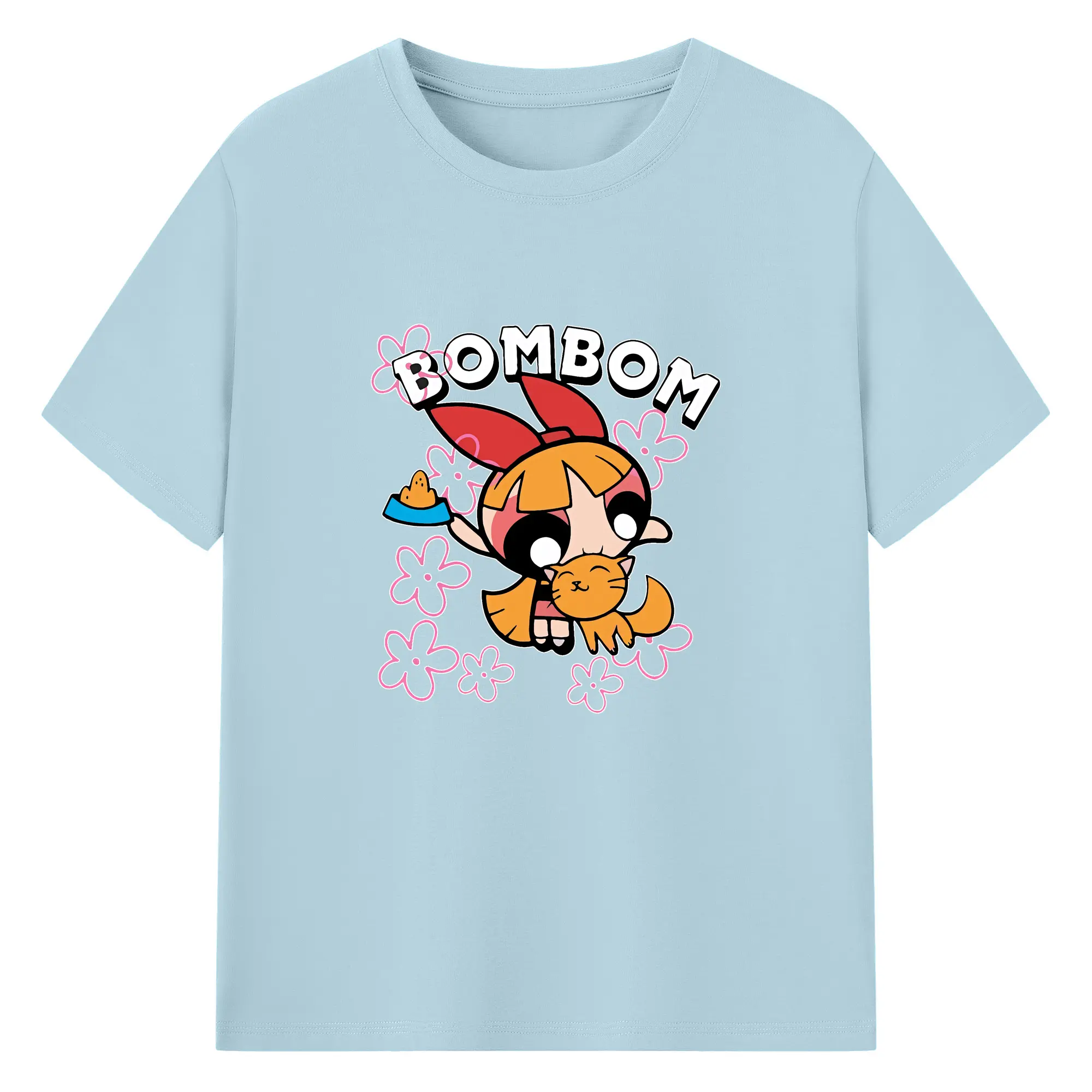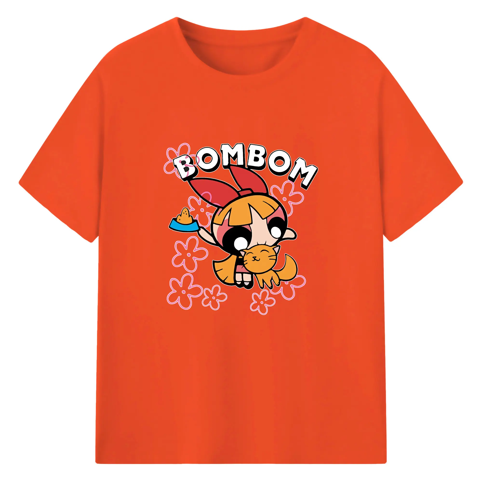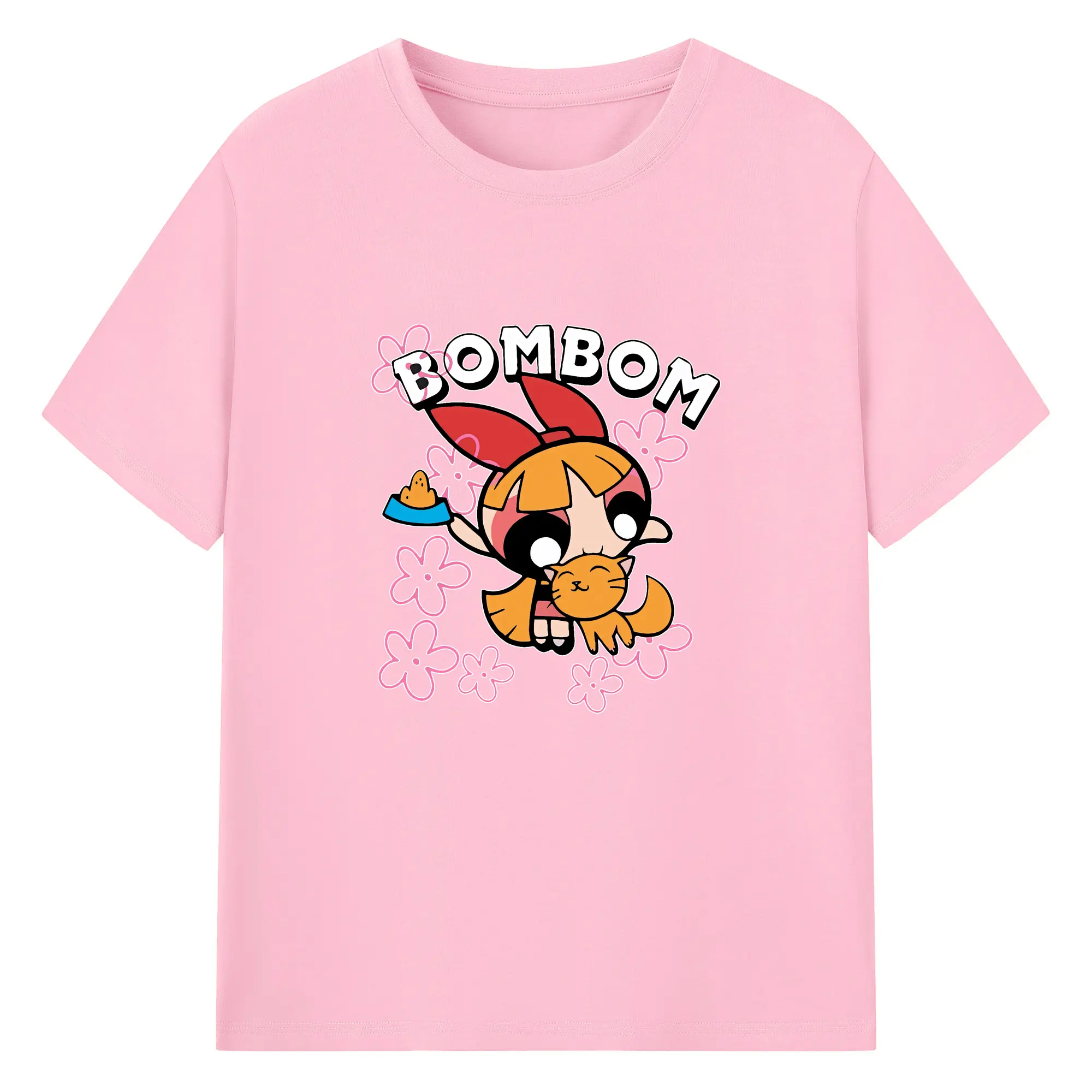 パワパフガールズ グッズ ブロッサム - 綿100% 半袖Tシャツ ・ バックプリント ・ 快適 通気性 ・ 日常使い 散歩 スポーツ用