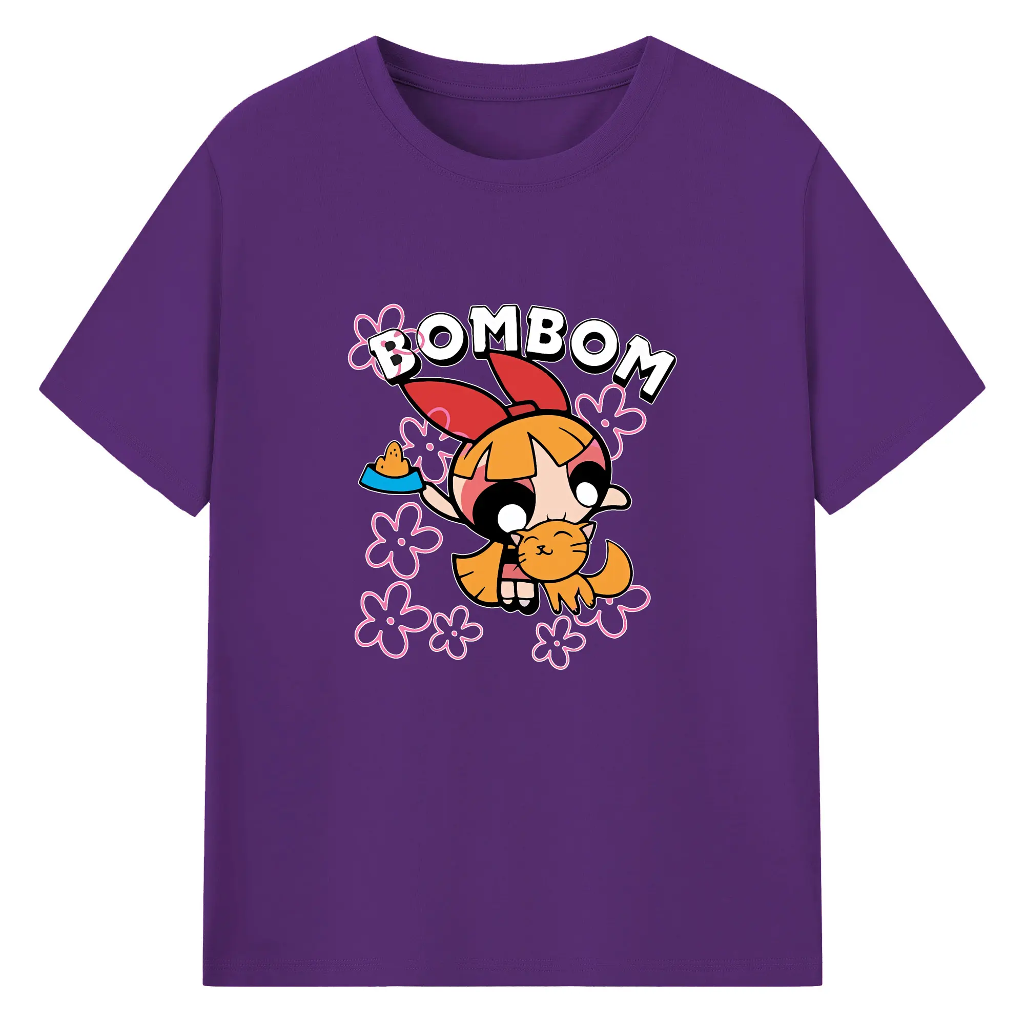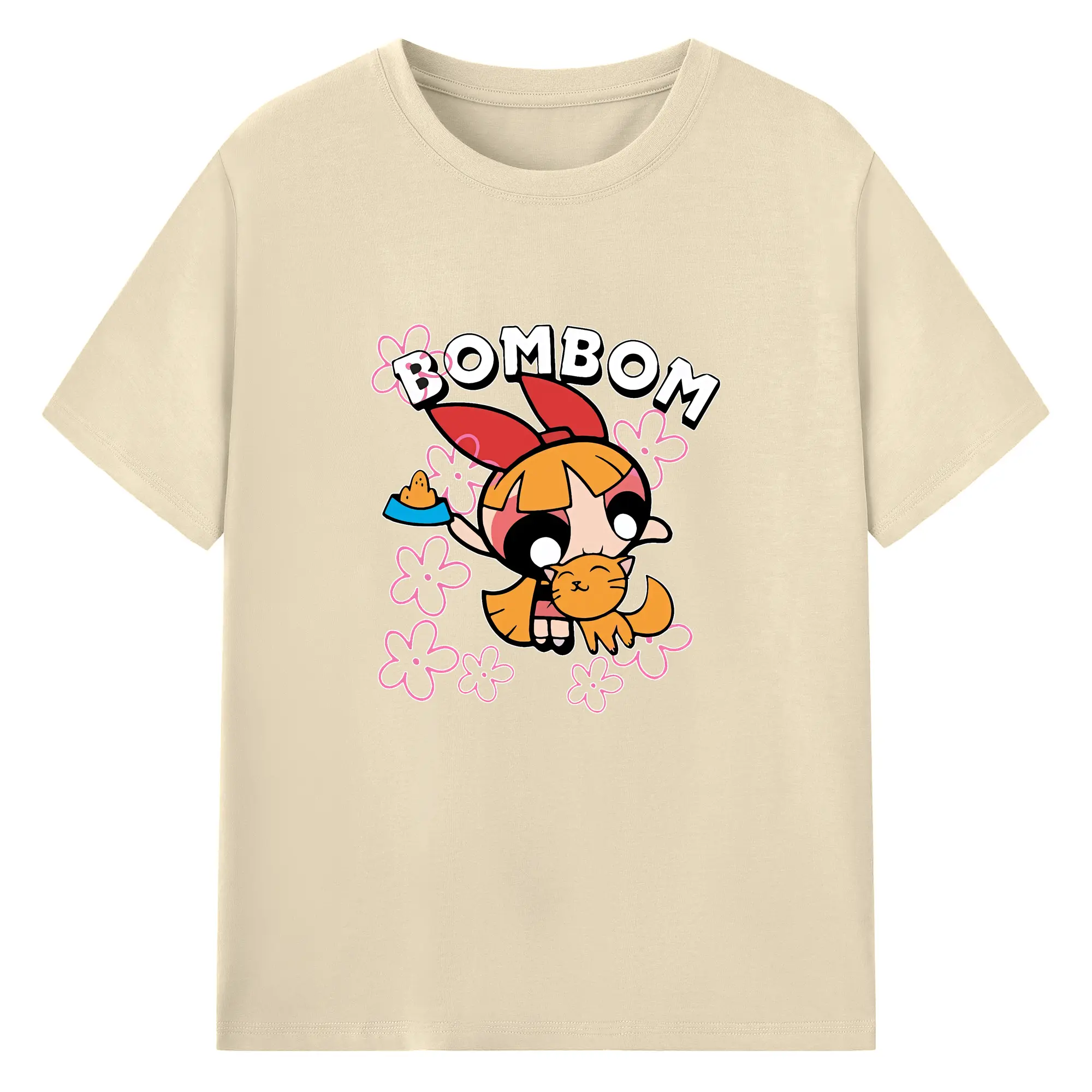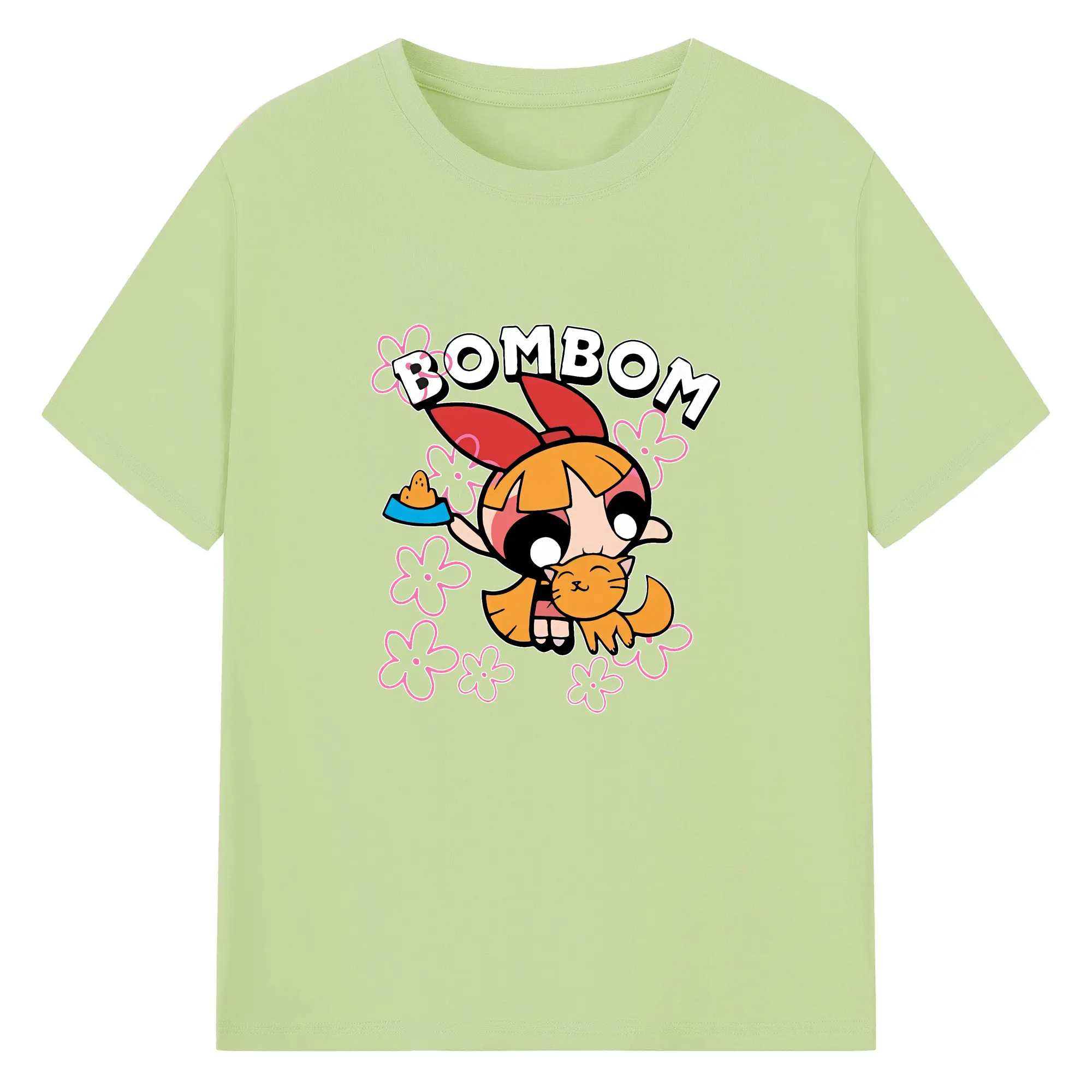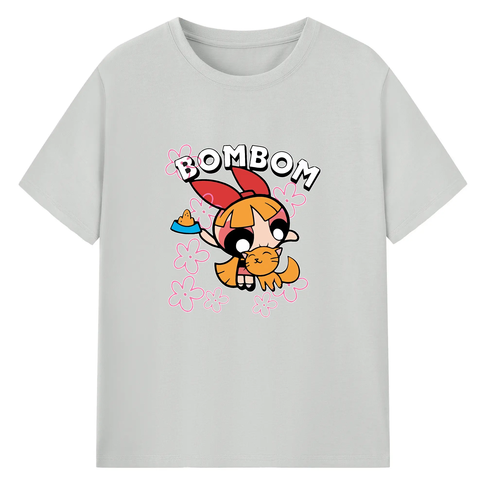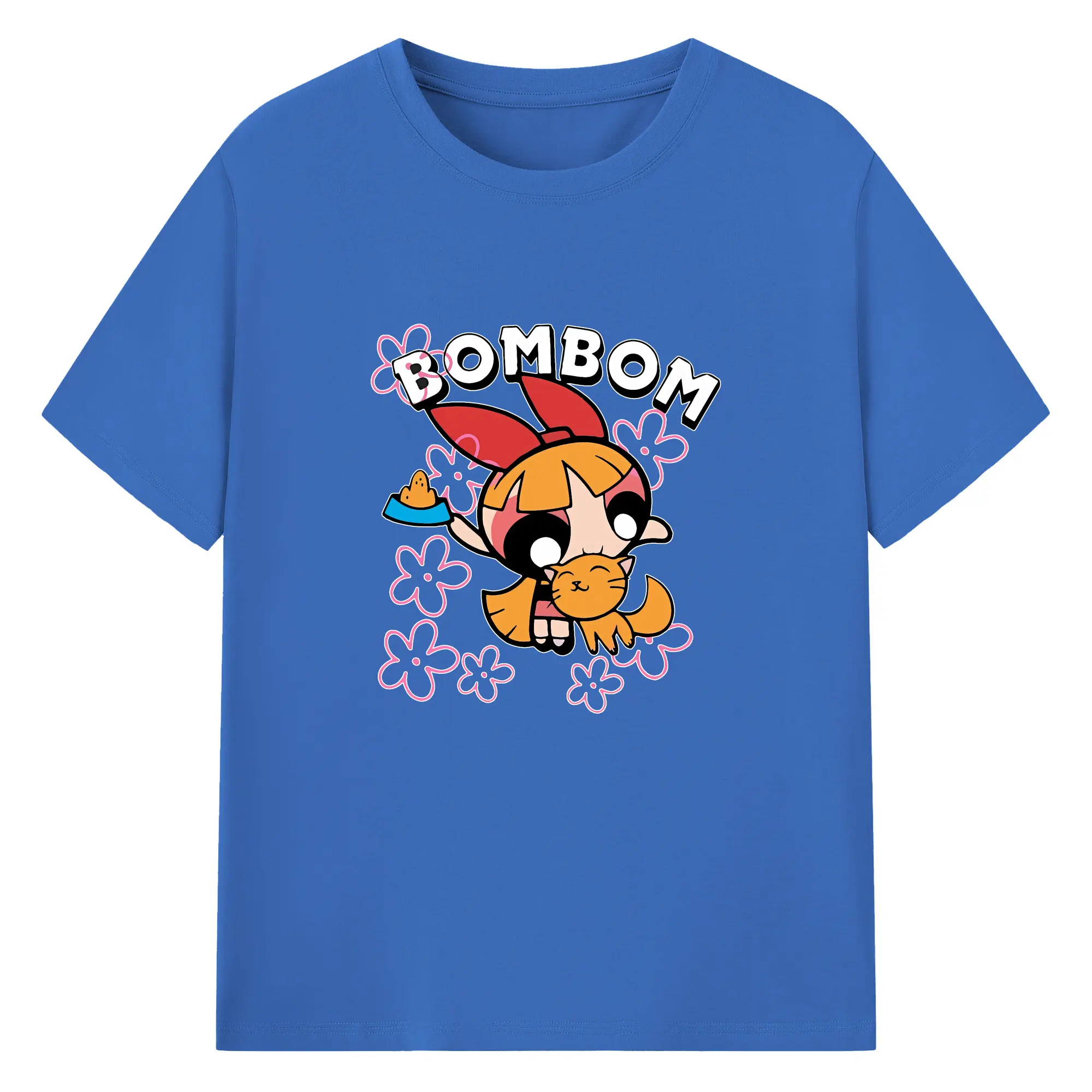 パワパフガールズ グッズ ブロッサム - 綿100% 半袖Tシャツ ・ バックプリント ・ 快適 通気性 ・ 日常使い 散歩 スポーツ用