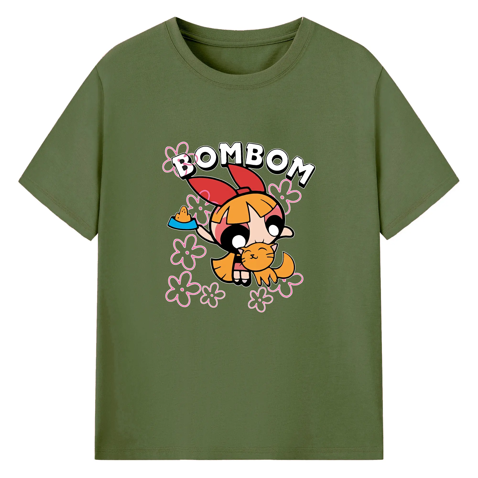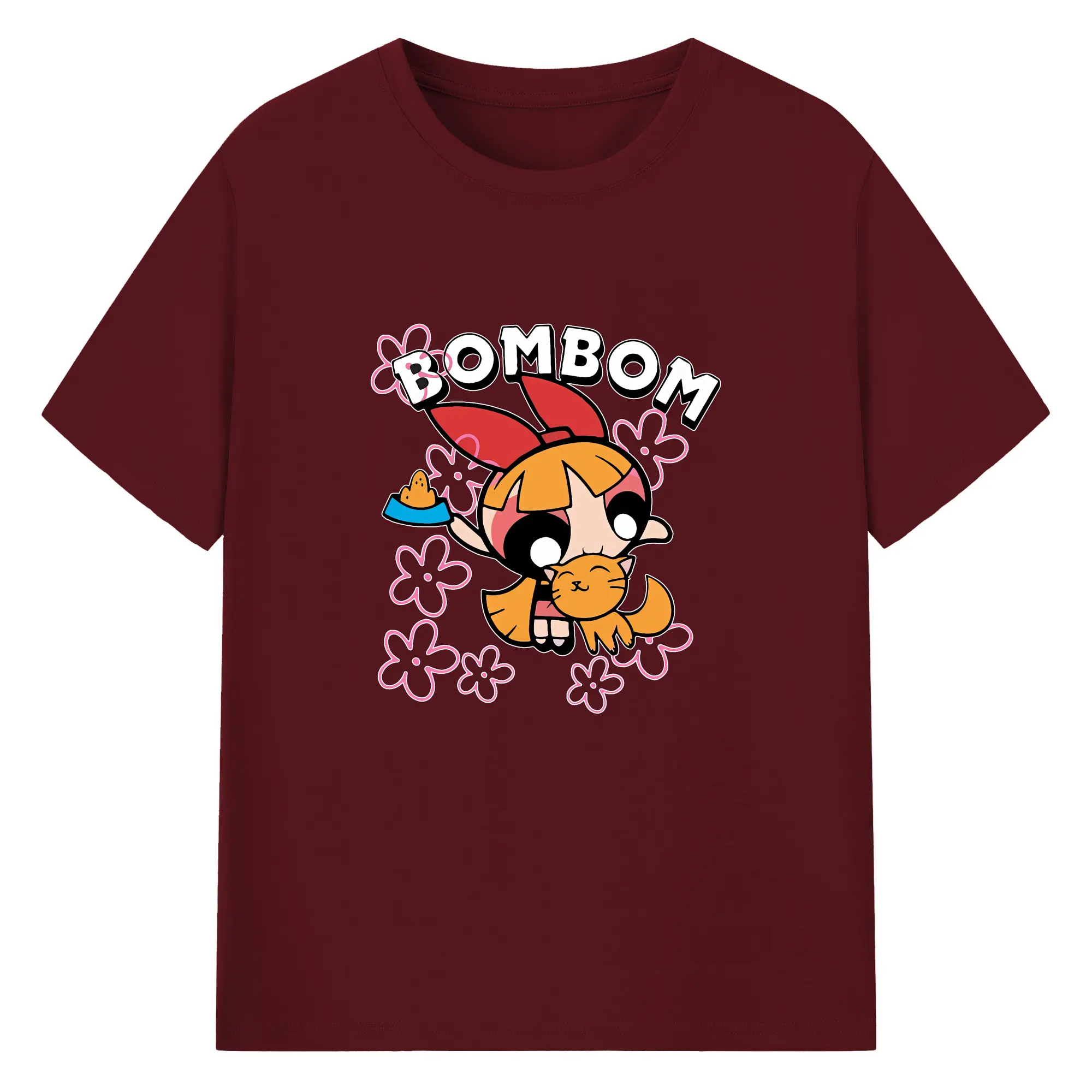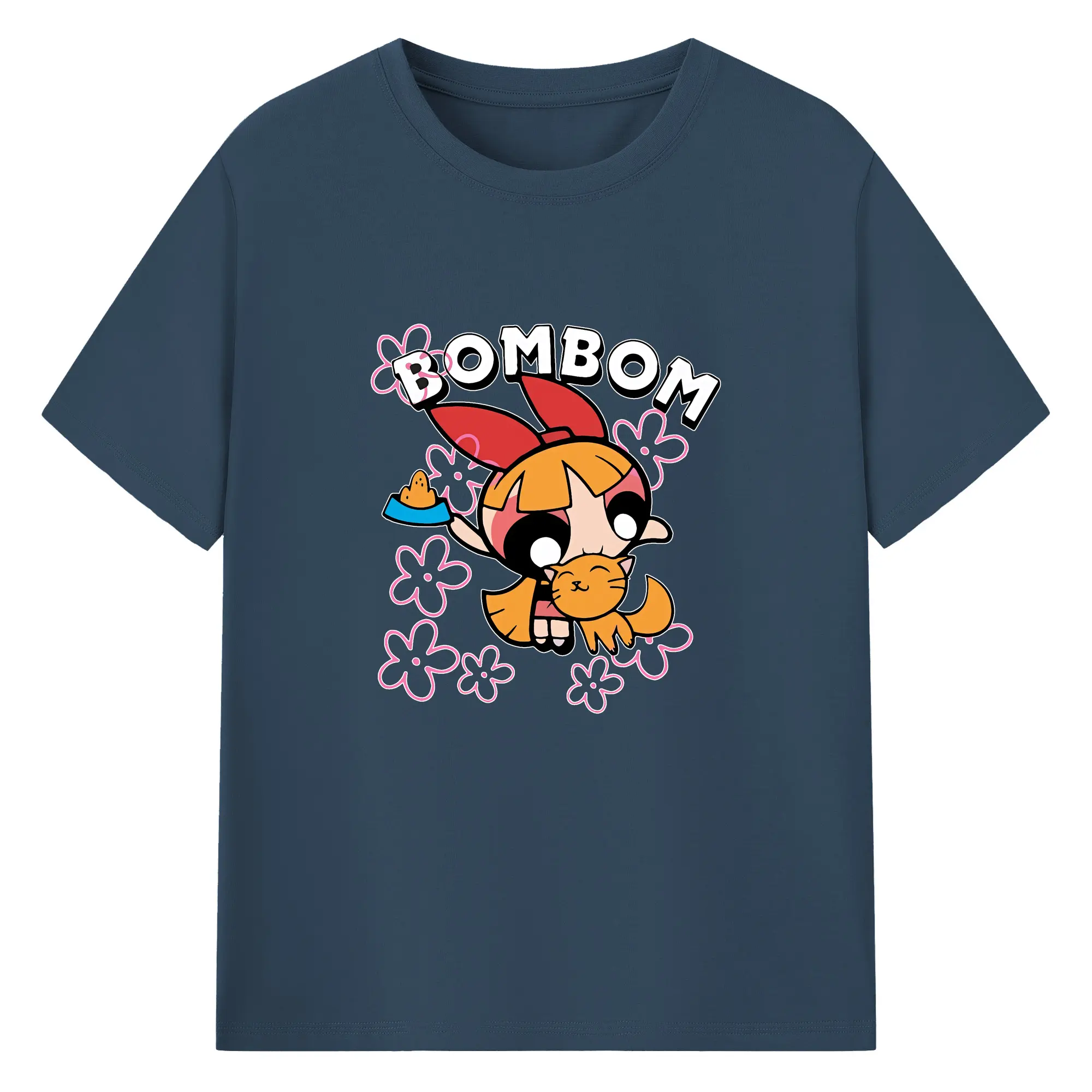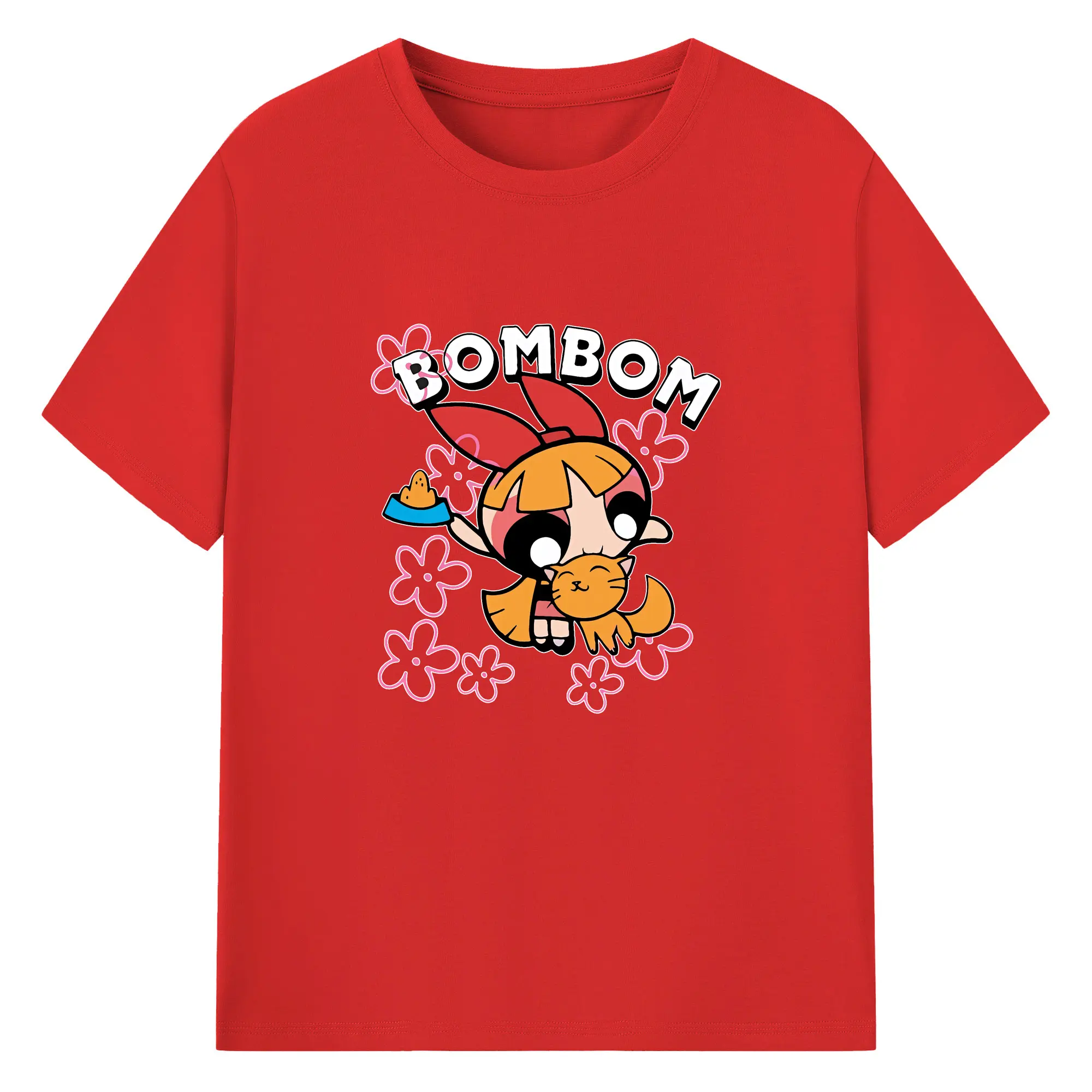 パワパフガールズ グッズ ブロッサム - 綿100% 半袖Tシャツ ・ バックプリント ・ 快適 通気性 ・ 日常使い 散歩 スポーツ用