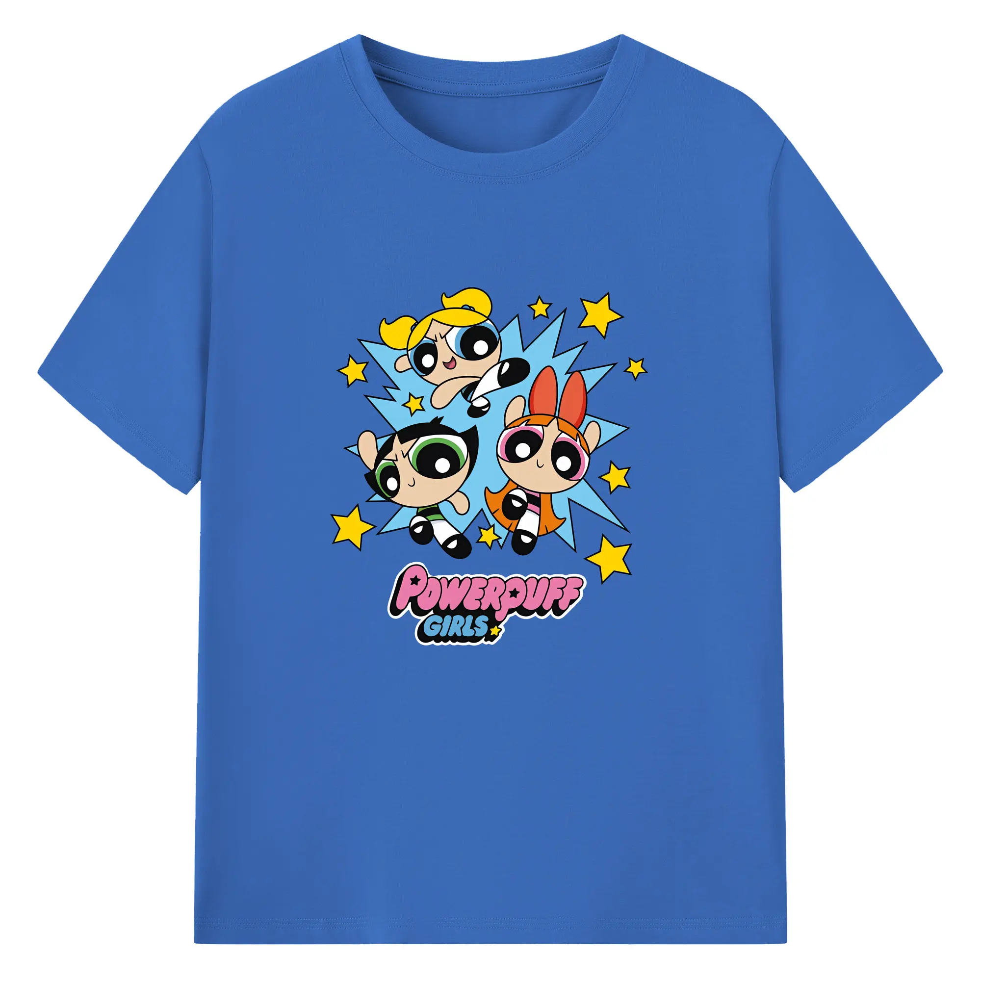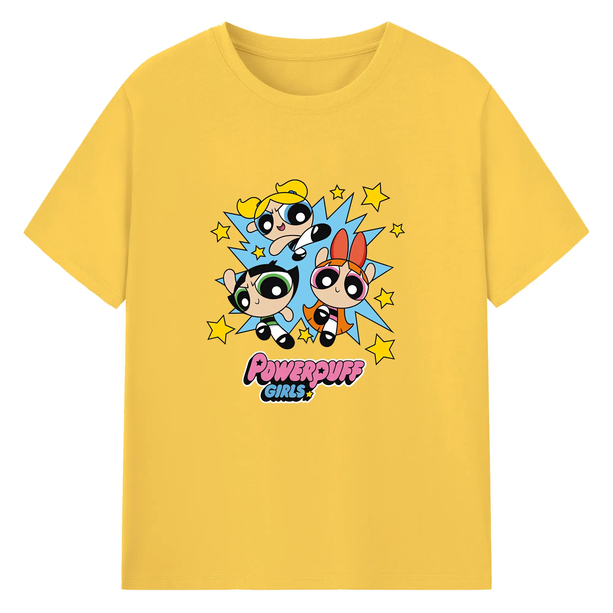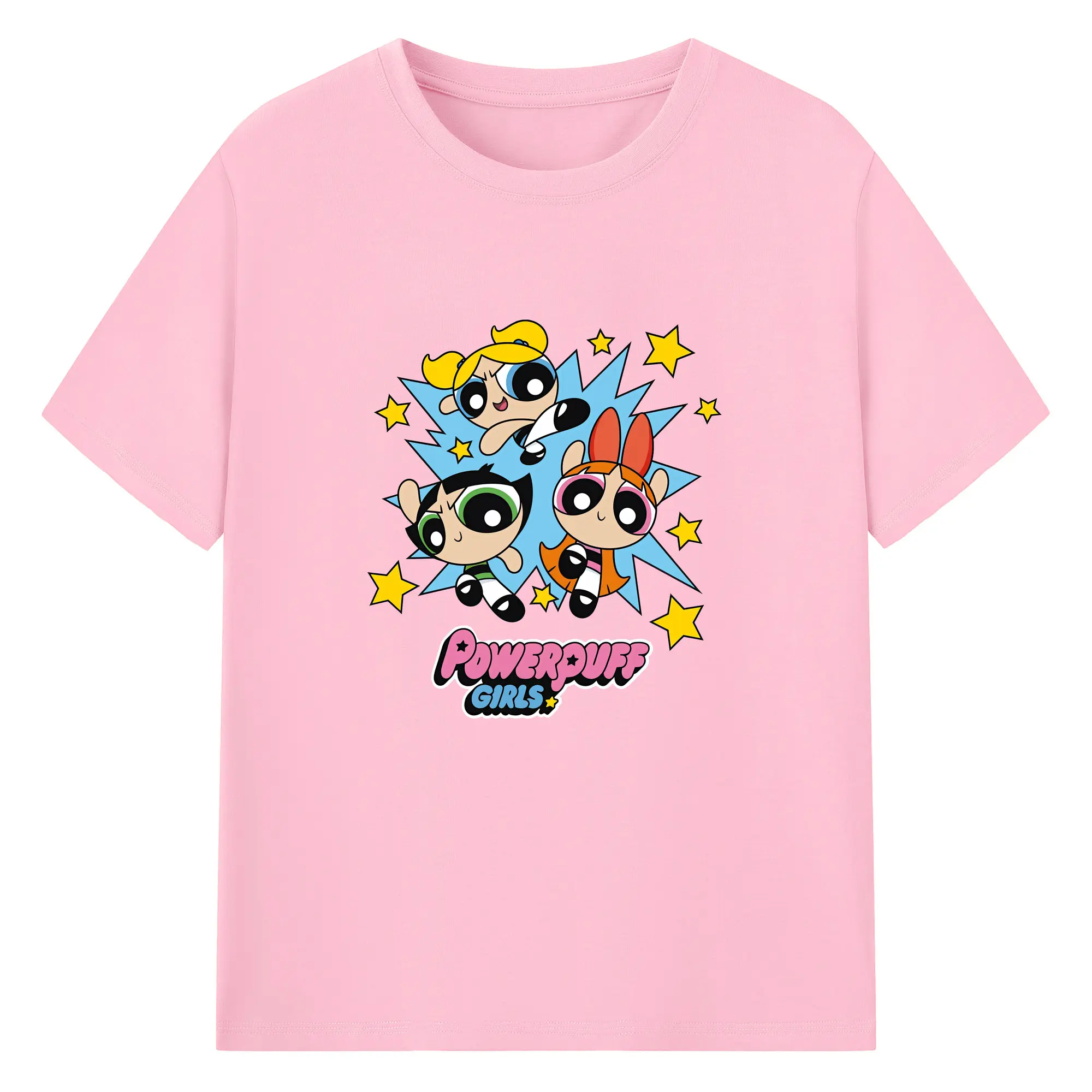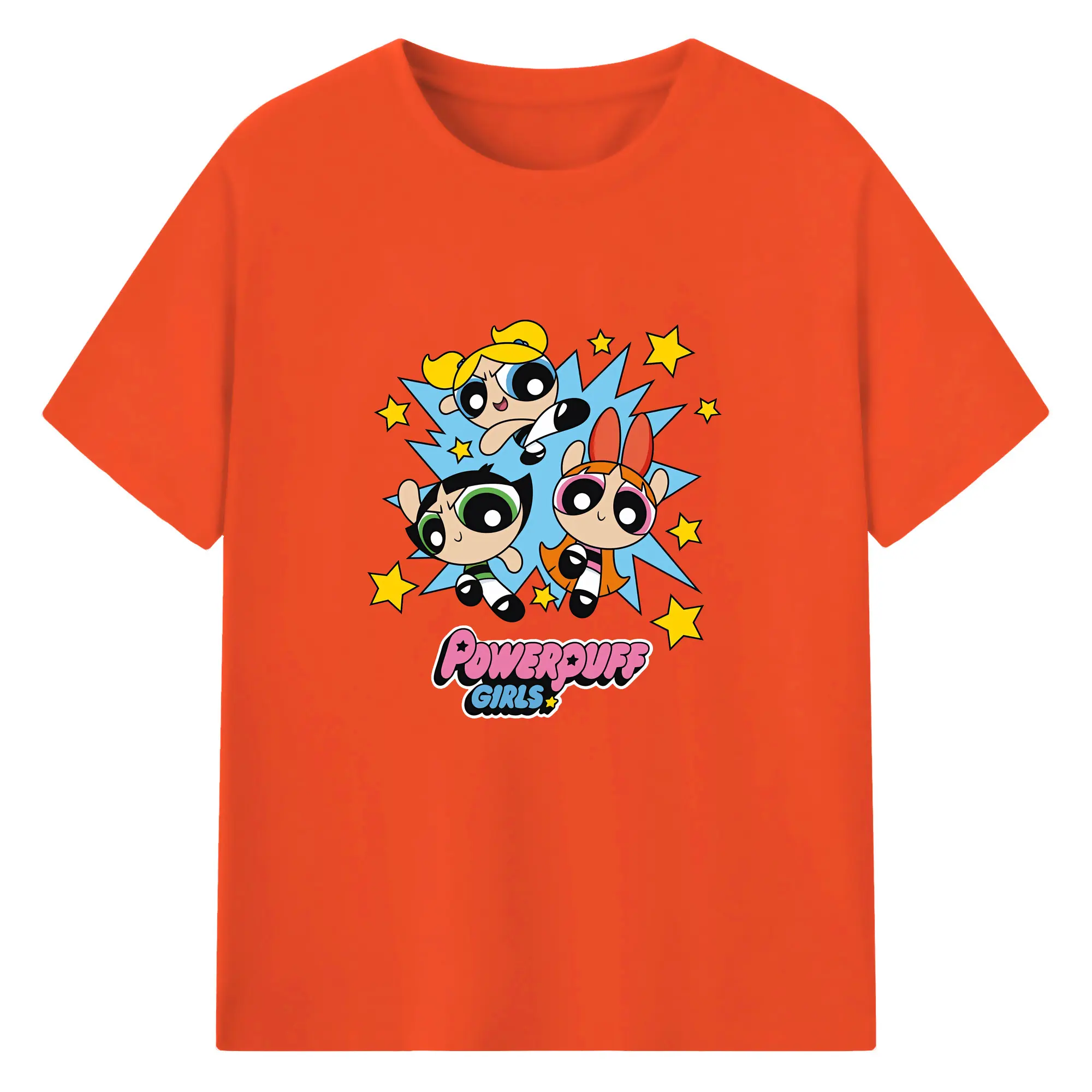 パワパフガールズ グッズ ブロッサム - 綿100% 半袖Tシャツ ・ バックプリント ・ 快適 通気性 ・ 日常使い 散歩 スポーツ用