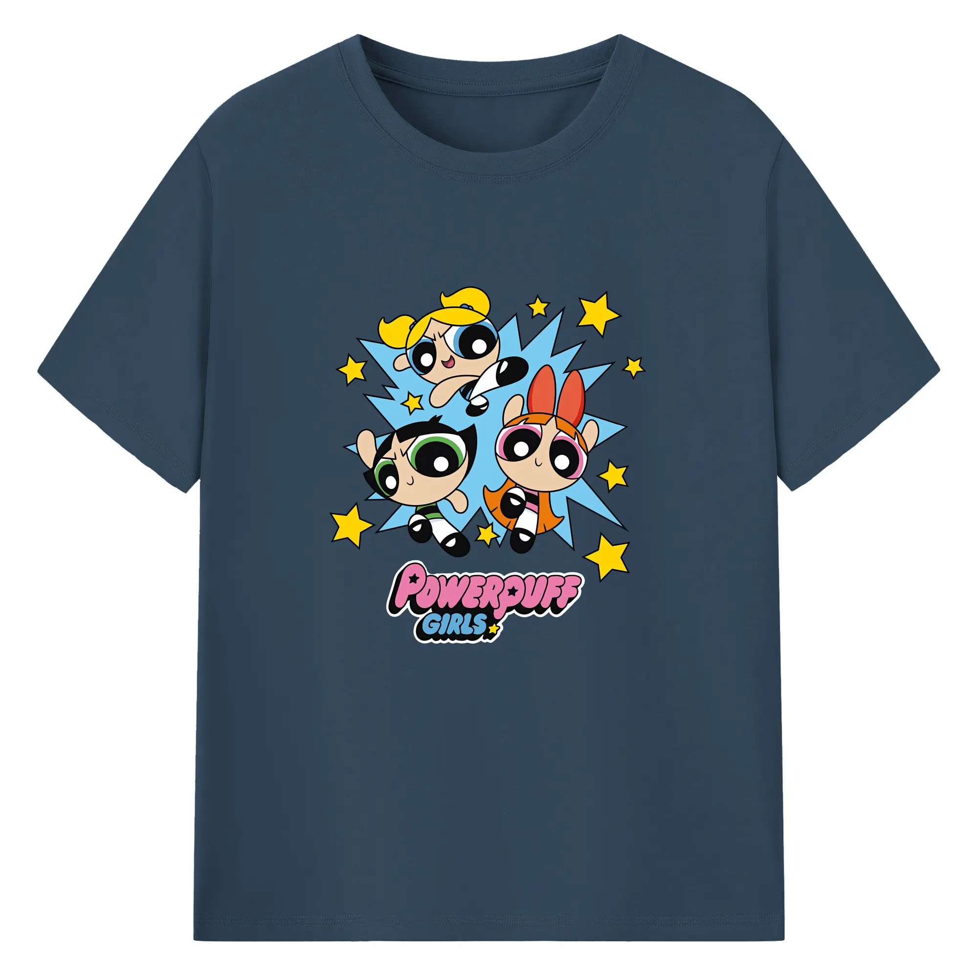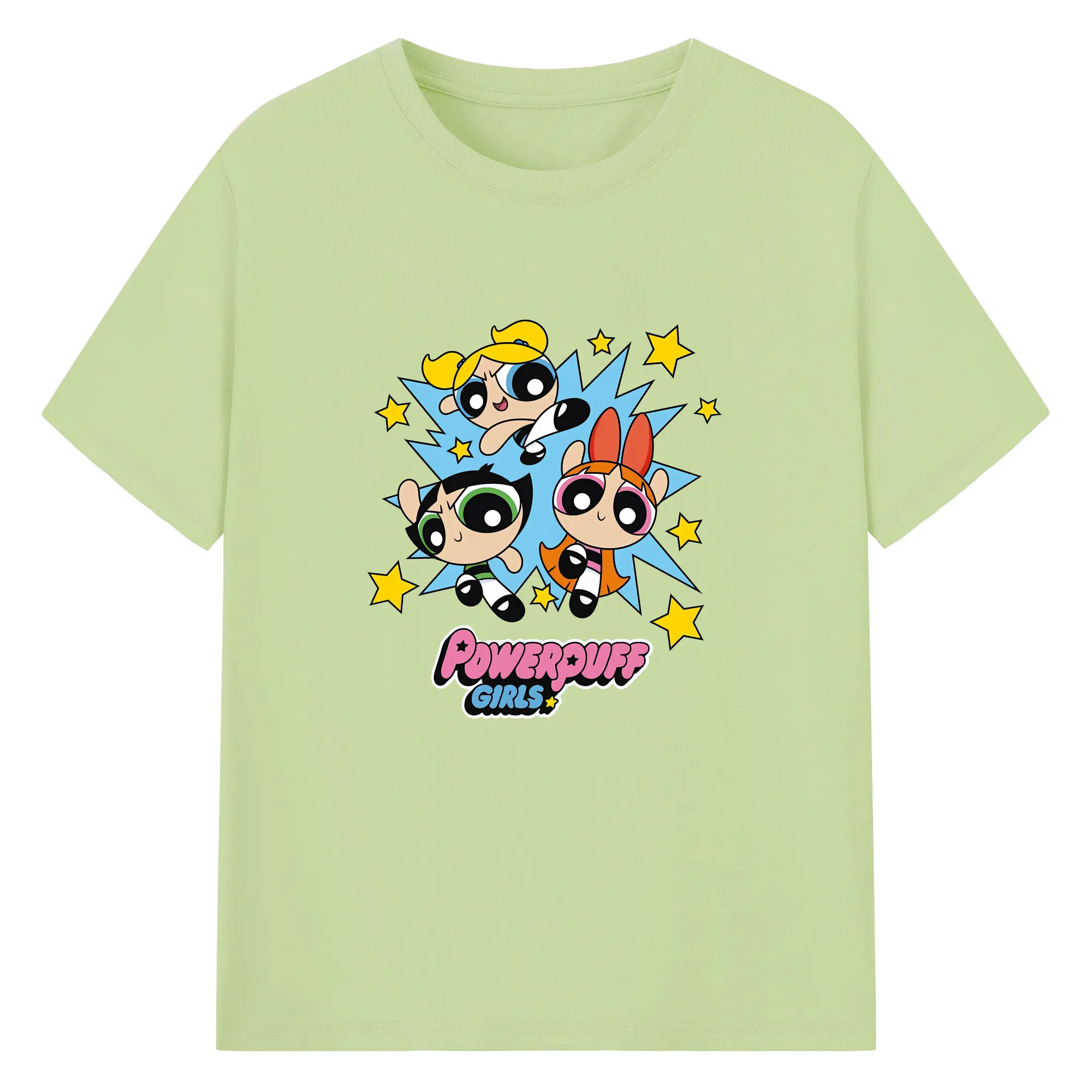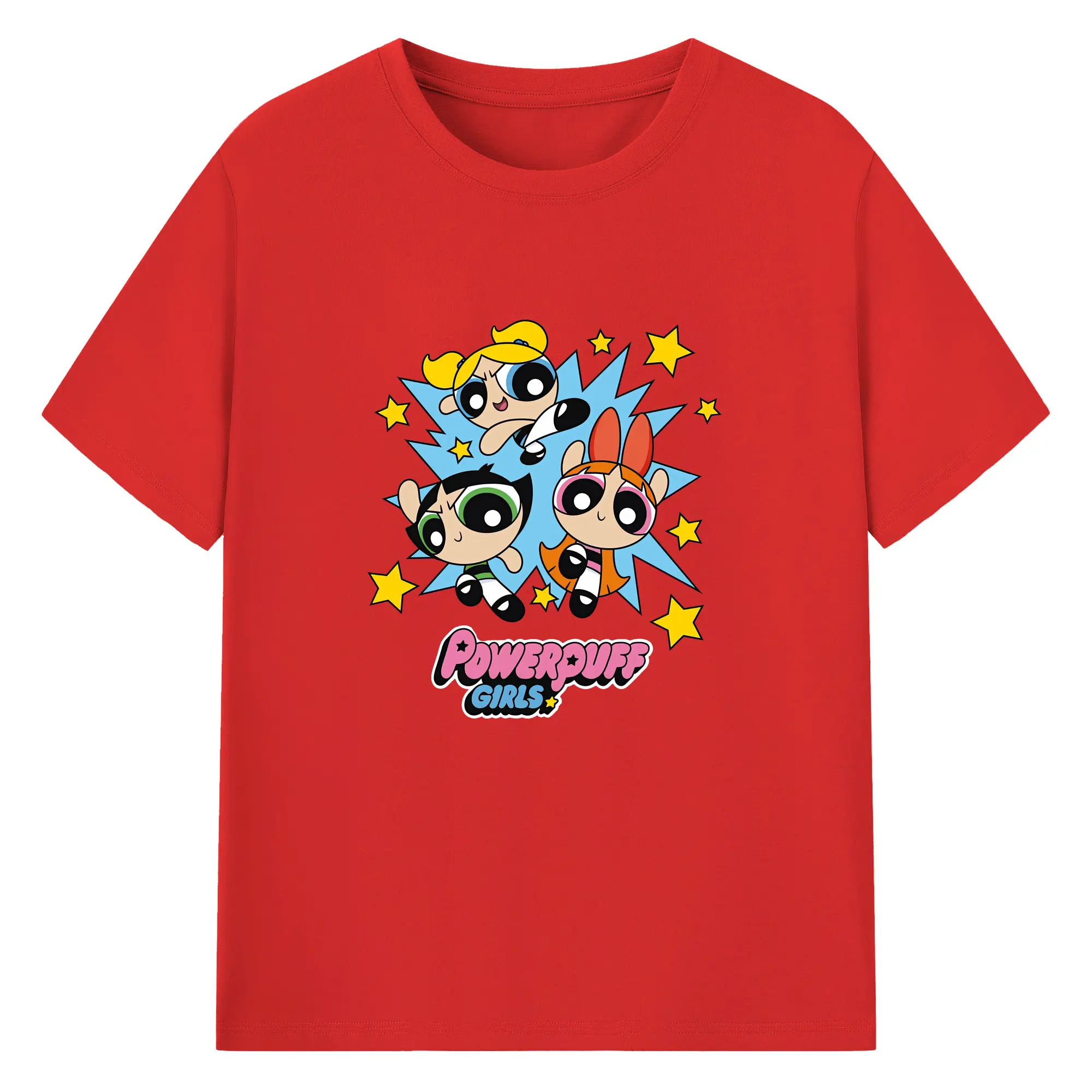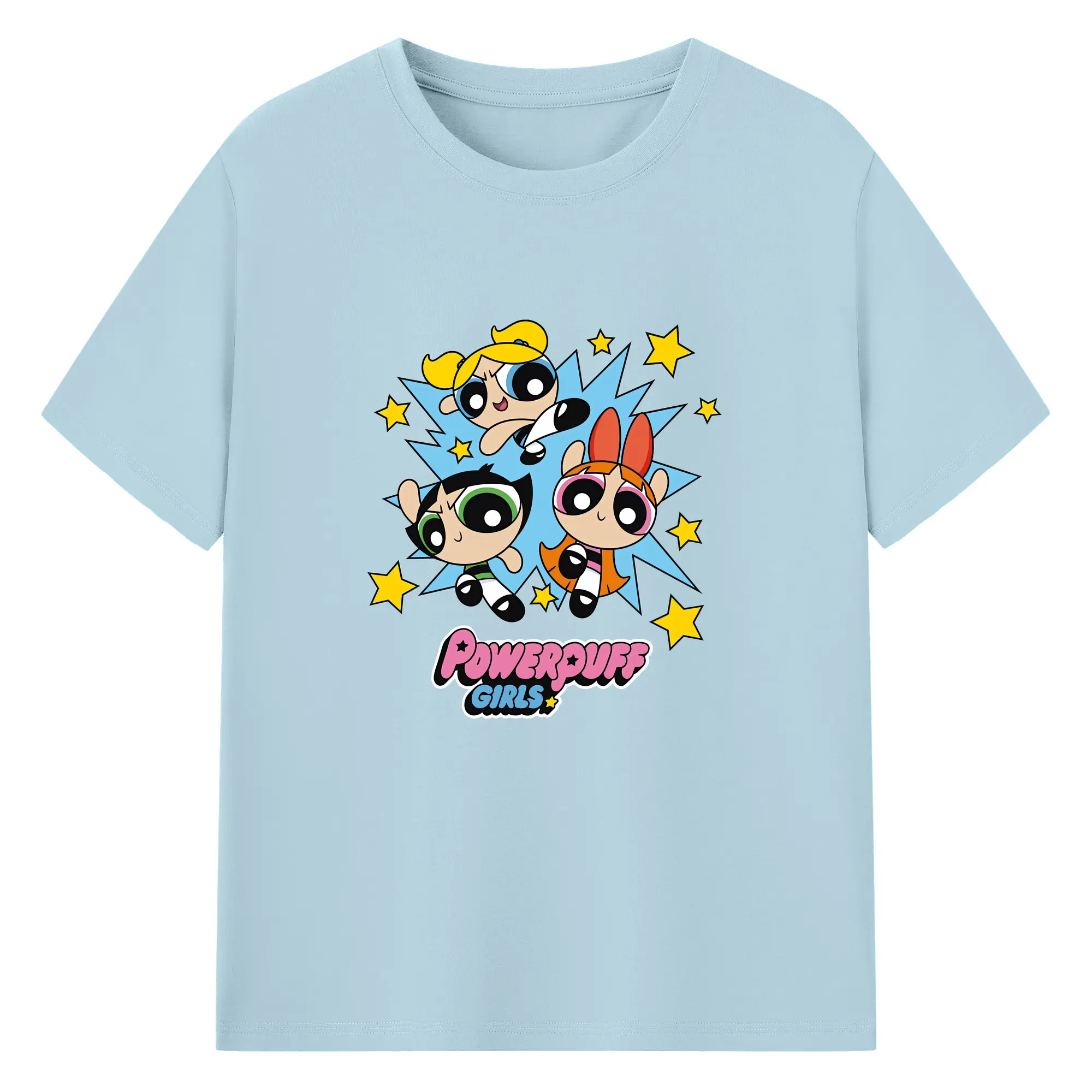 パワパフガールズ グッズ ブロッサム - 綿100% 半袖Tシャツ ・ バックプリント ・ 快適 通気性 ・ 日常使い 散歩 スポーツ用