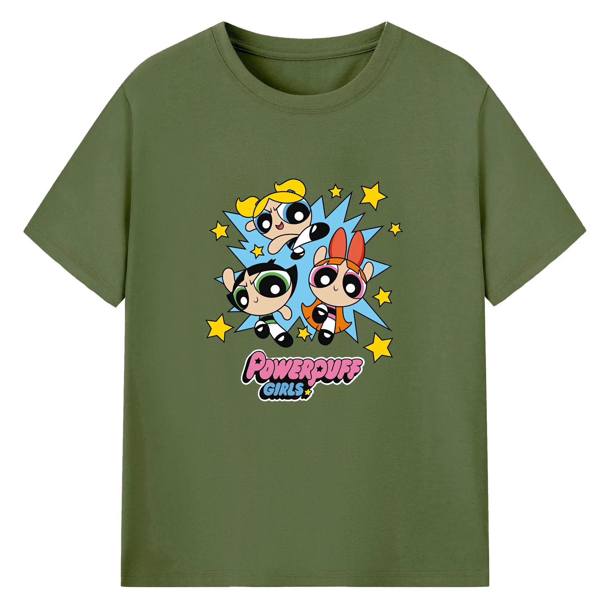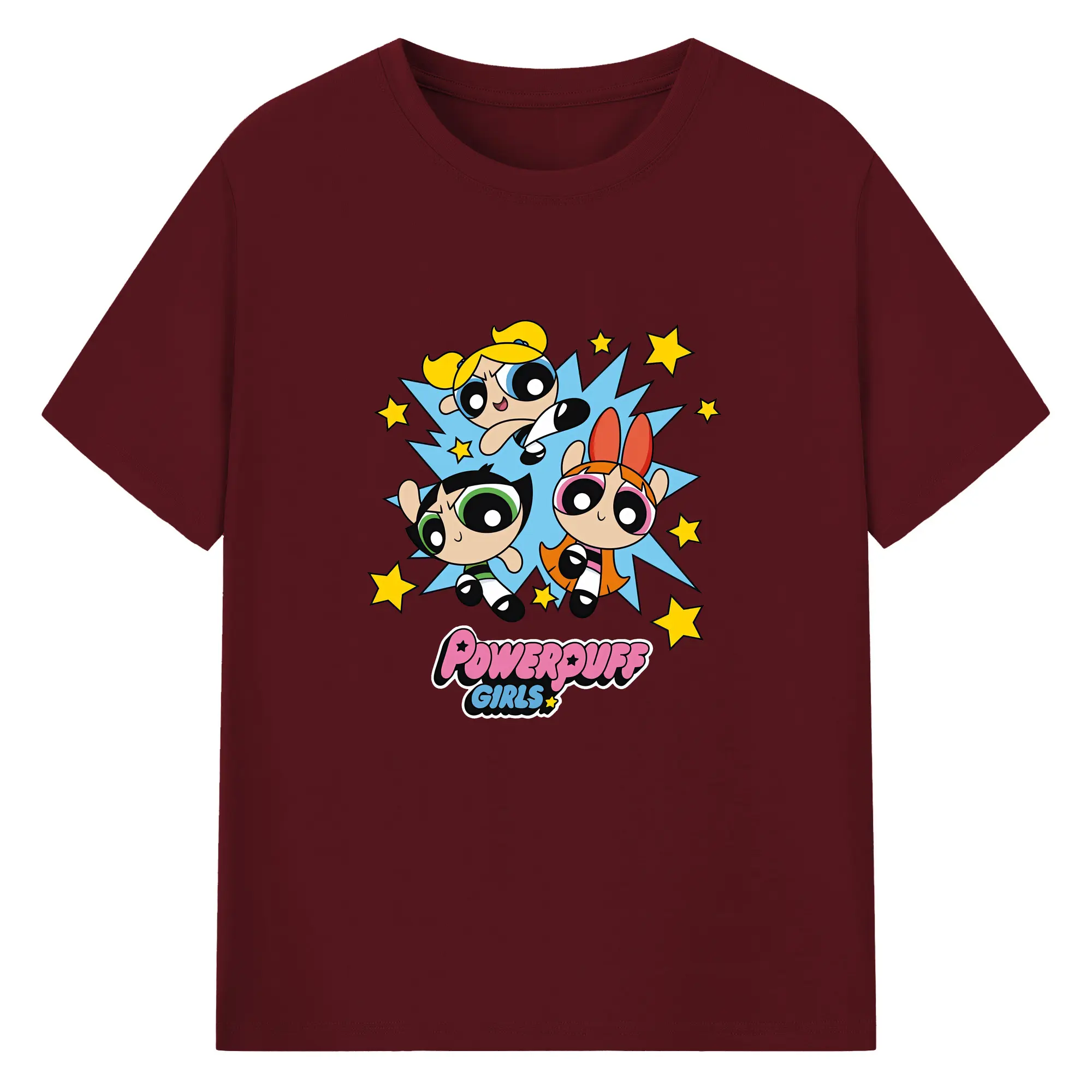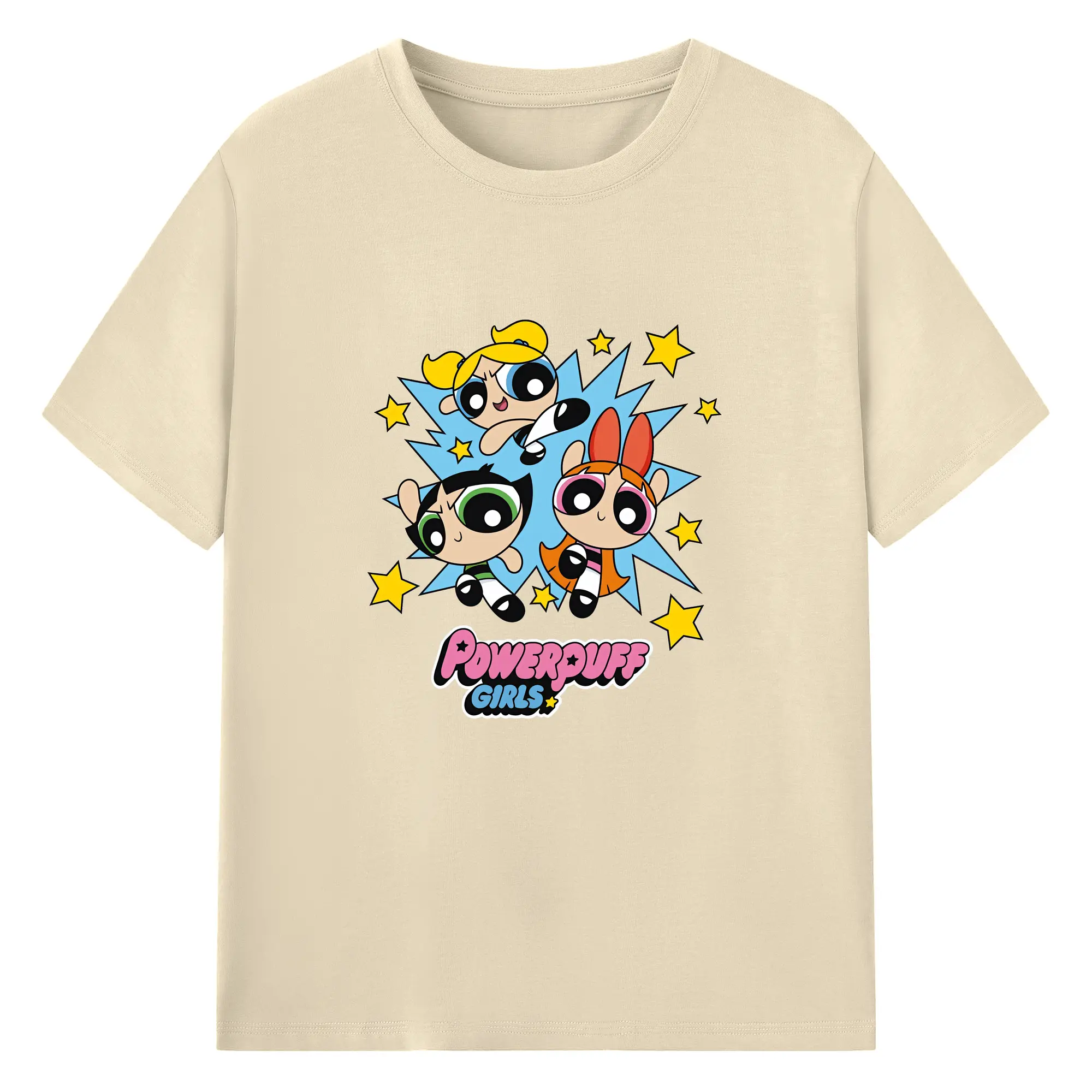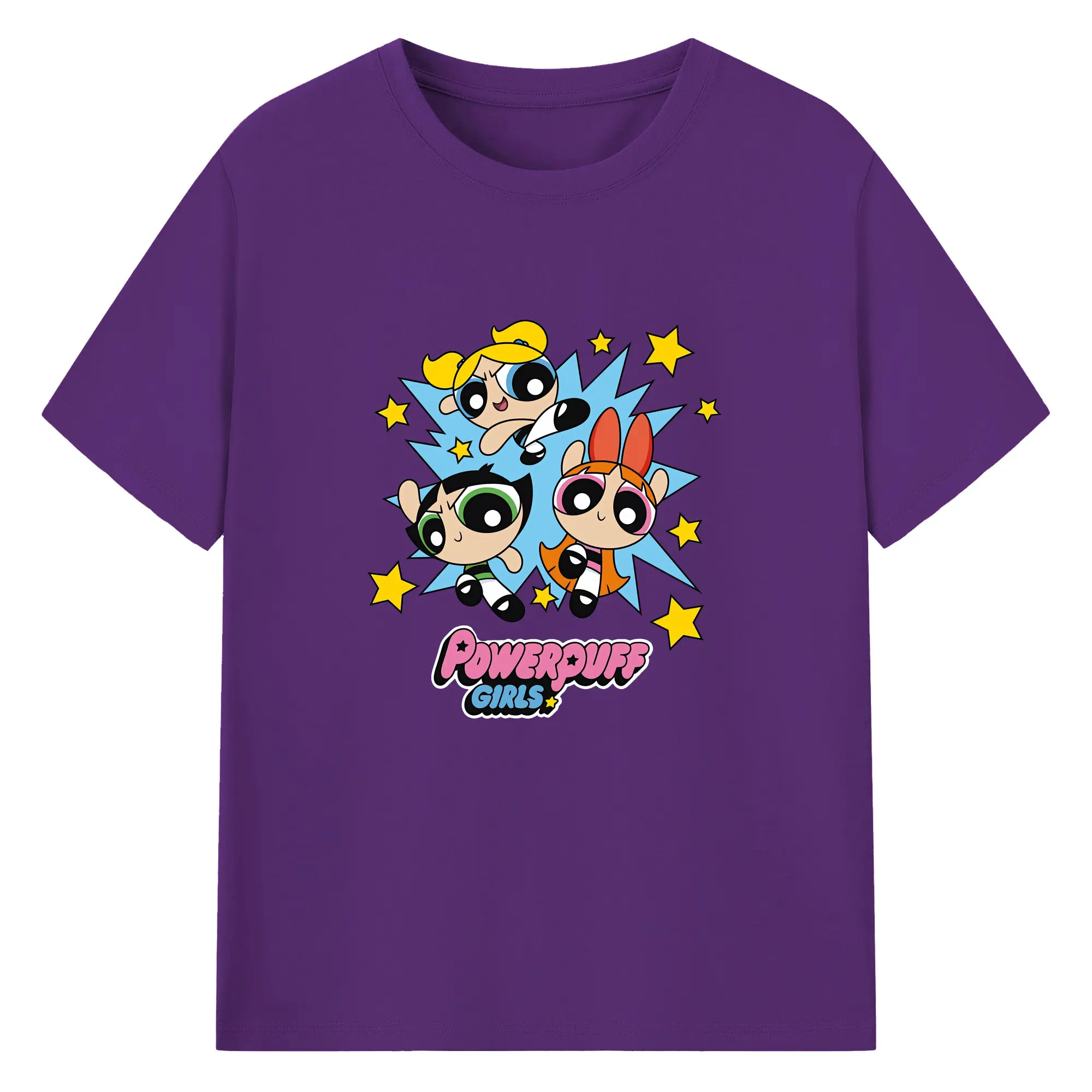 パワパフガールズ グッズ ブロッサム - 綿100% 半袖Tシャツ ・ バックプリント ・ 快適 通気性 ・ 日常使い 散歩 スポーツ用